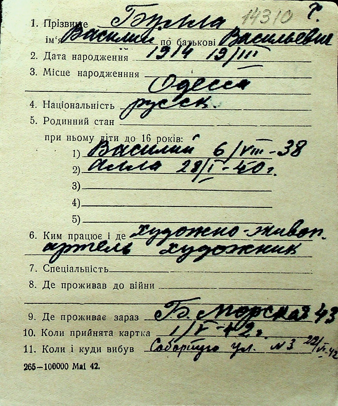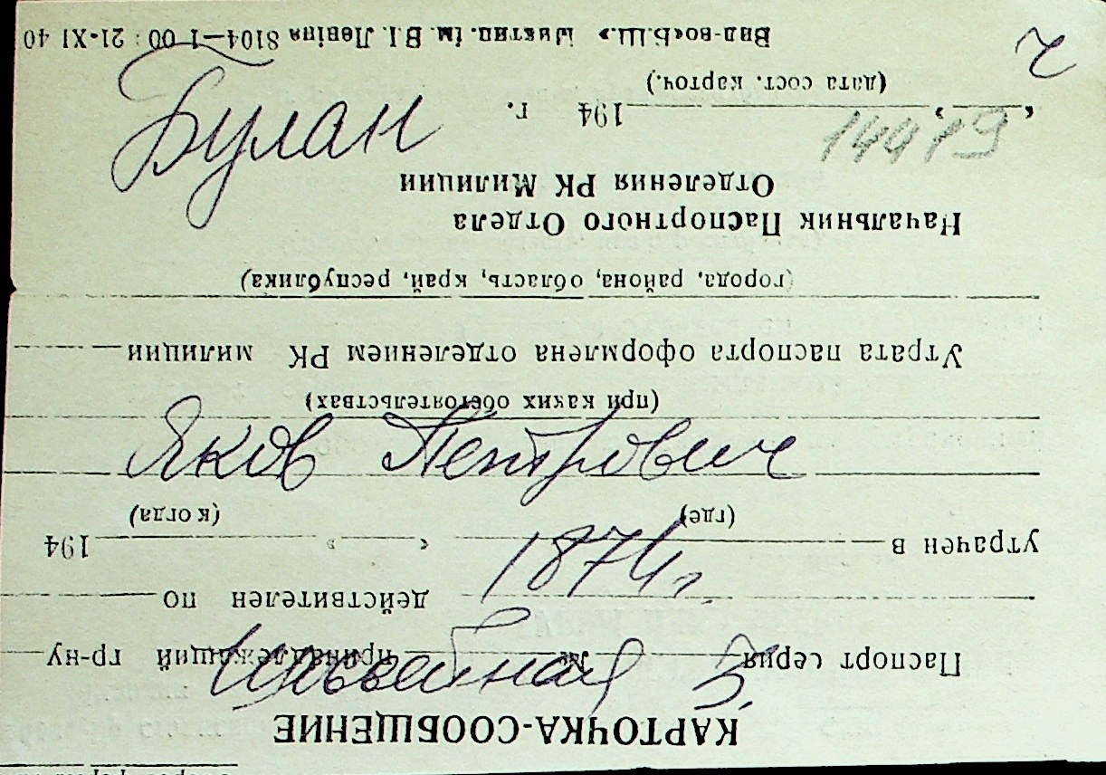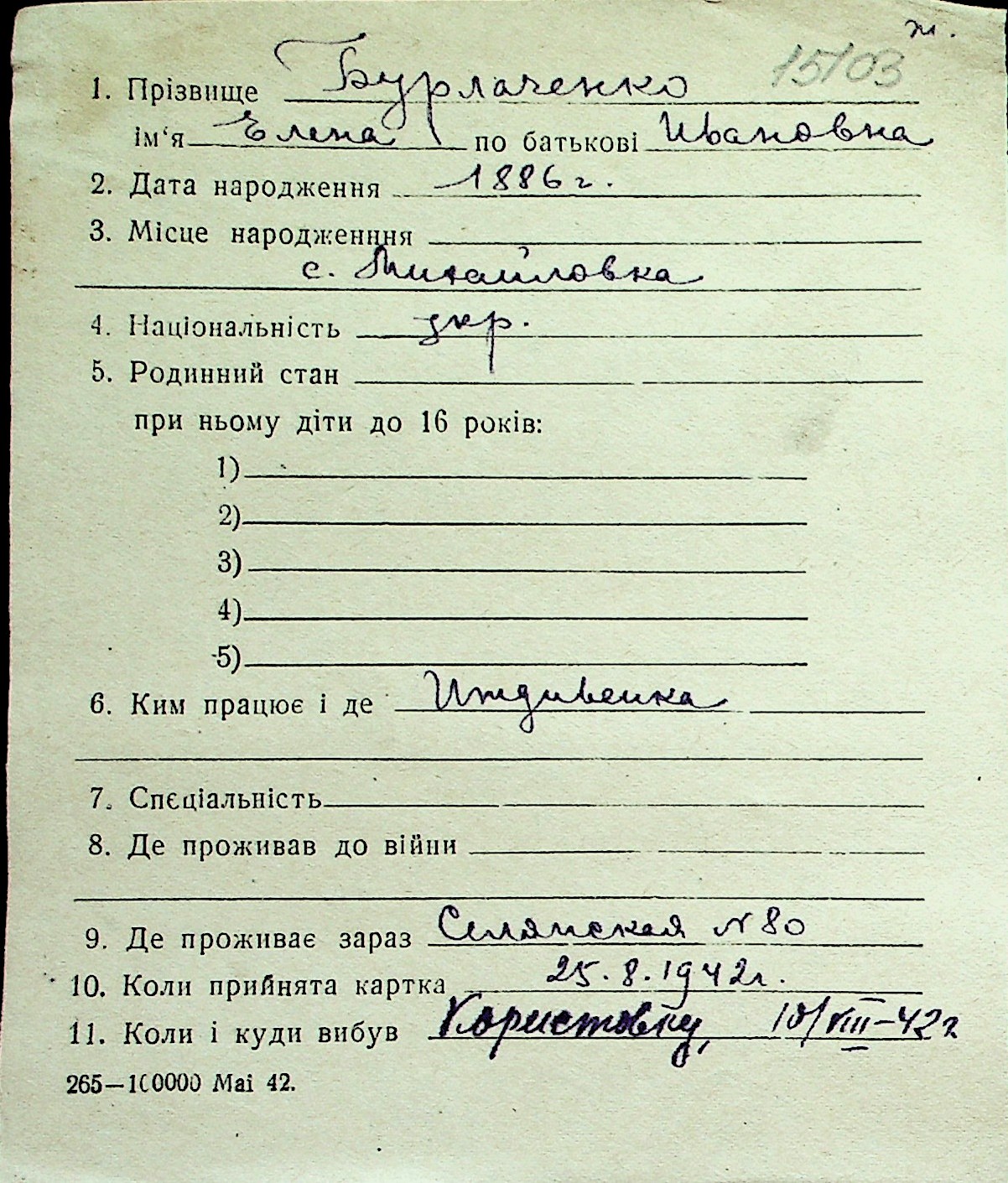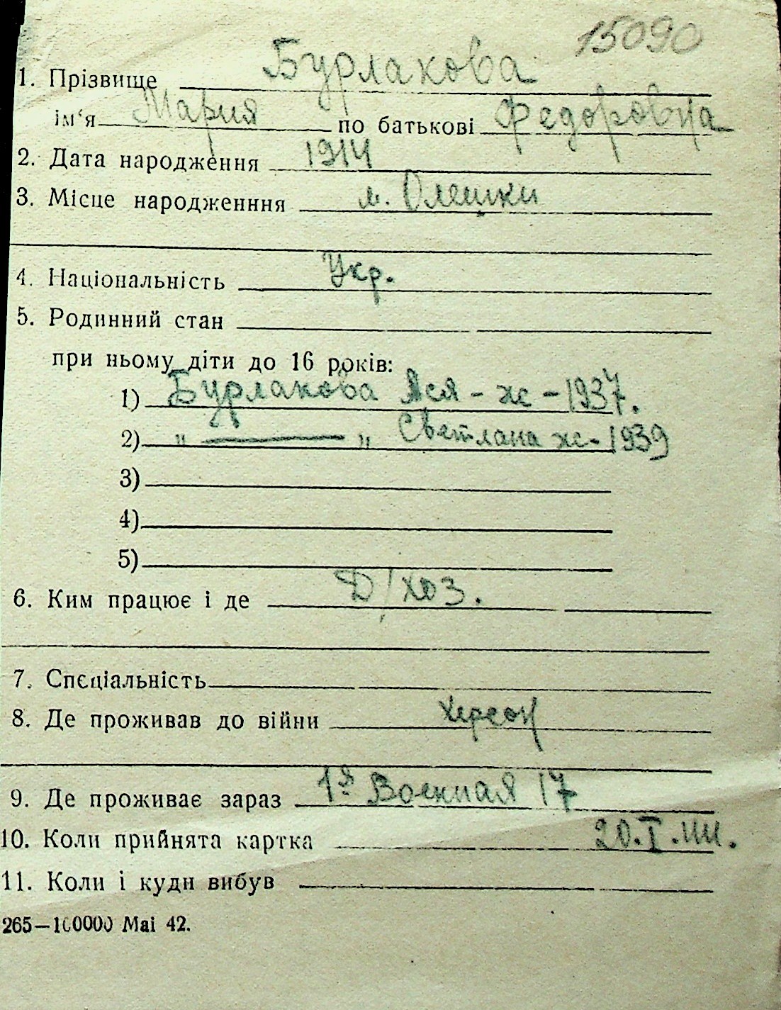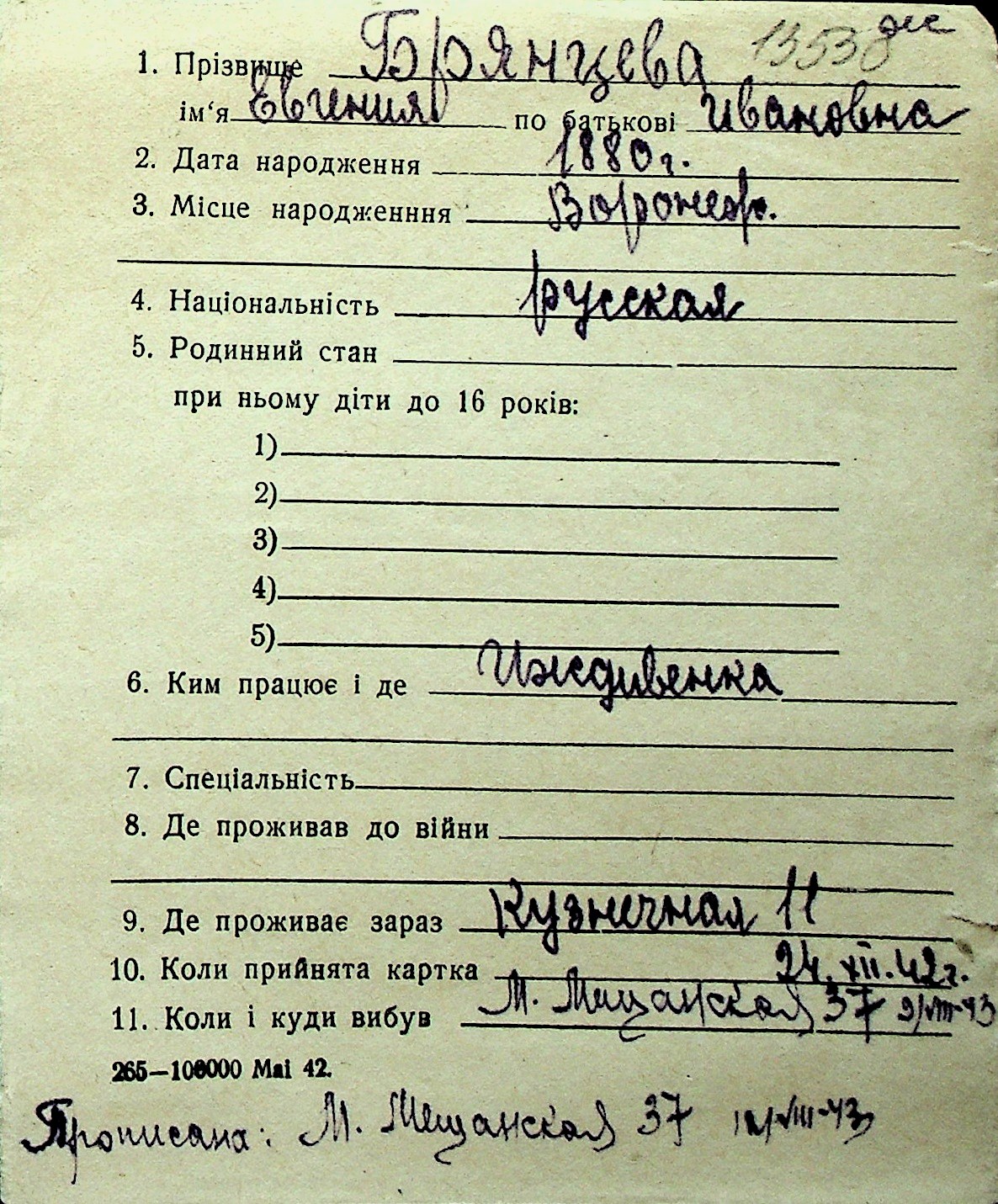 ◦ ◦ Перелік карток на осіб, які мешкали у м. Миколаїв у період окупації 1941–1944 років