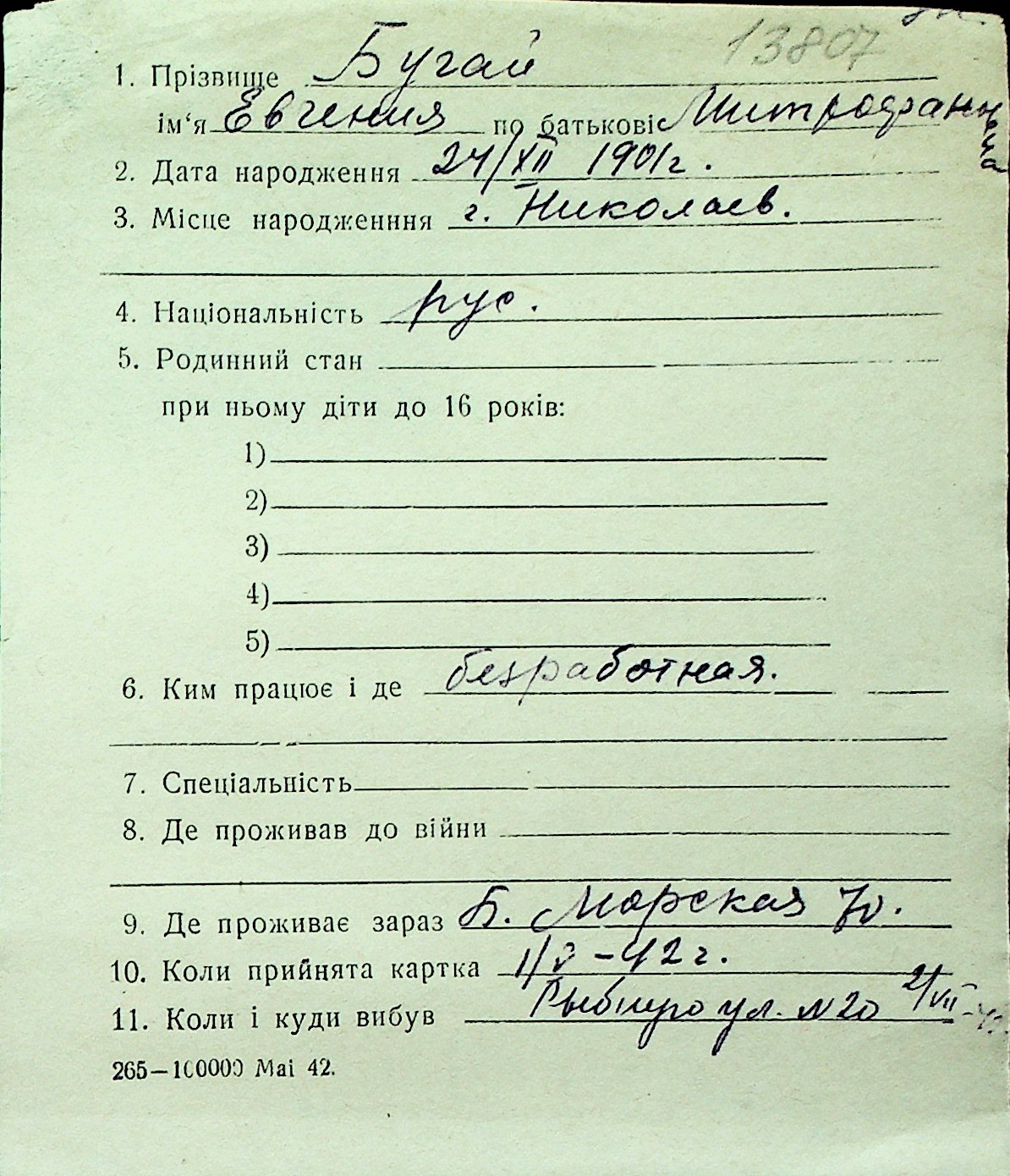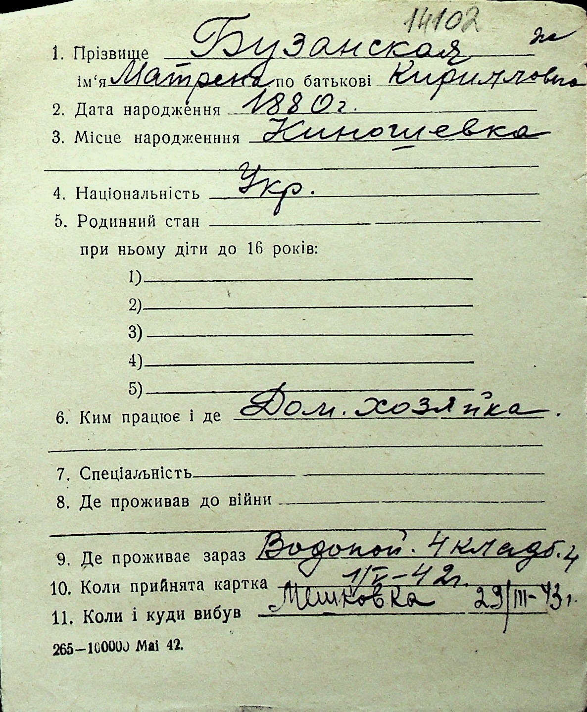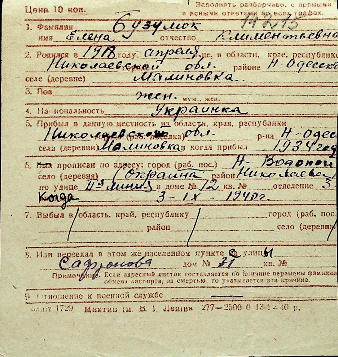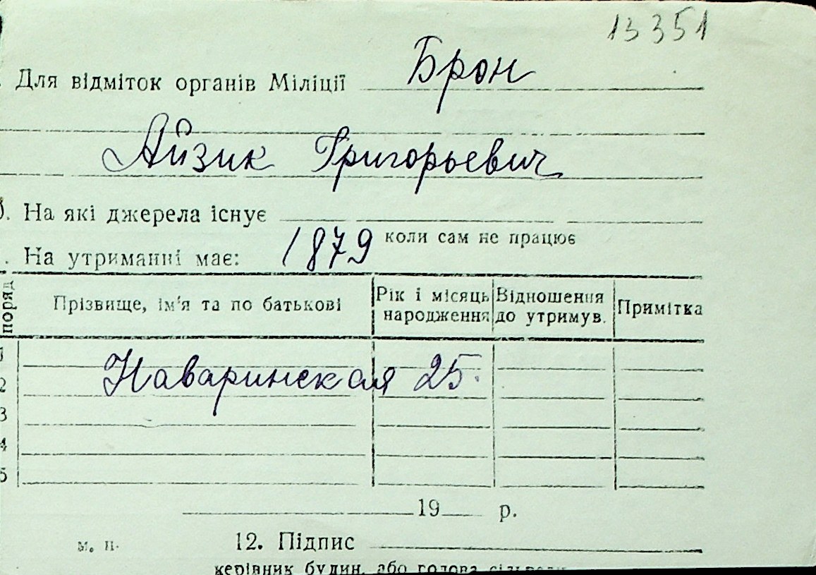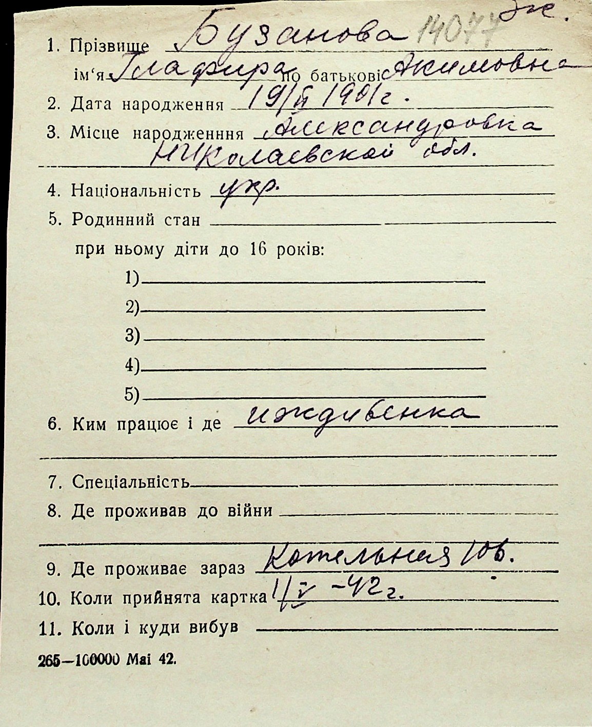 ◦ ◦ Перелік карток на осіб, які мешкали у м. Миколаїв у період окупації 1941–1944 років