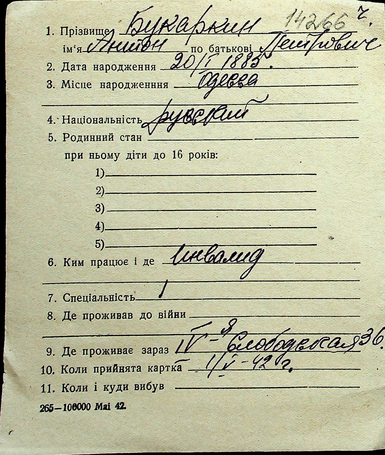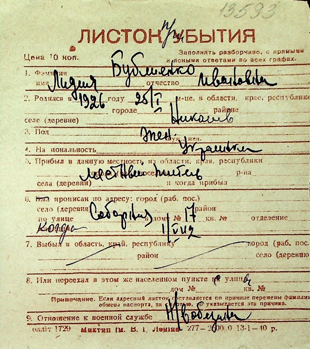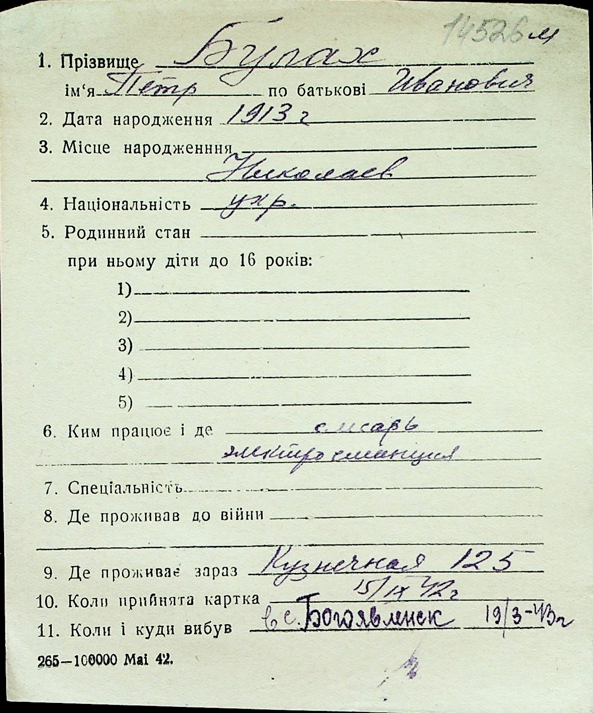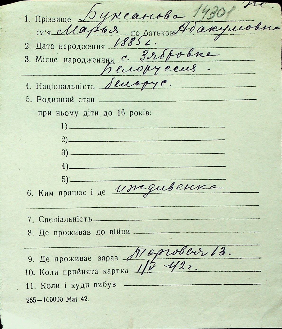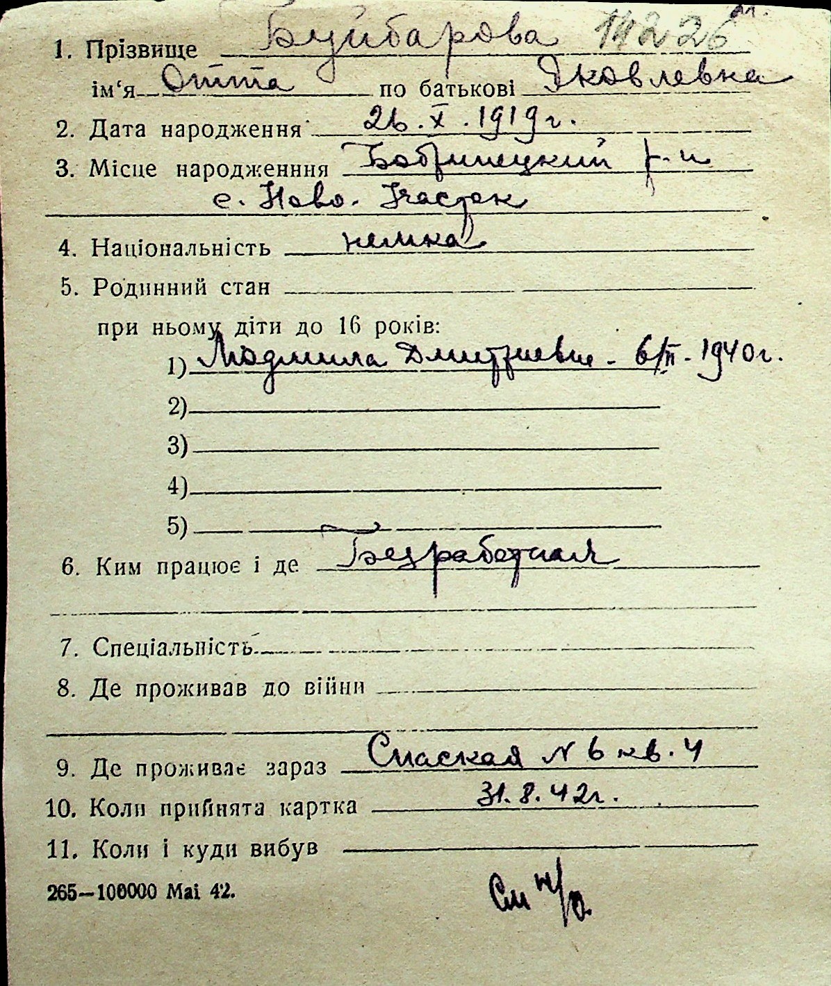 ◦ ◦ Перелік карток на осіб, які мешкали у м. Миколаїв у період окупації 1941–1944 років