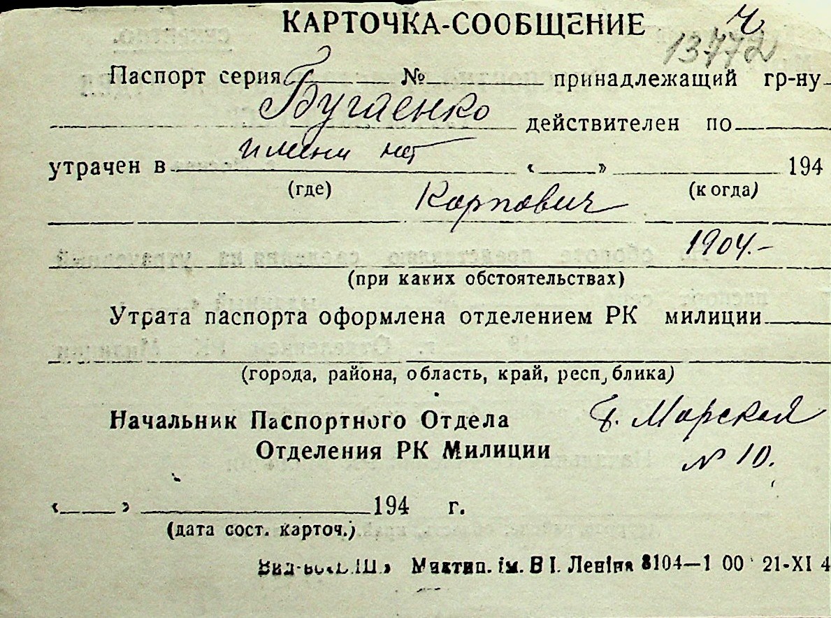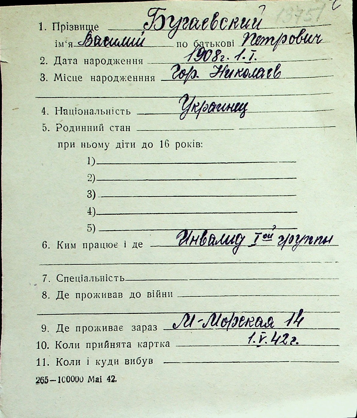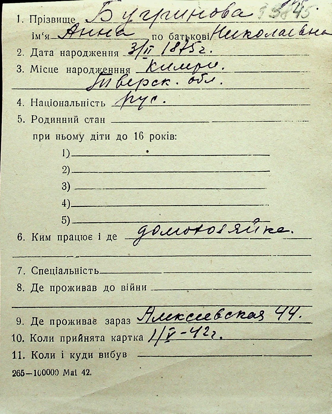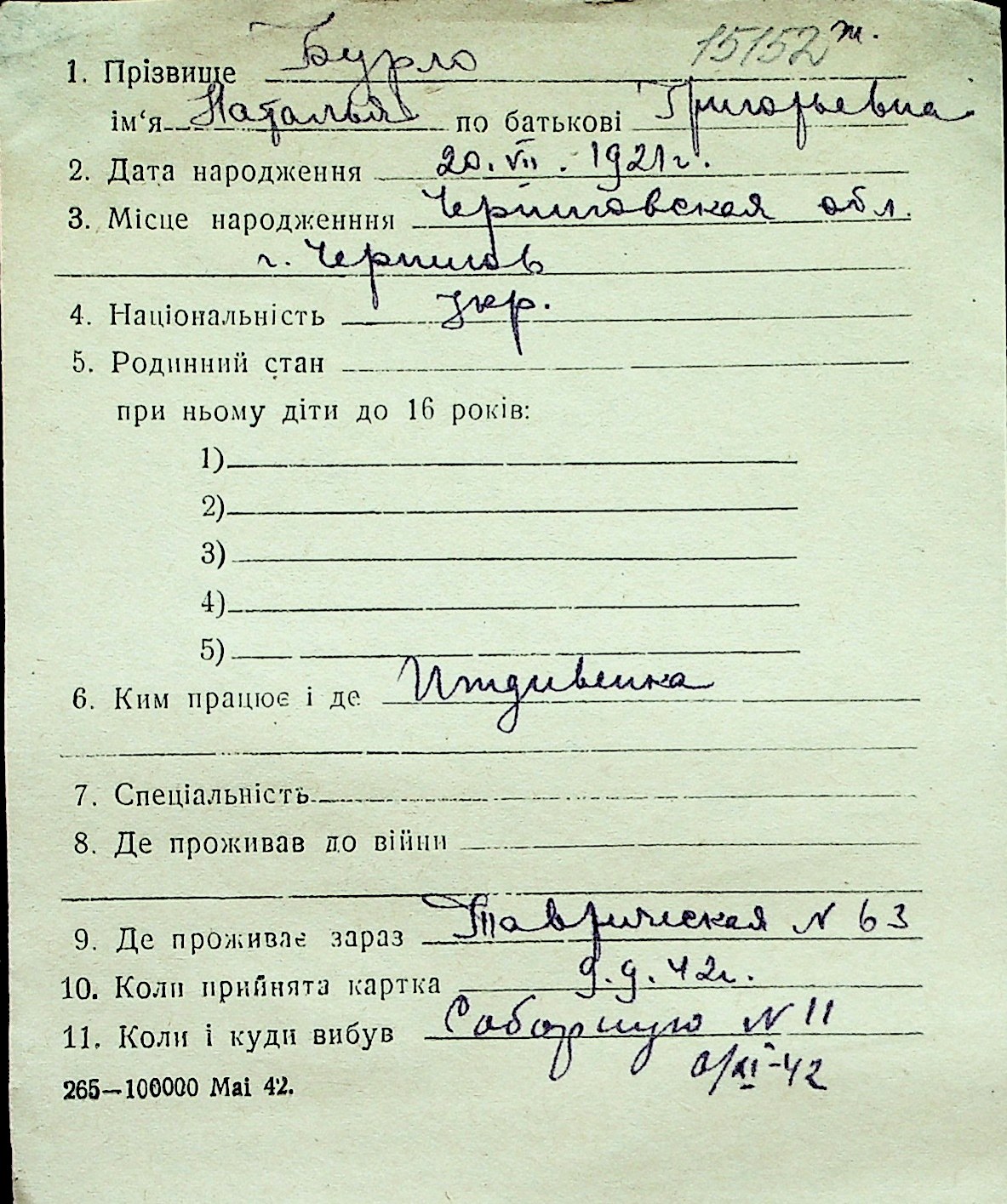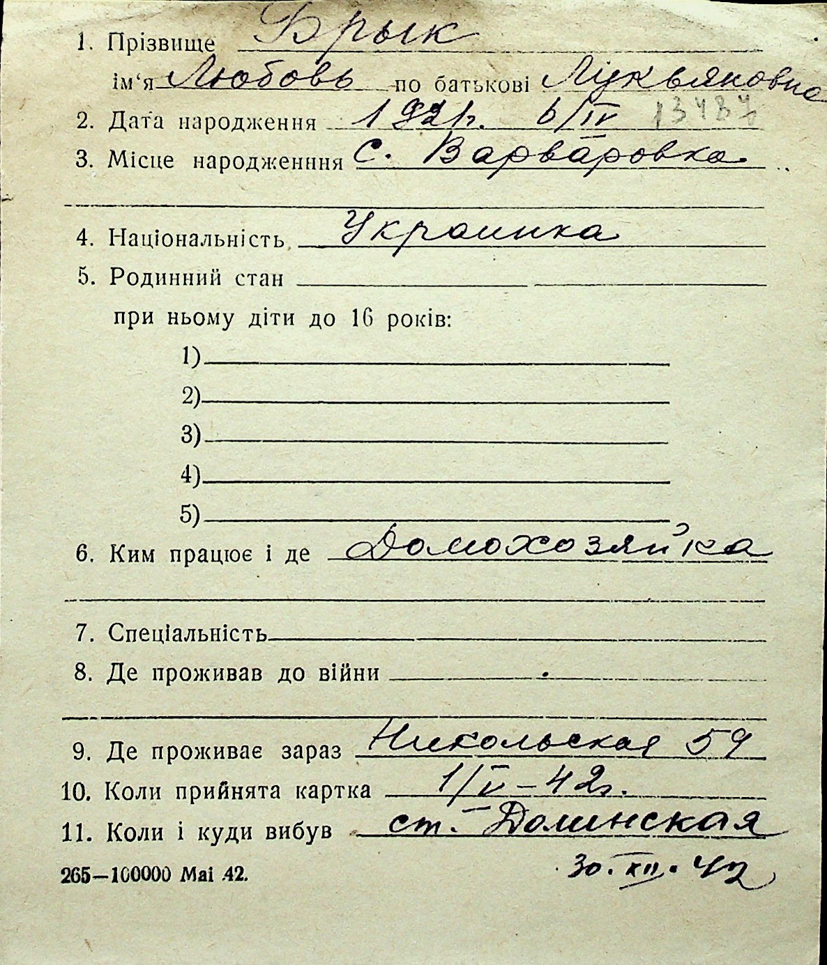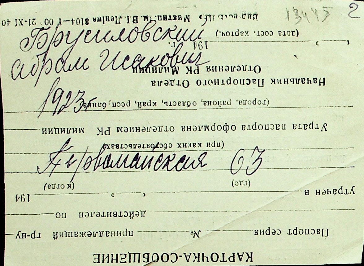 ◦ ◦ Перелік карток на осіб, які мешкали у м. Миколаїв у період окупації 1941–1944 років