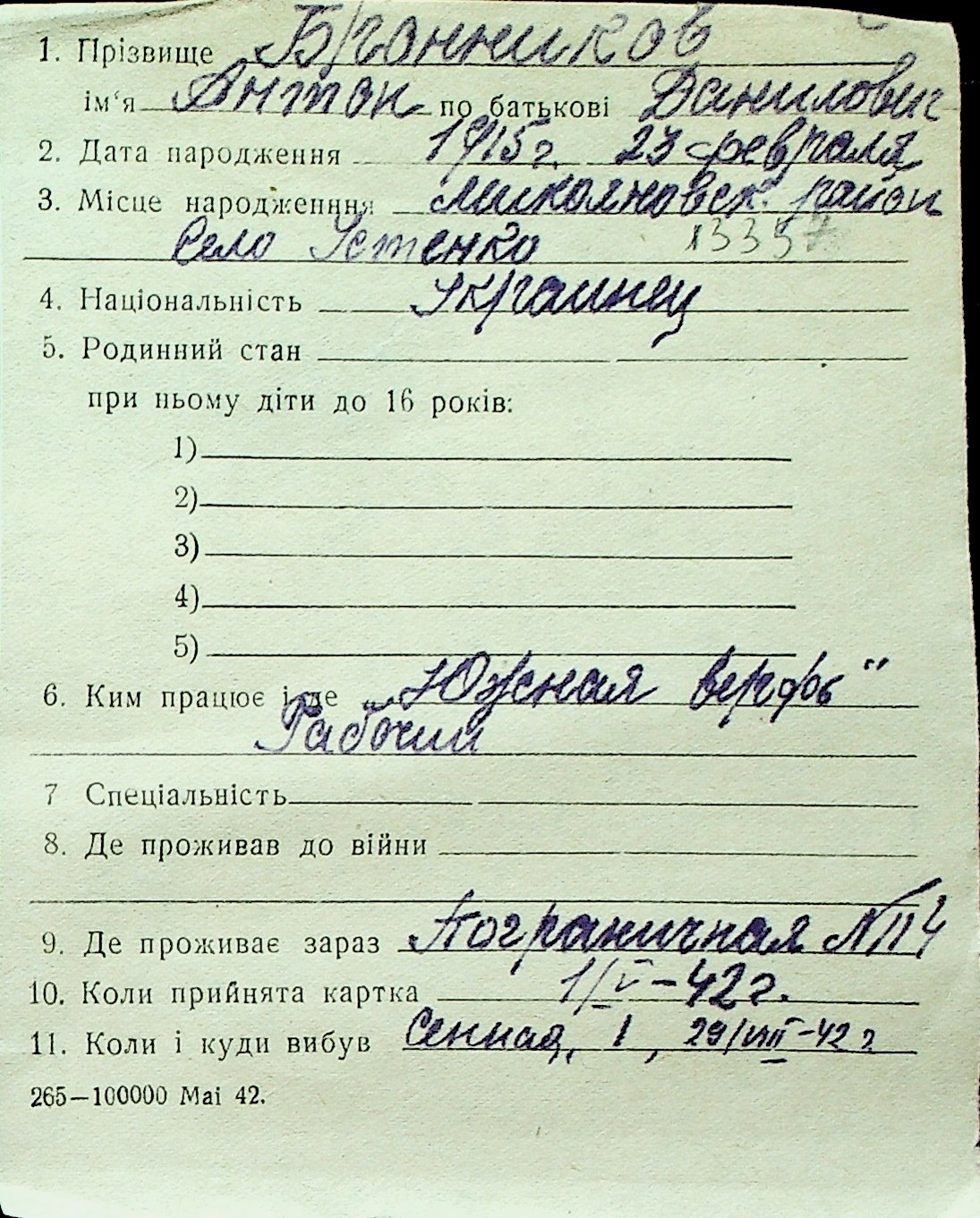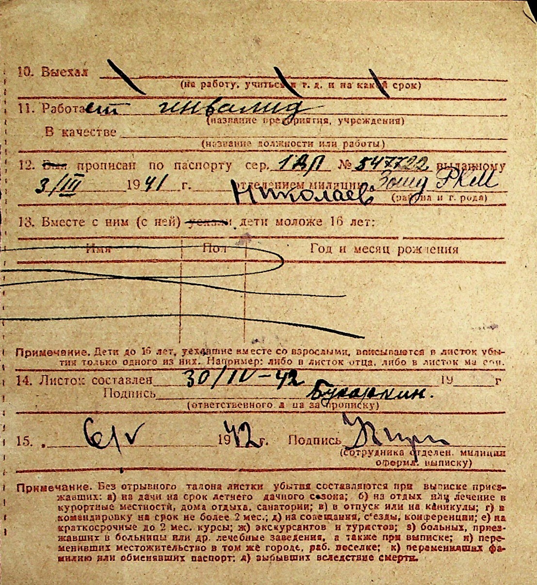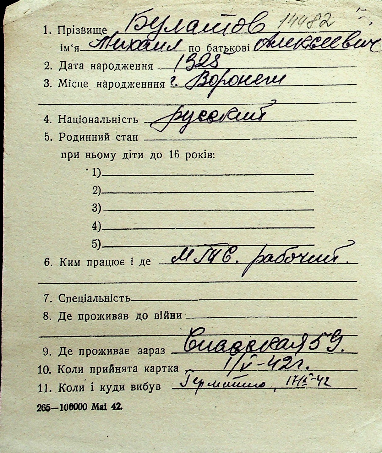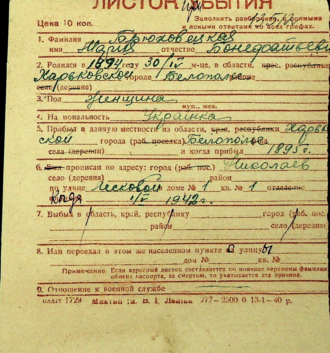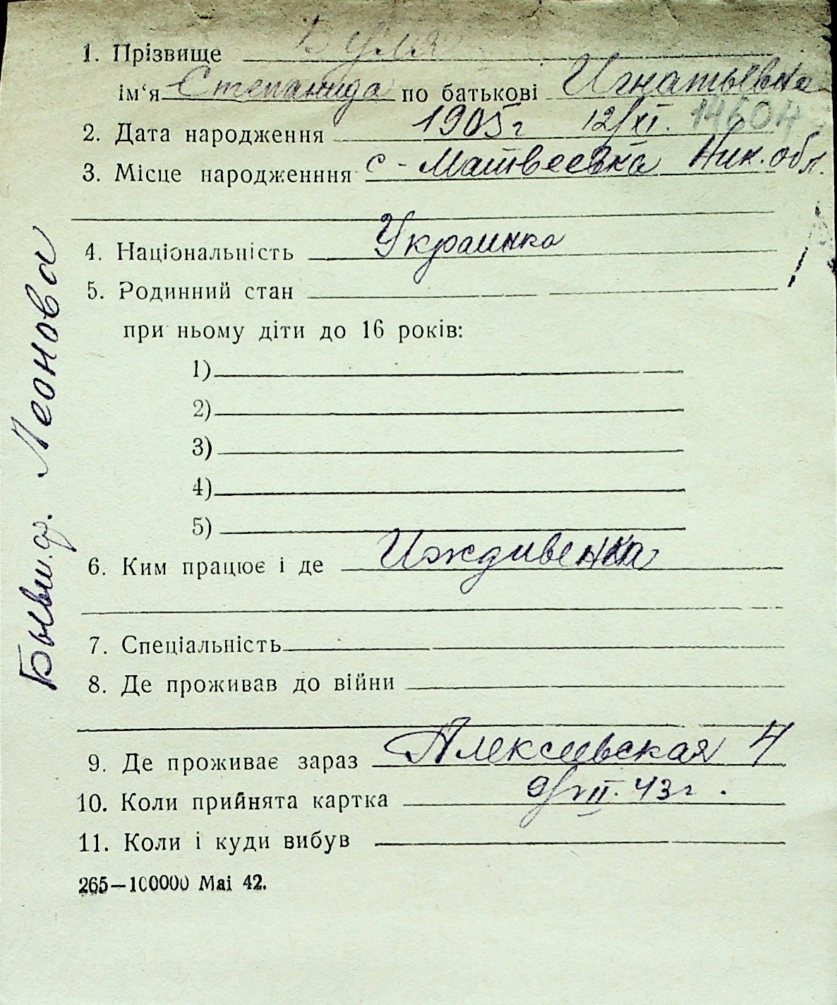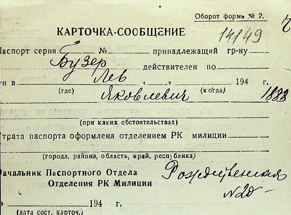 ◦ ◦ Перелік карток на осіб, які мешкали у м. Миколаїв у період окупації 1941–1944 років