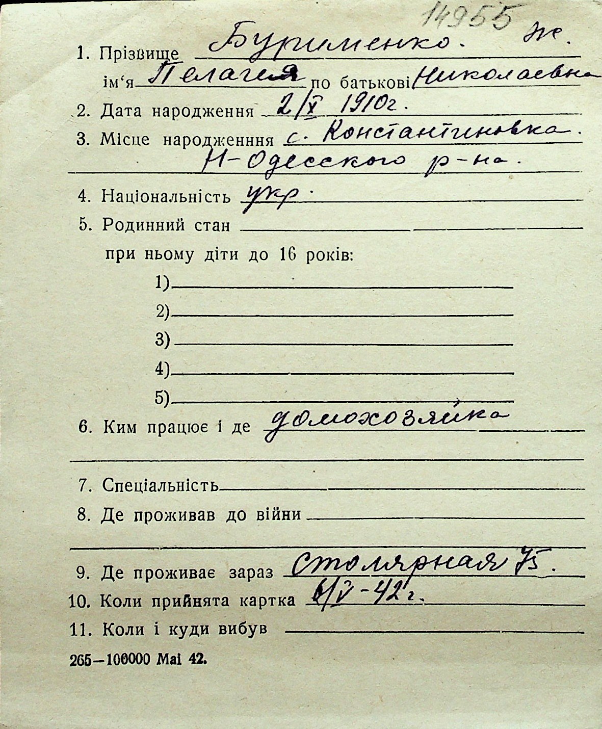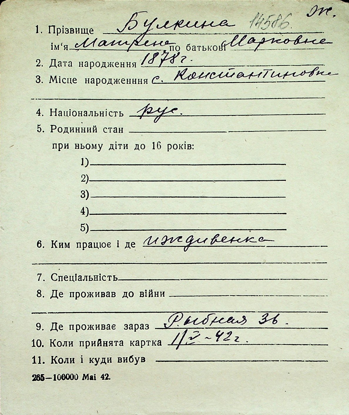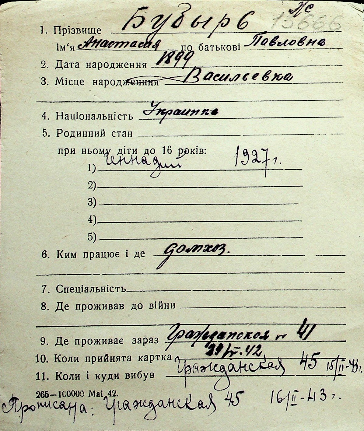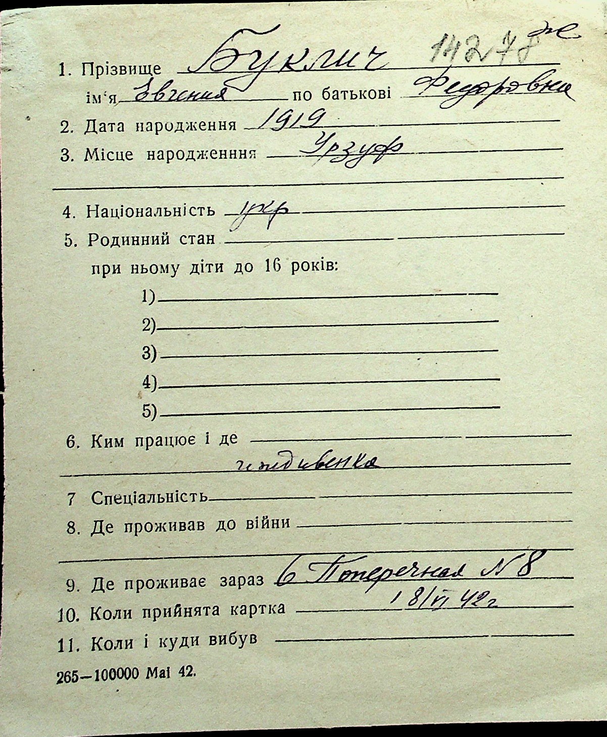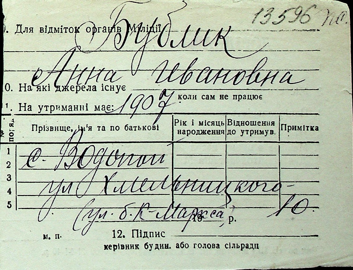 ◦ ◦ Перелік карток на осіб, які мешкали у м. Миколаїв у період окупації 1941–1944 років