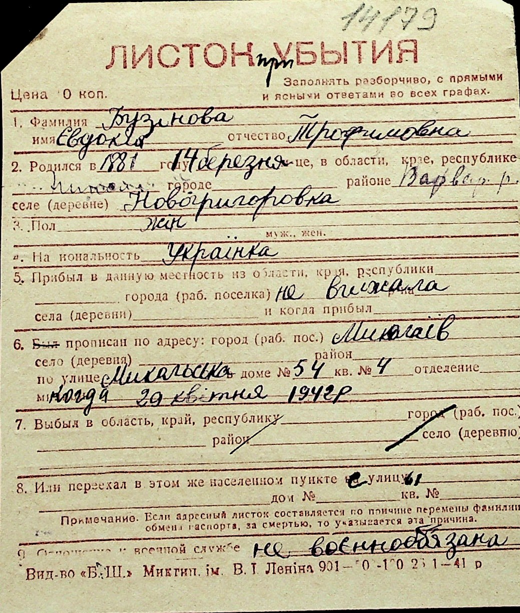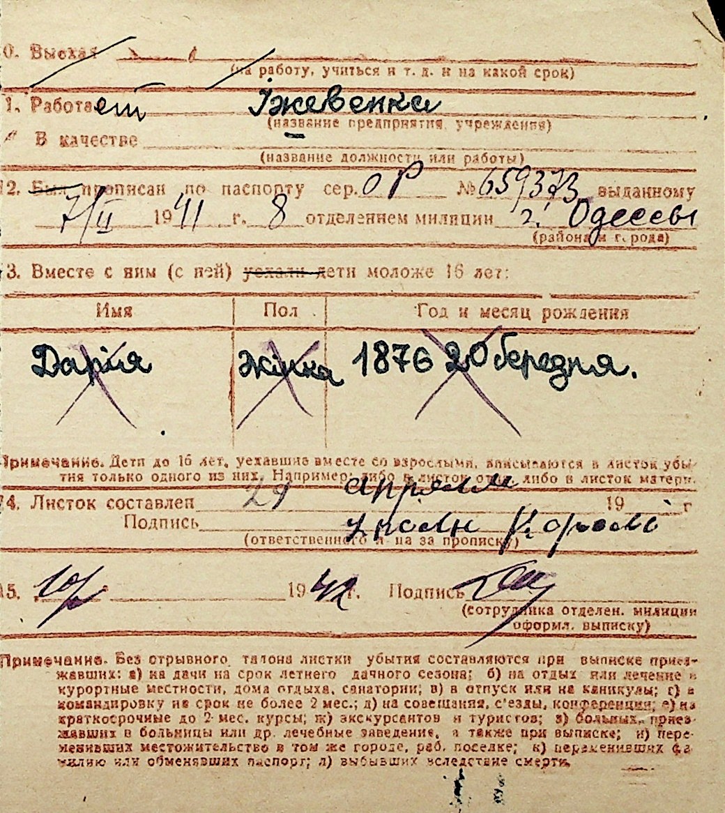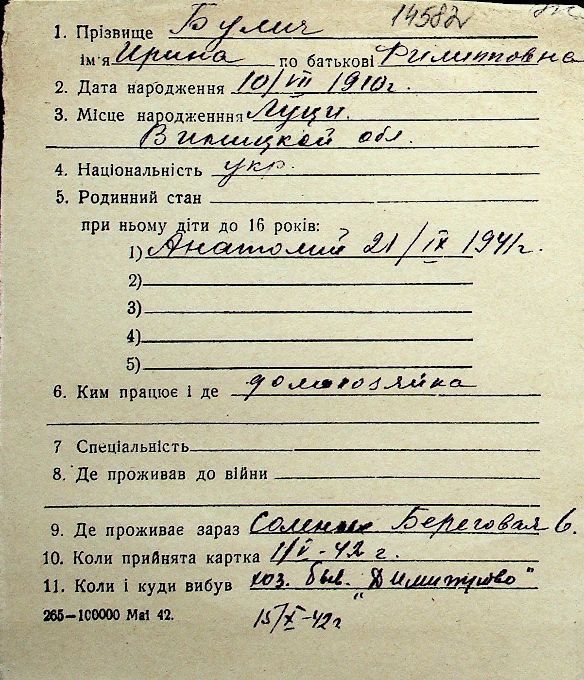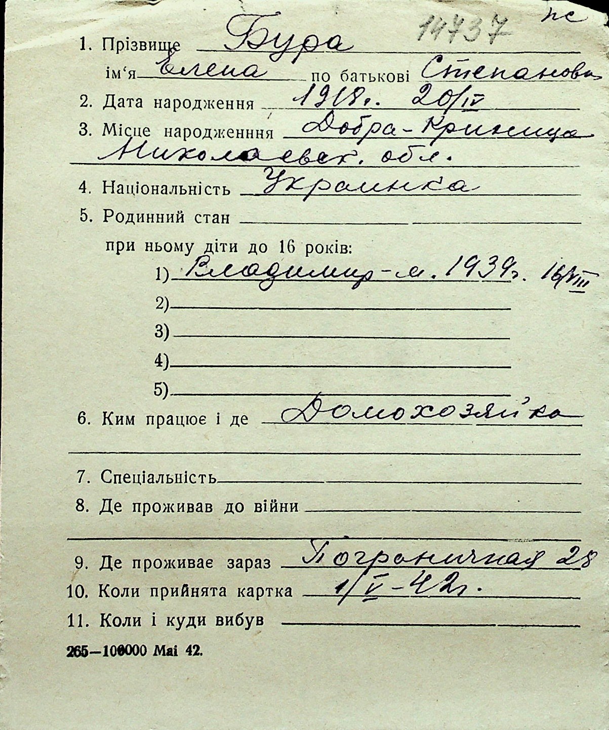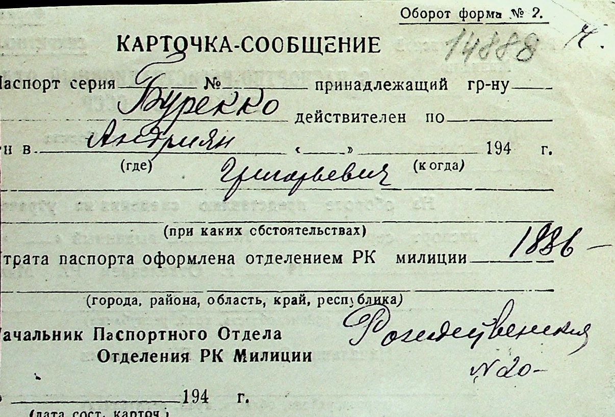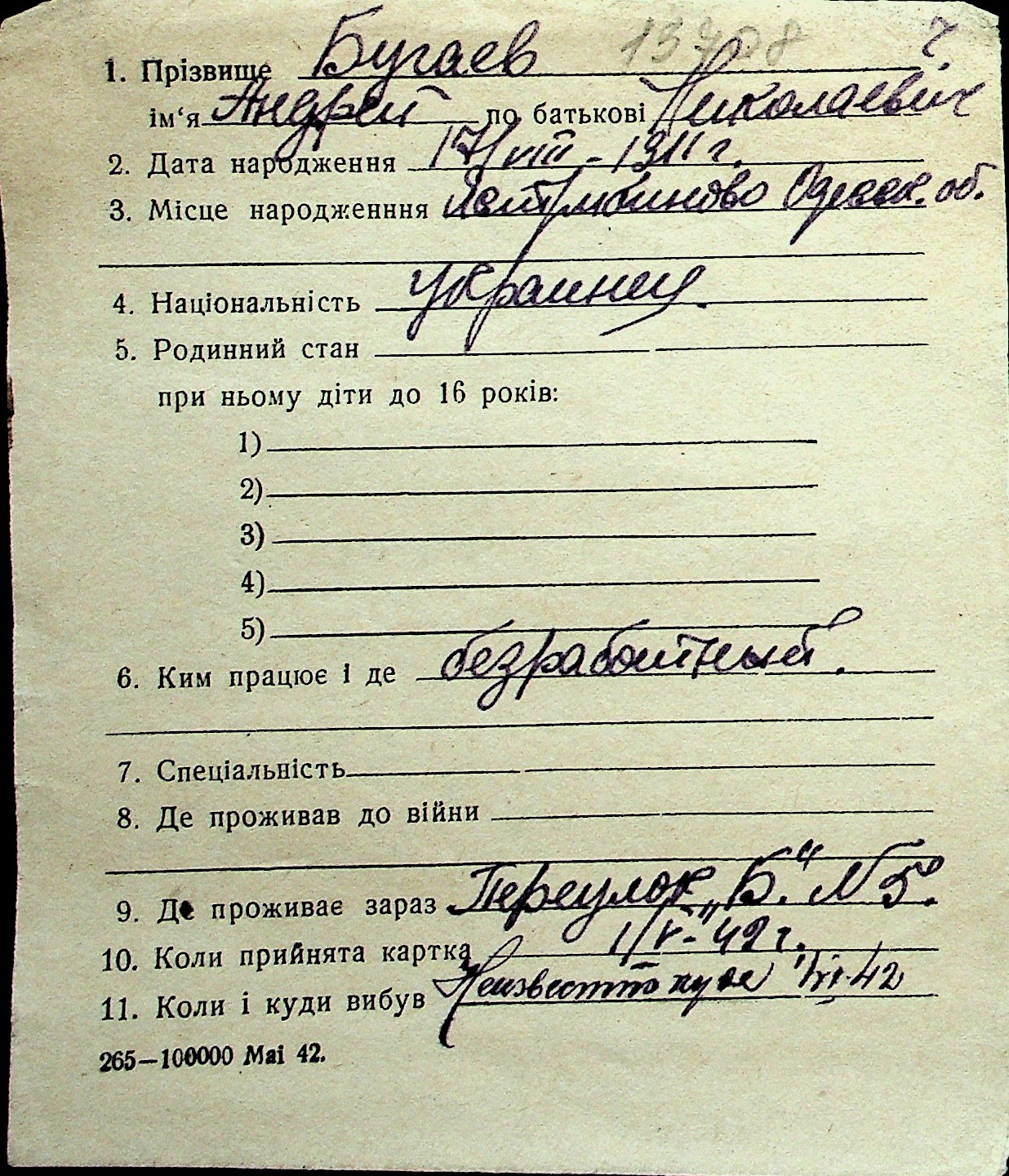 ◦ ◦ Перелік карток на осіб, які мешкали у м. Миколаїв у період окупації 1941–1944 років