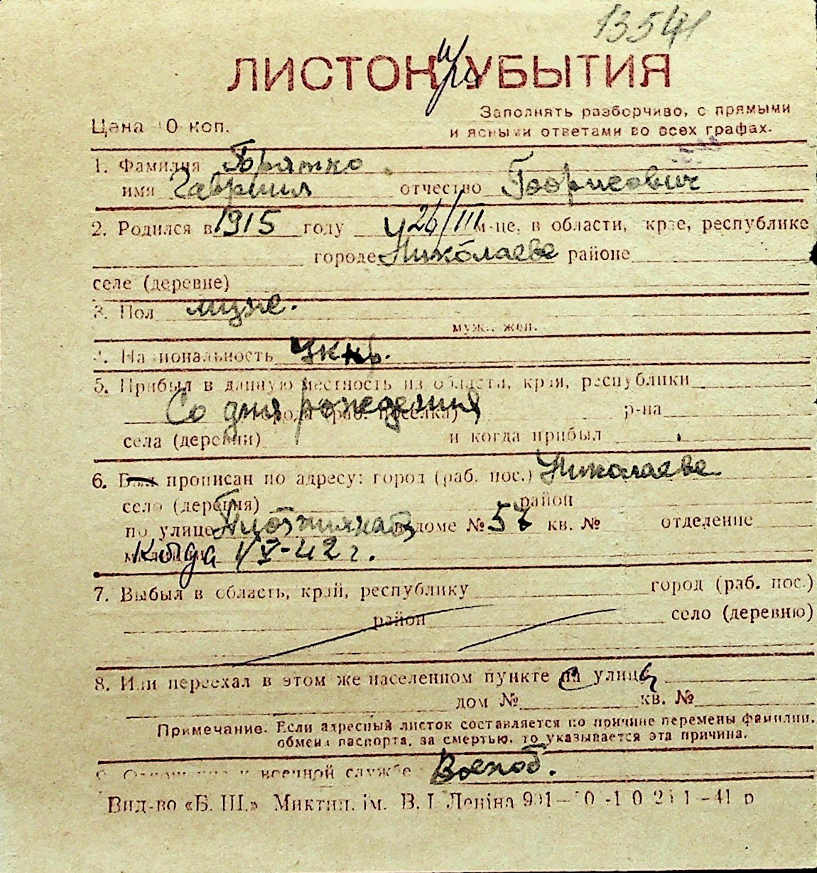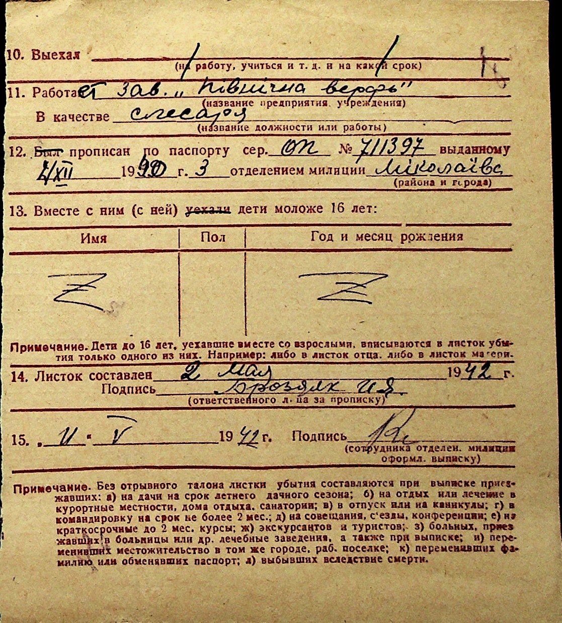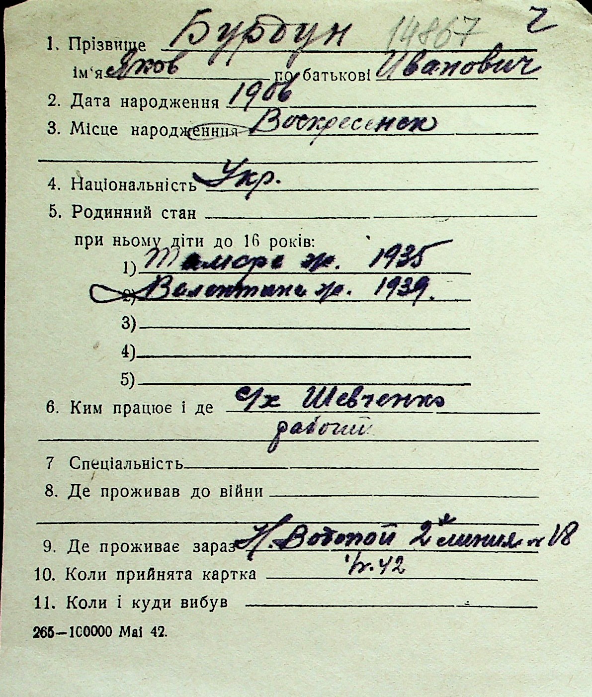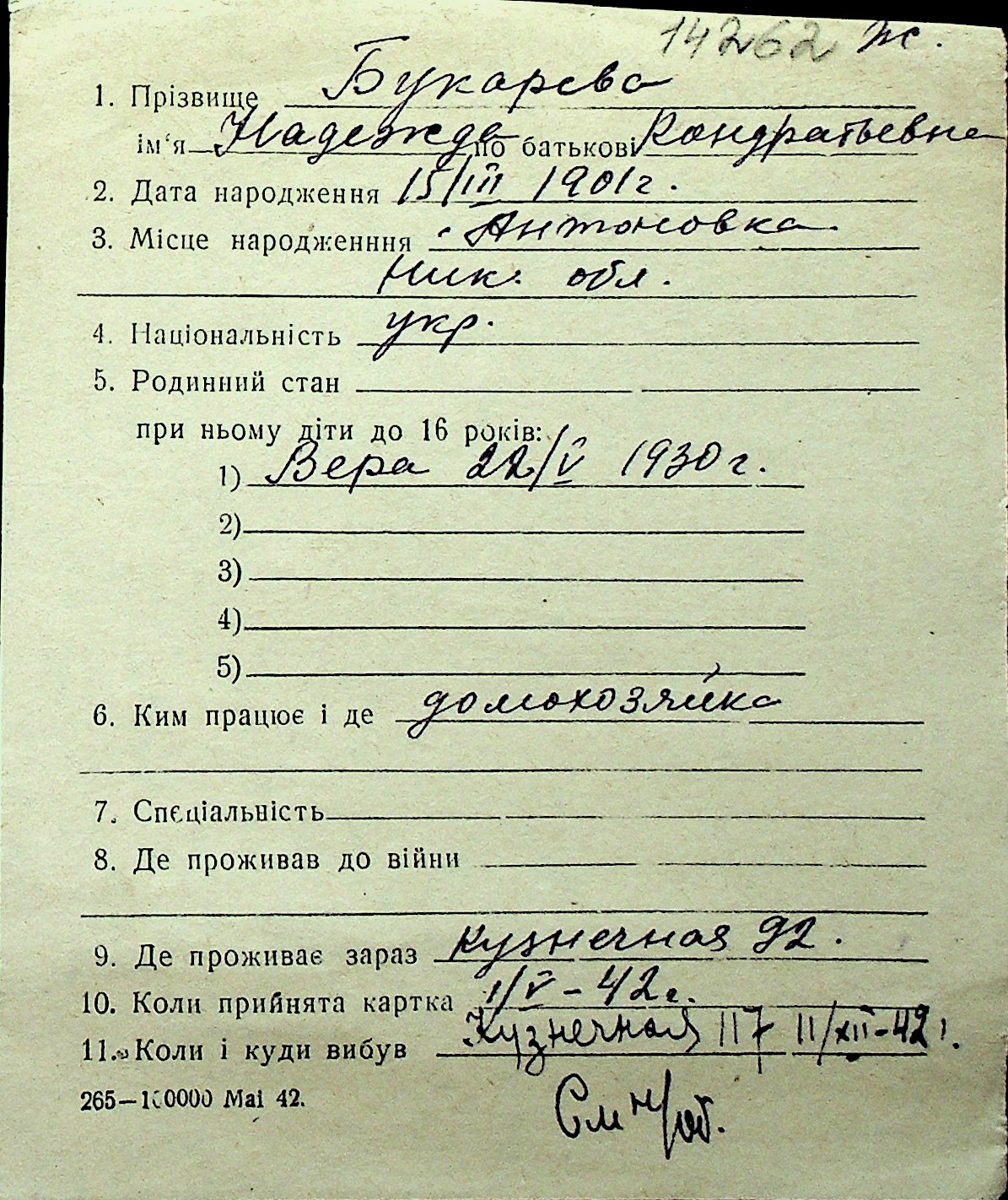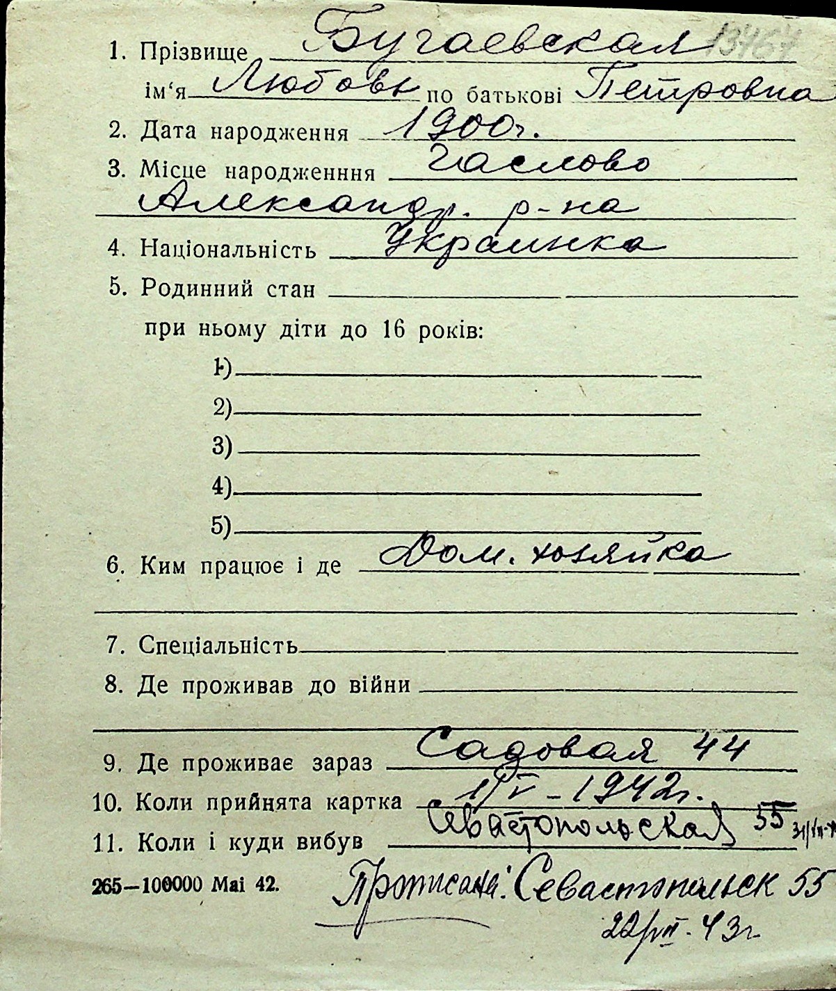 ◦ ◦ Перелік карток на осіб, які мешкали у м. Миколаїв у період окупації 1941–1944 років