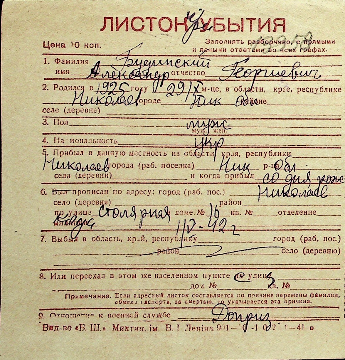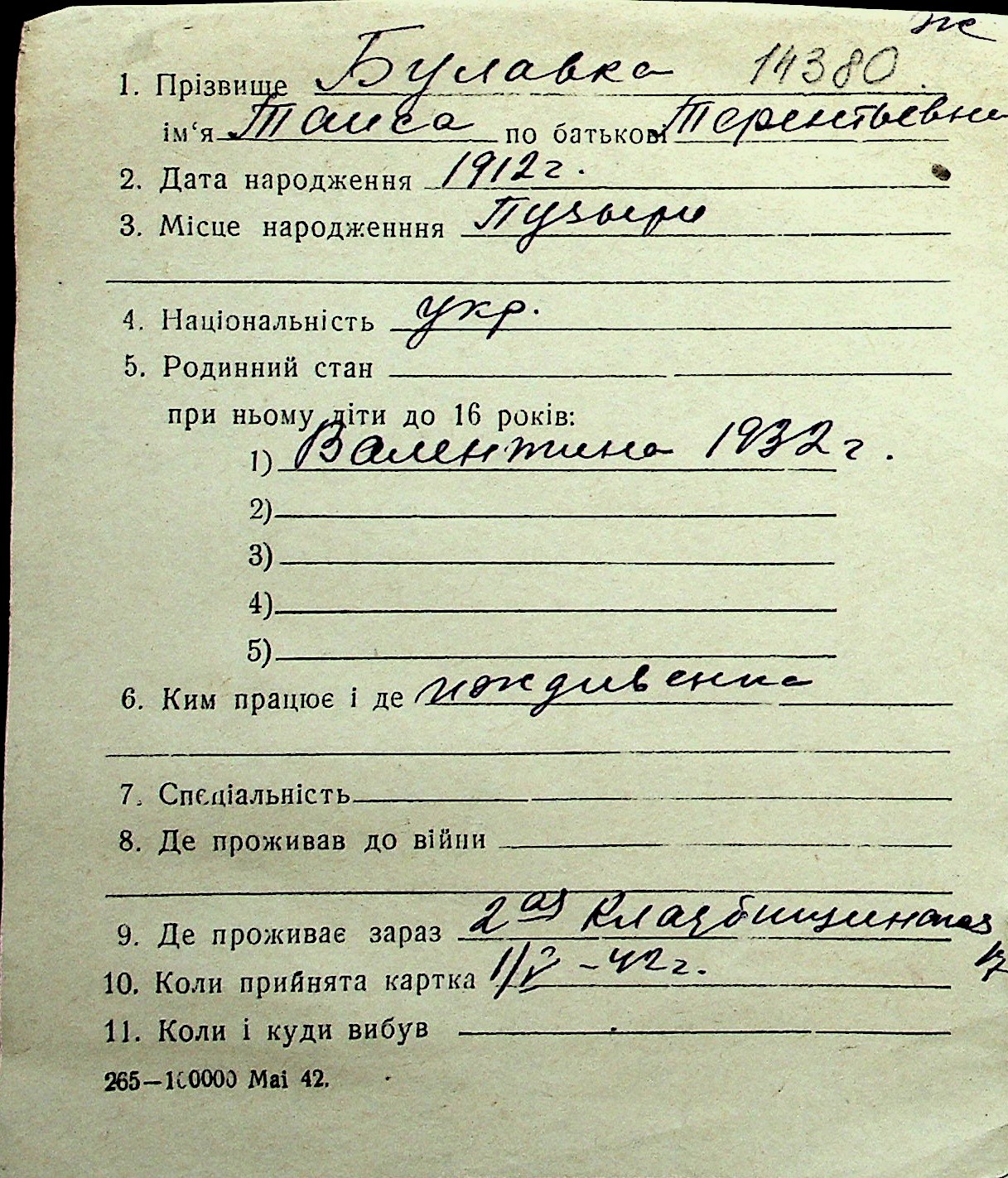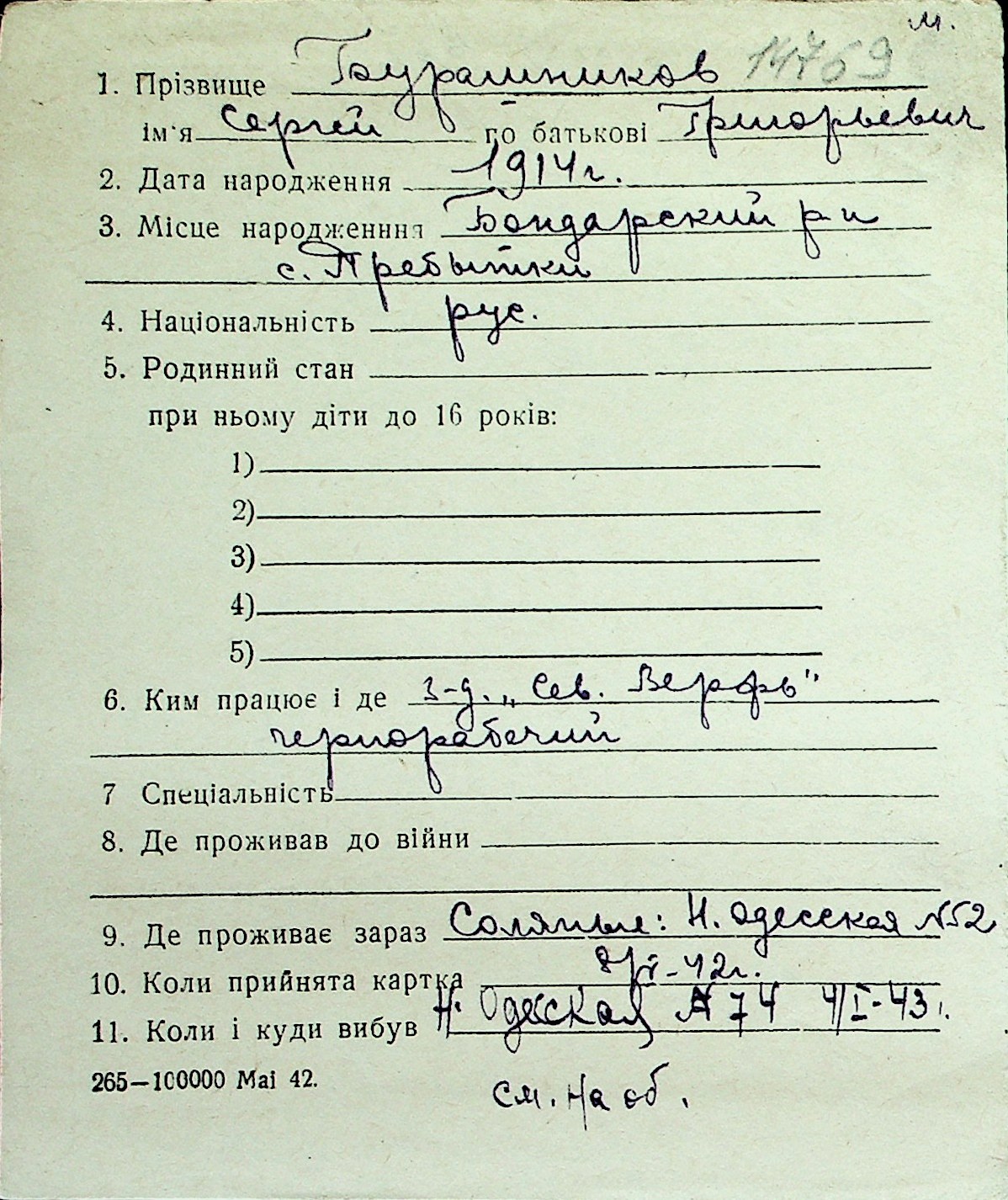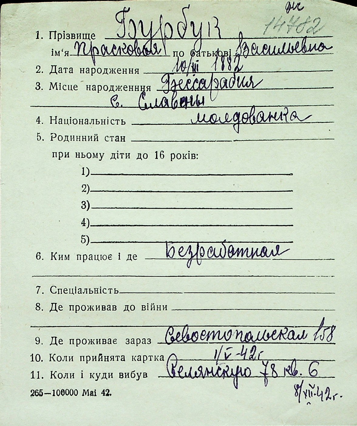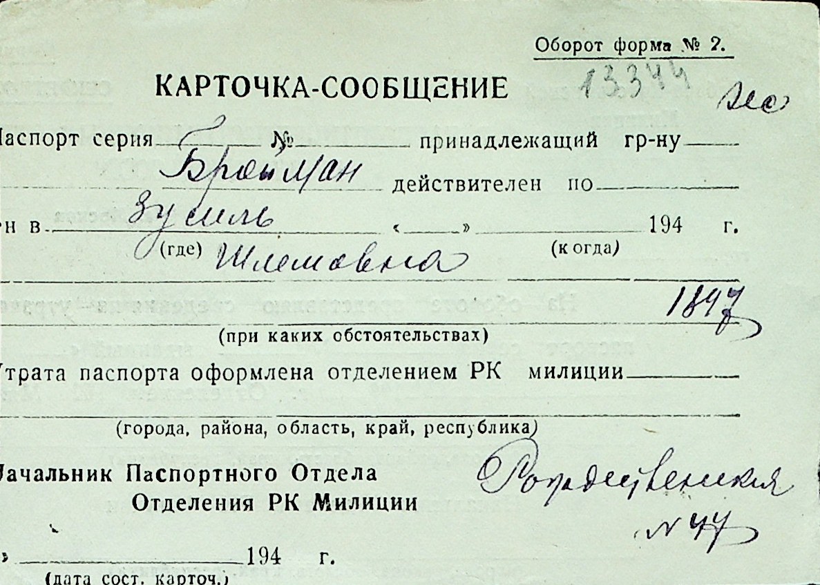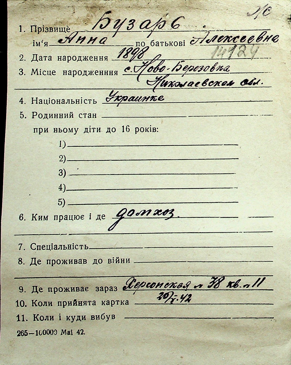 ◦ ◦ Перелік карток на осіб, які мешкали у м. Миколаїв у період окупації 1941–1944 років