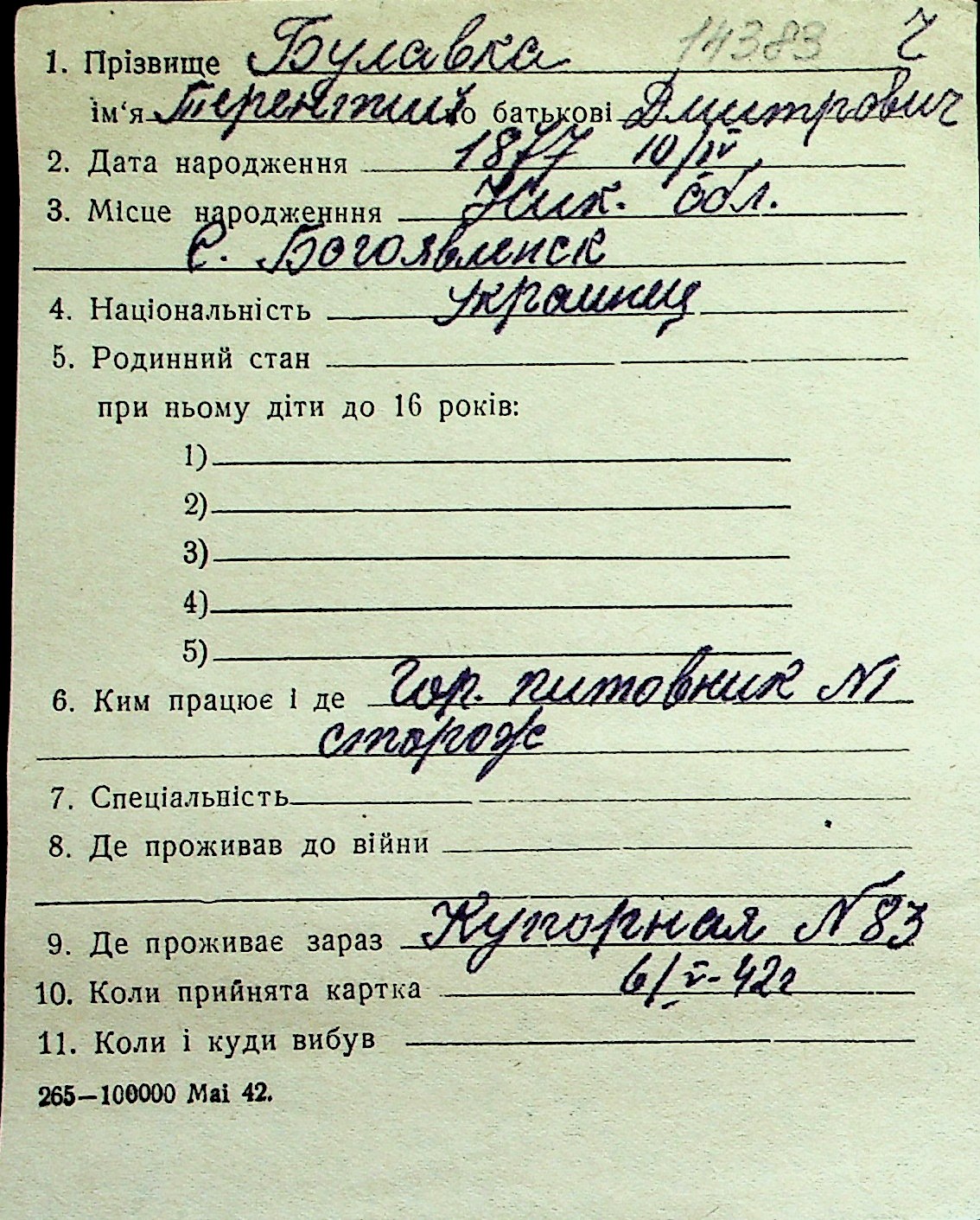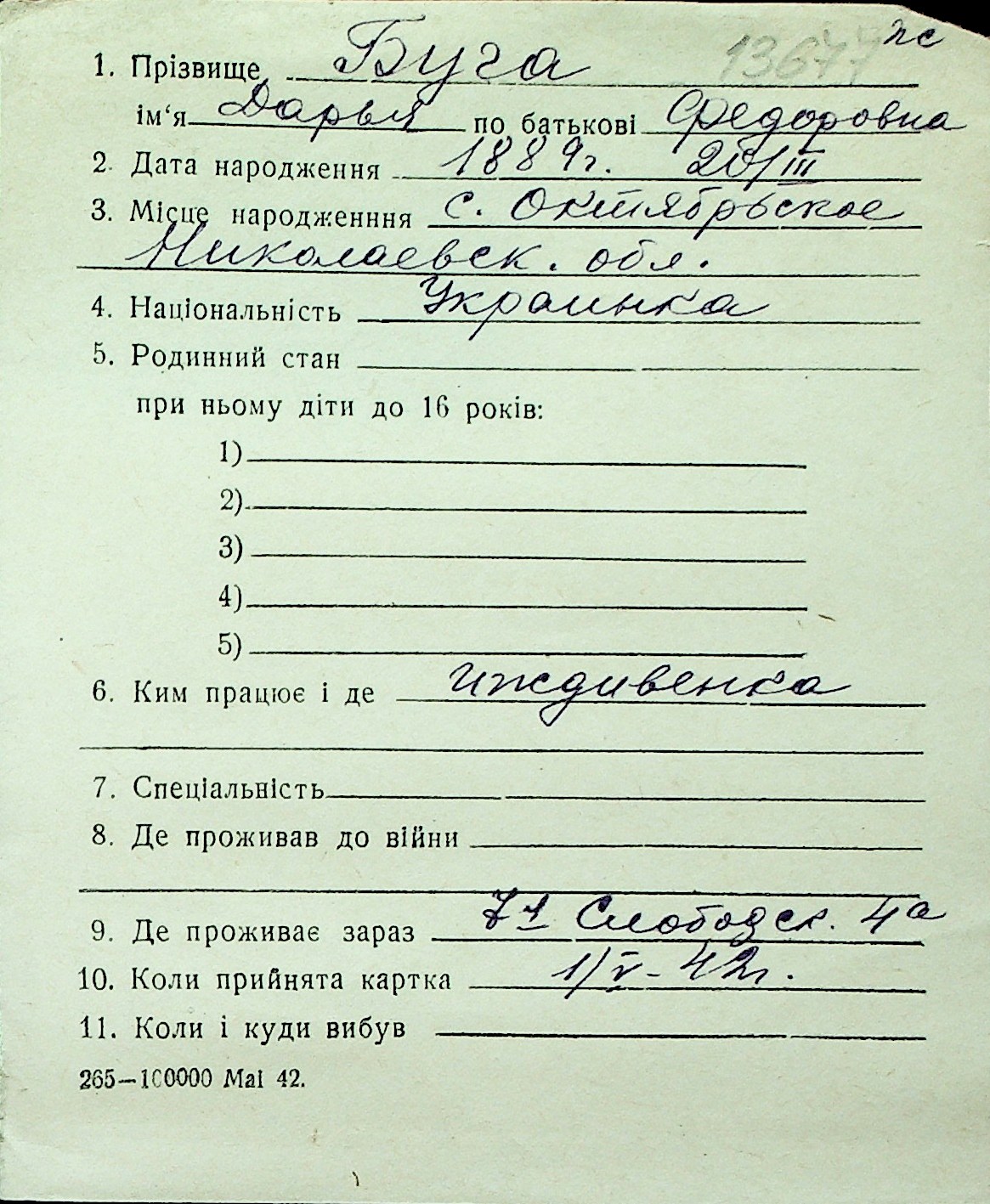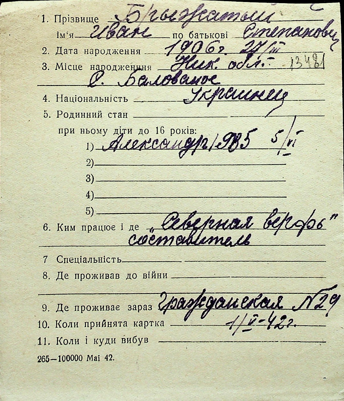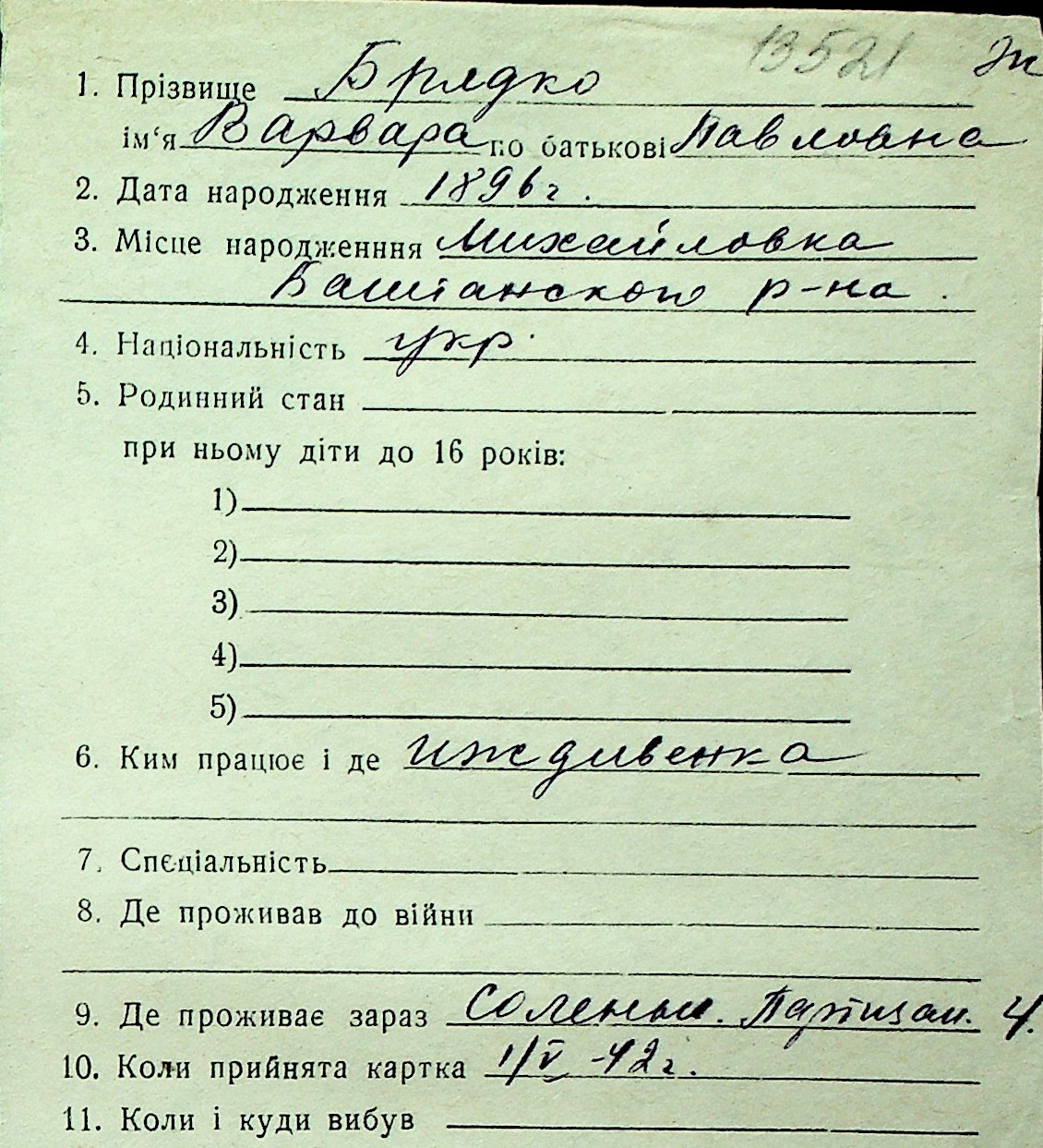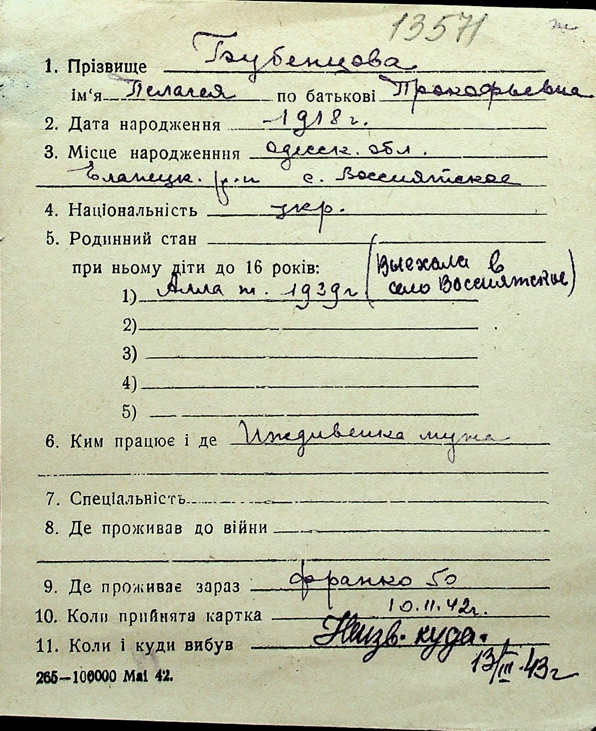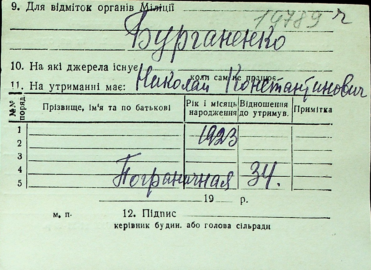 ◦ ◦ Перелік карток на осіб, які мешкали у м. Миколаїв у період окупації 1941–1944 років