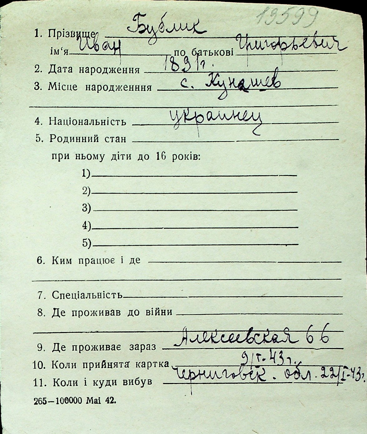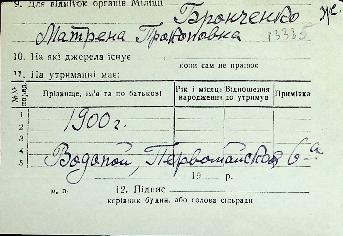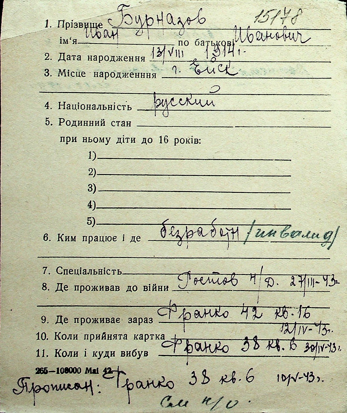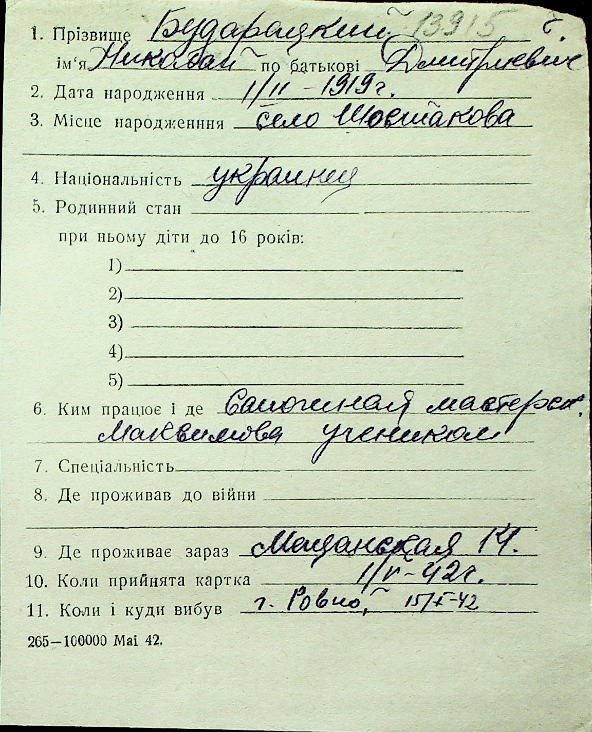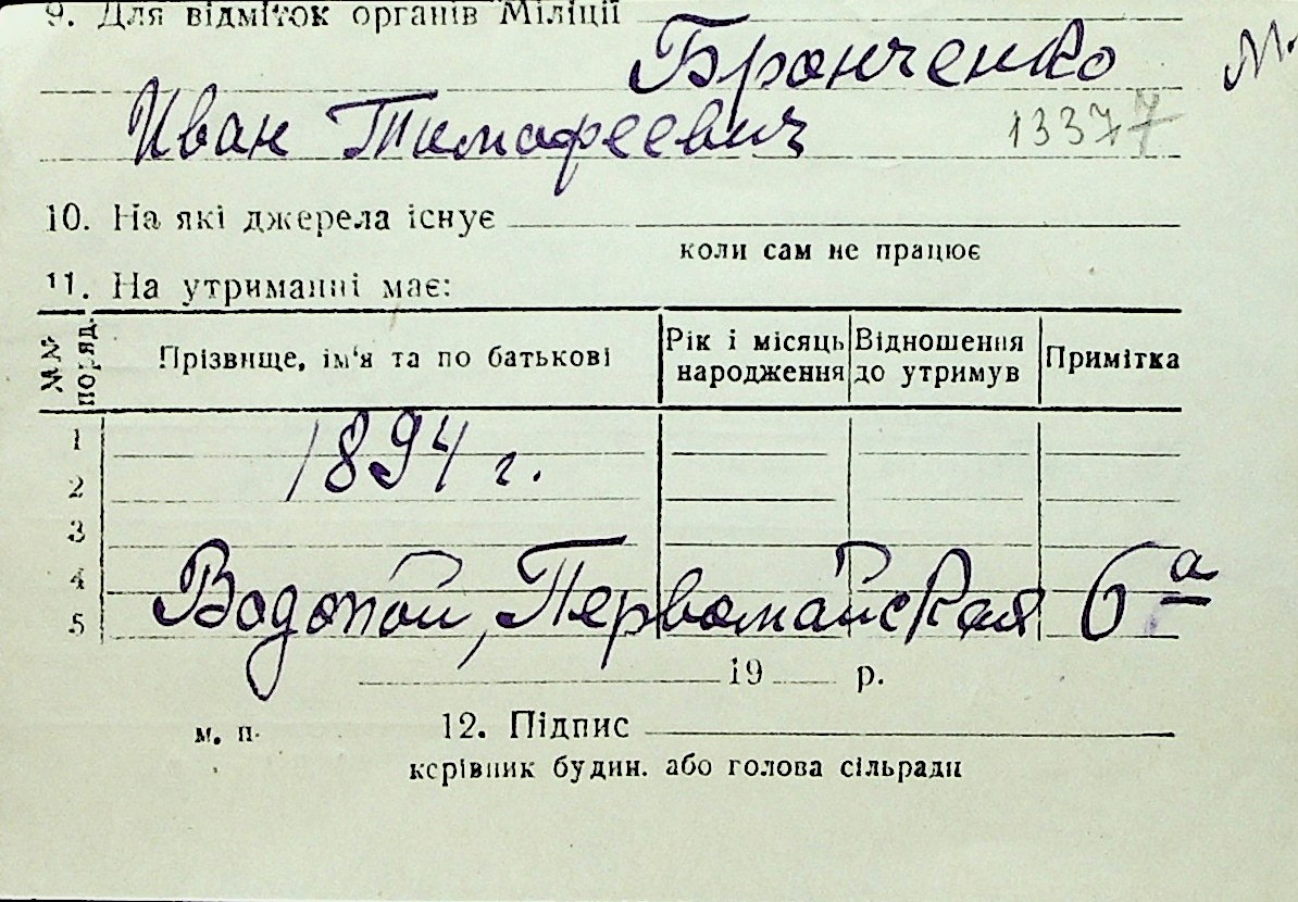◦ ◦ Перелік карток на осіб, які мешкали у м. Миколаїв у період окупації 1941–1944 років