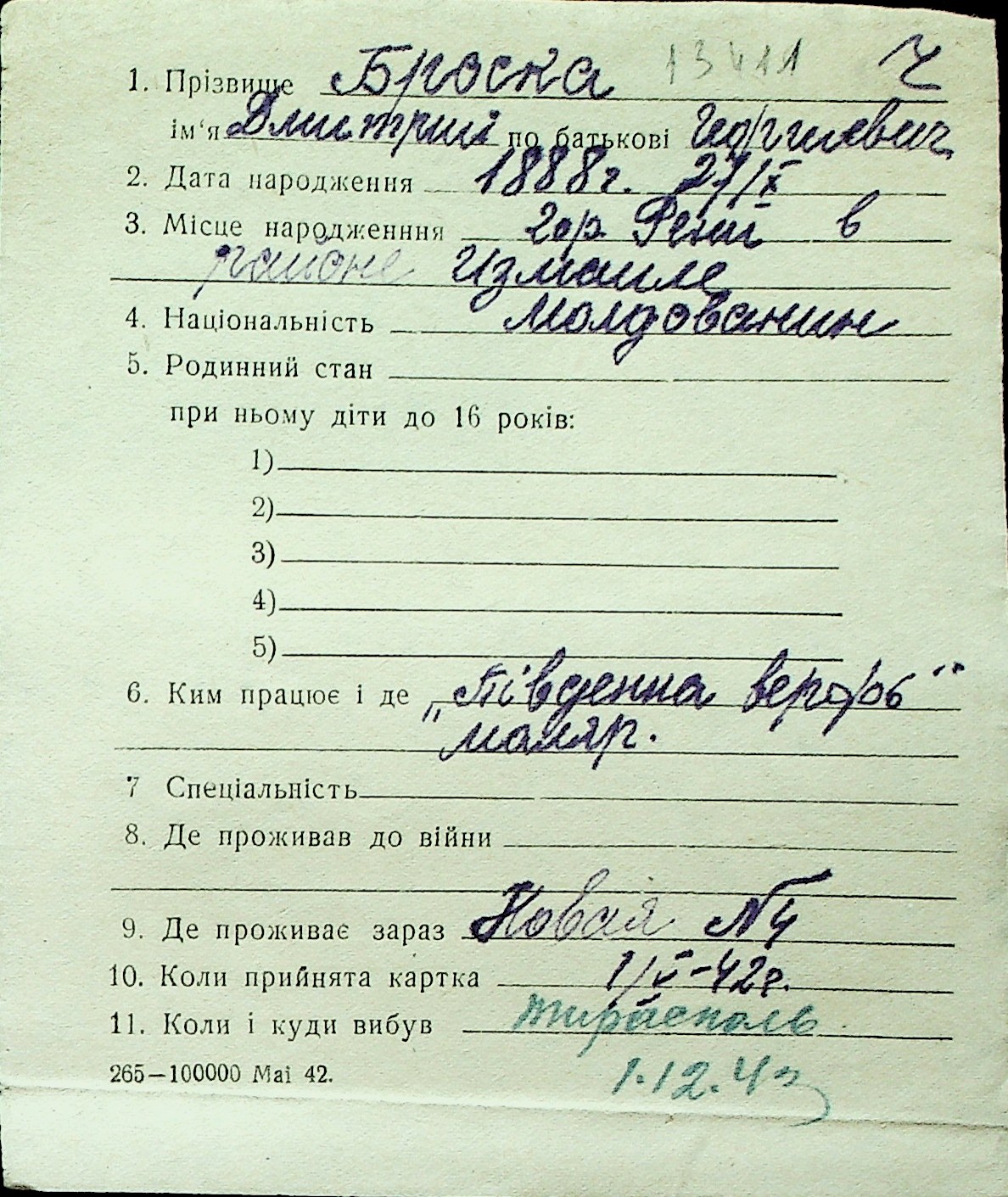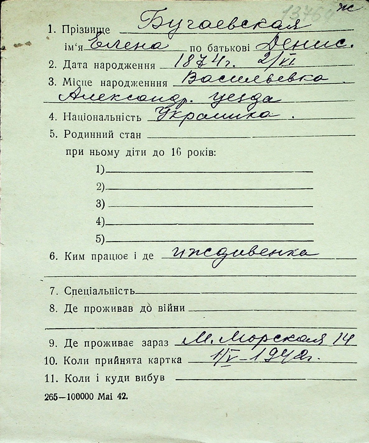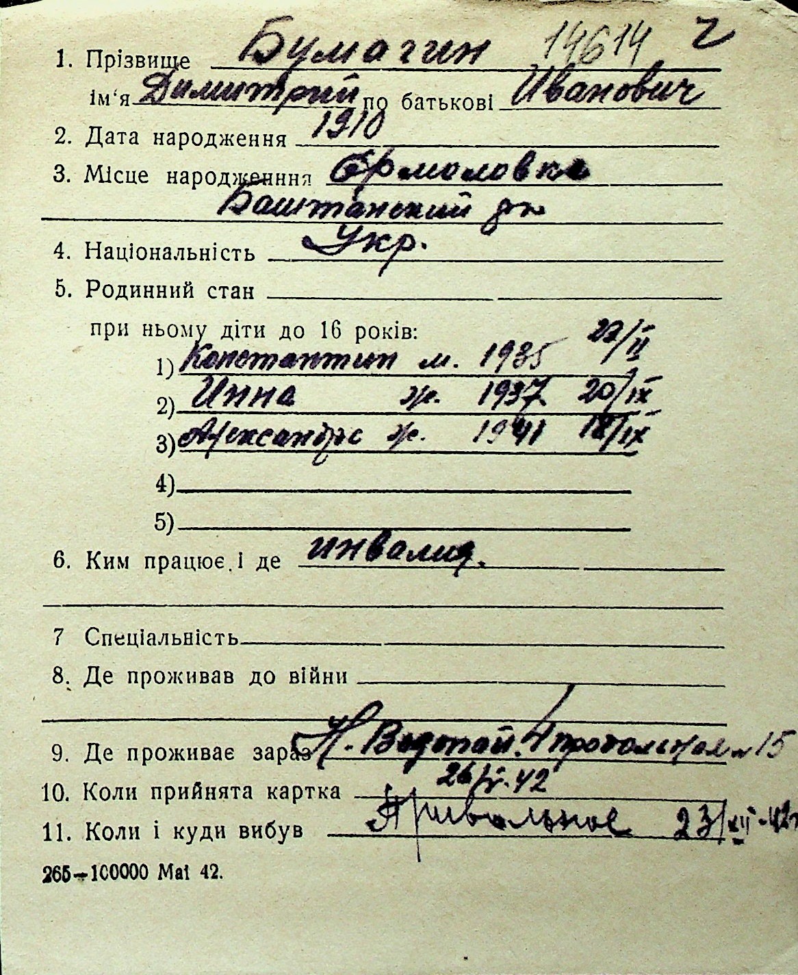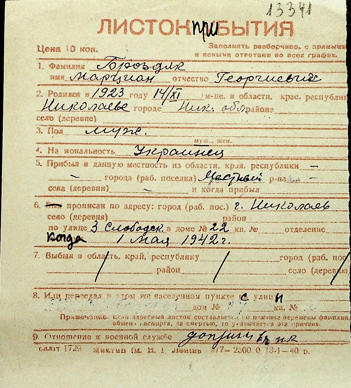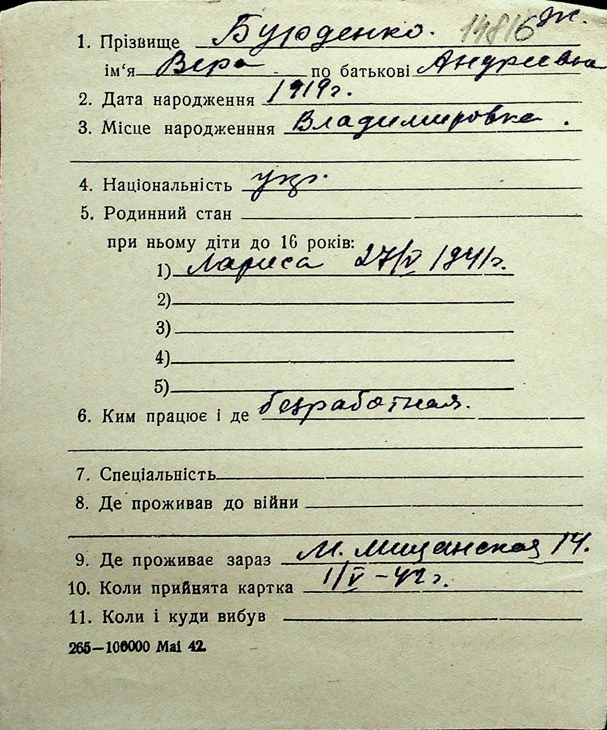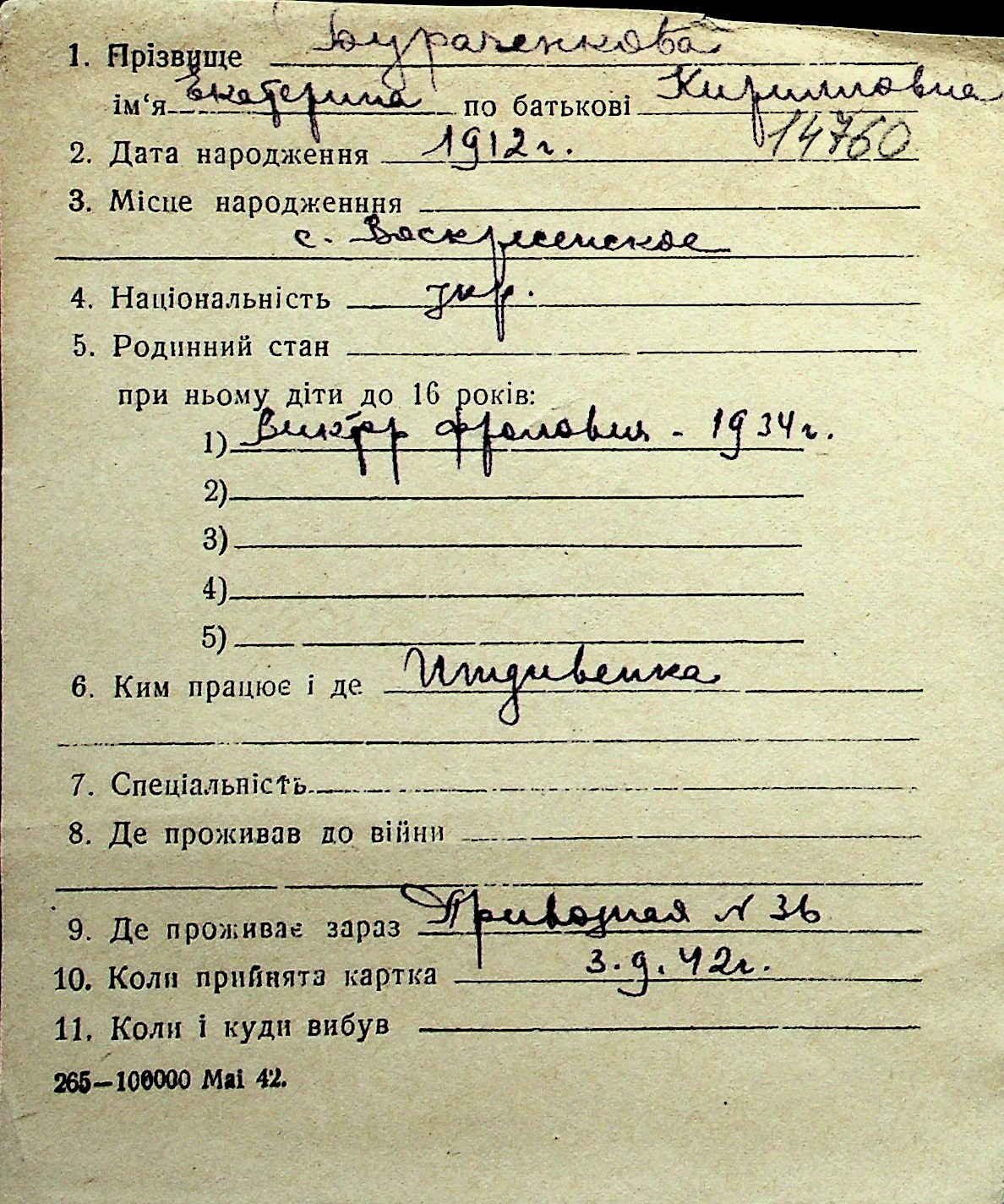 ◦ ◦ Перелік карток на осіб, які мешкали у м. Миколаїв у період окупації 1941–1944 років