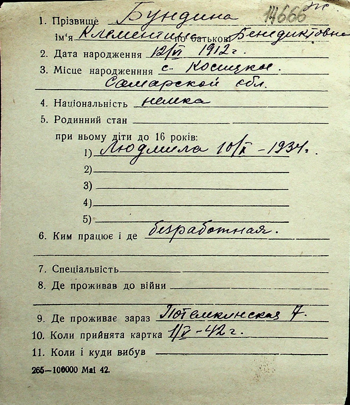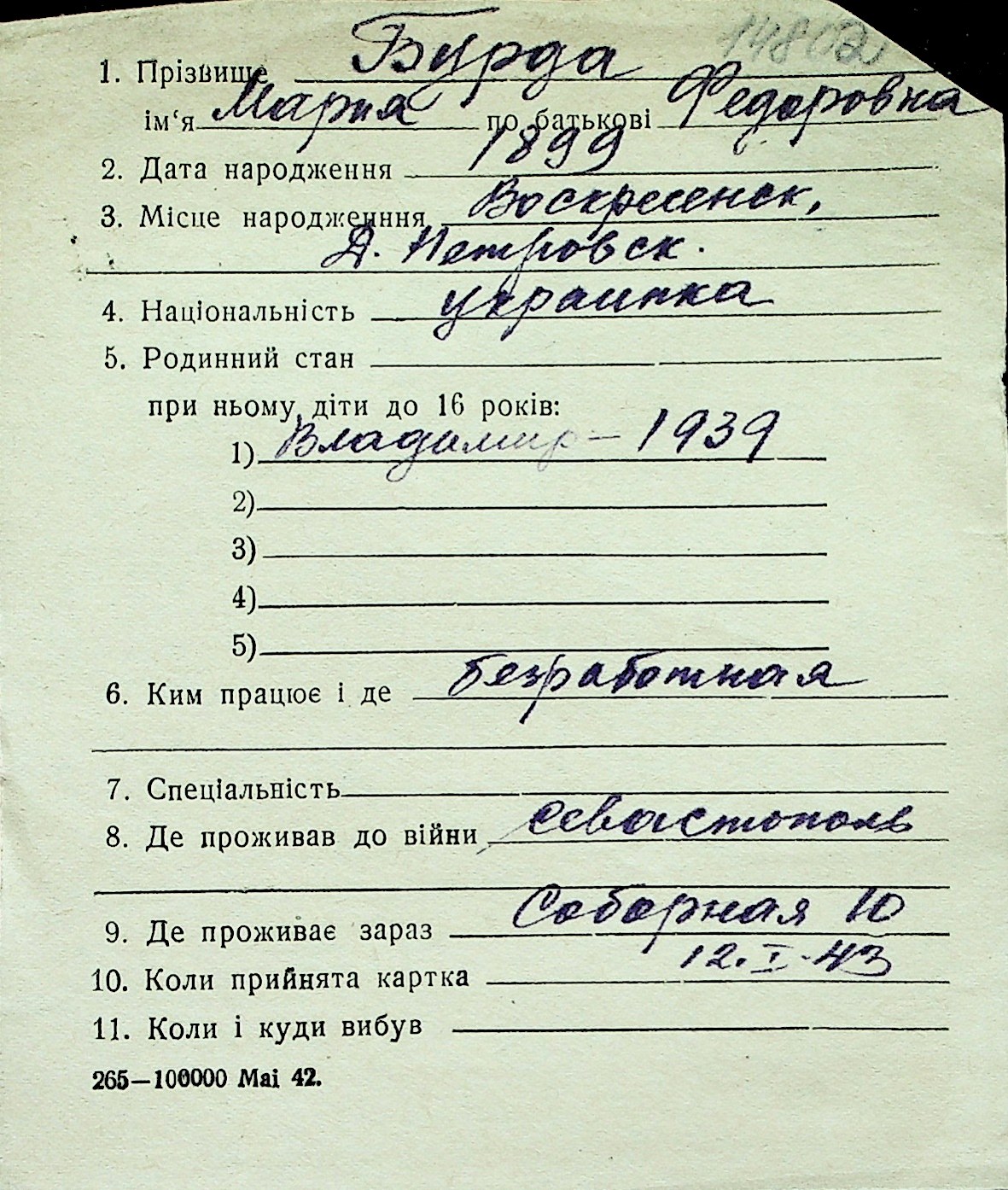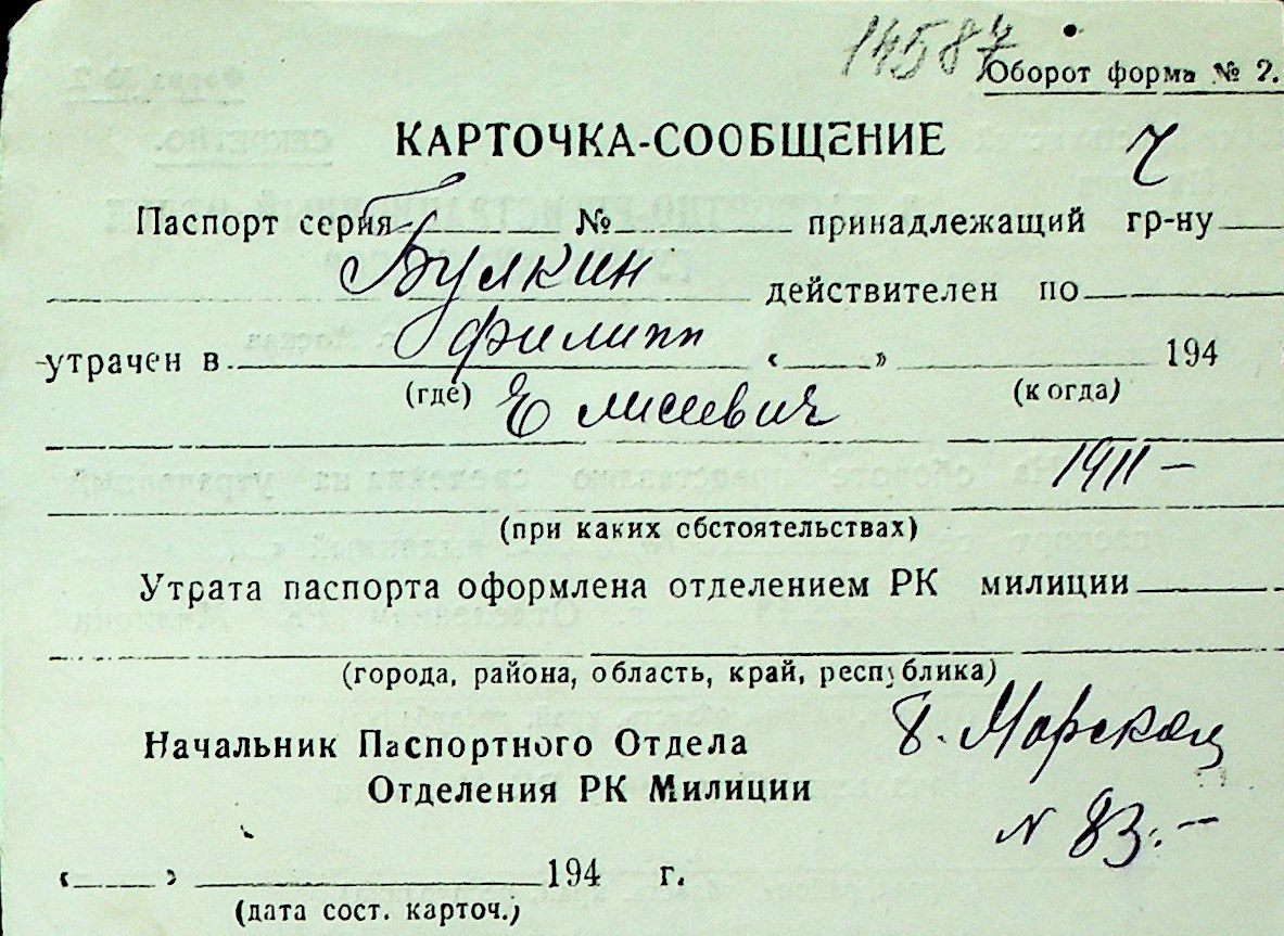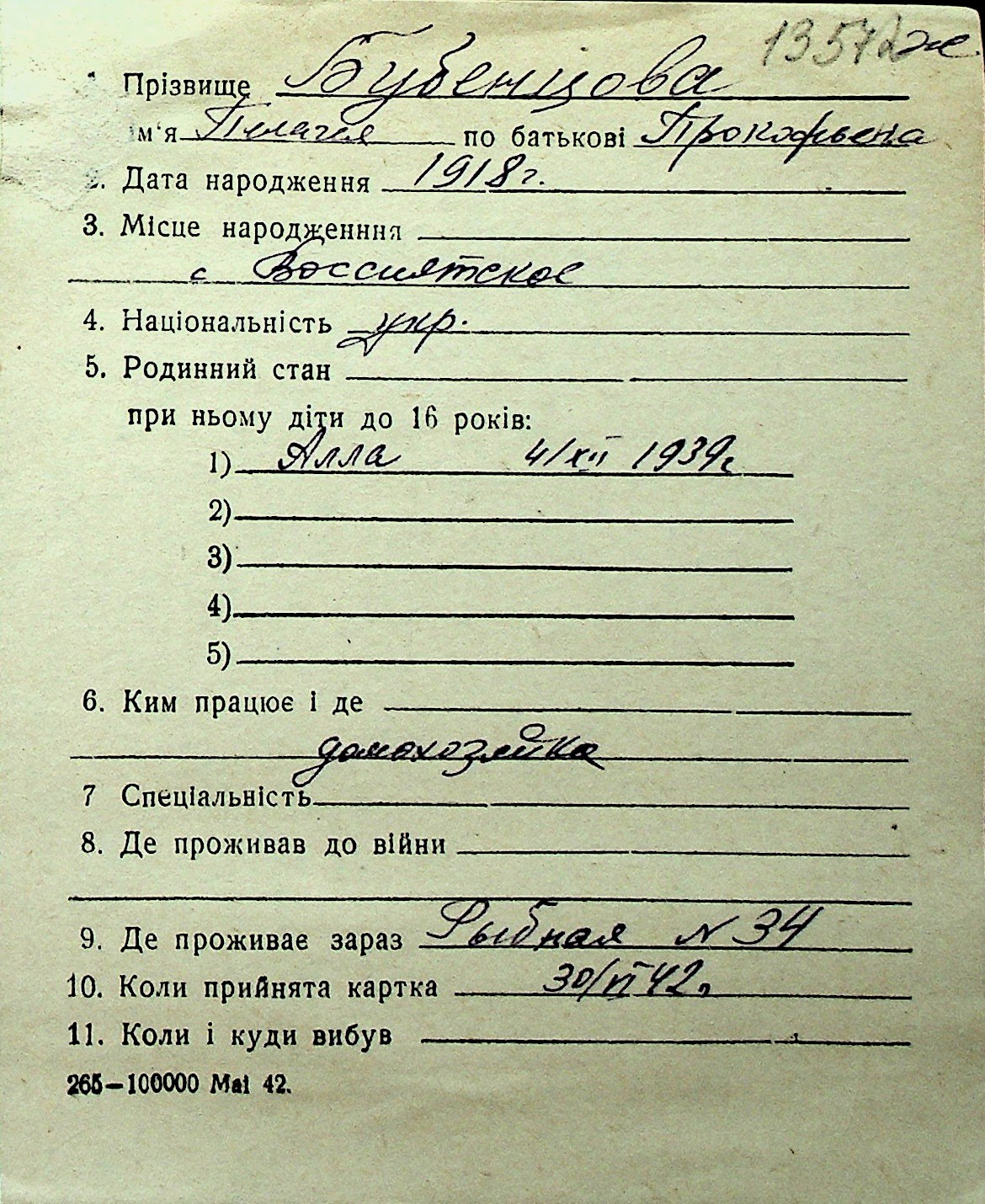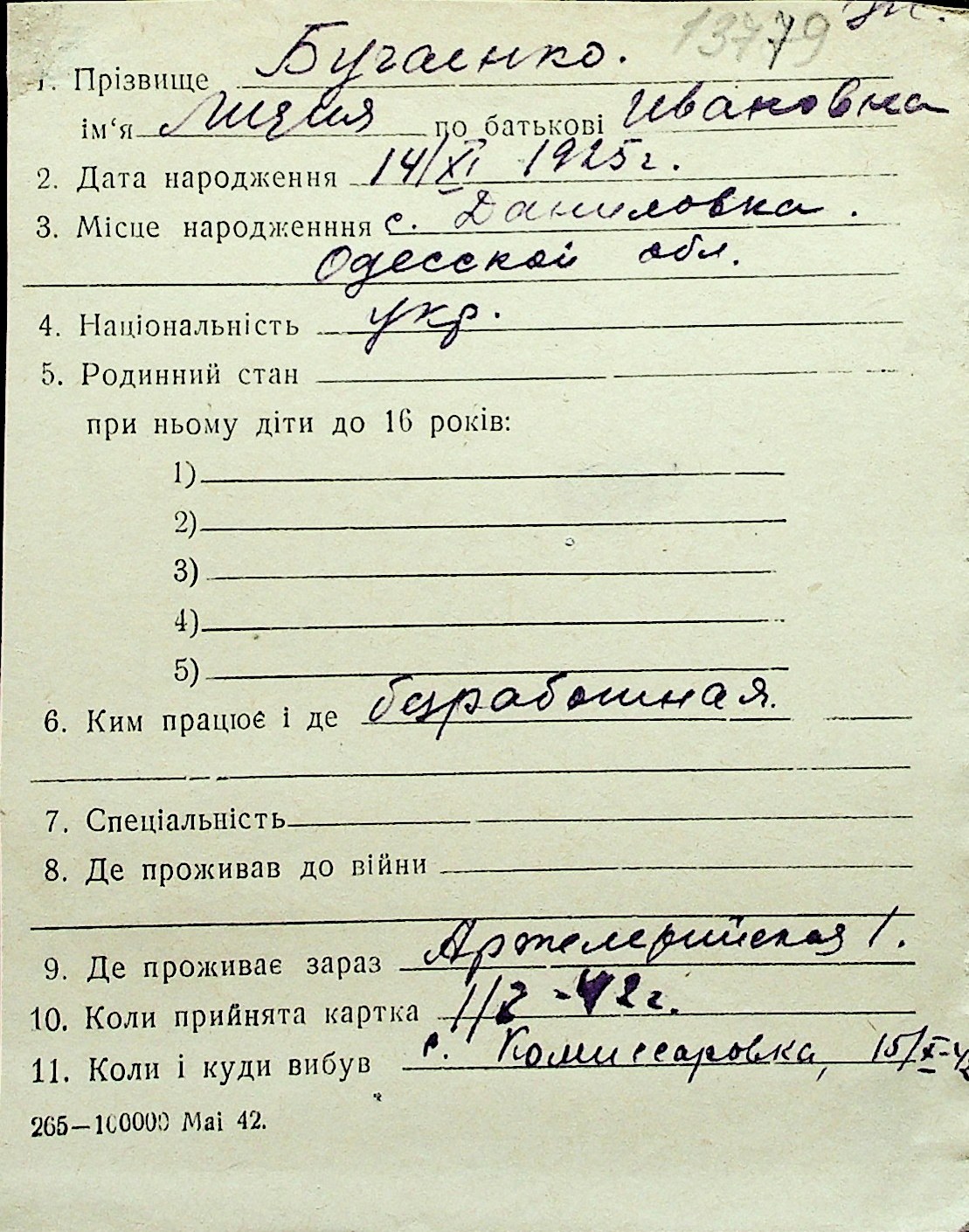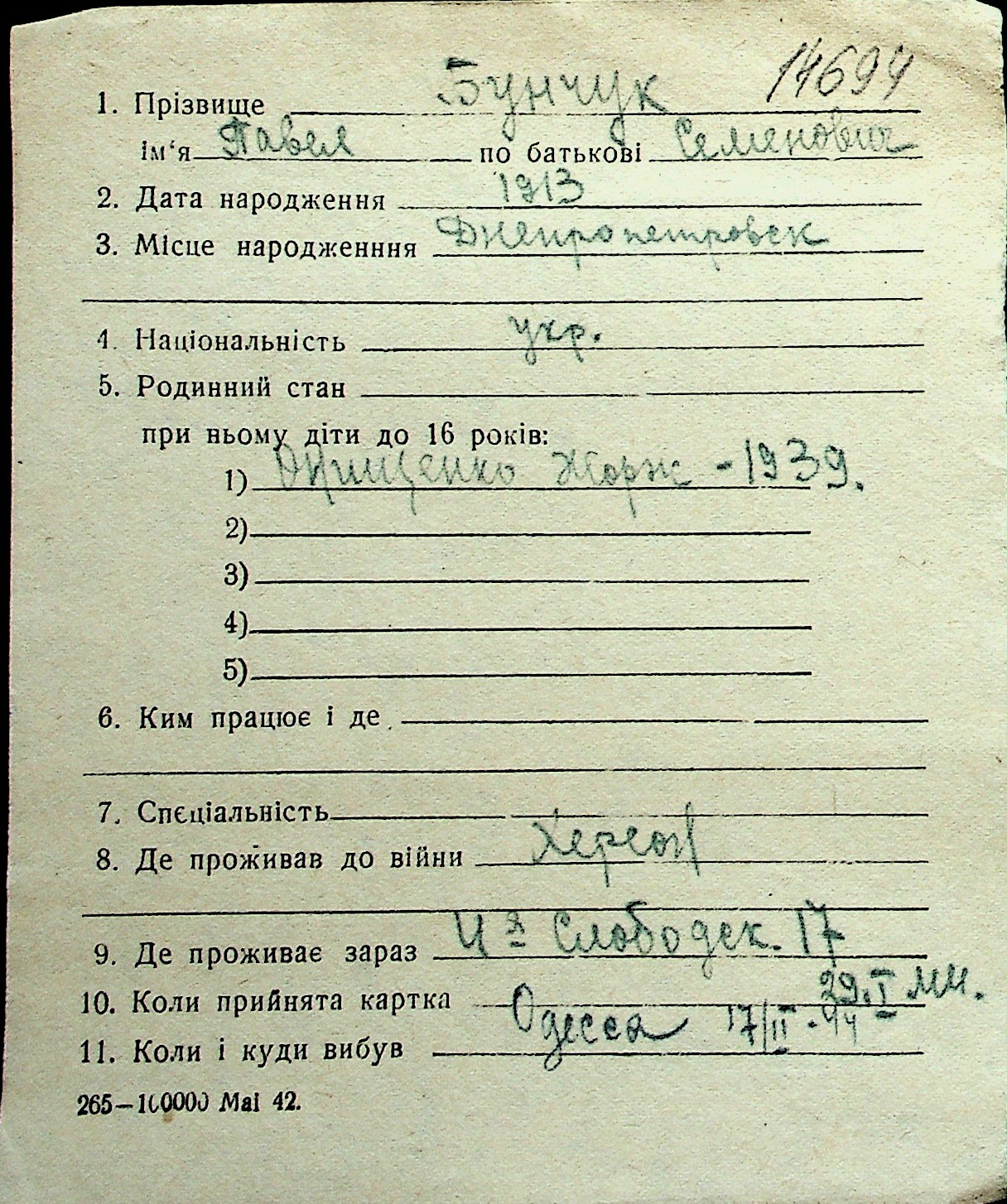 ◦ ◦ Перелік карток на осіб, які мешкали у м. Миколаїв у період окупації 1941–1944 років