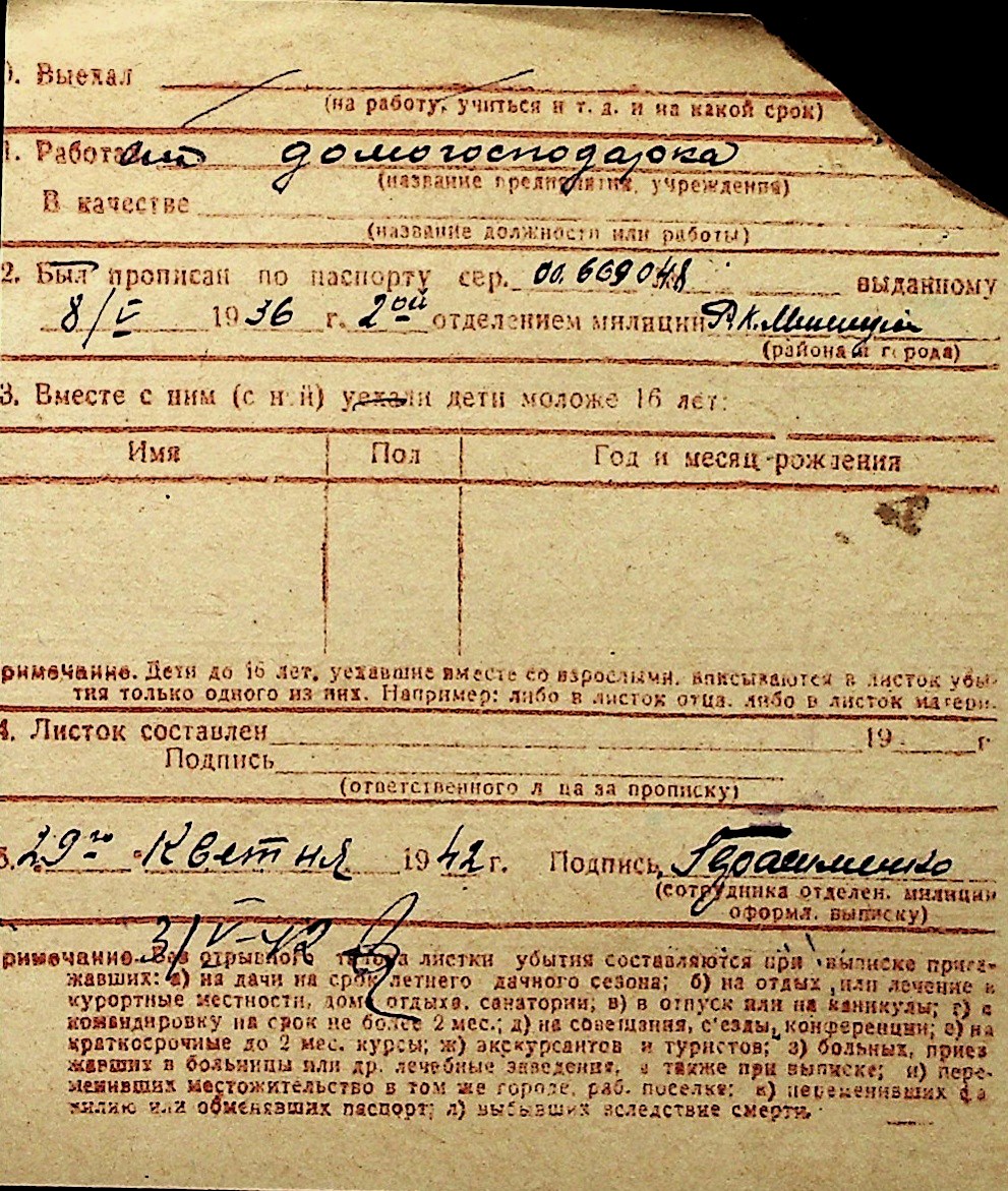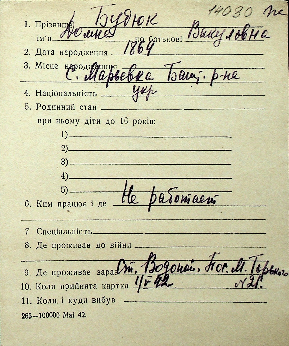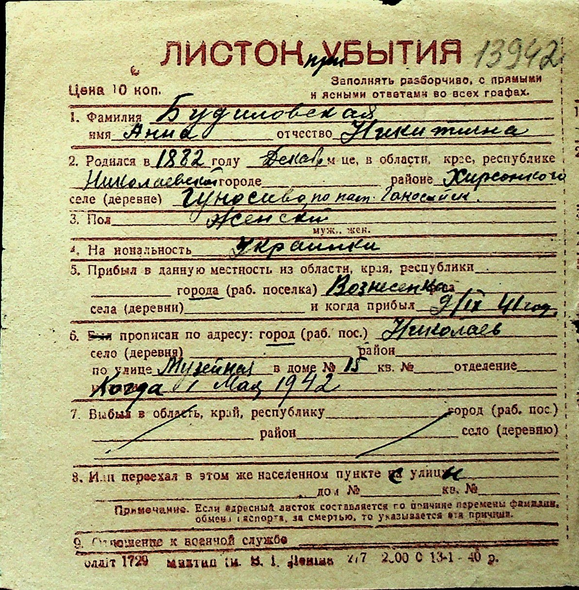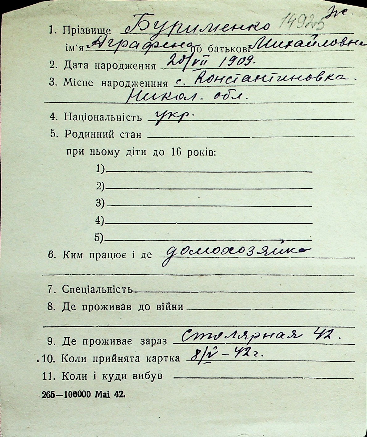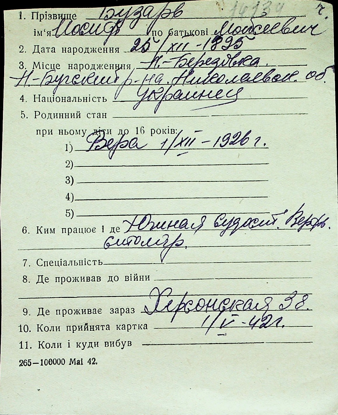 ◦ ◦ Перелік карток на осіб, які мешкали у м. Миколаїв у період окупації 1941–1944 років