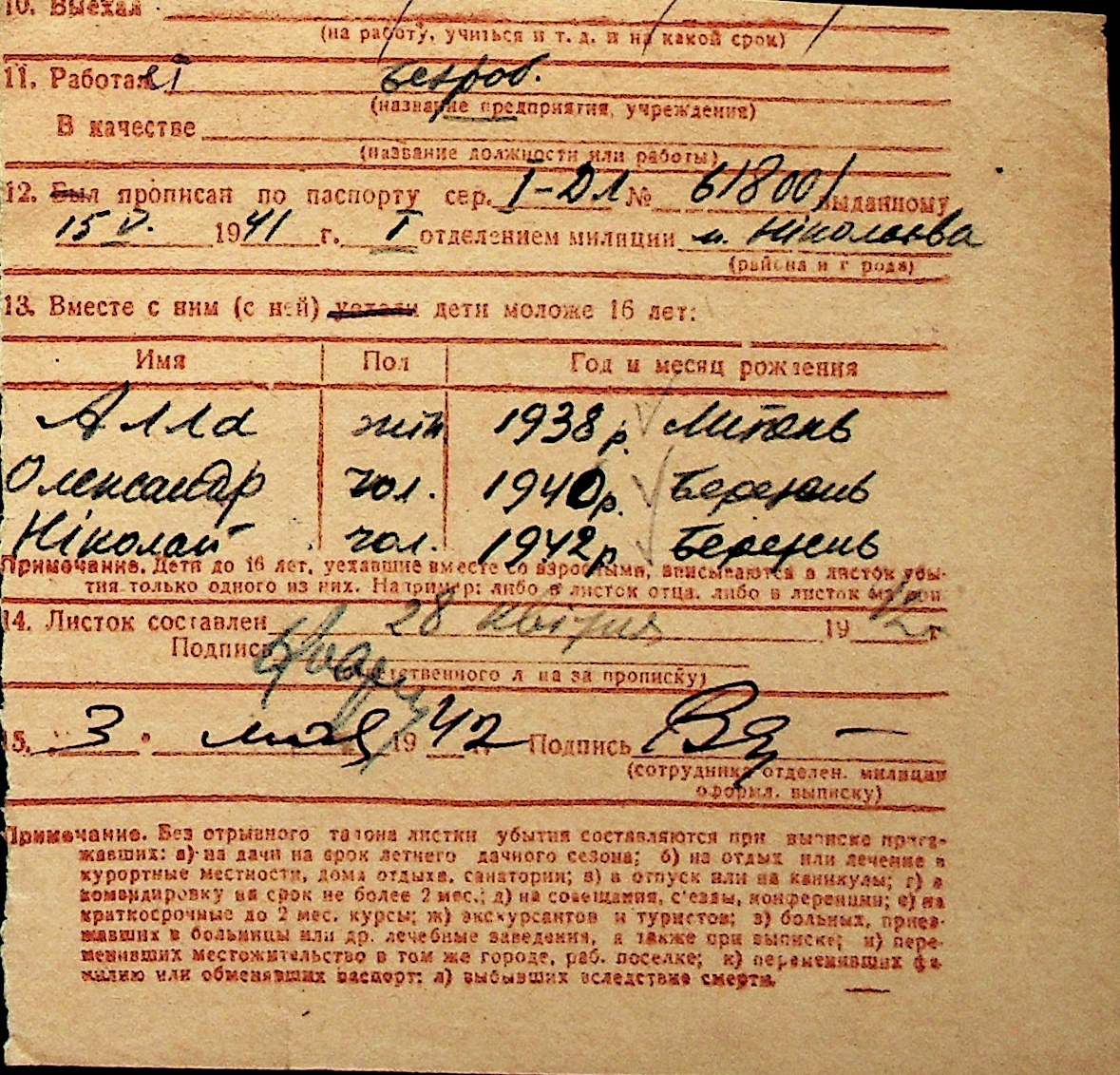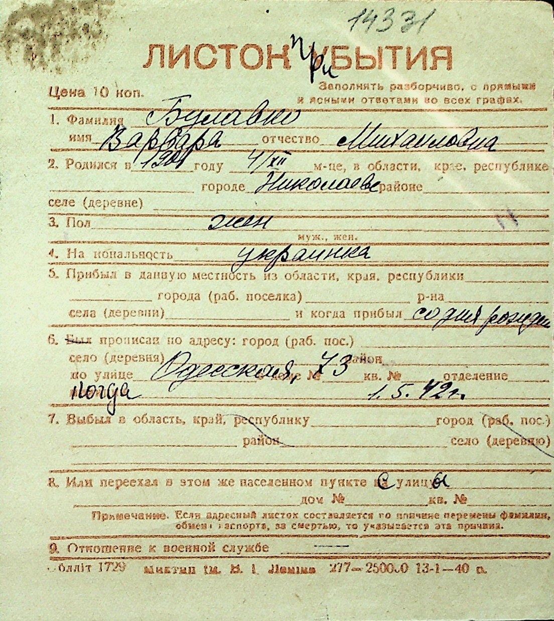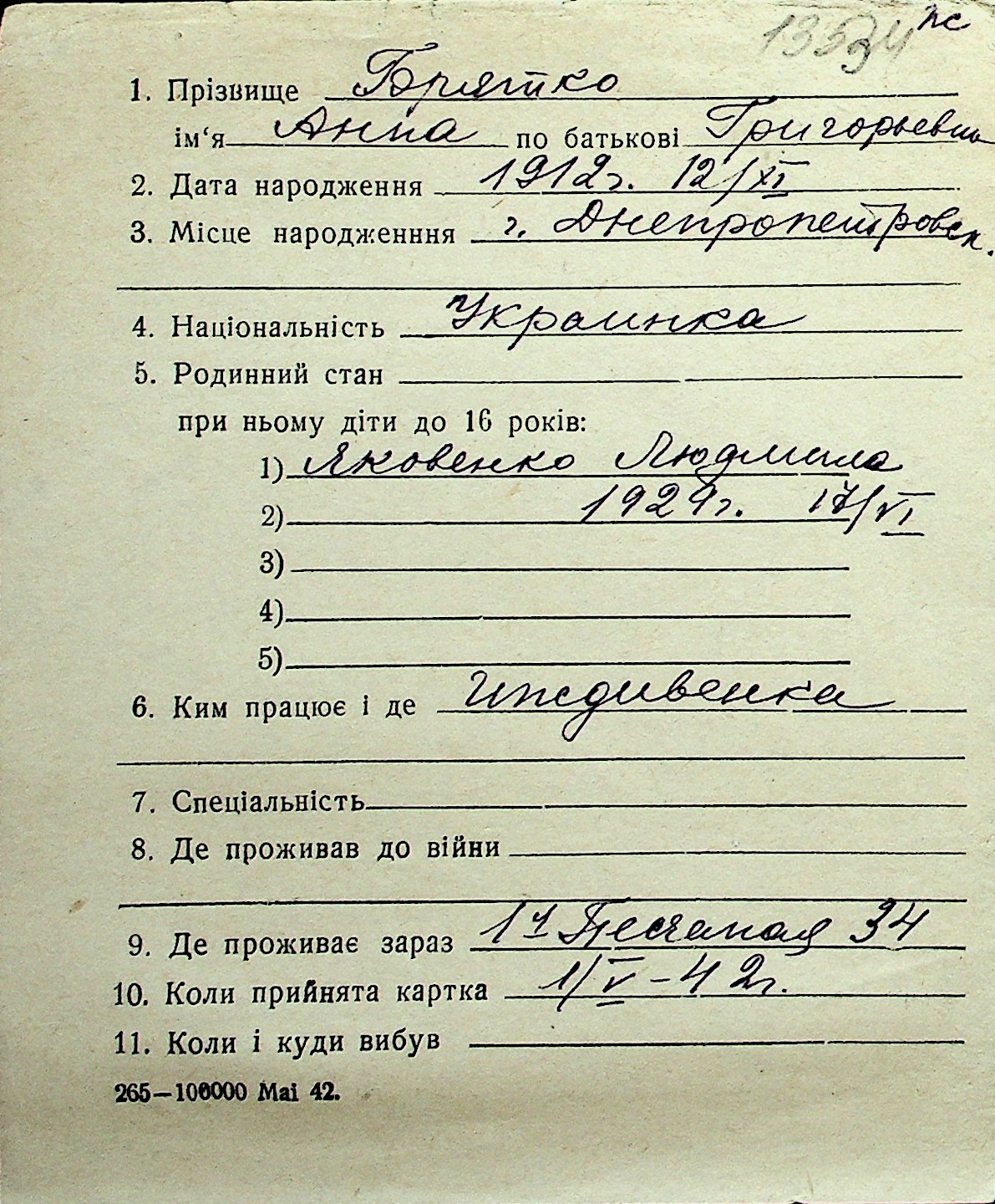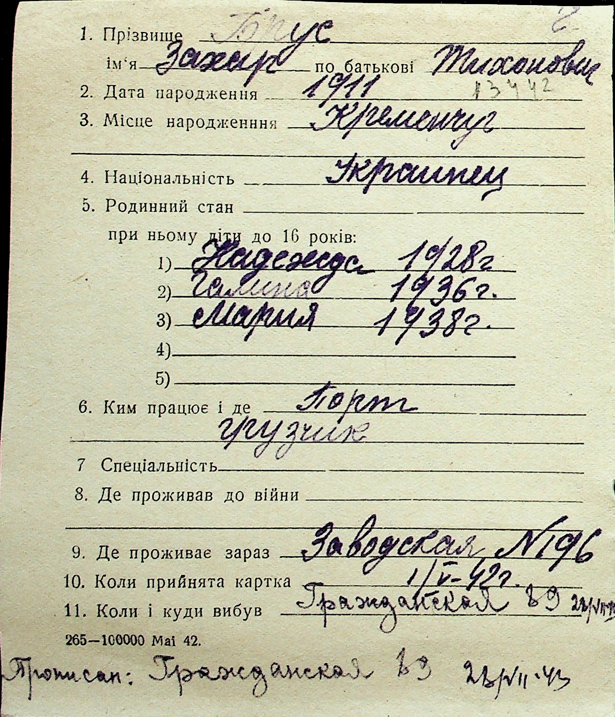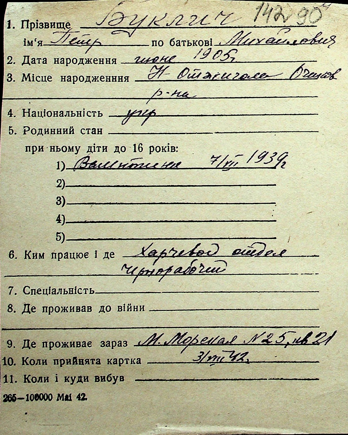 ◦ ◦ Перелік карток на осіб, які мешкали у м. Миколаїв у період окупації 1941–1944 років