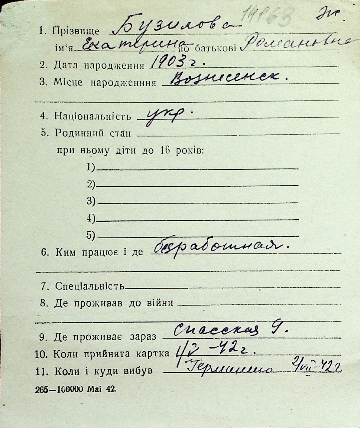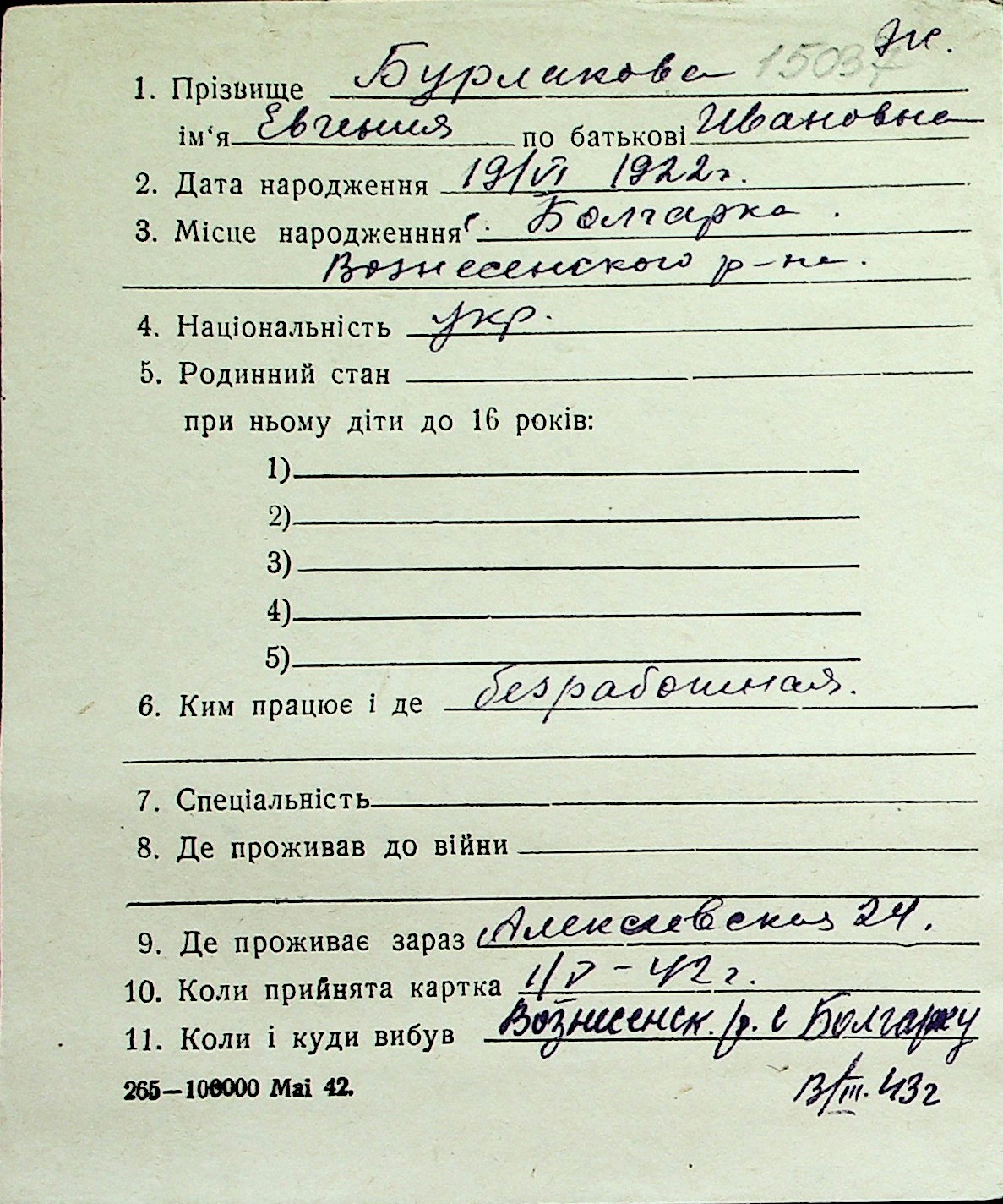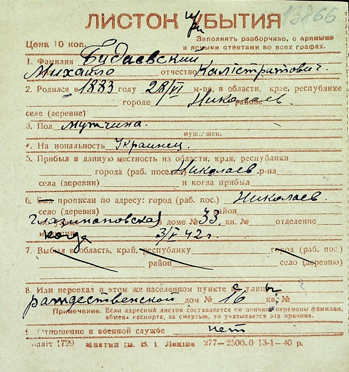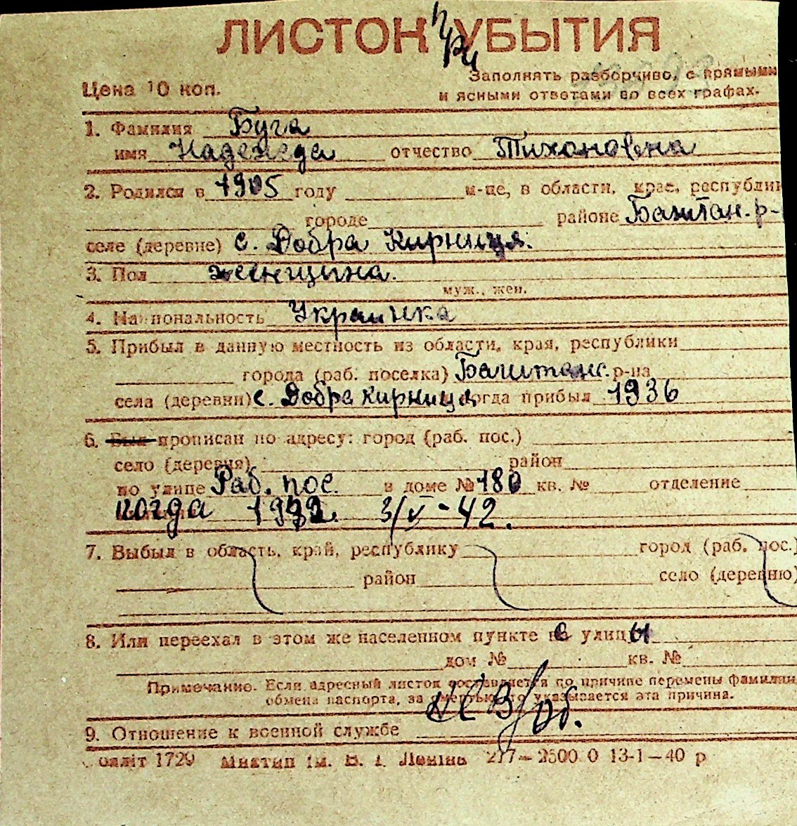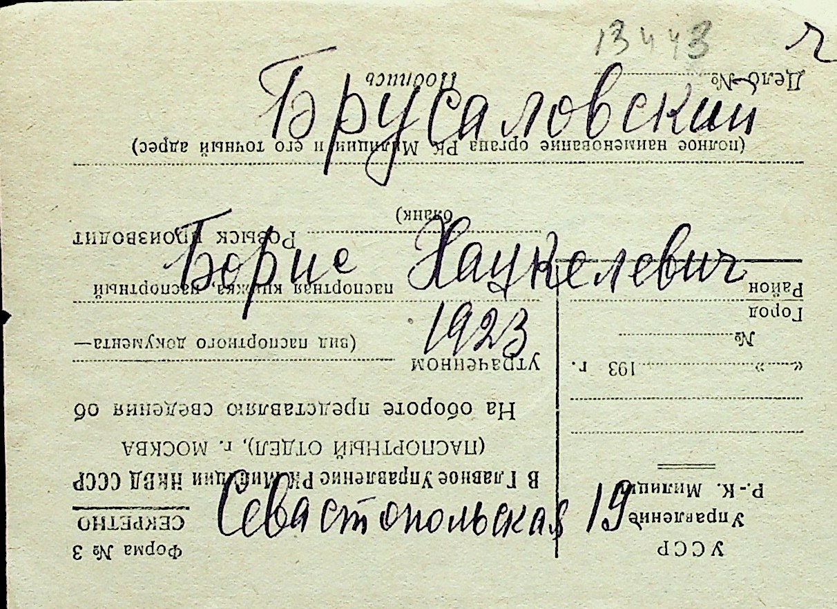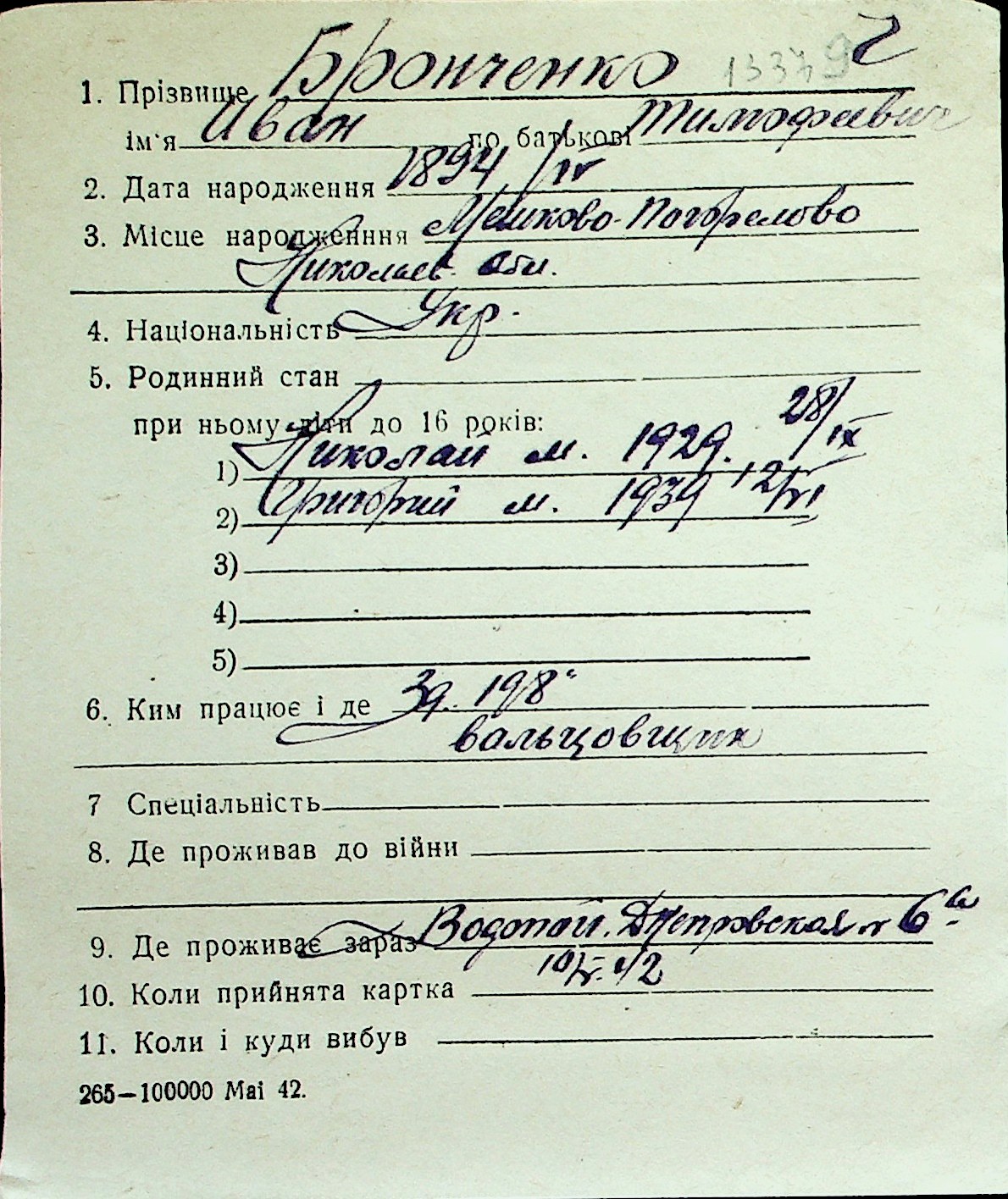 ◦ ◦ Перелік карток на осіб, які мешкали у м. Миколаїв у період окупації 1941–1944 років