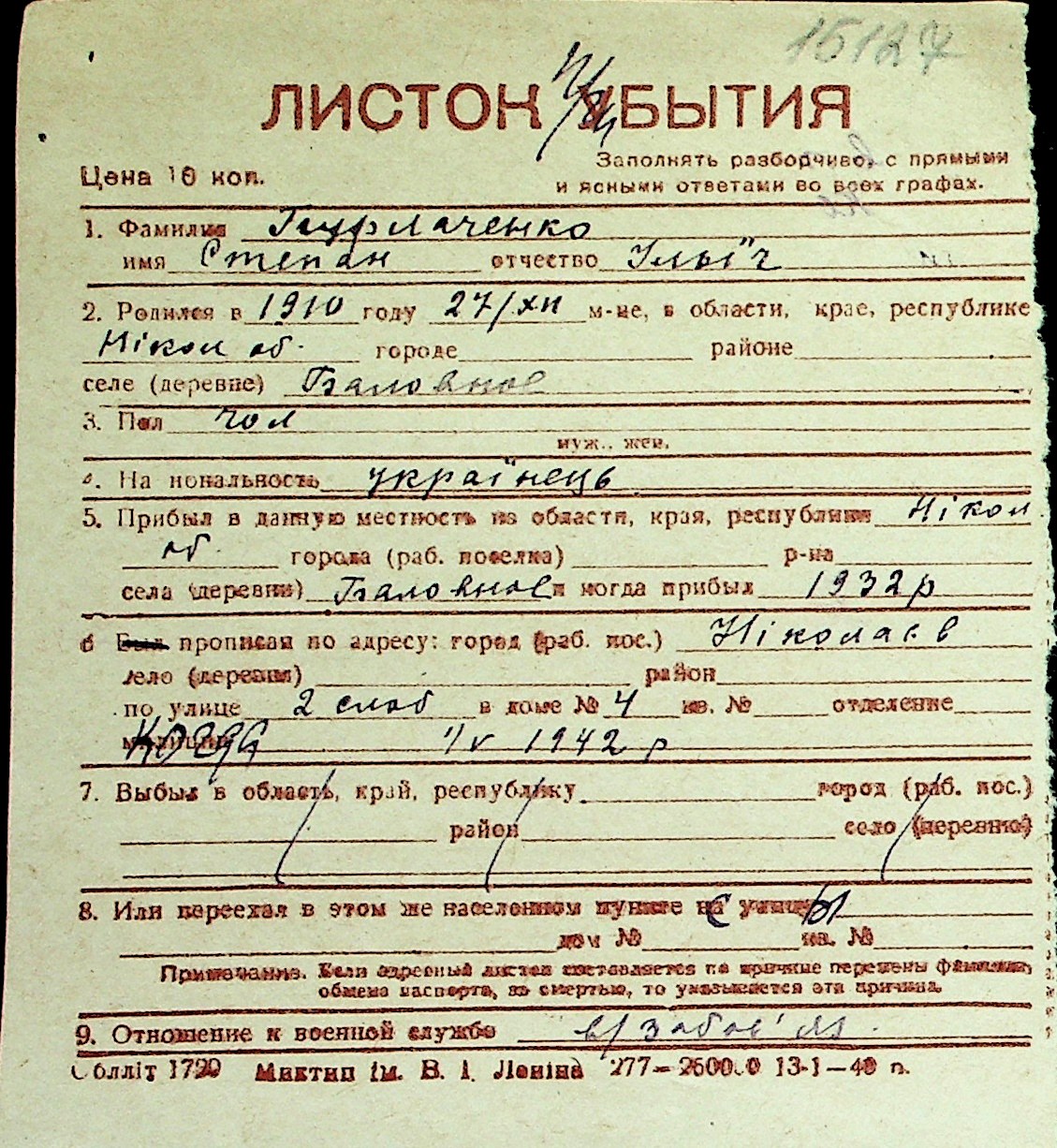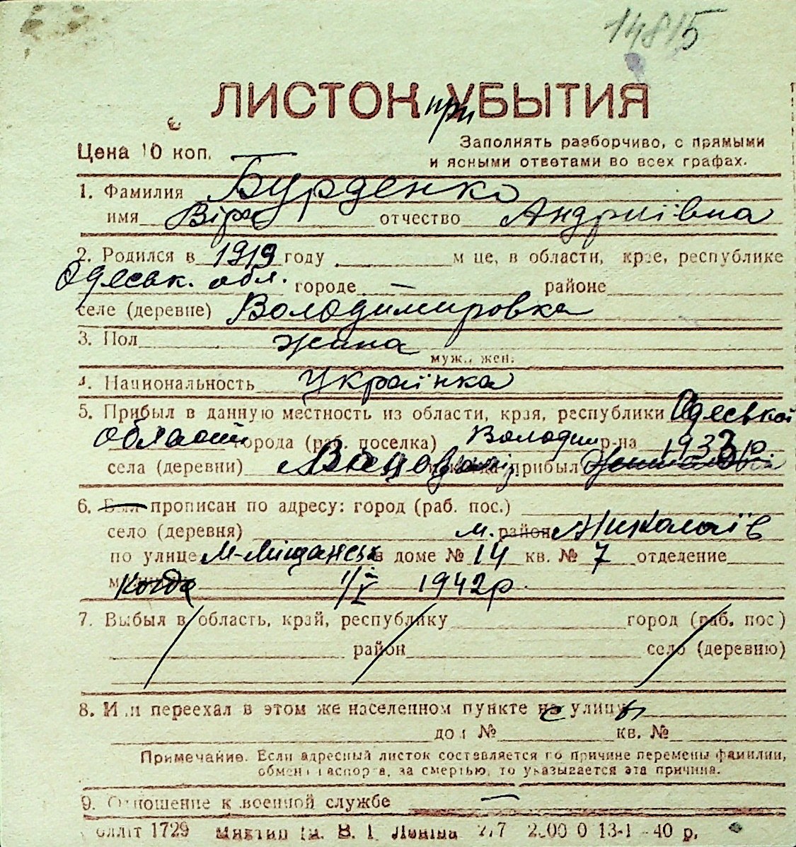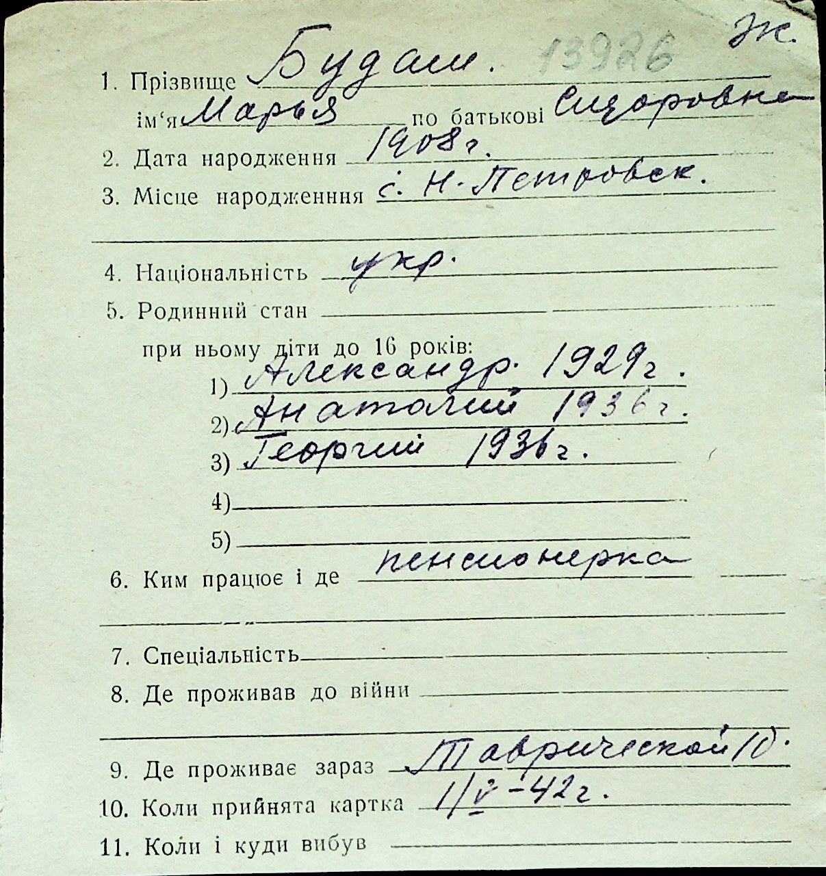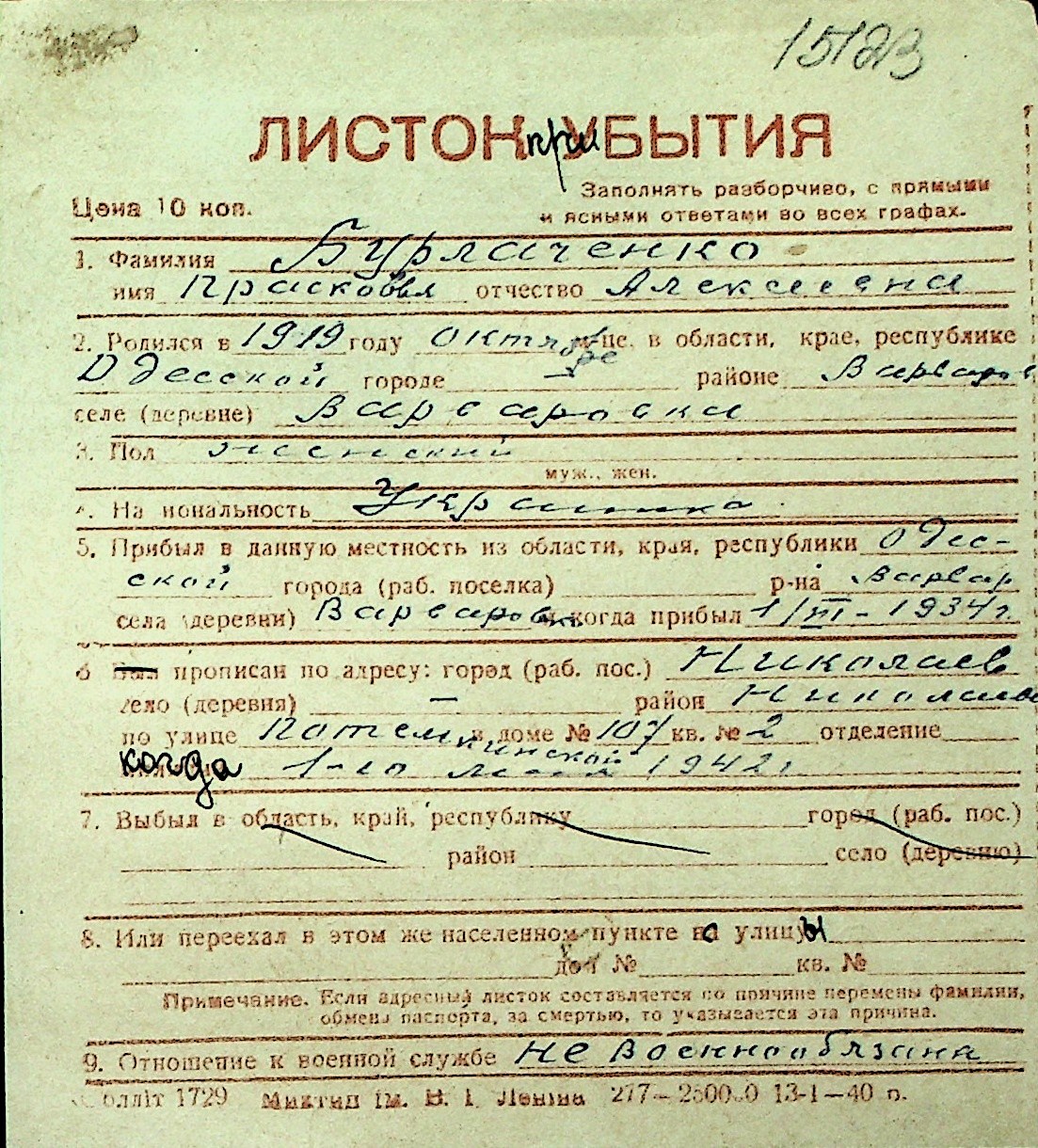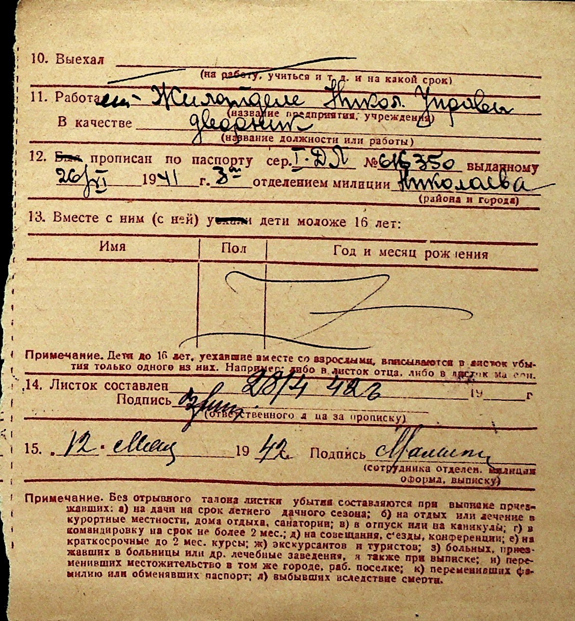 ◦ ◦ Перелік карток на осіб, які мешкали у м. Миколаїв у період окупації 1941–1944 років