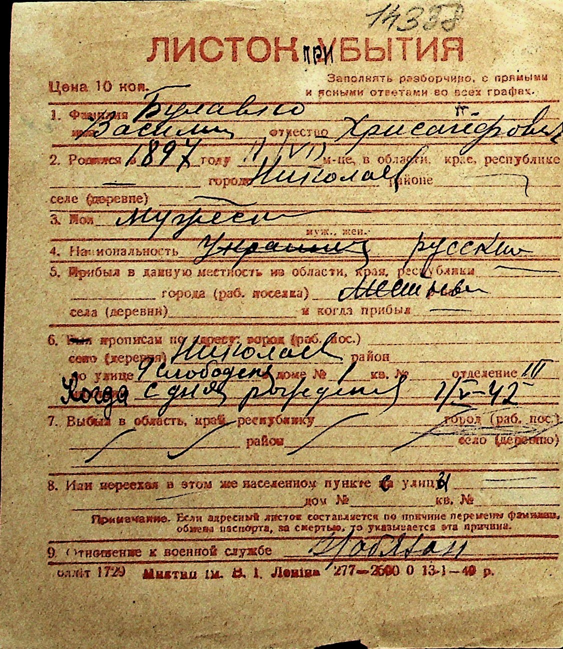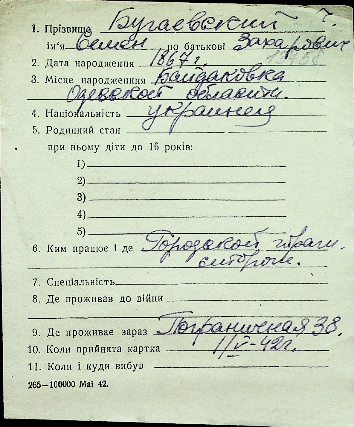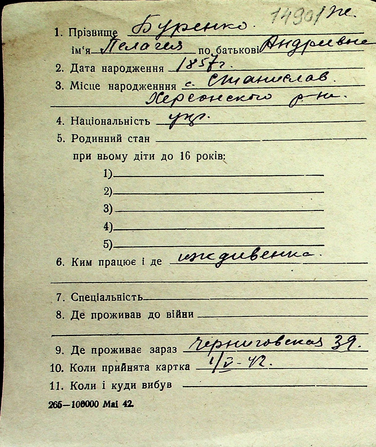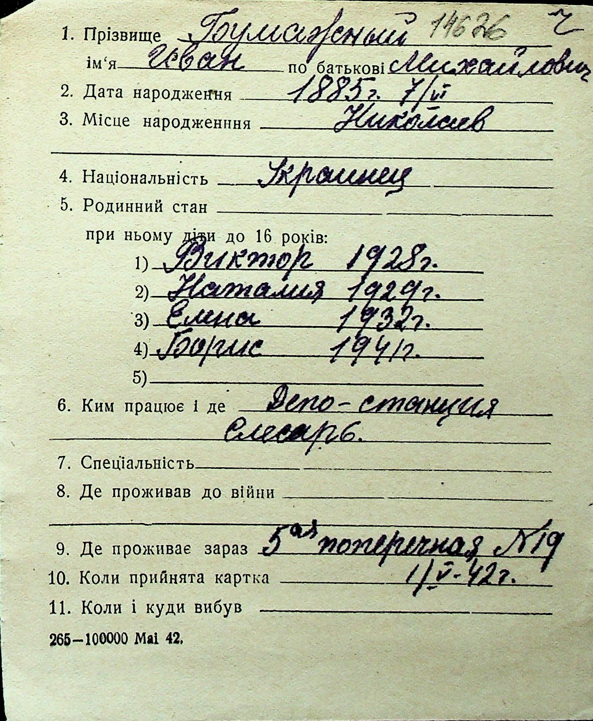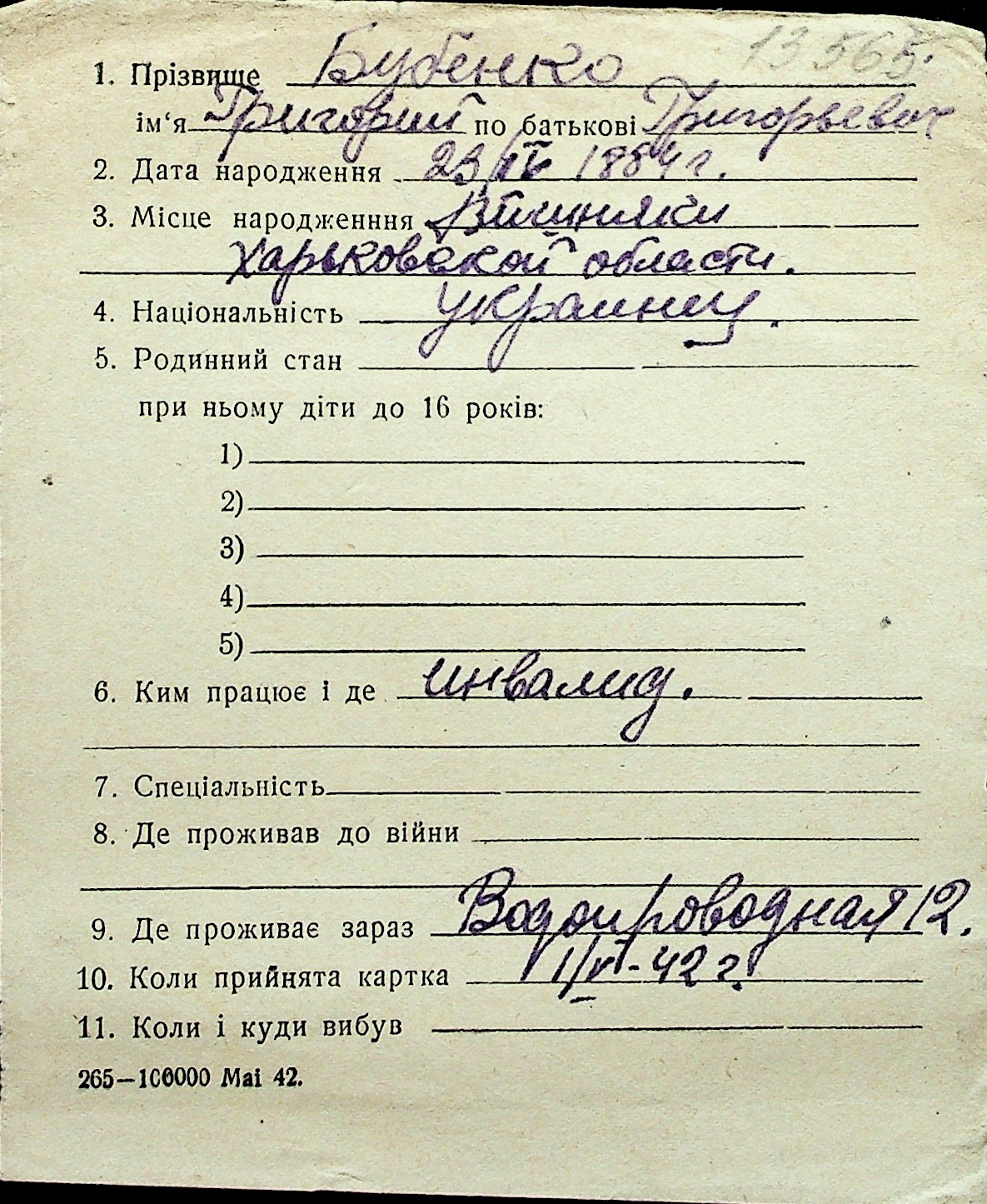 ◦ ◦ Перелік карток на осіб, які мешкали у м. Миколаїв у період окупації 1941–1944 років
