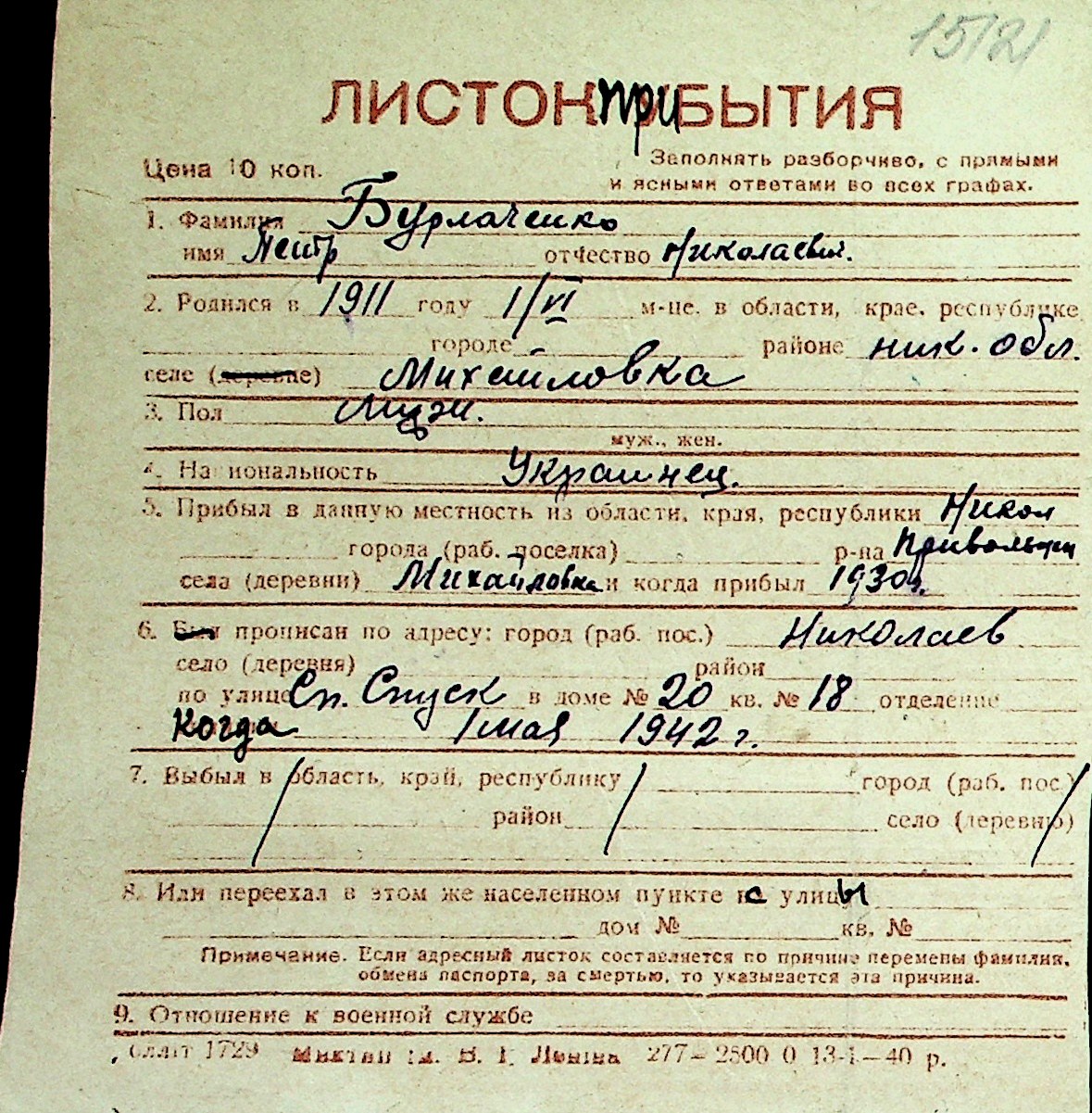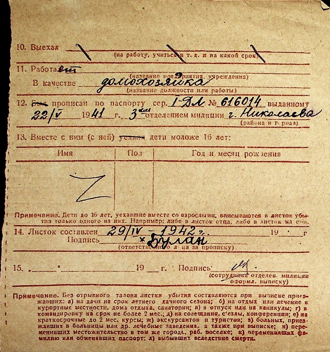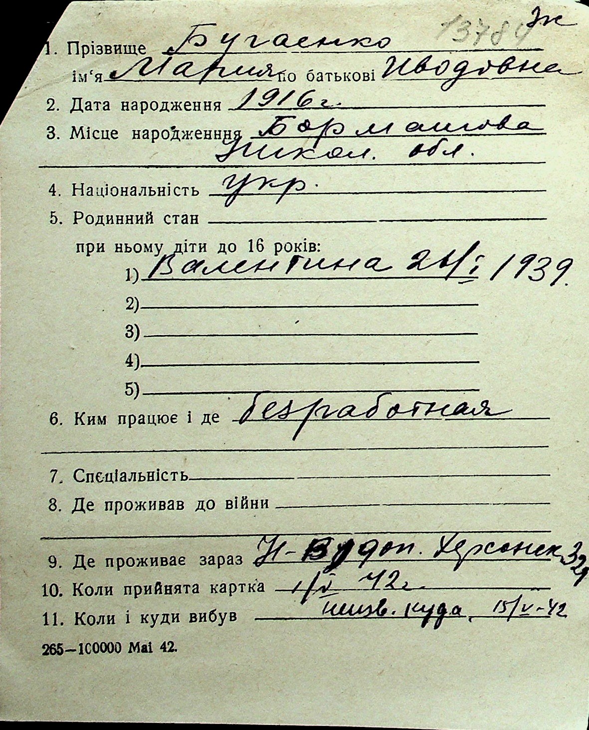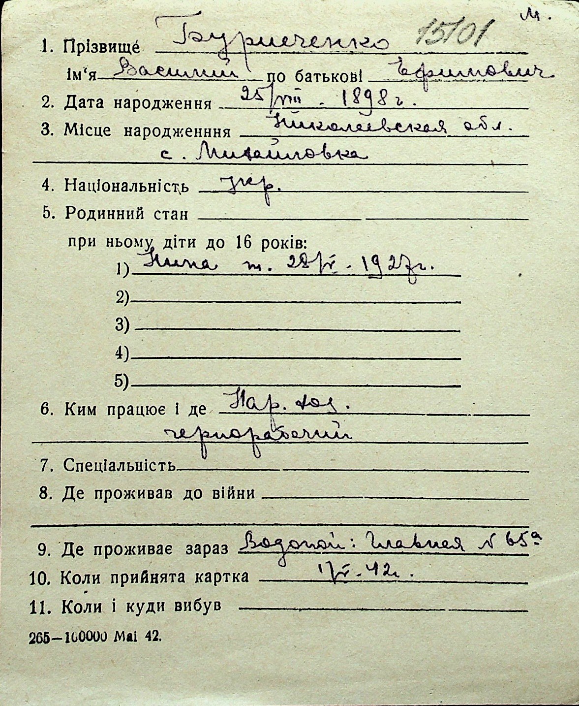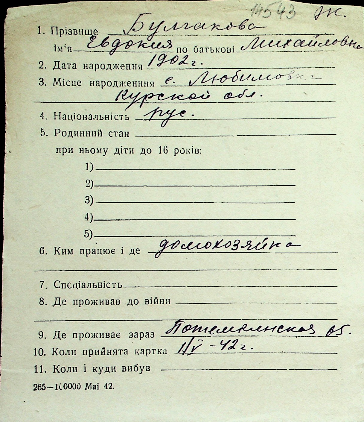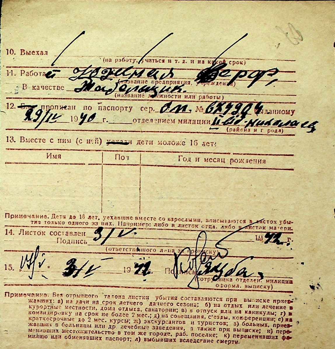 ◦ ◦ Перелік карток на осіб, які мешкали у м. Миколаїв у період окупації 1941–1944 років