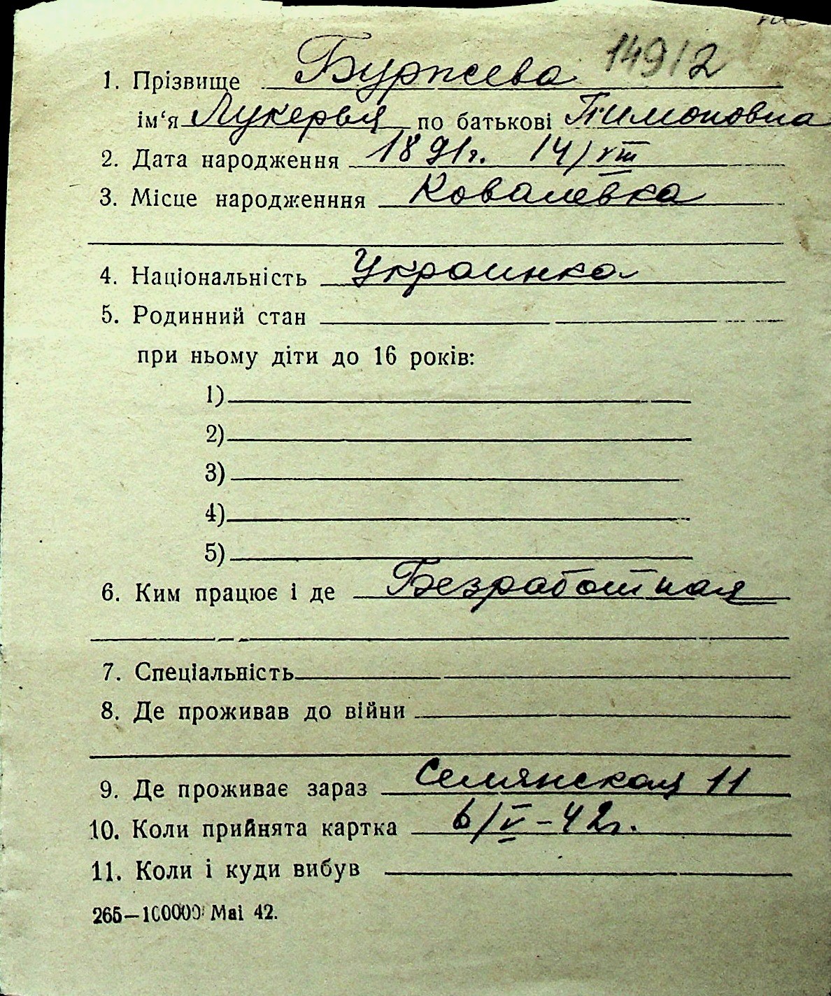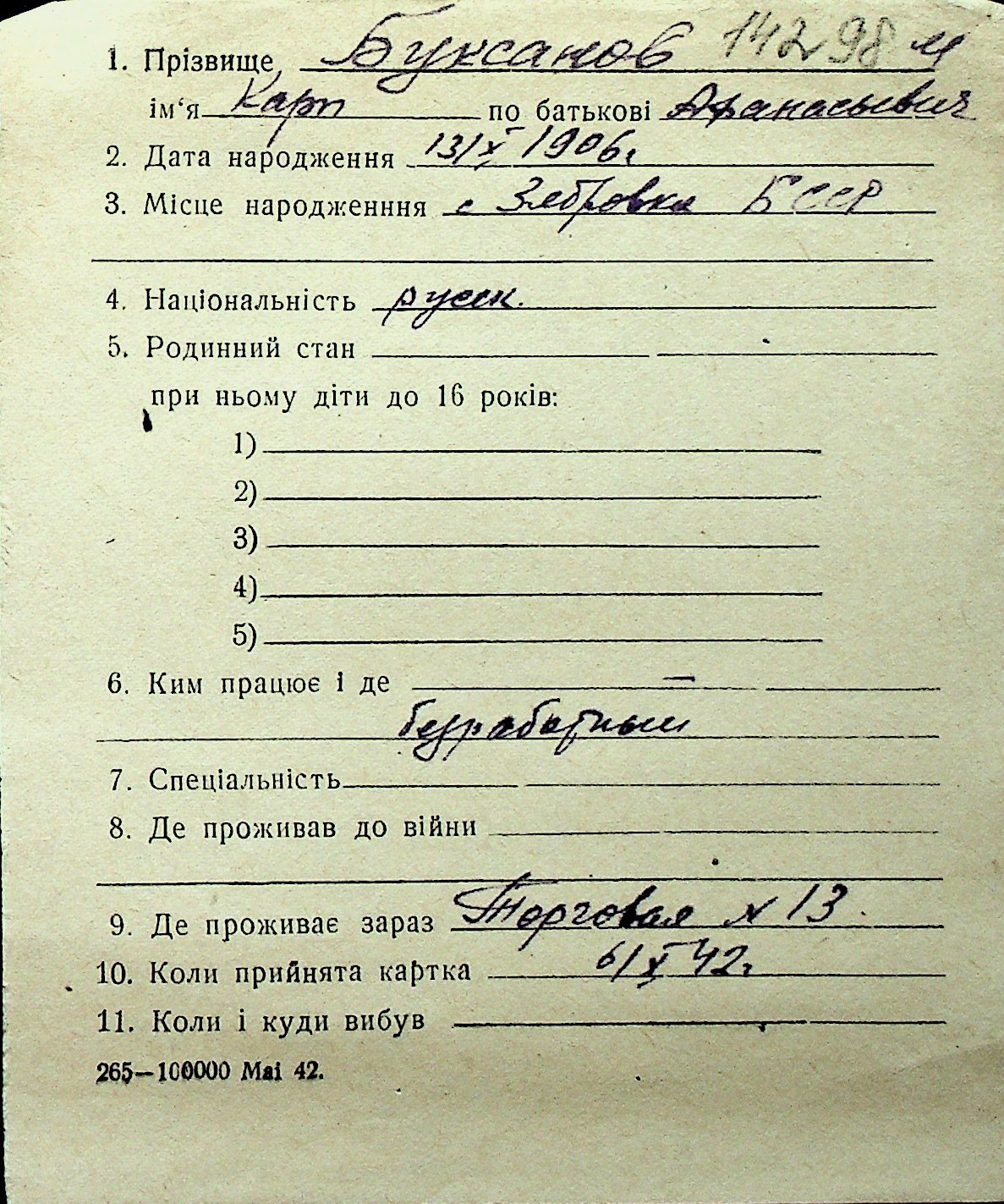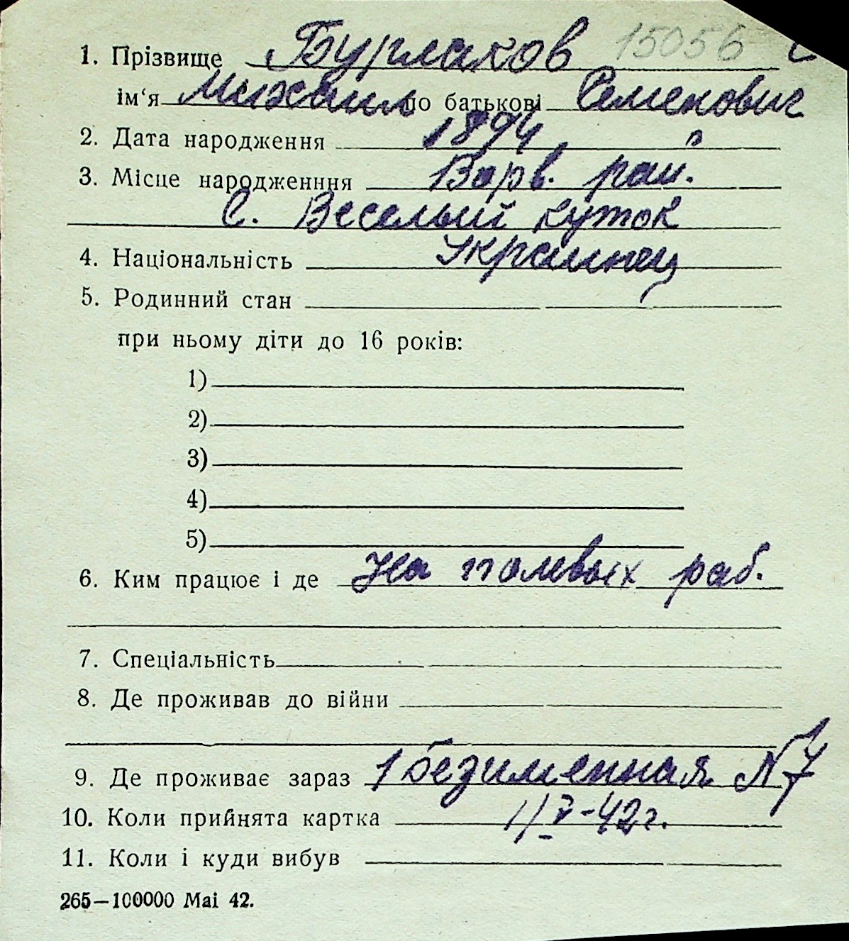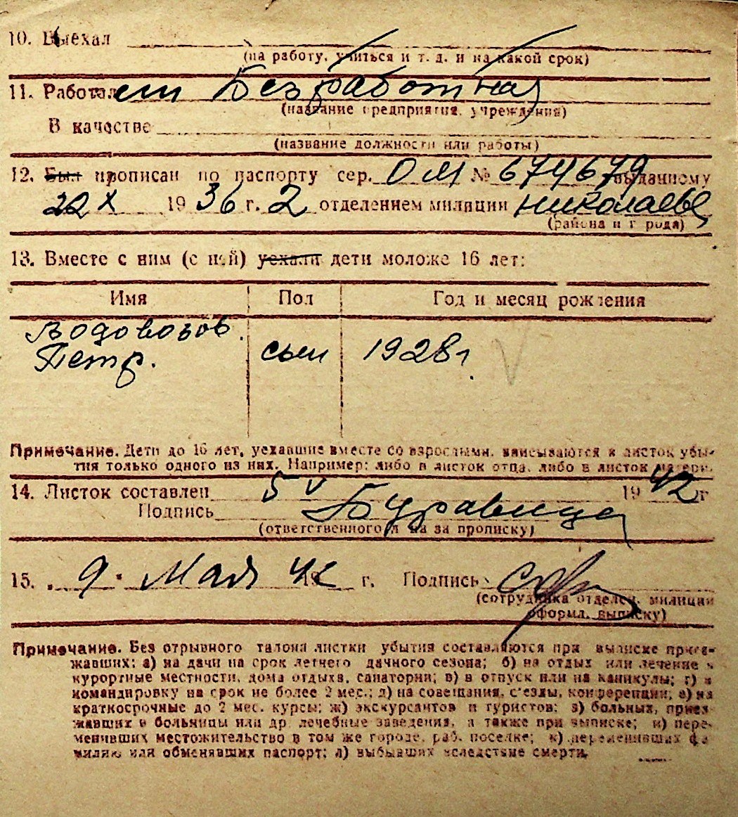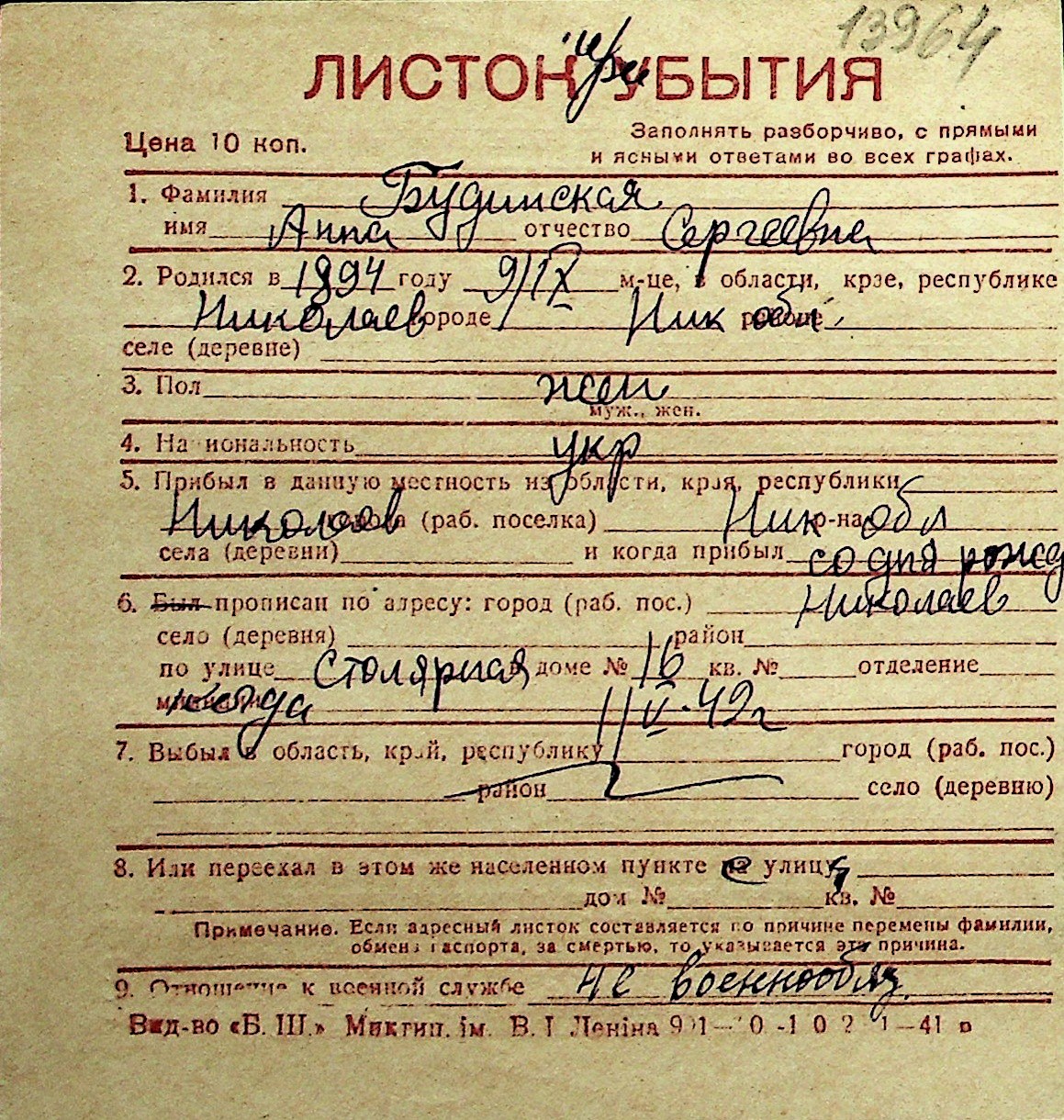 ◦ ◦ Перелік карток на осіб, які мешкали у м. Миколаїв у період окупації 1941–1944 років