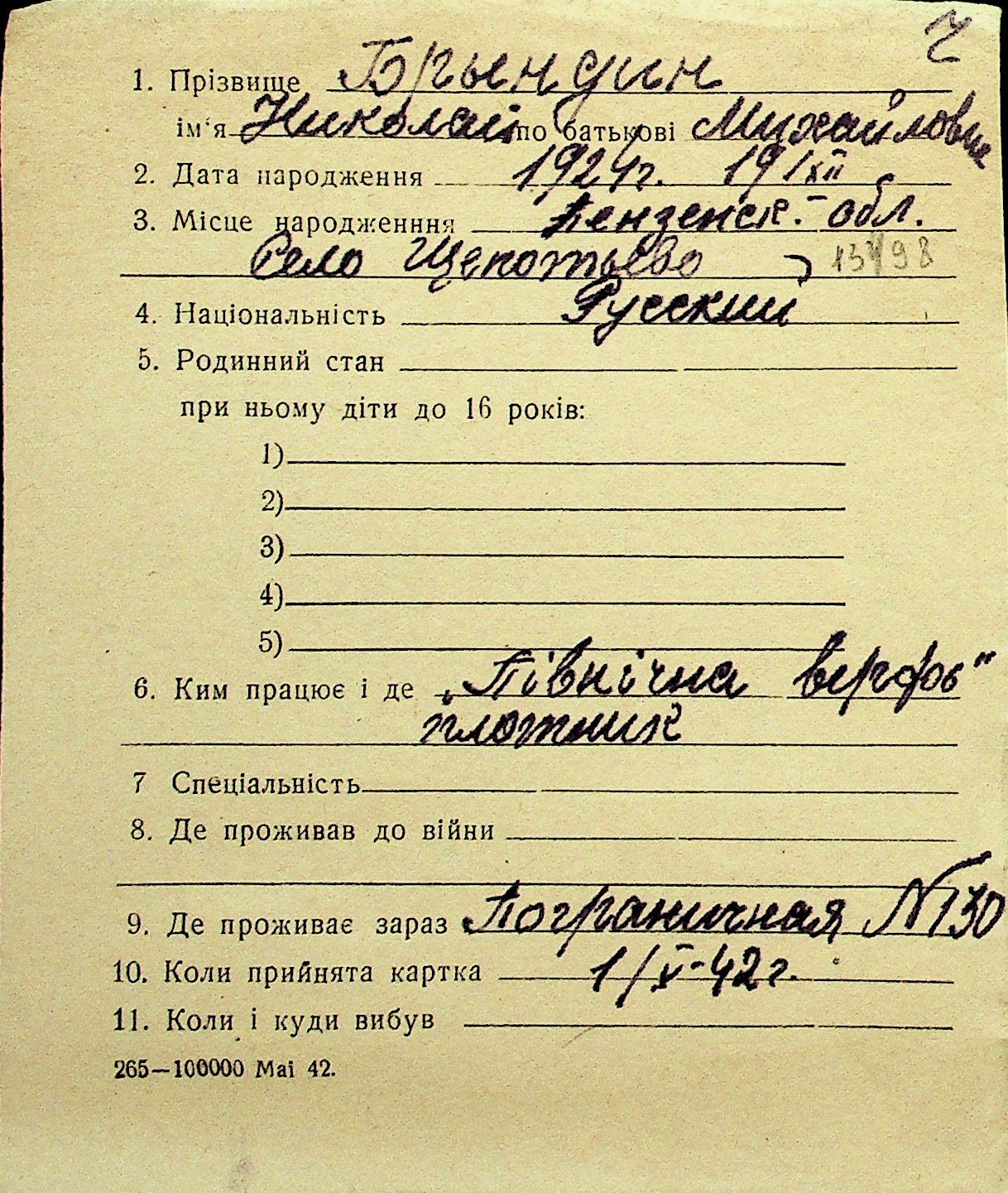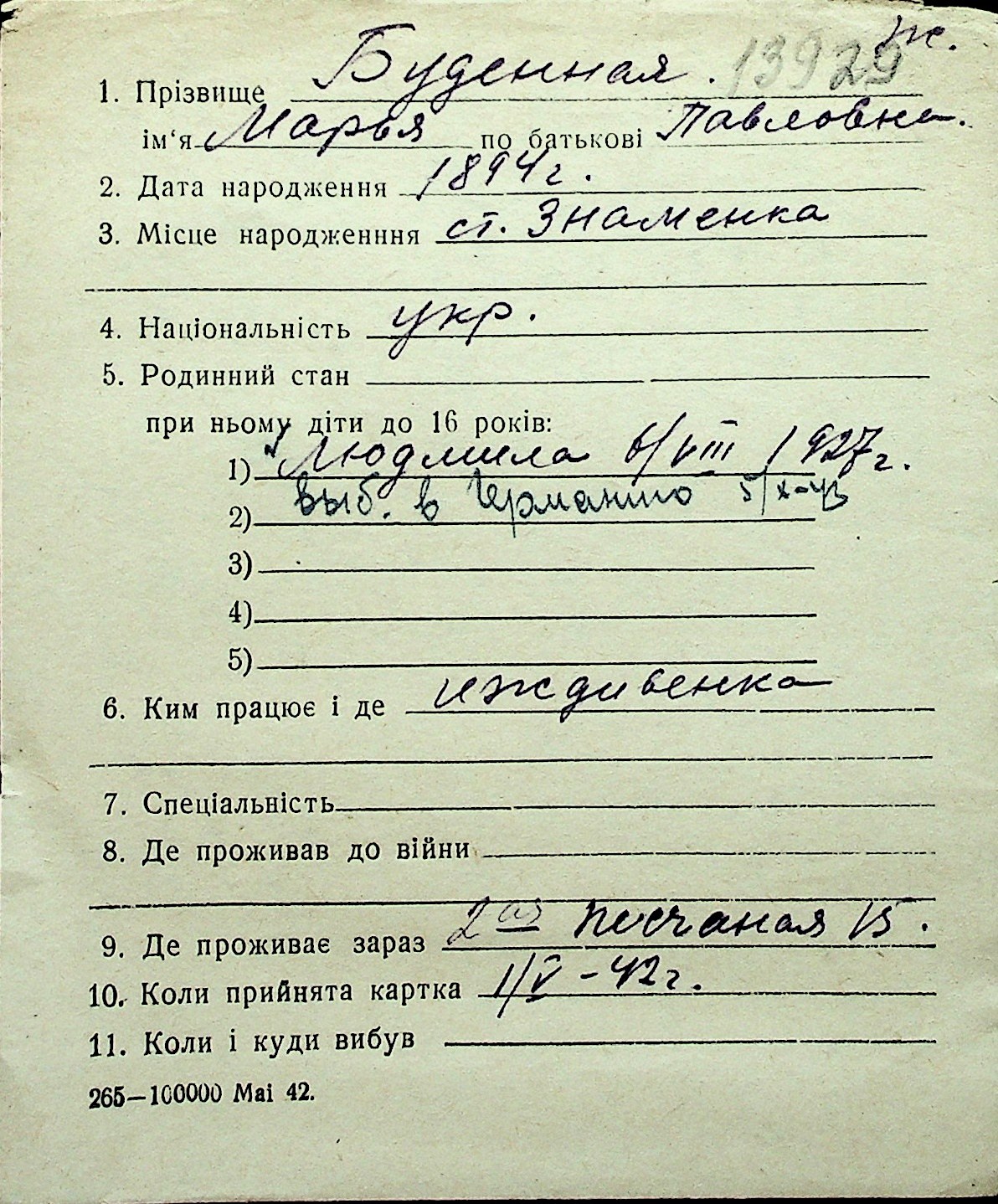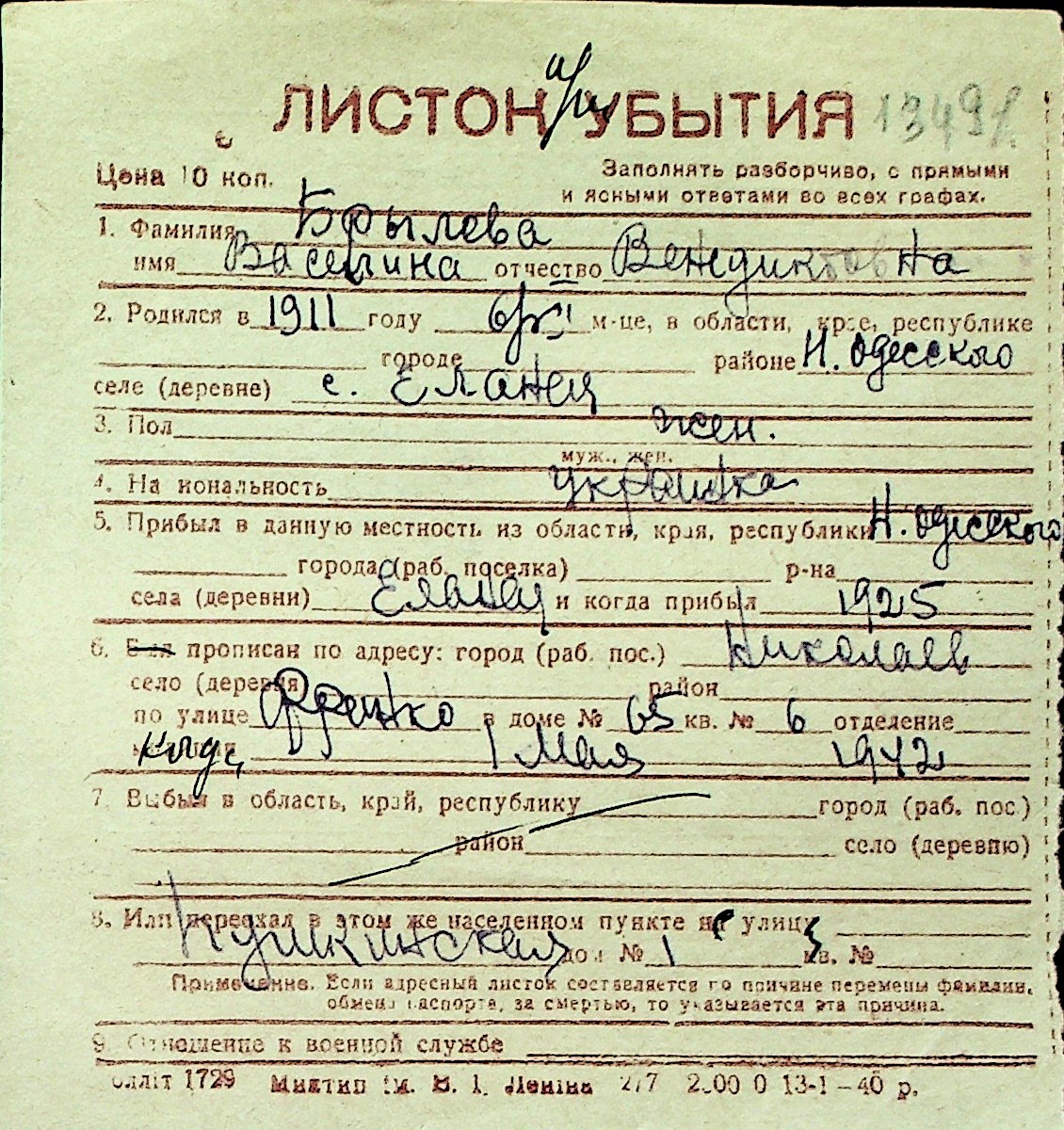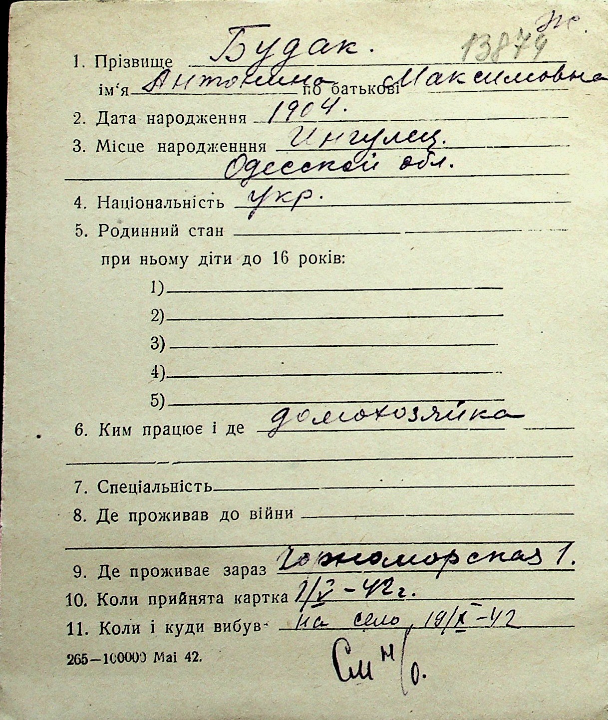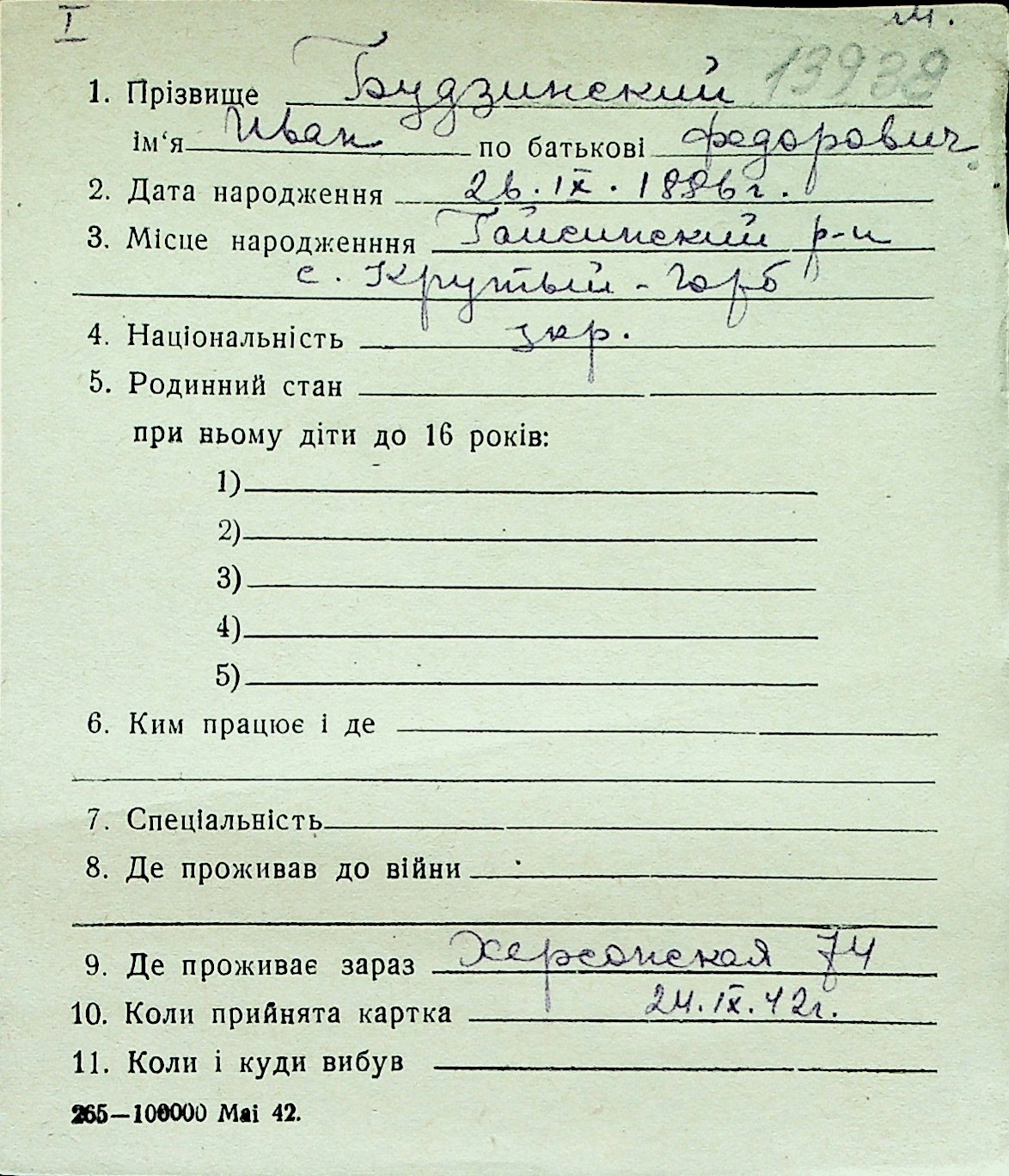 ◦ ◦ Перелік карток на осіб, які мешкали у м. Миколаїв у період окупації 1941–1944 років