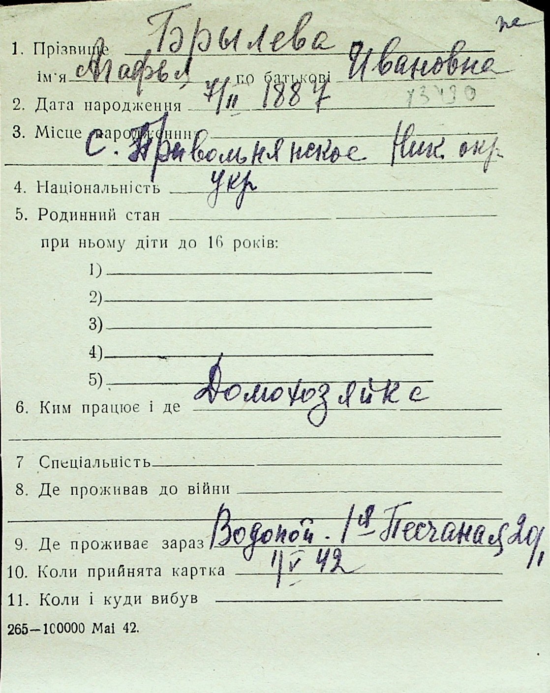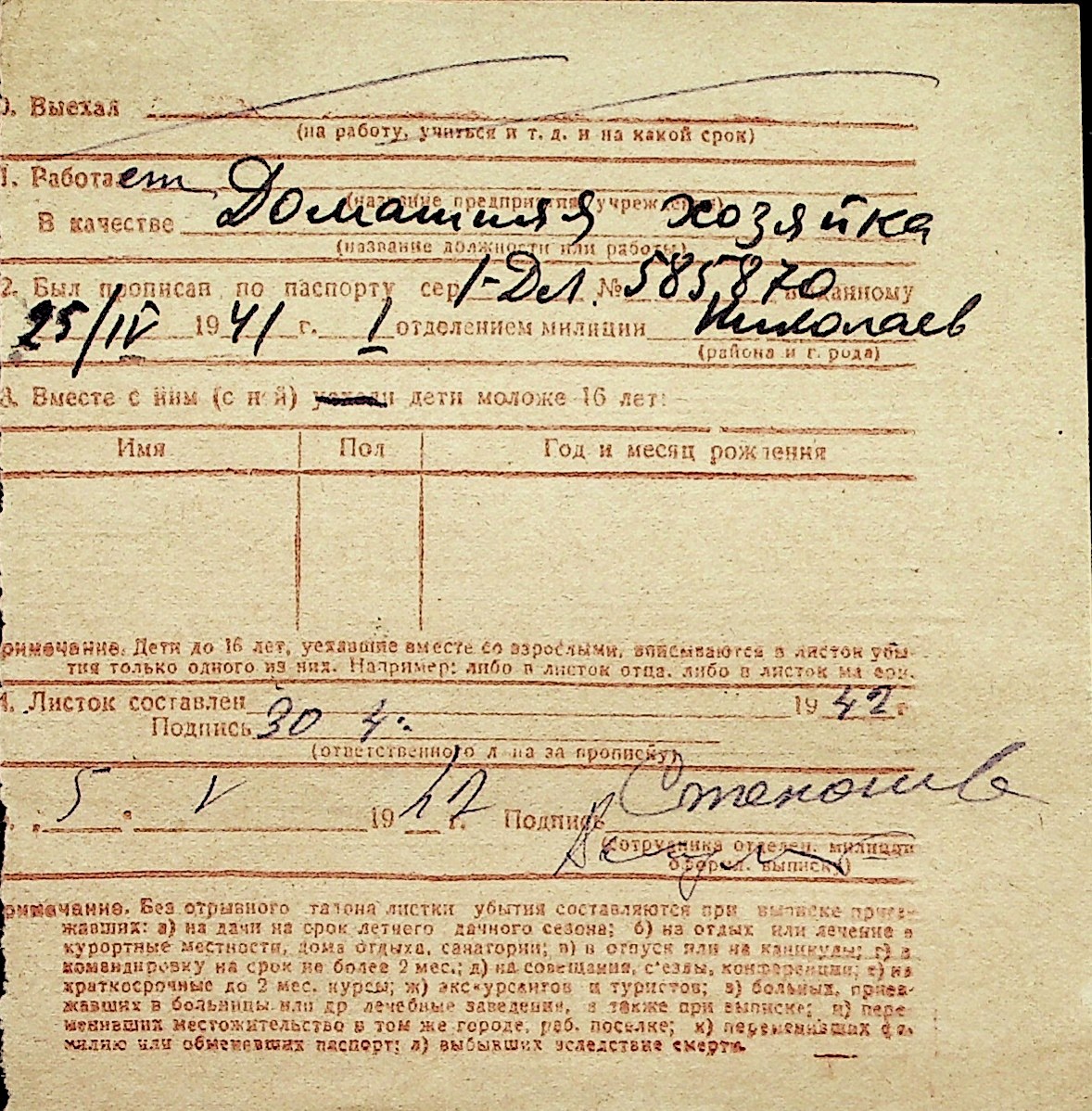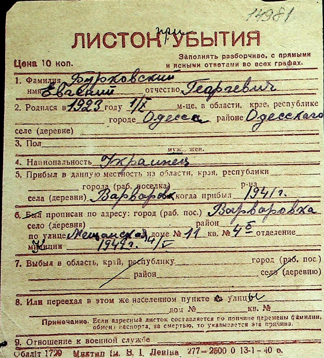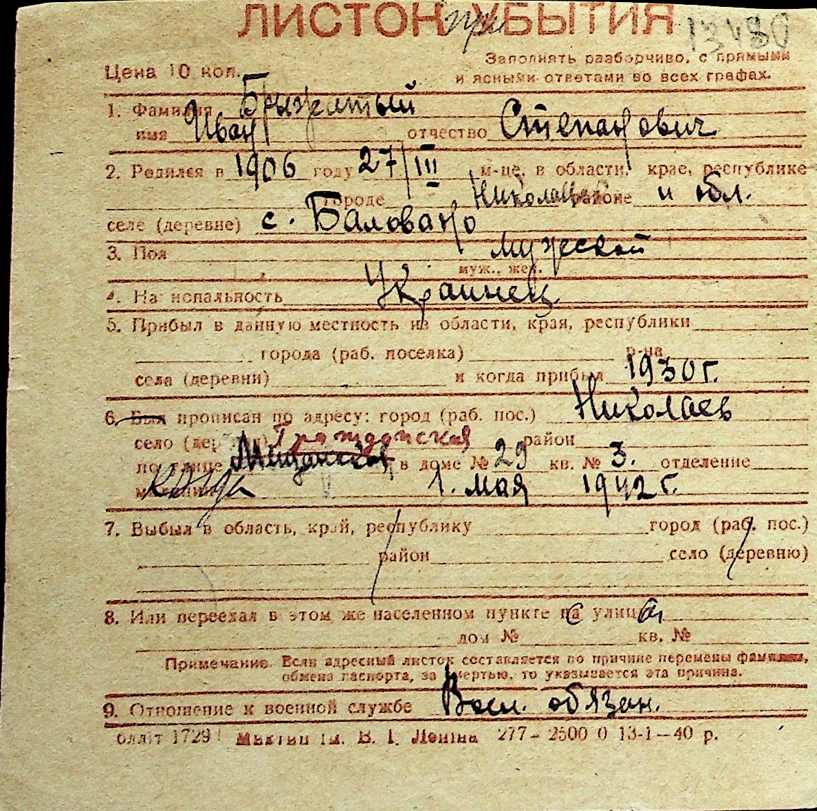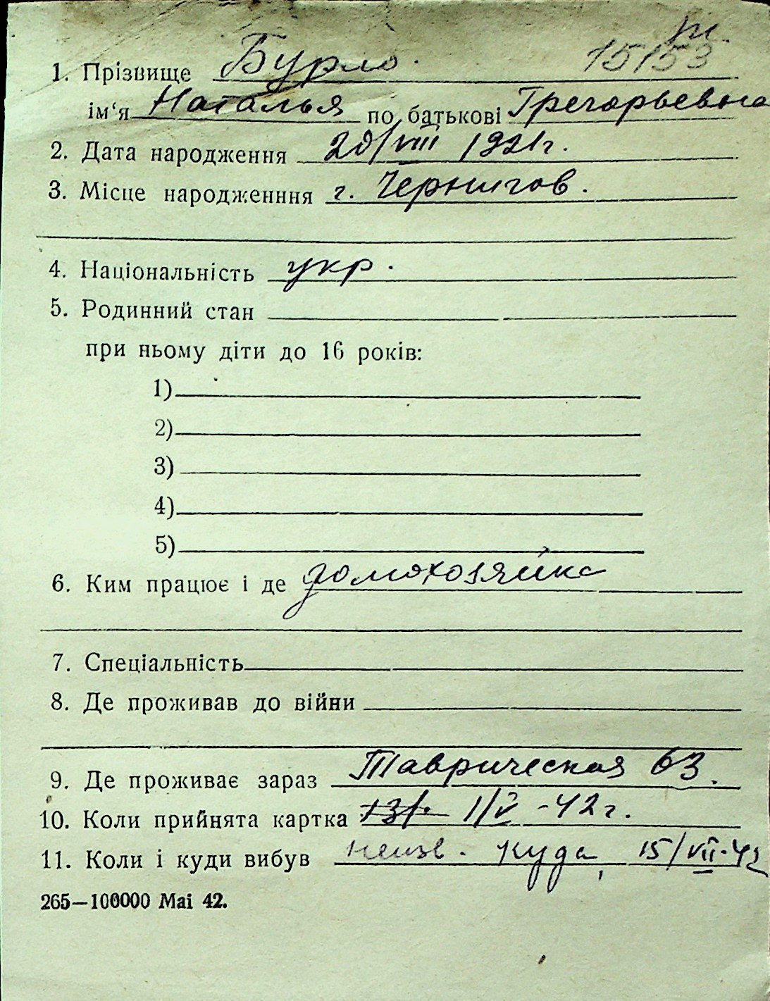 ◦ ◦ Перелік карток на осіб, які мешкали у м. Миколаїв у період окупації 1941–1944 років