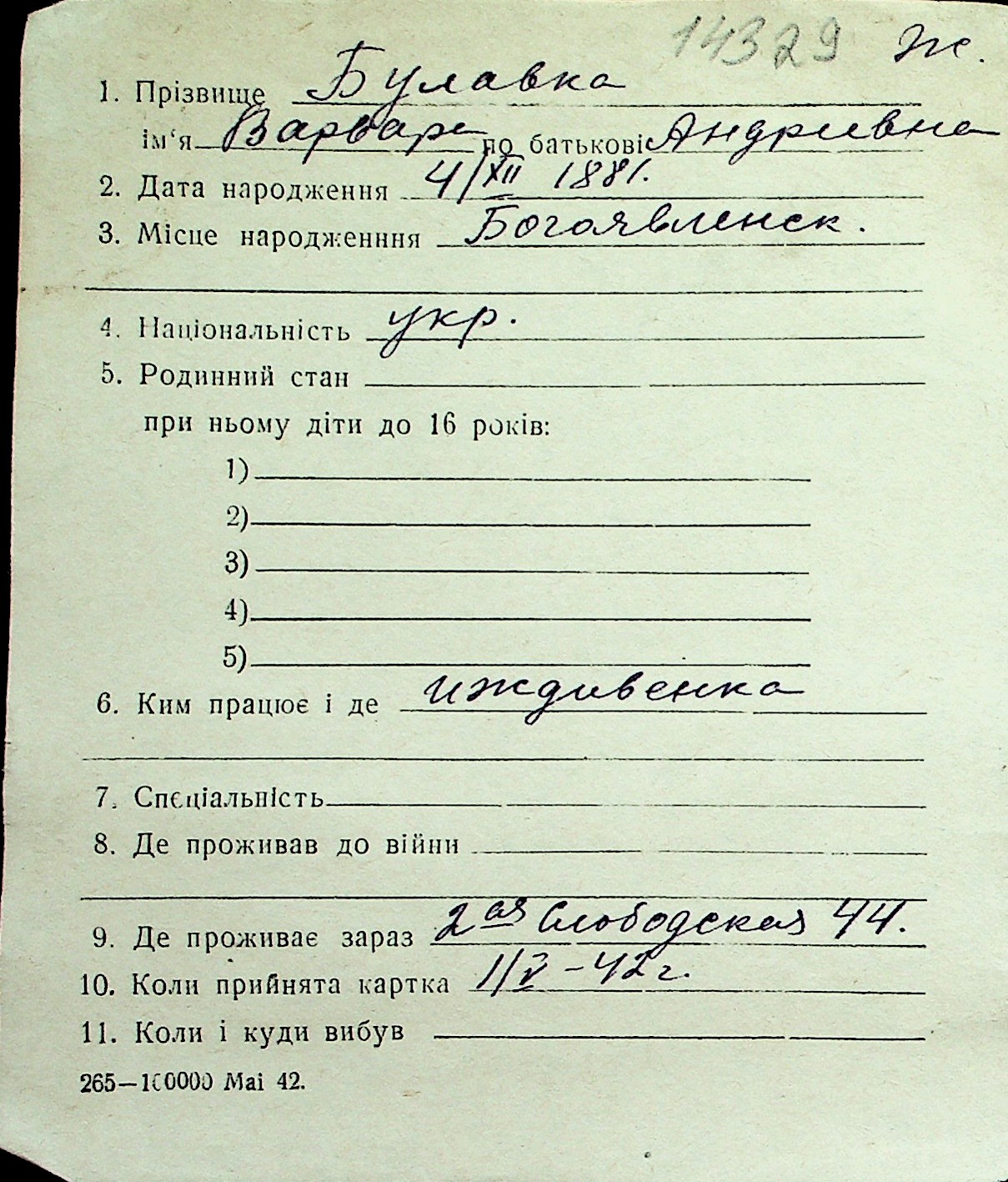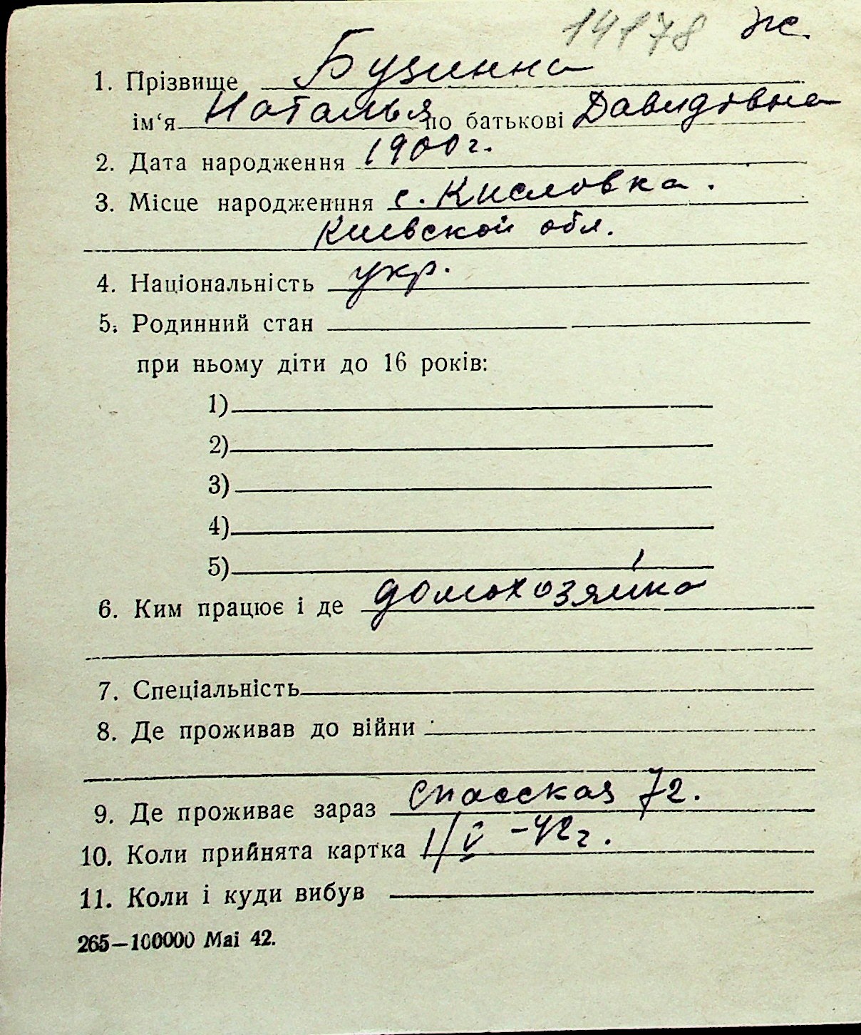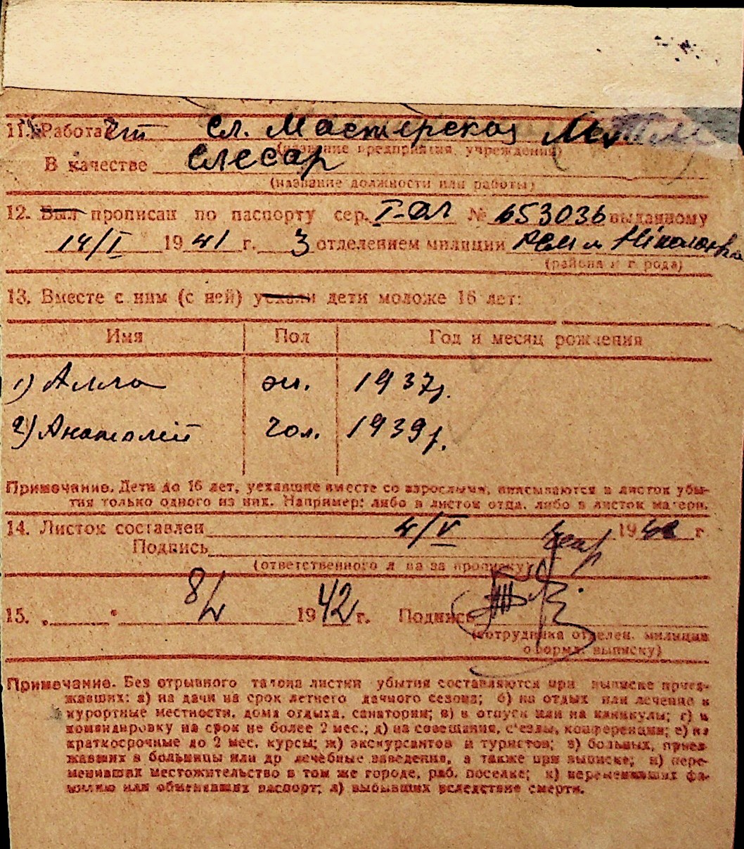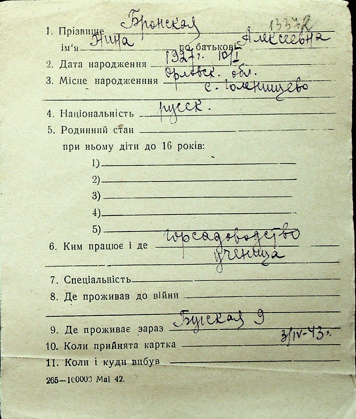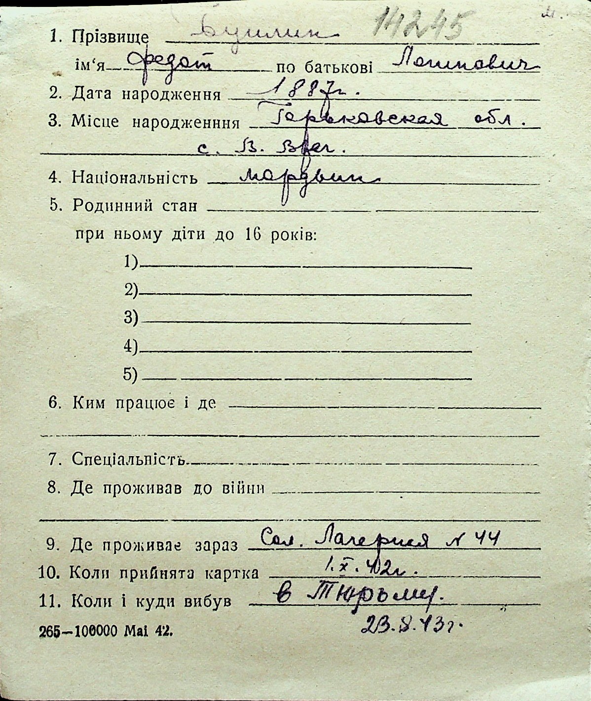 ◦ ◦ Перелік карток на осіб, які мешкали у м. Миколаїв у період окупації 1941–1944 років