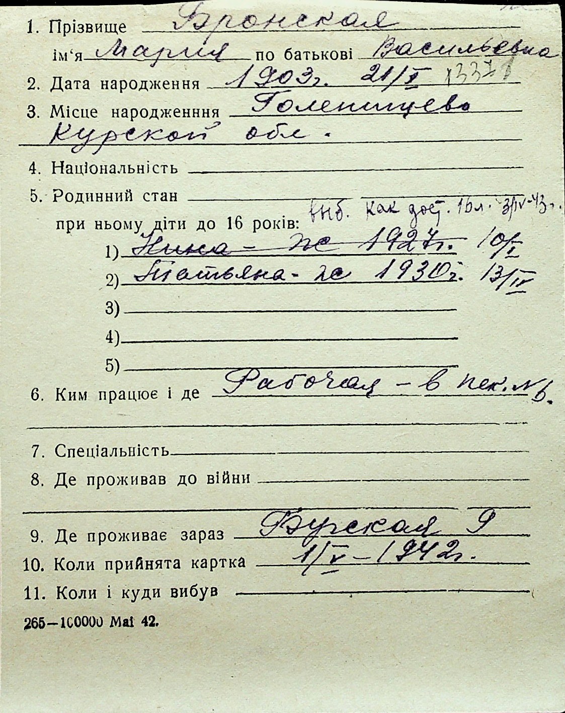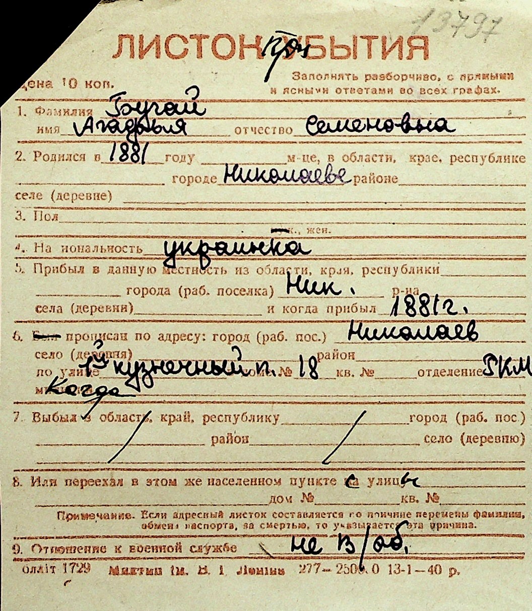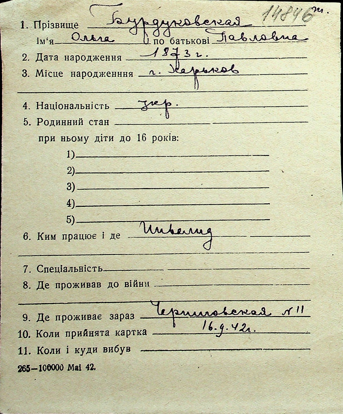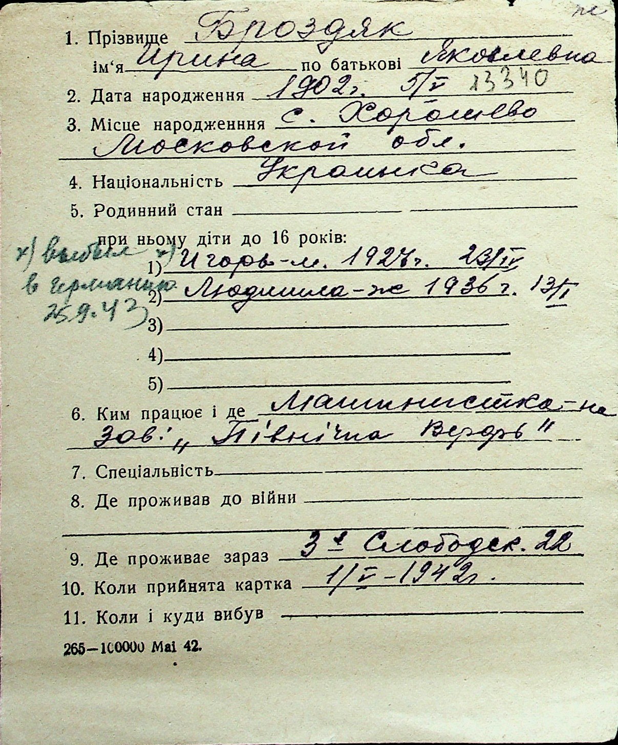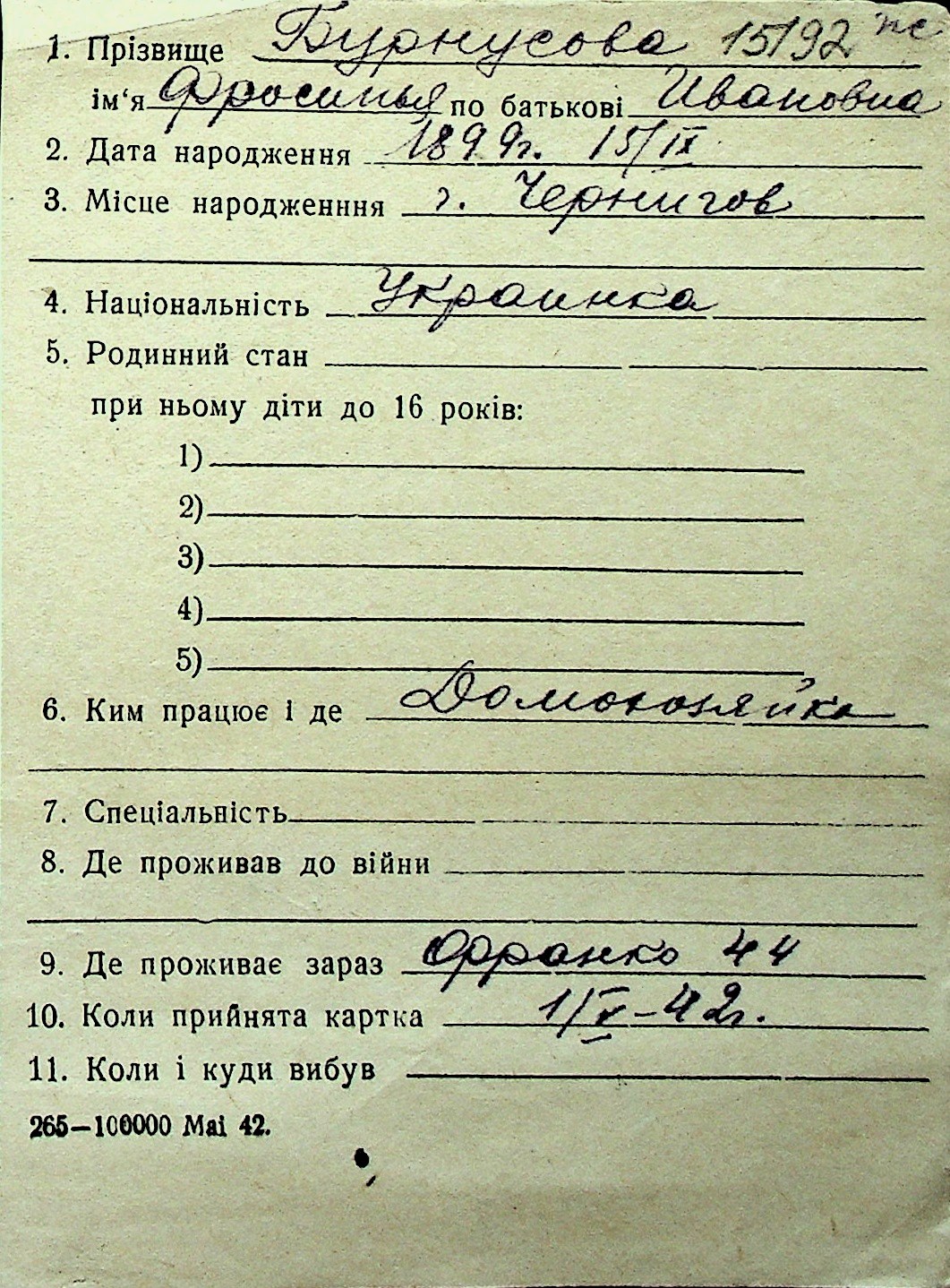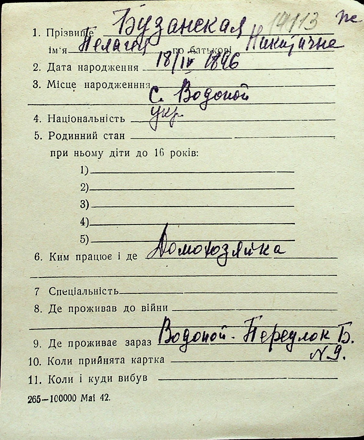 ◦ ◦ Перелік карток на осіб, які мешкали у м. Миколаїв у період окупації 1941–1944 років