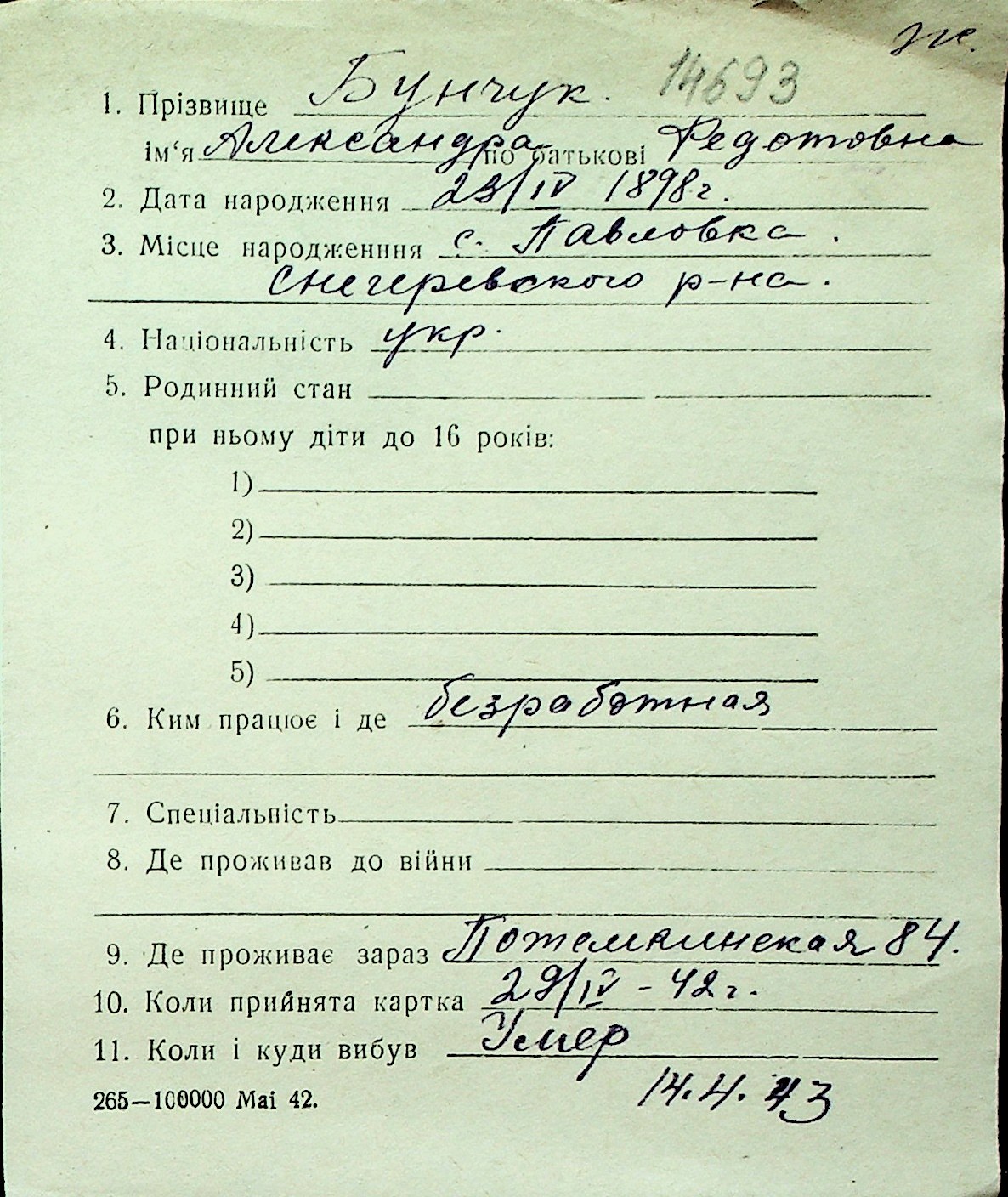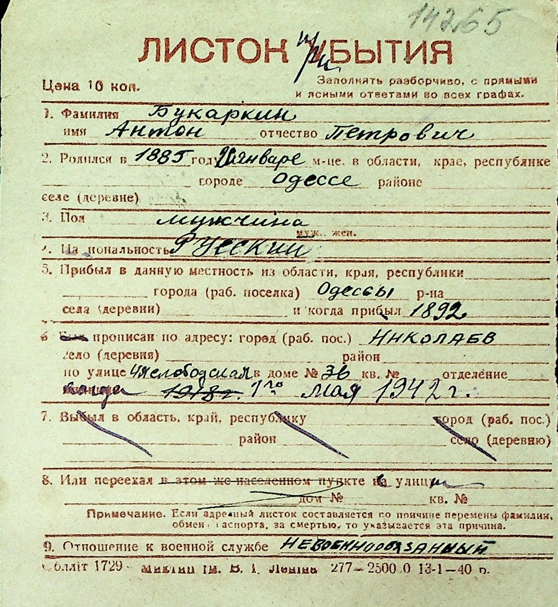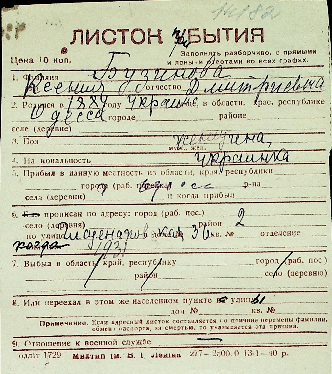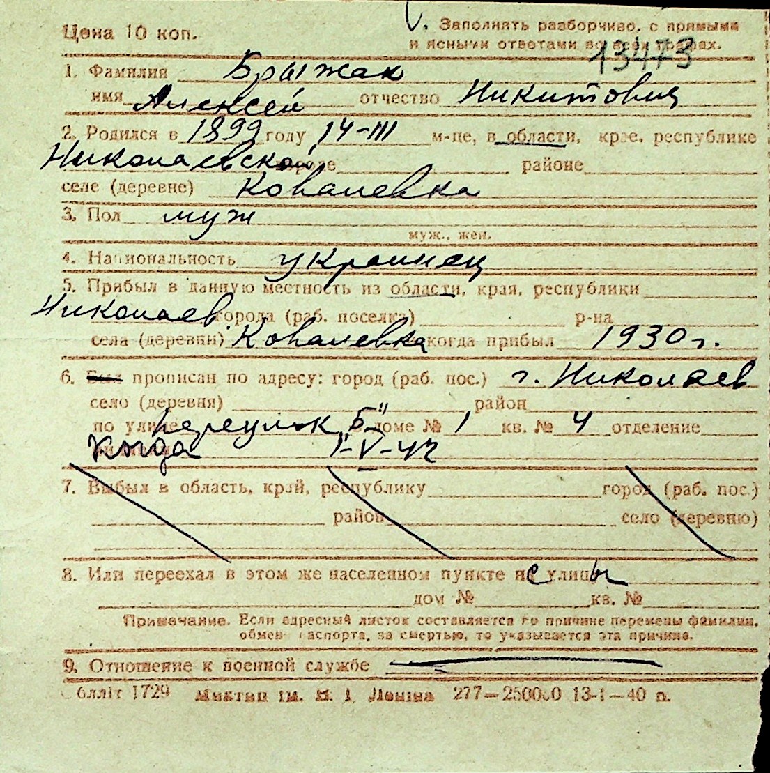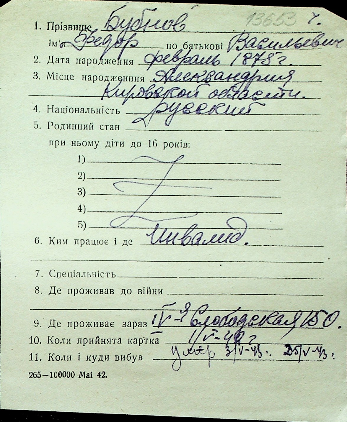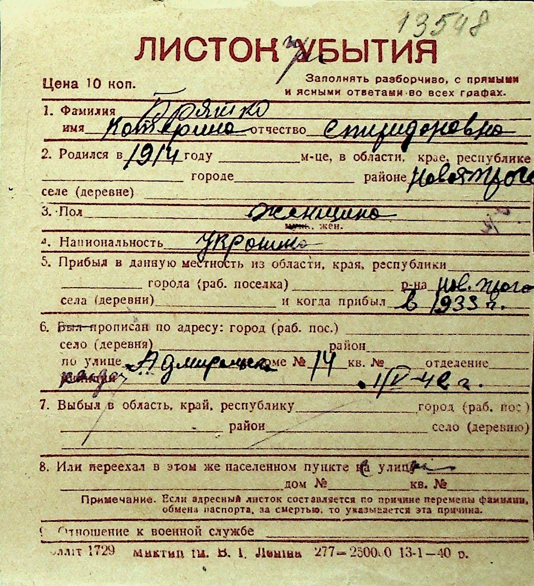 ◦ ◦ Перелік карток на осіб, які мешкали у м. Миколаїв у період окупації 1941–1944 років