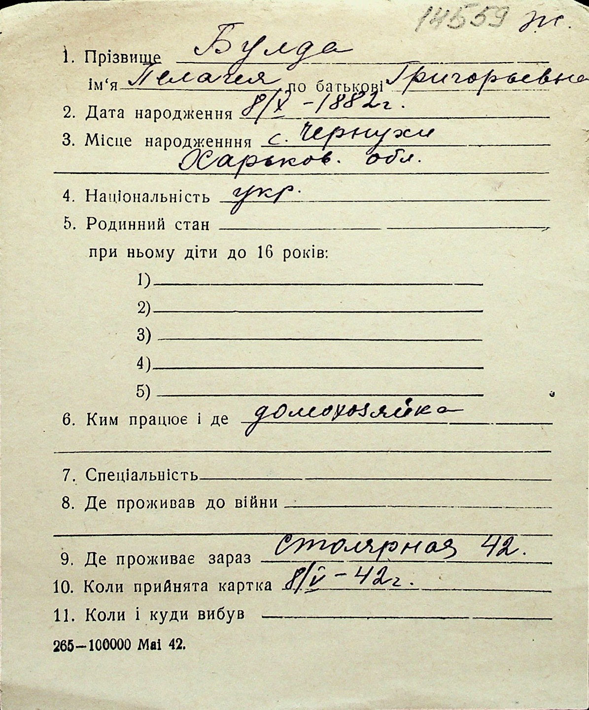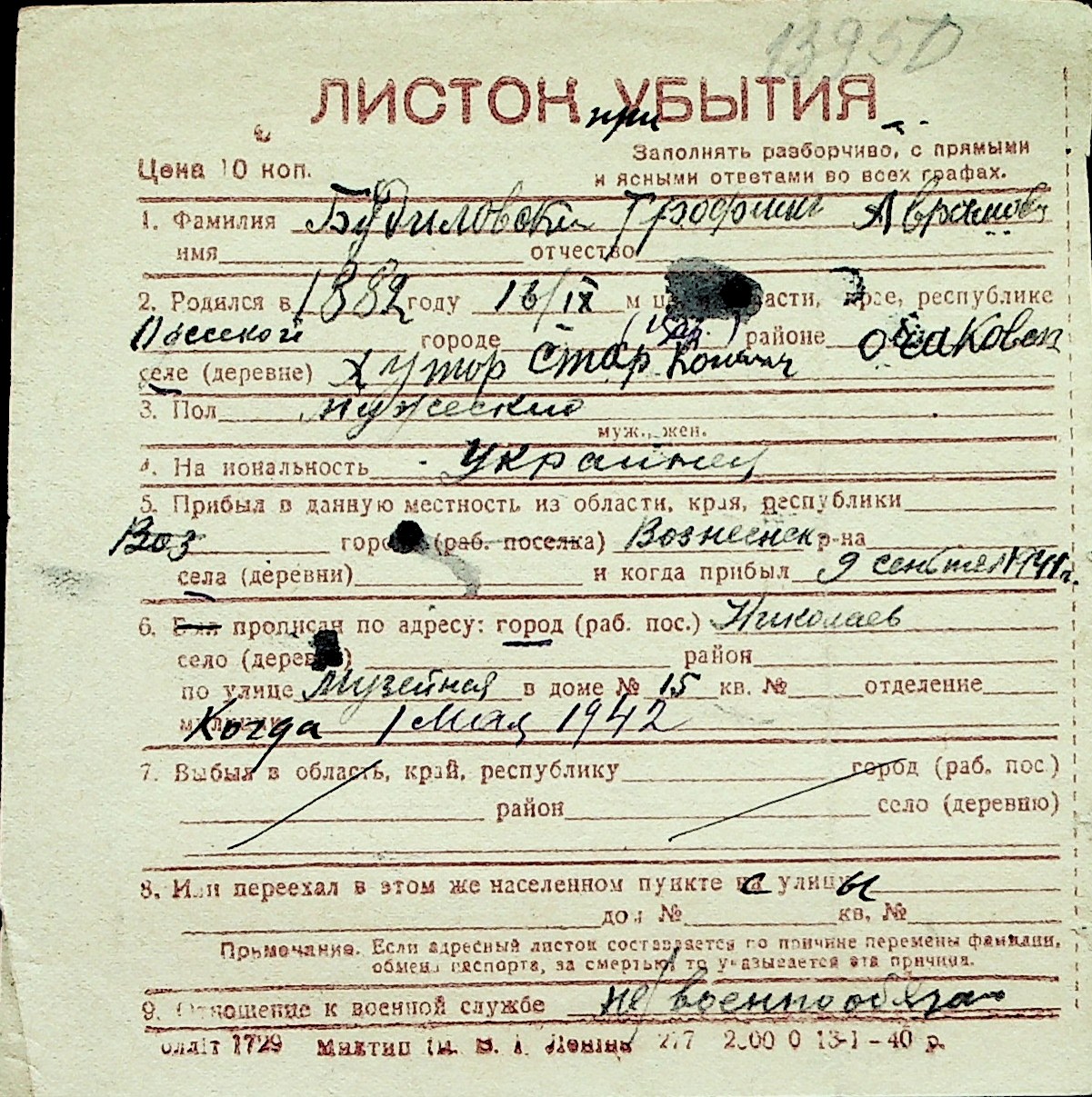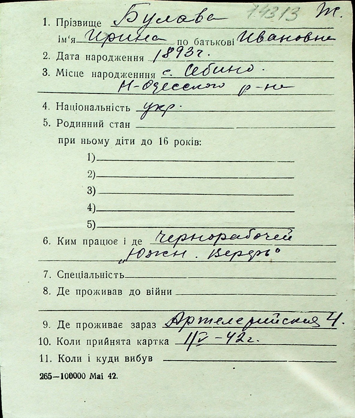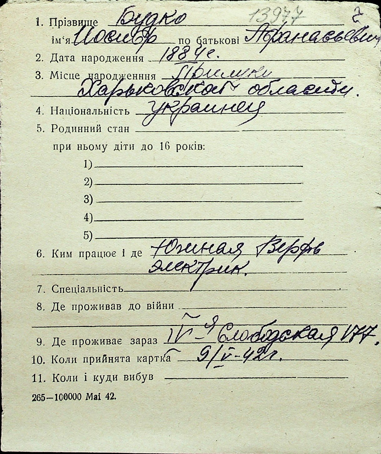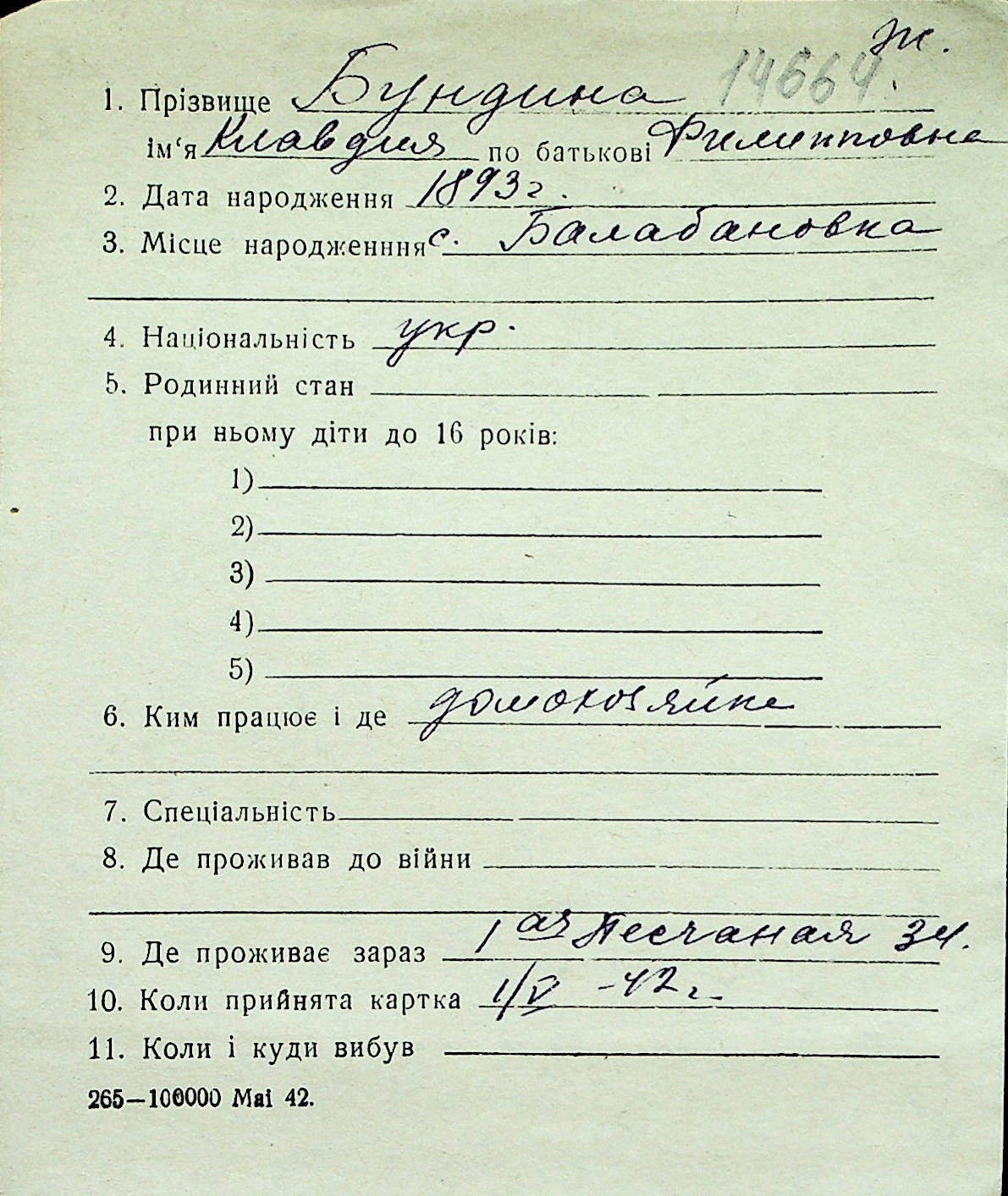 ◦ ◦ Перелік карток на осіб, які мешкали у м. Миколаїв у період окупації 1941–1944 років