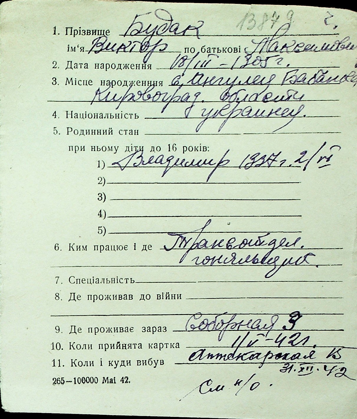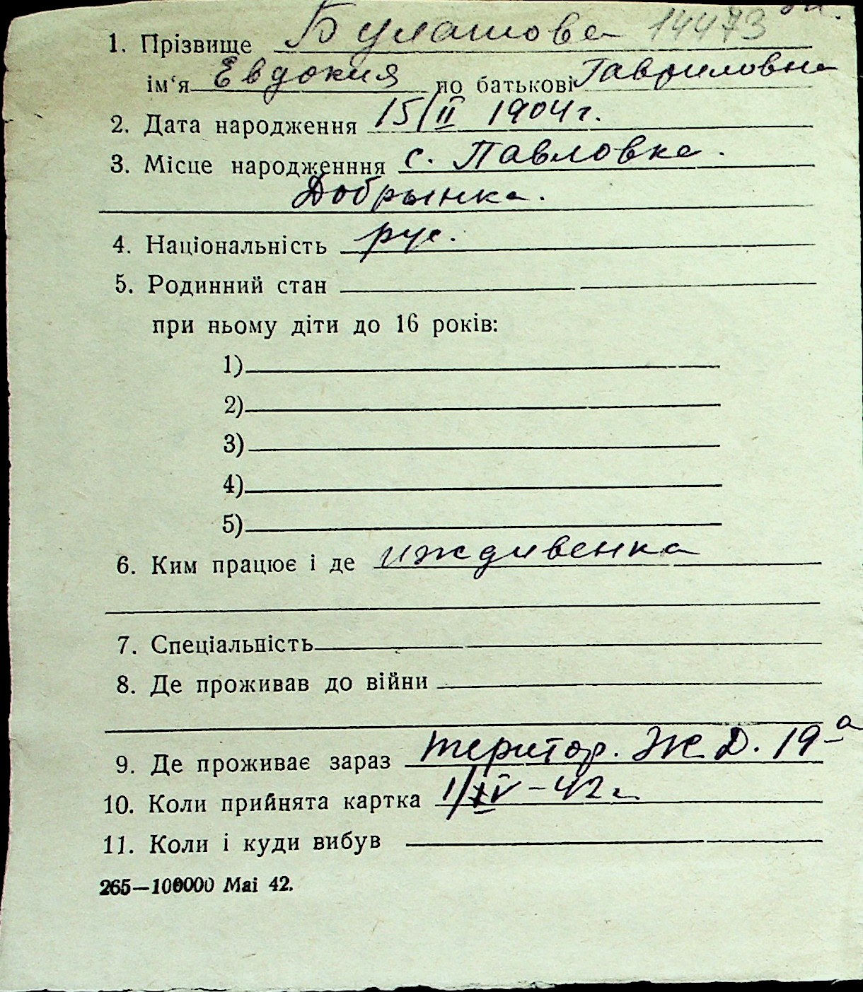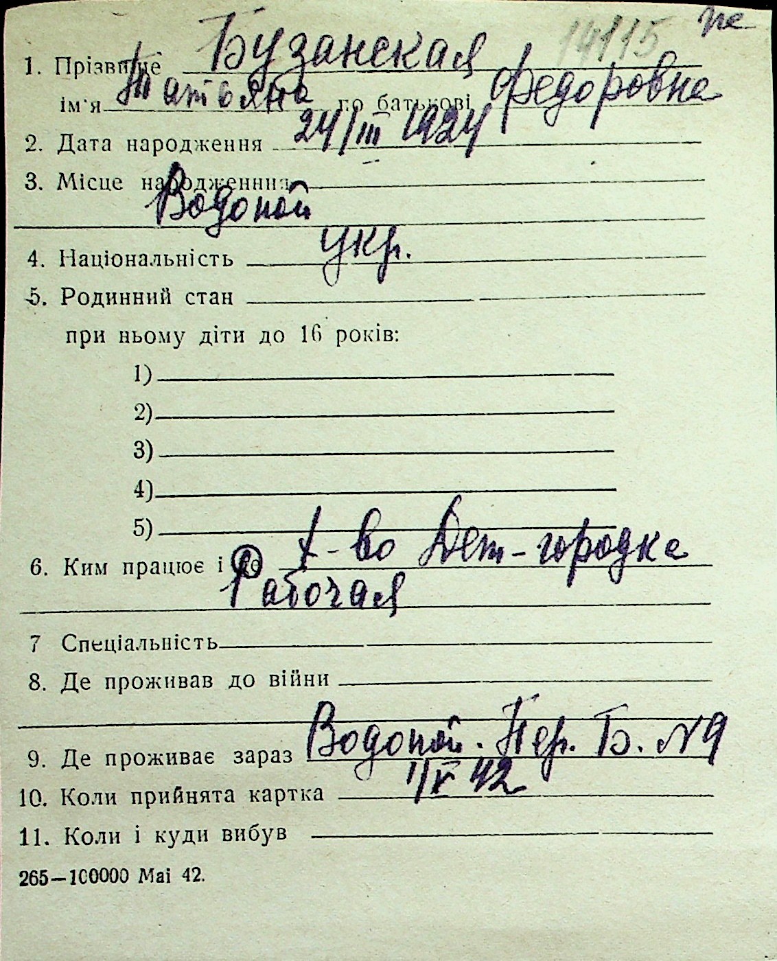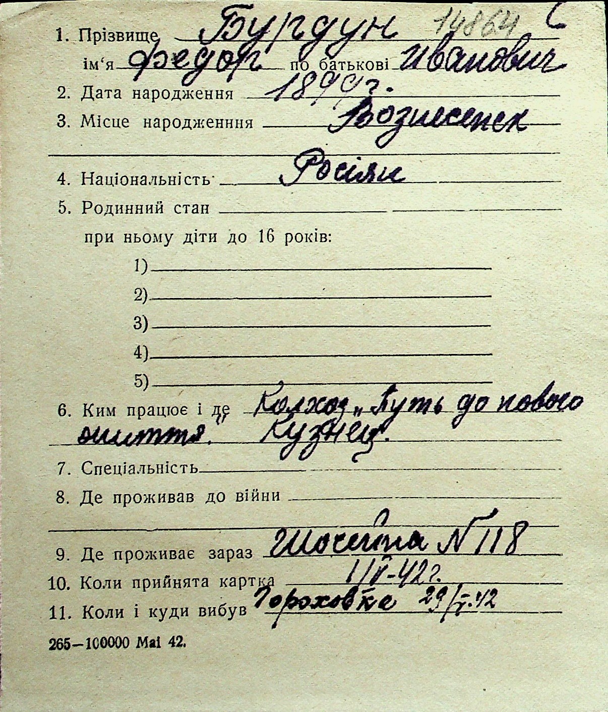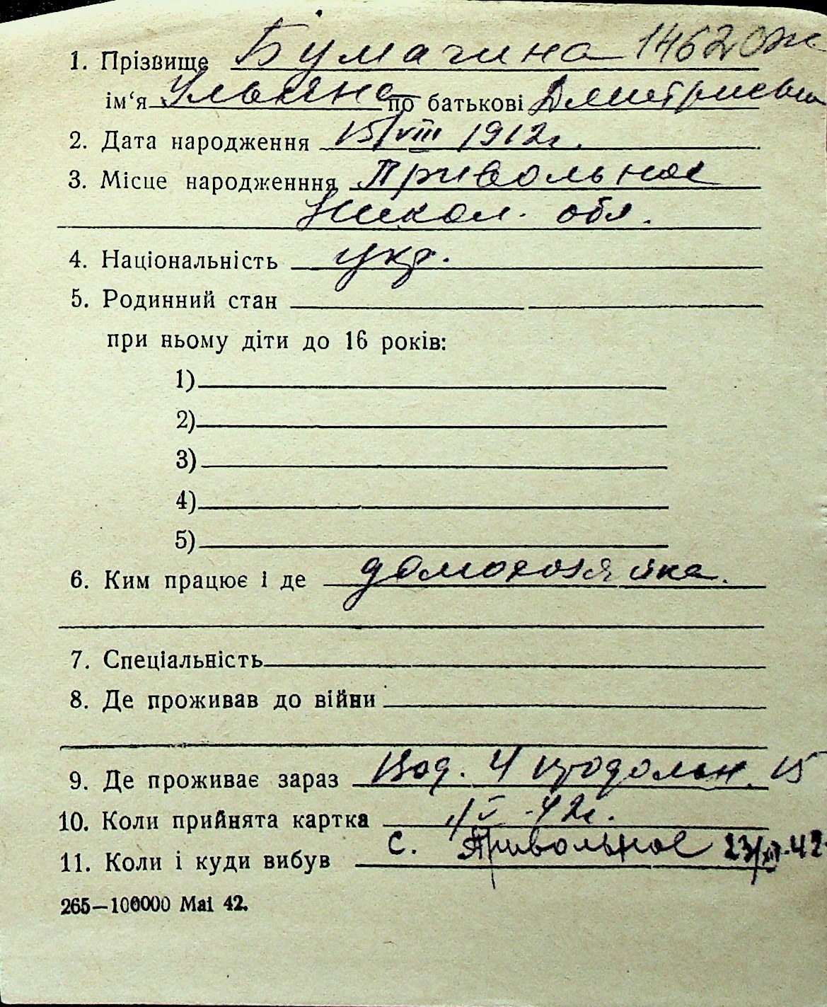 ◦ ◦ Перелік карток на осіб, які мешкали у м. Миколаїв у період окупації 1941–1944 років
