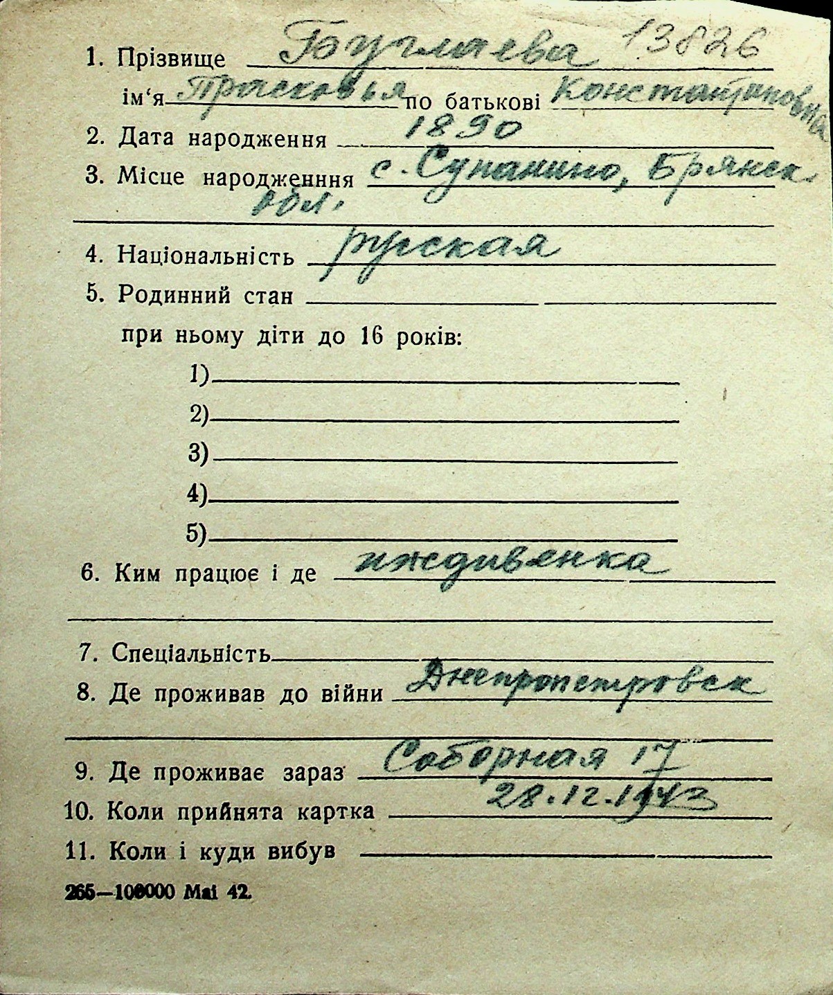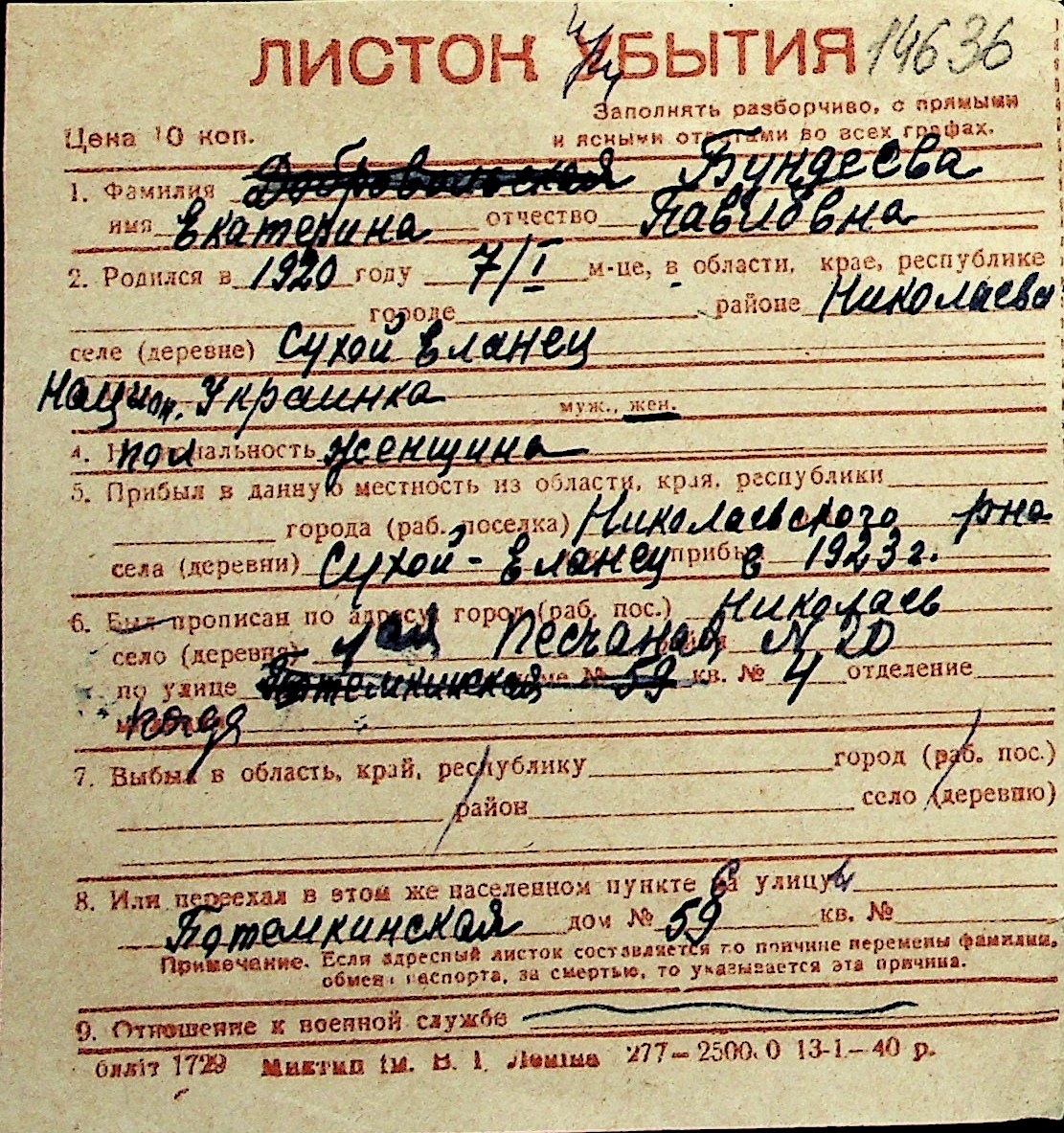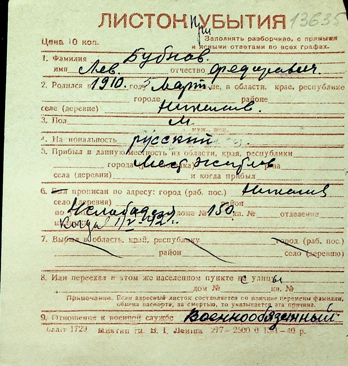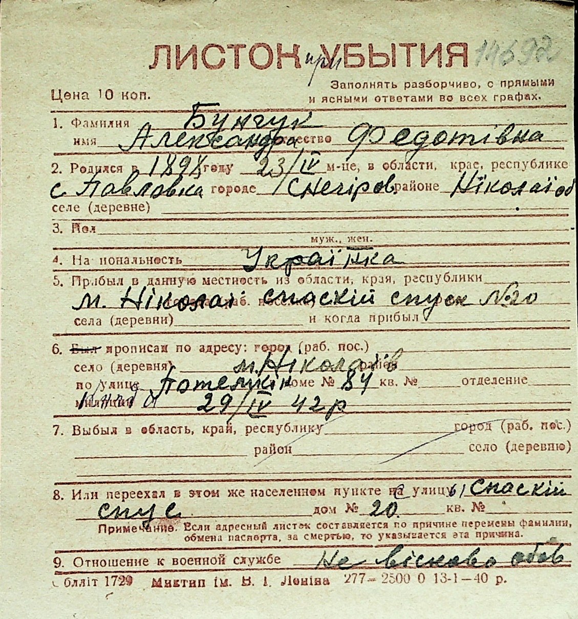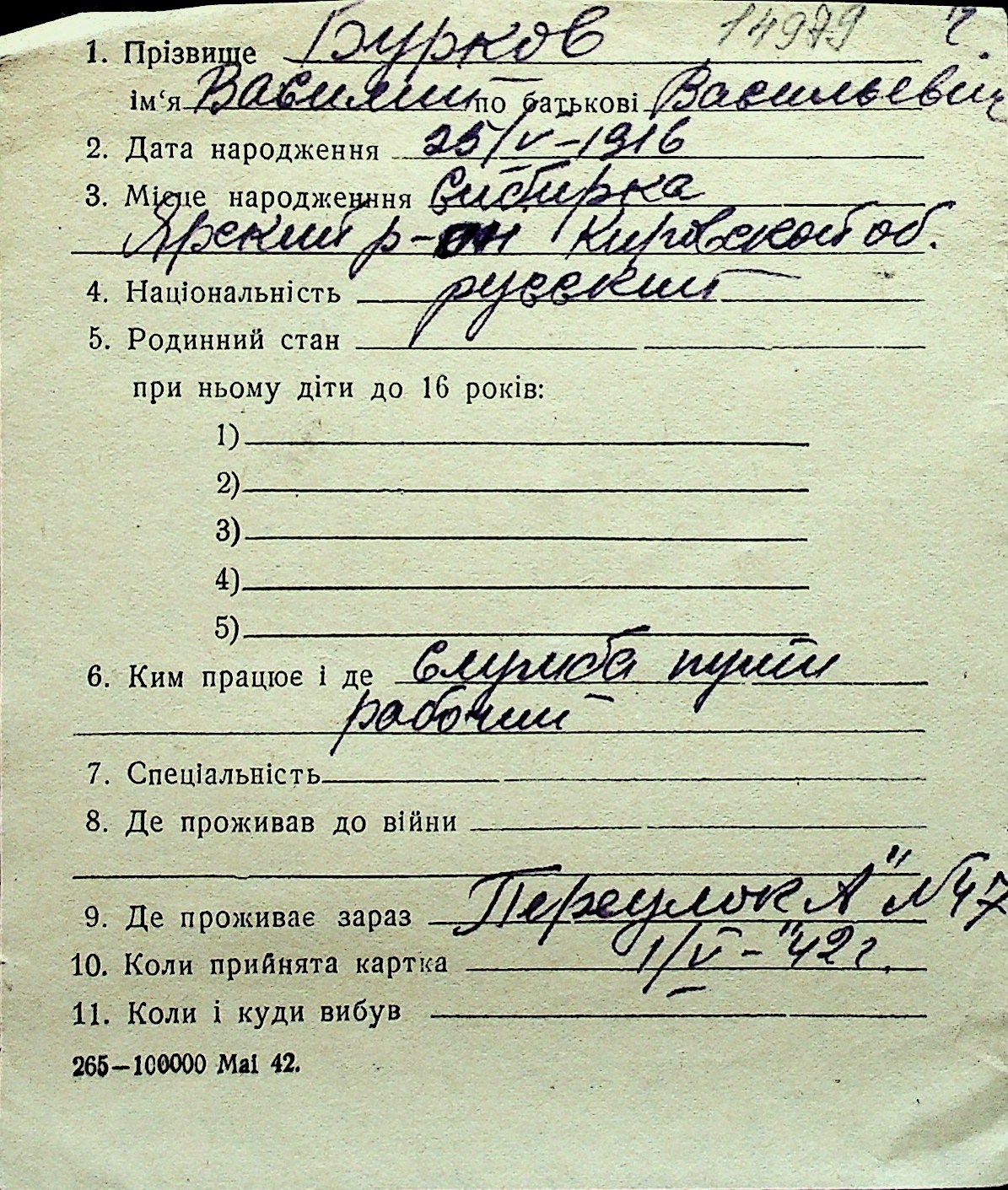 ◦ ◦ Перелік карток на осіб, які мешкали у м. Миколаїв у період окупації 1941–1944 років