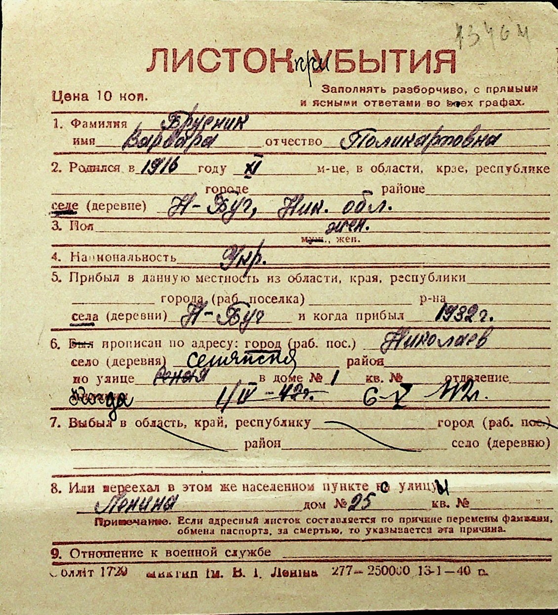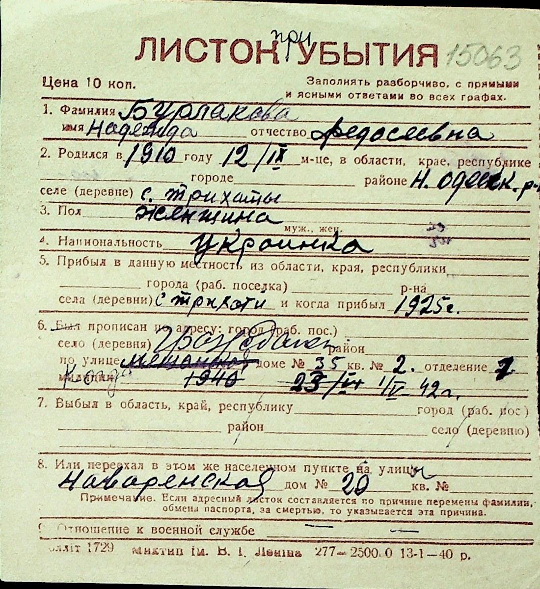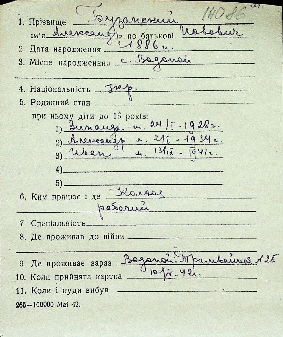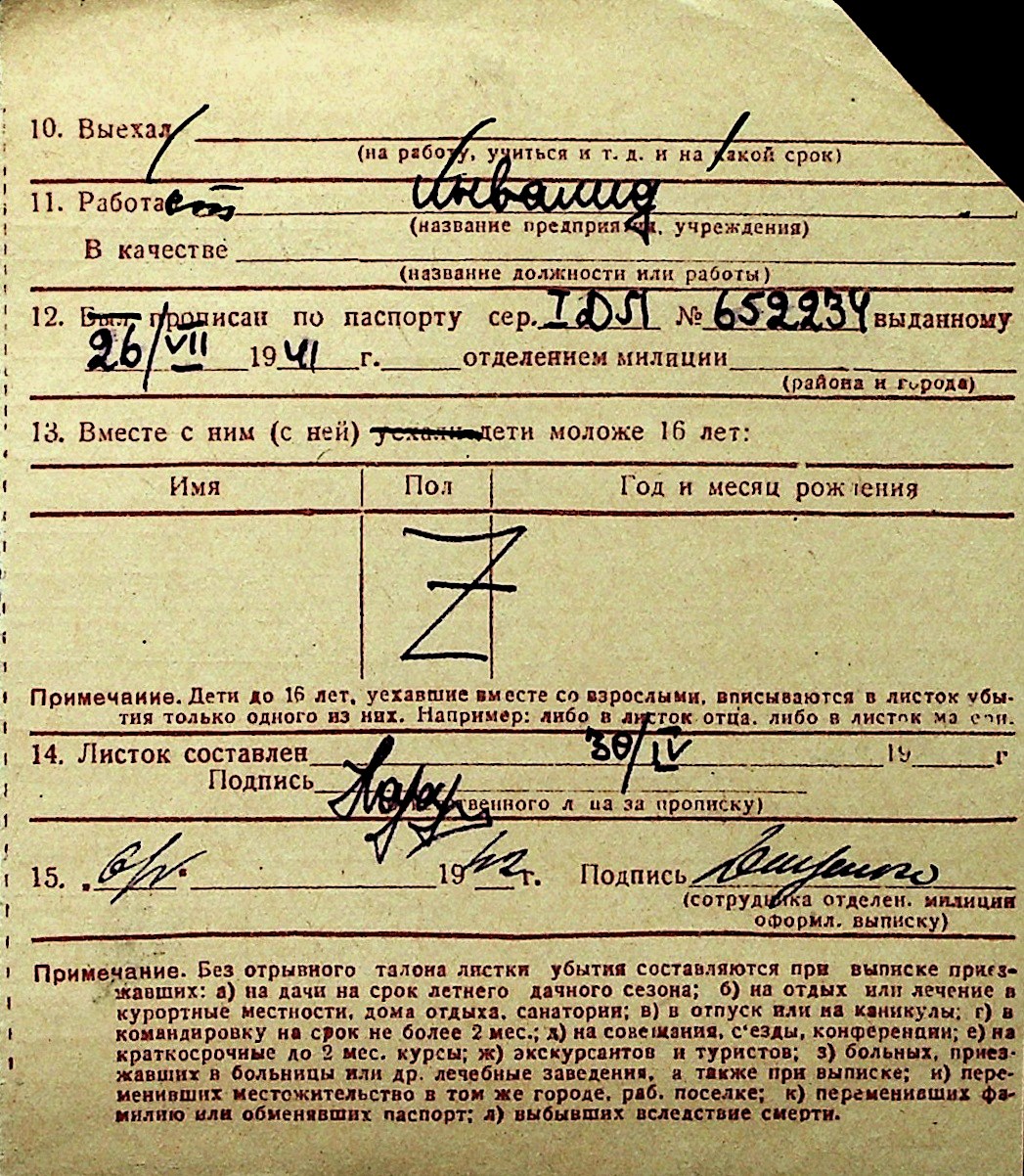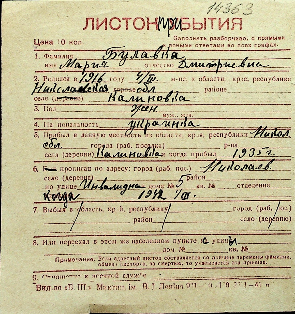 ◦ ◦ Перелік карток на осіб, які мешкали у м. Миколаїв у період окупації 1941–1944 років