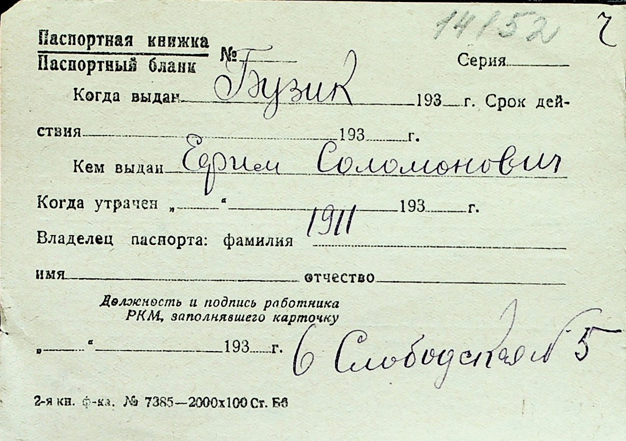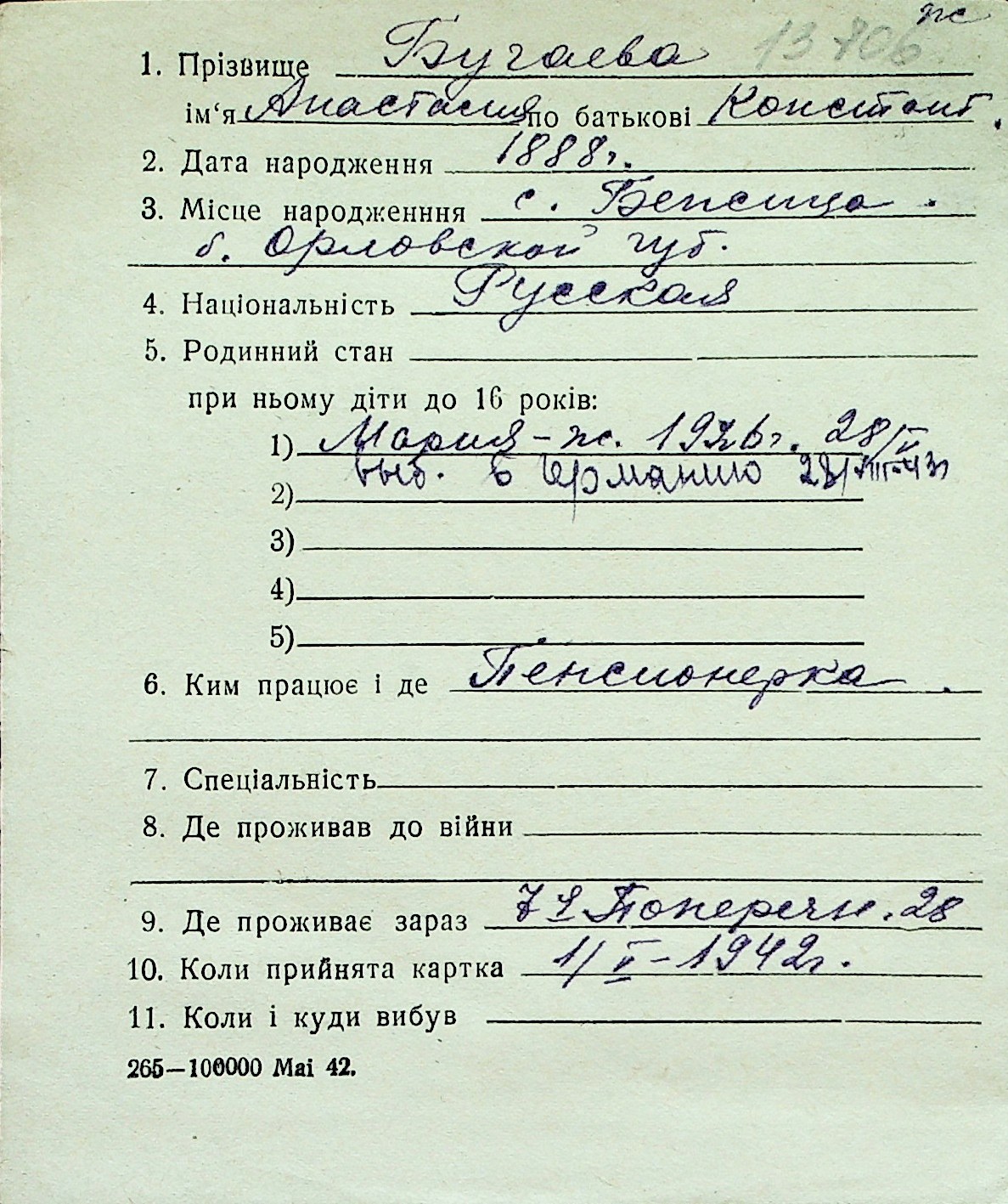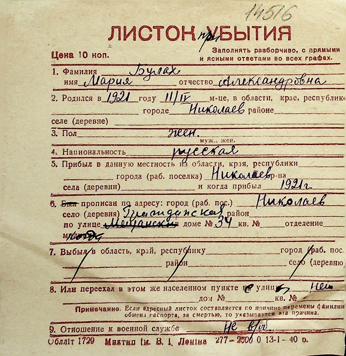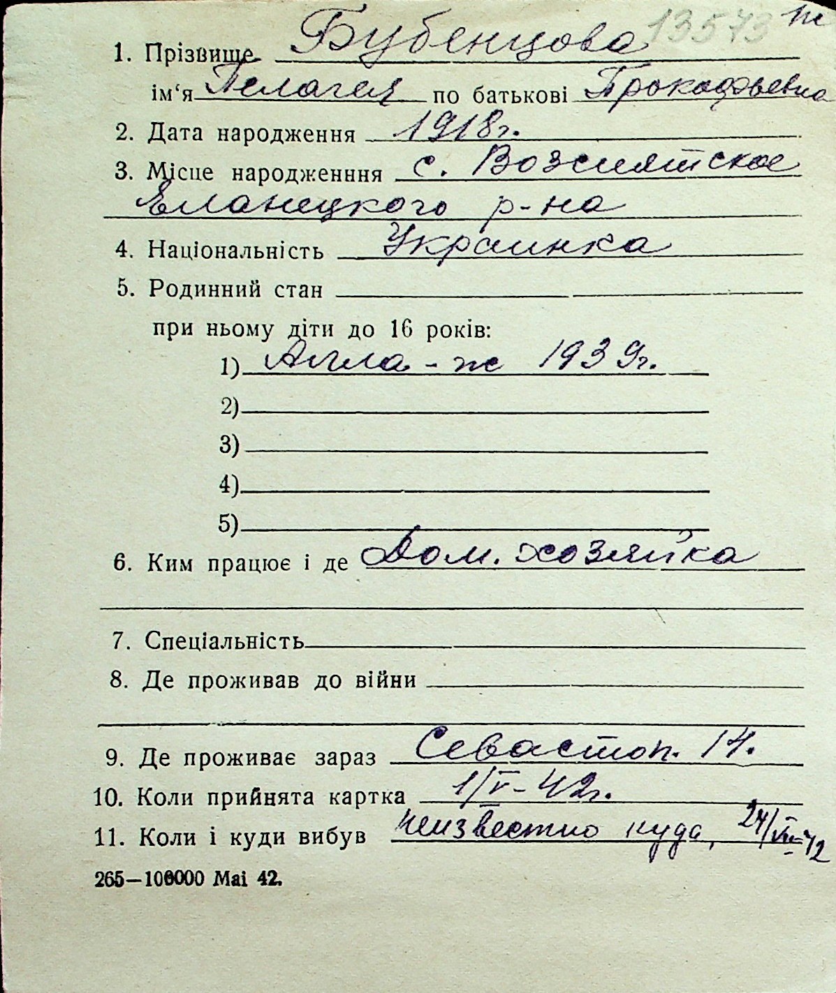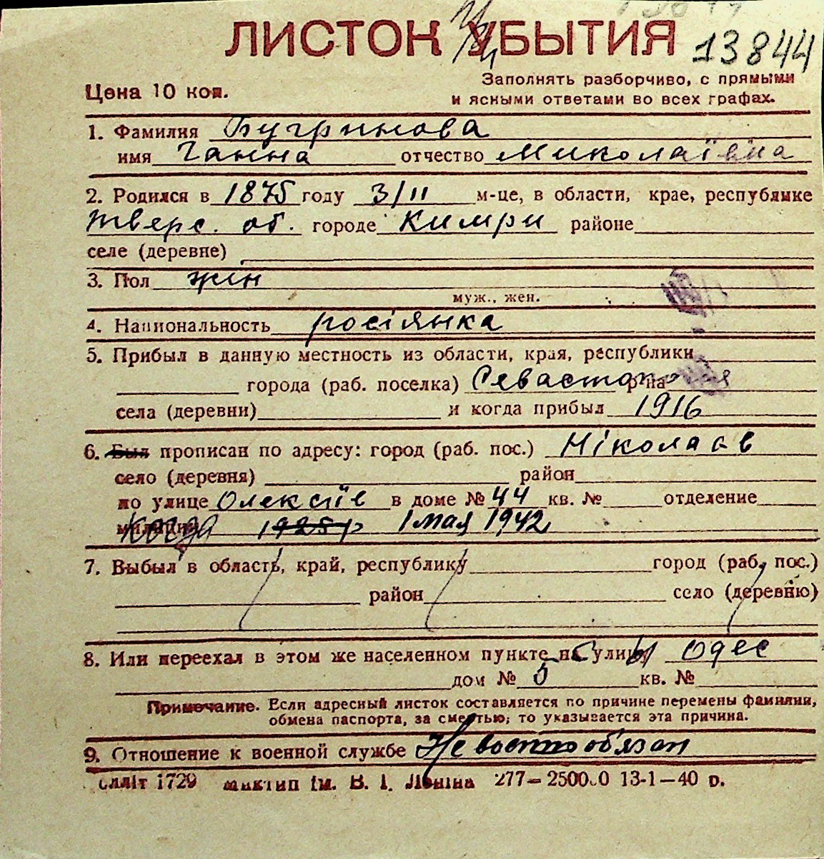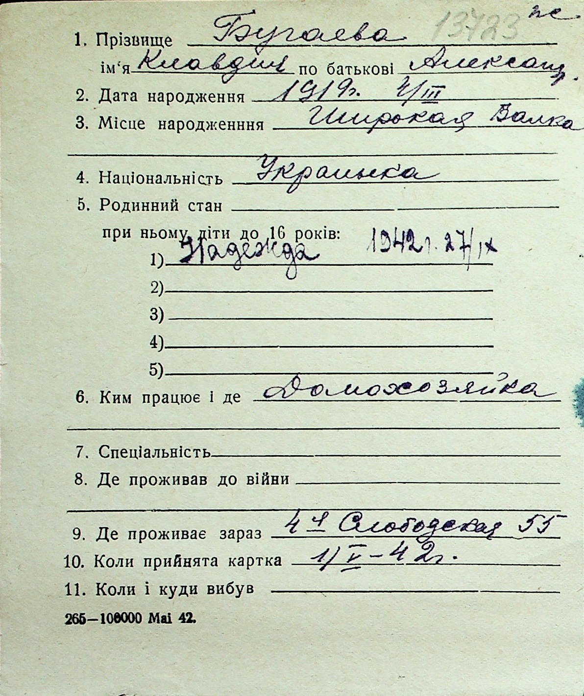 ◦ ◦ Перелік карток на осіб, які мешкали у м. Миколаїв у період окупації 1941–1944 років