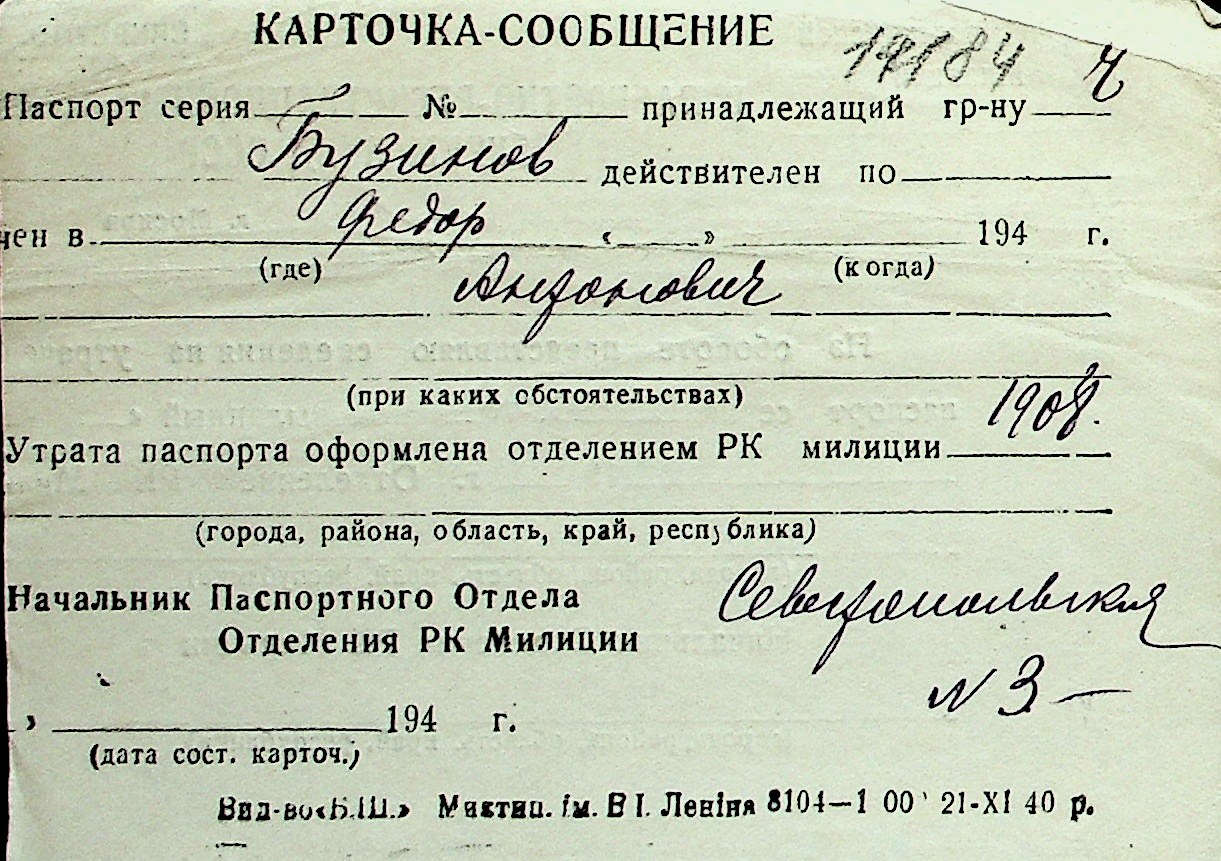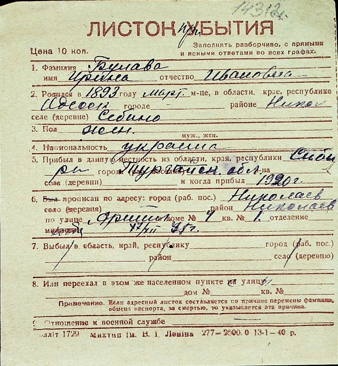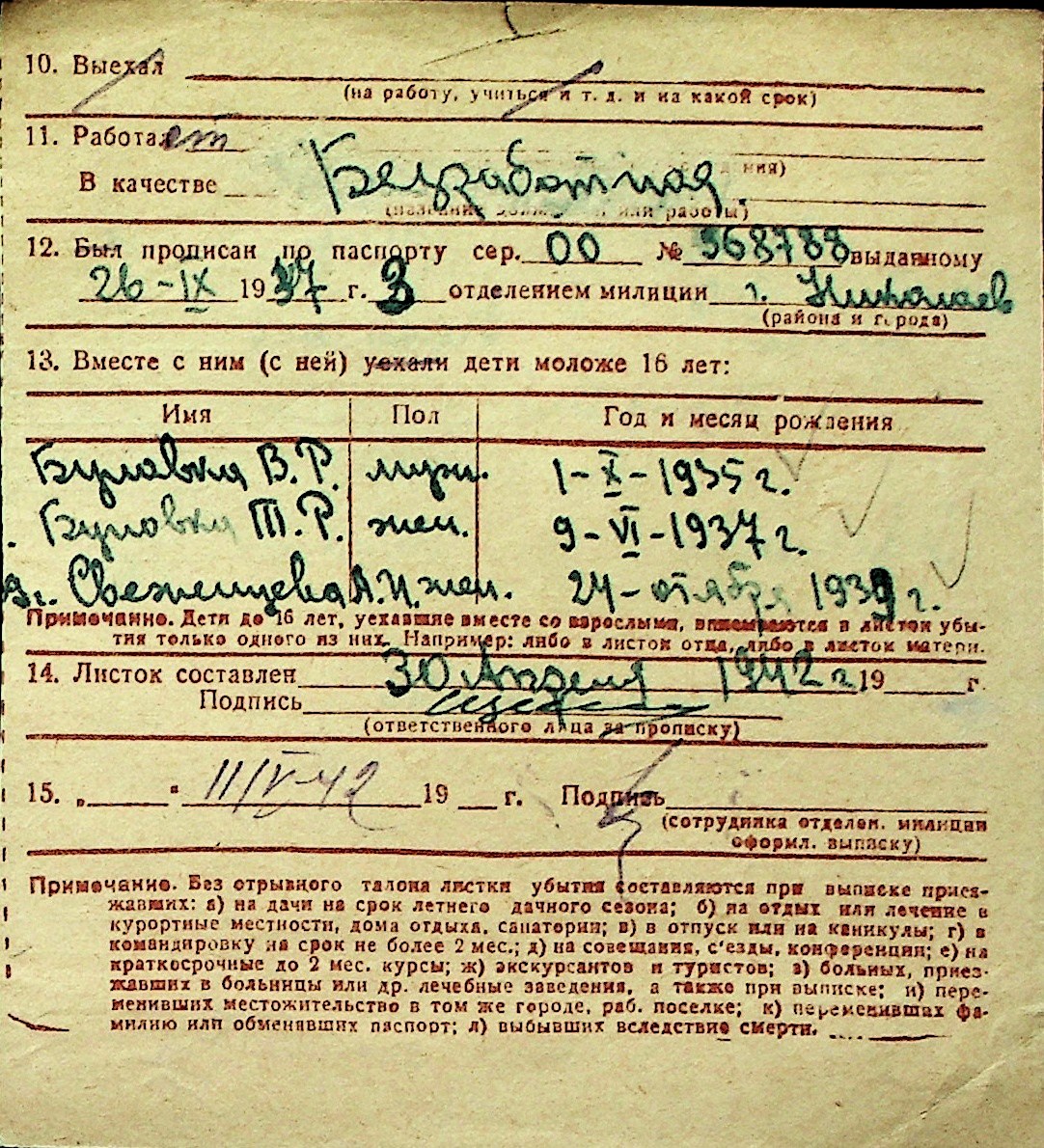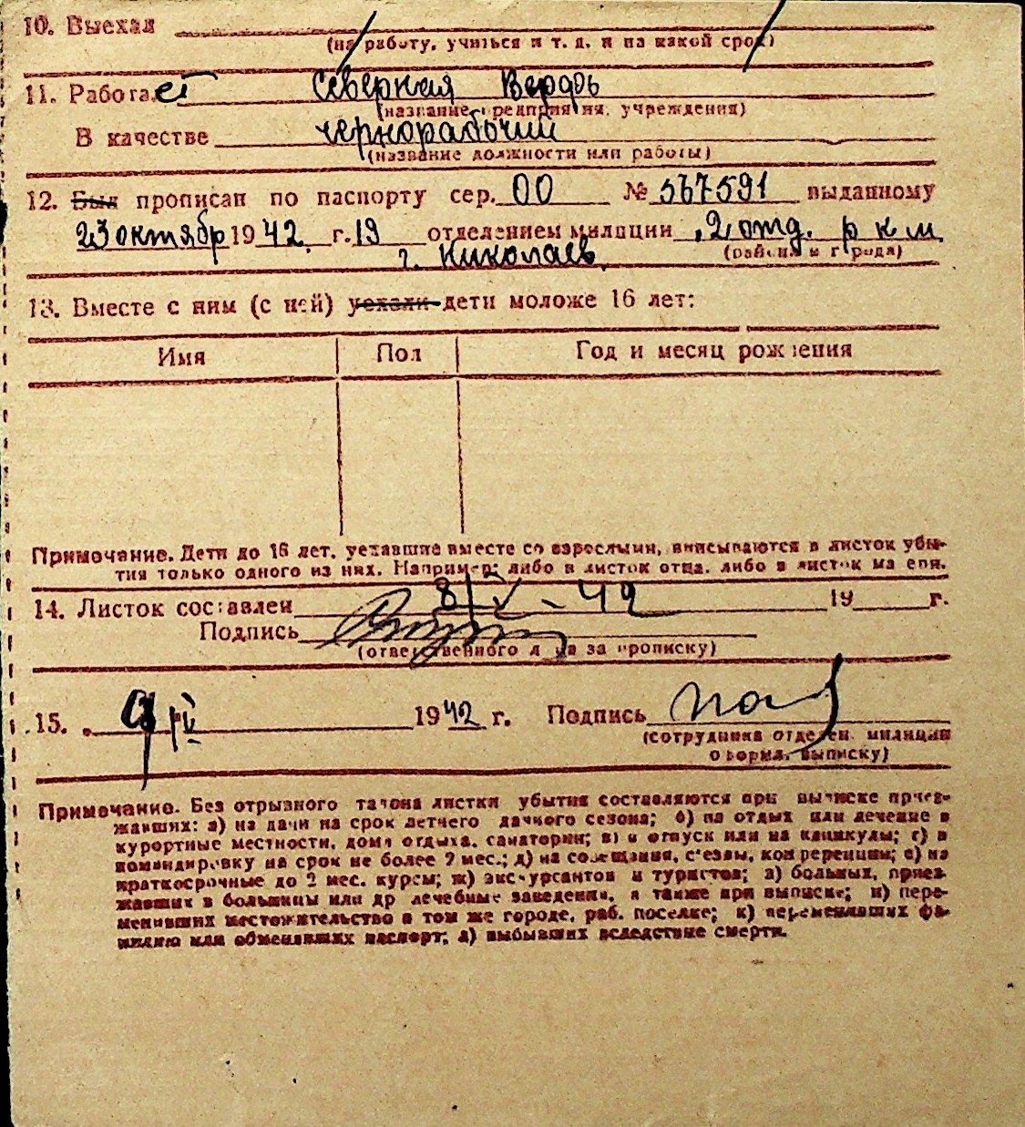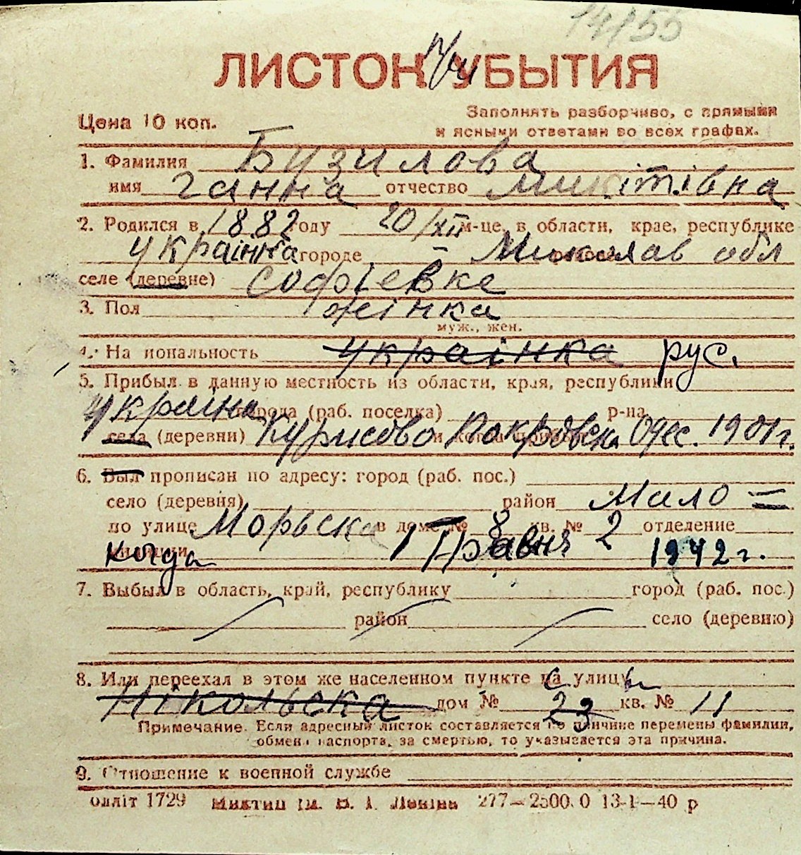 ◦ ◦ Перелік карток на осіб, які мешкали у м. Миколаїв у період окупації 1941–1944 років