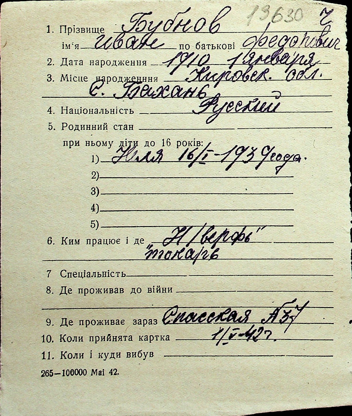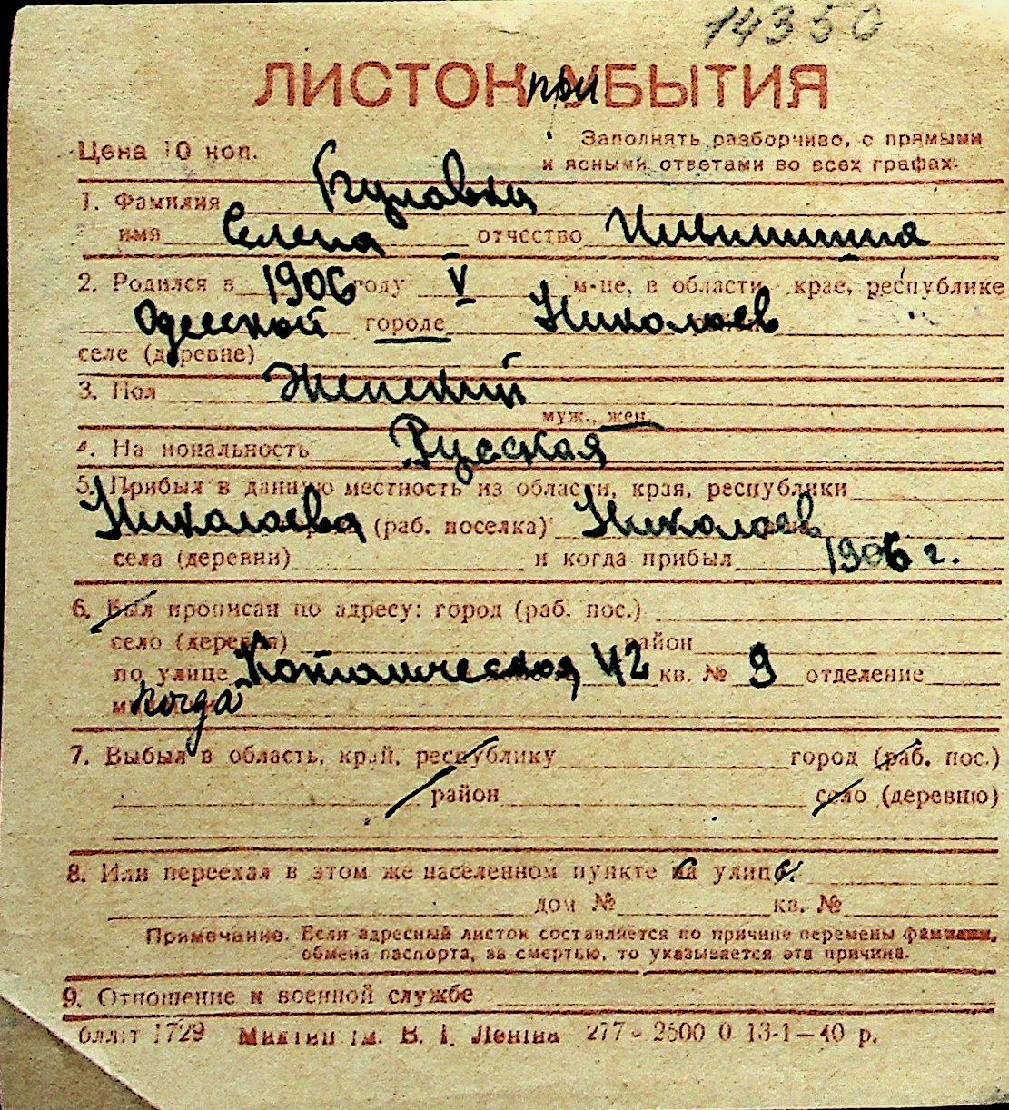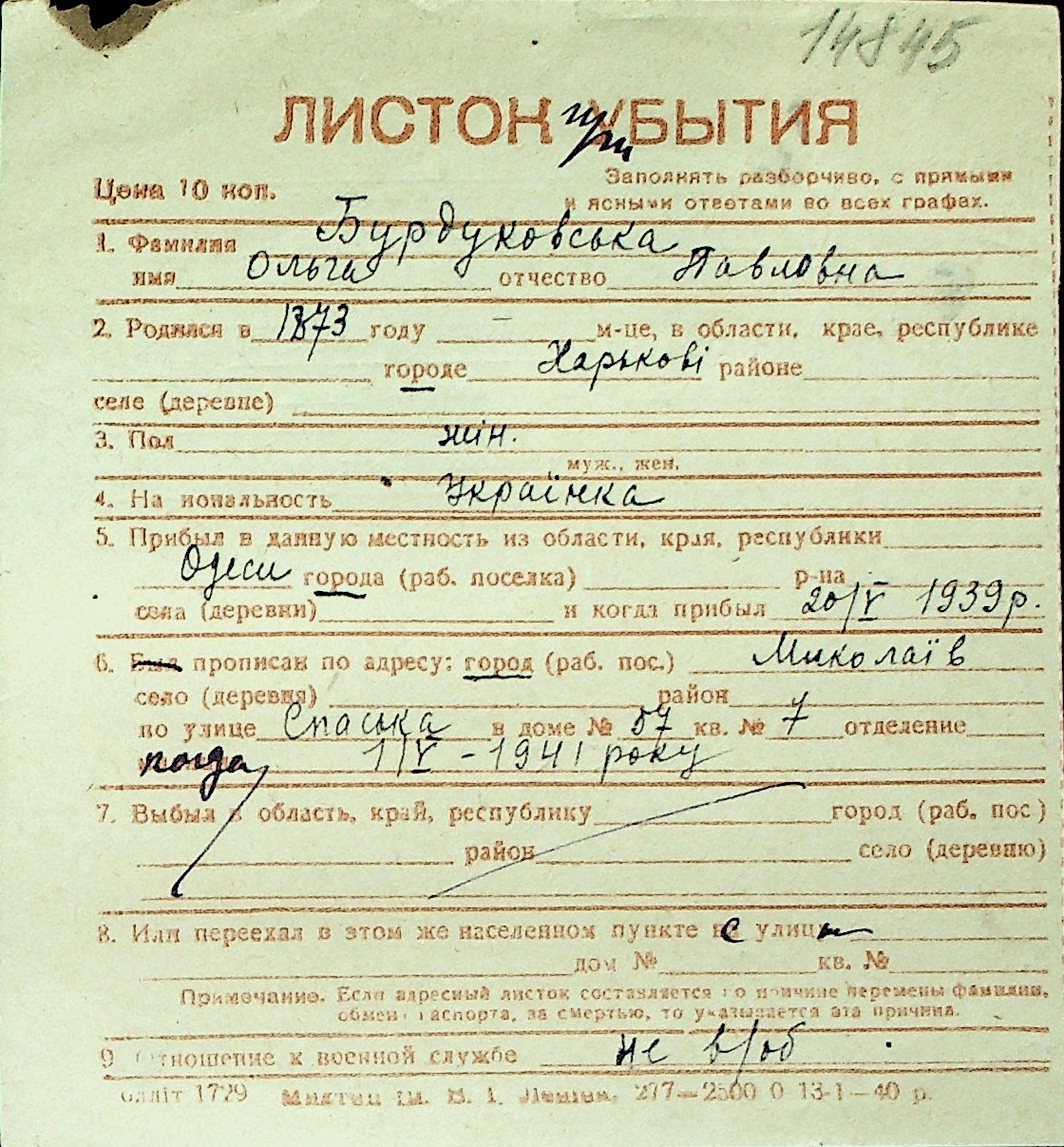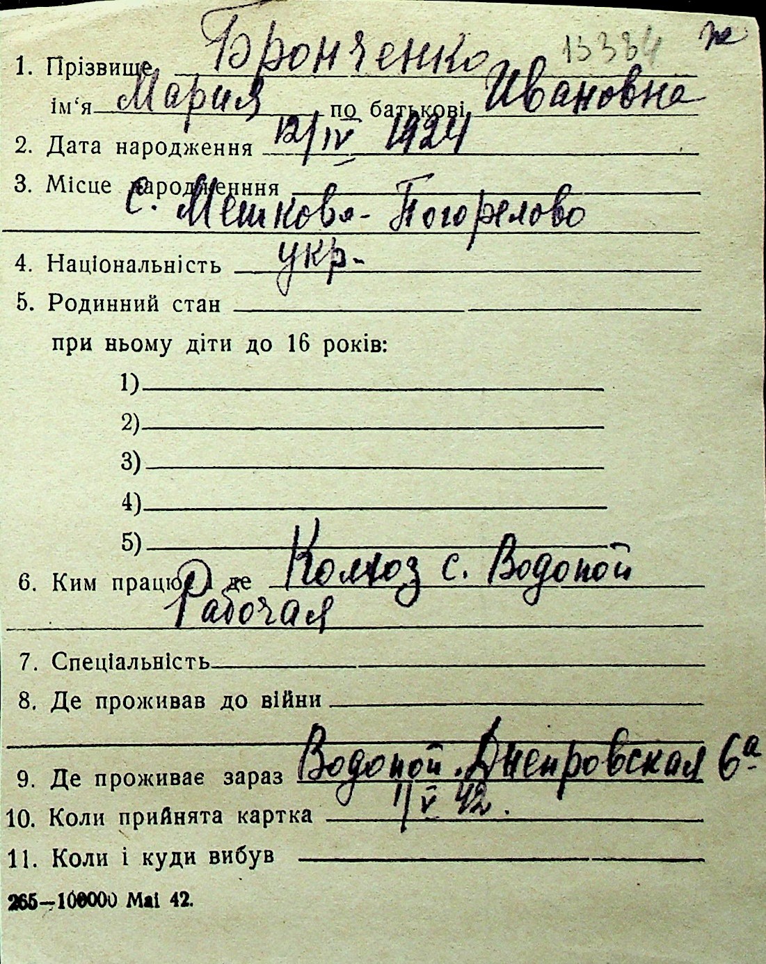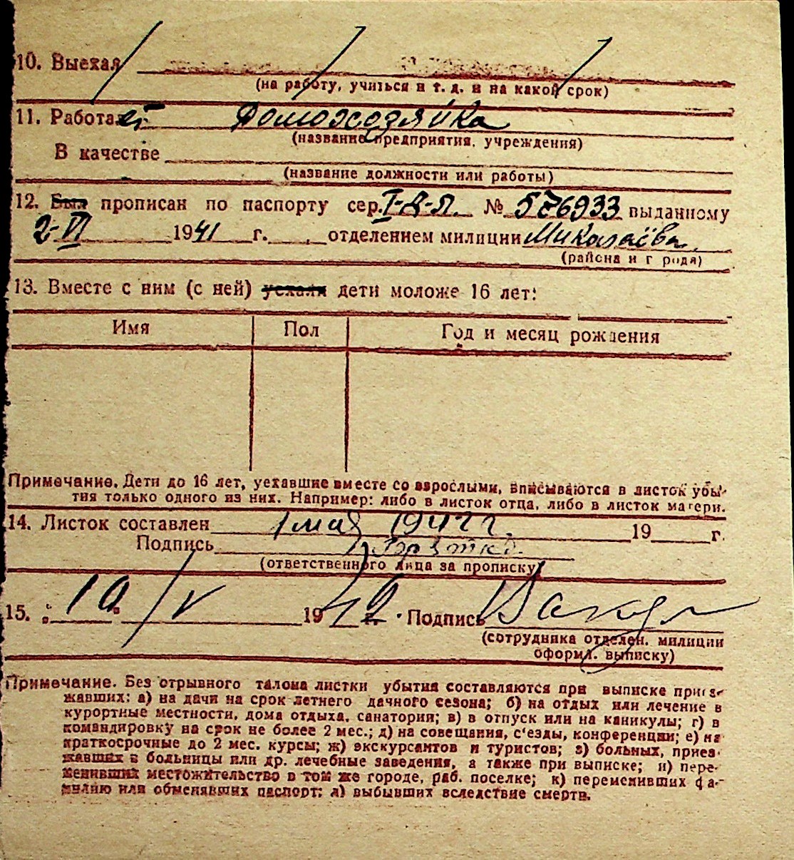 ◦ ◦ Перелік карток на осіб, які мешкали у м. Миколаїв у період окупації 1941–1944 років