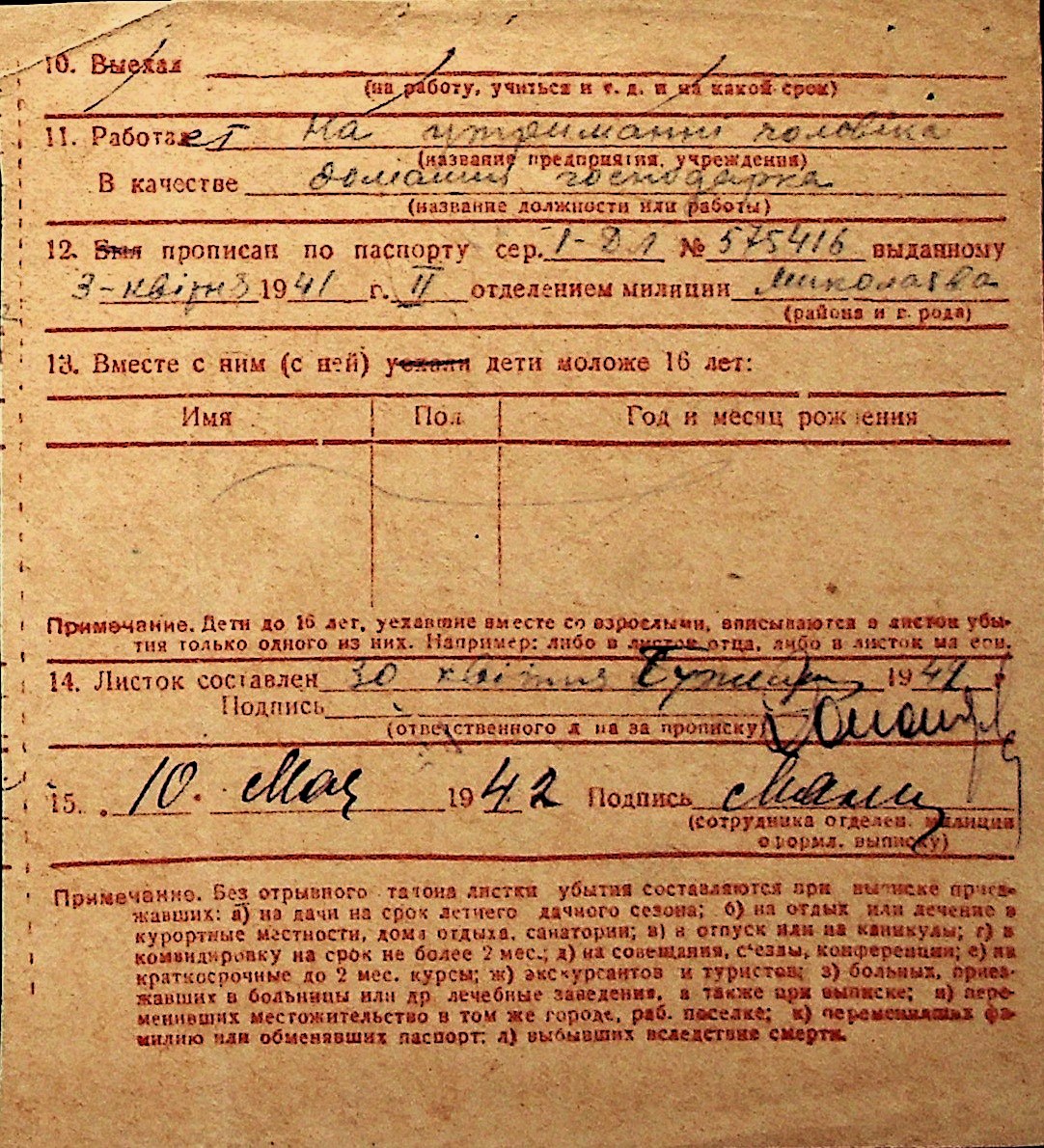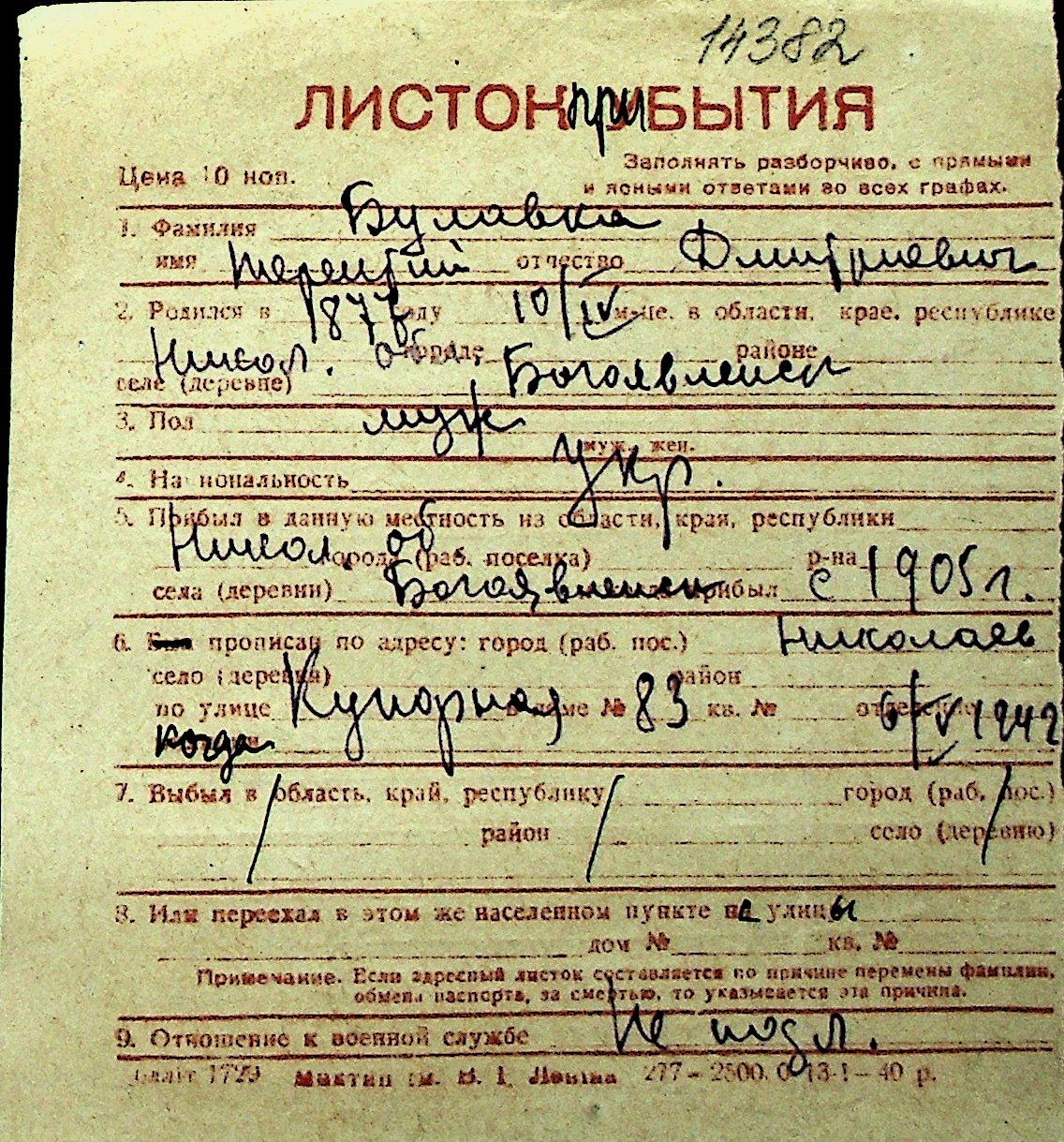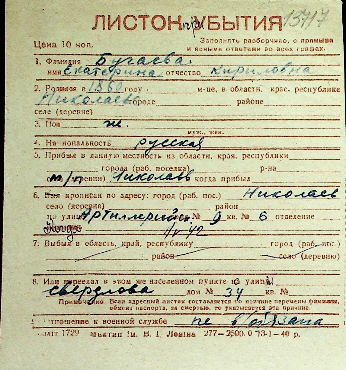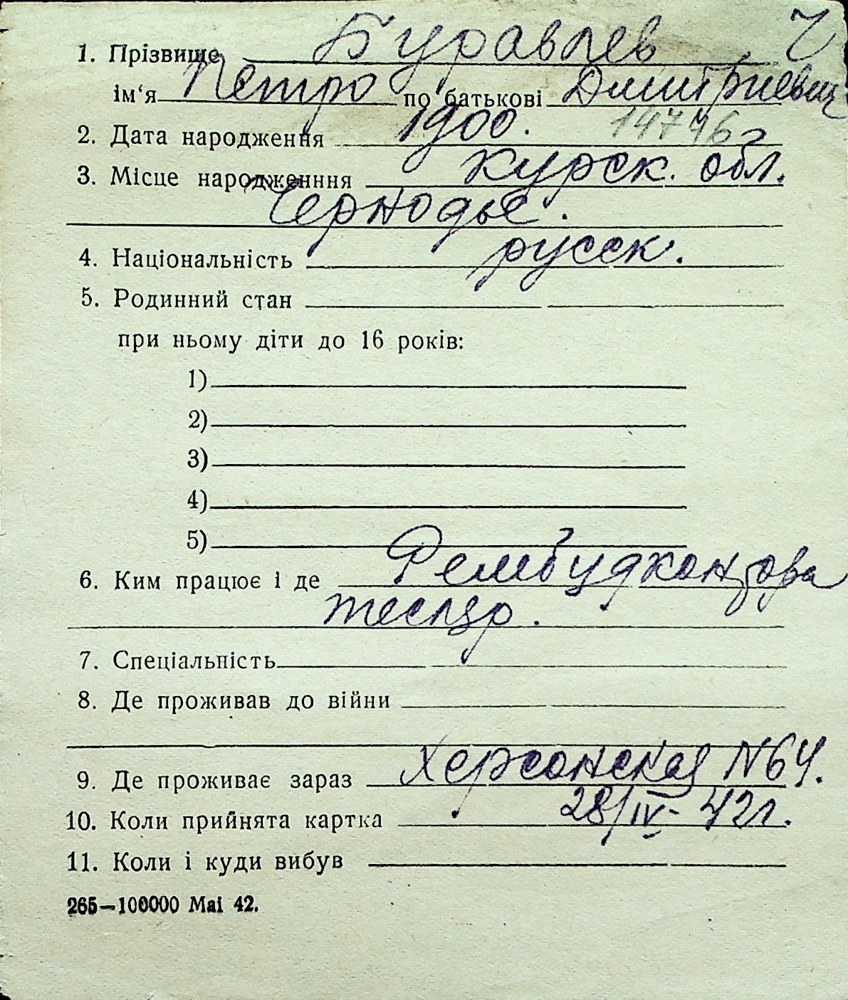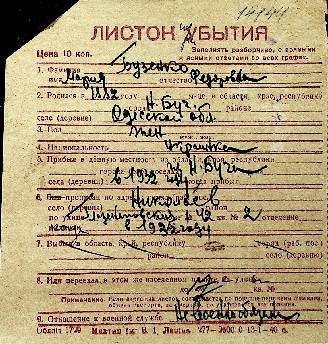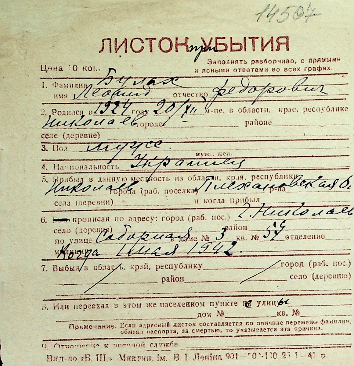 ◦ ◦ Перелік карток на осіб, які мешкали у м. Миколаїв у період окупації 1941–1944 років