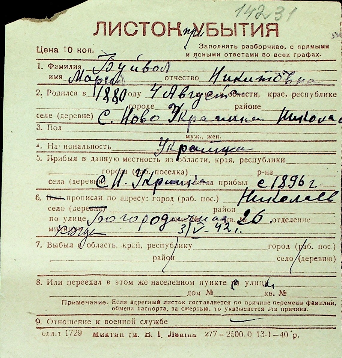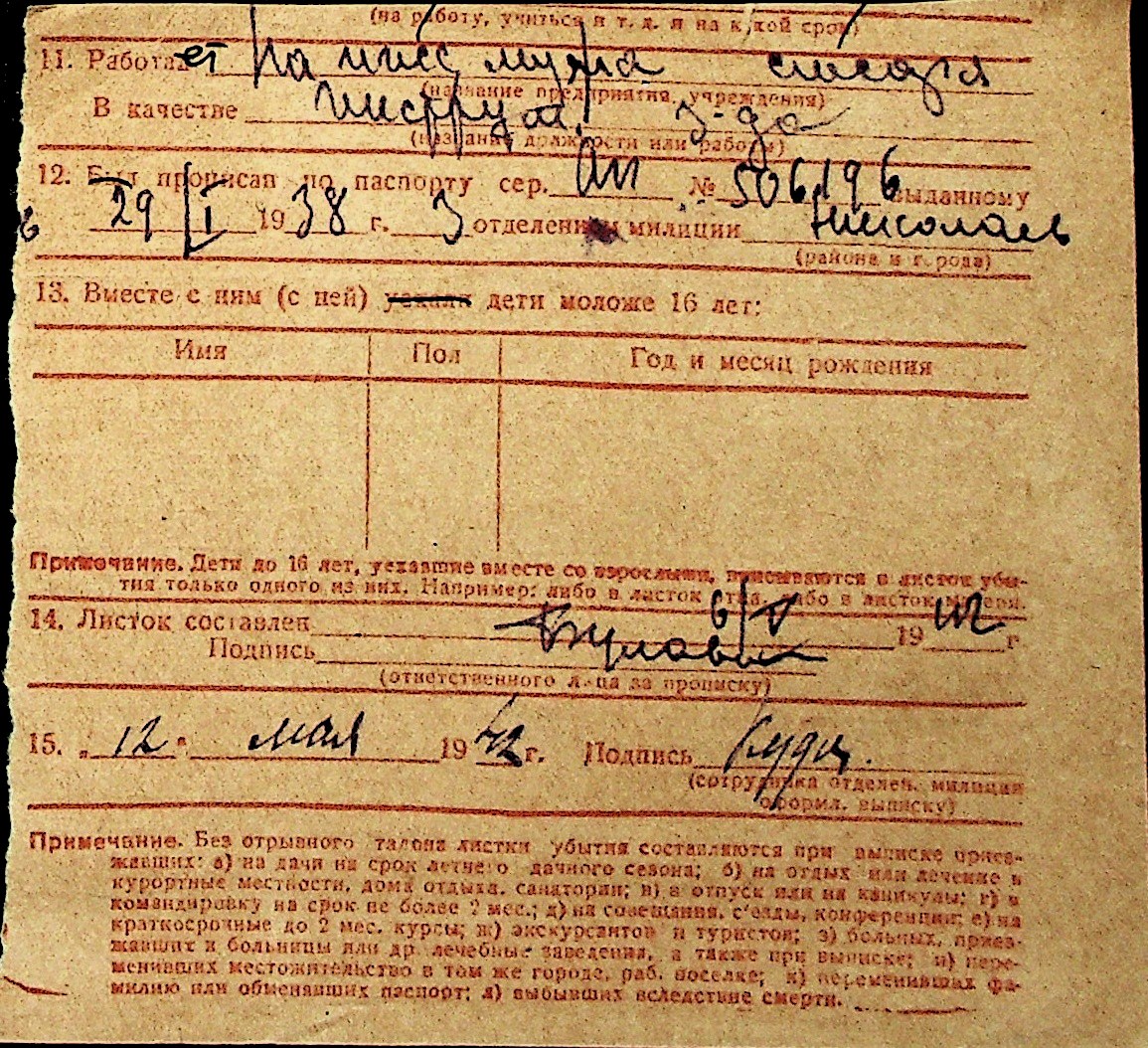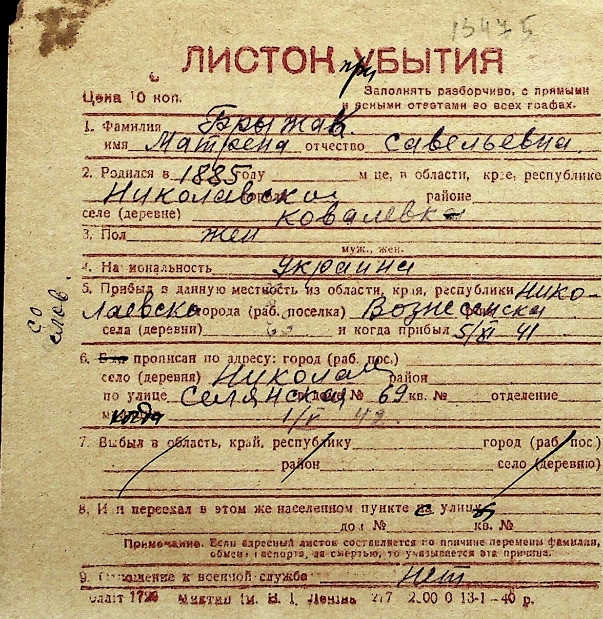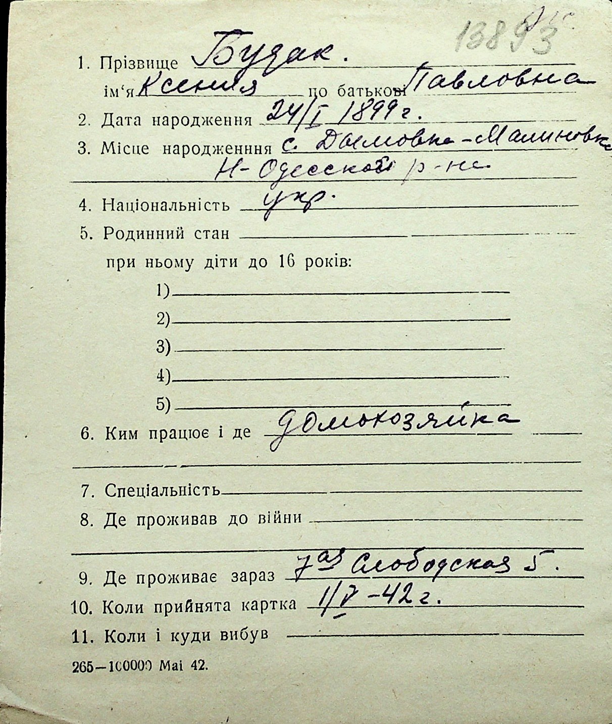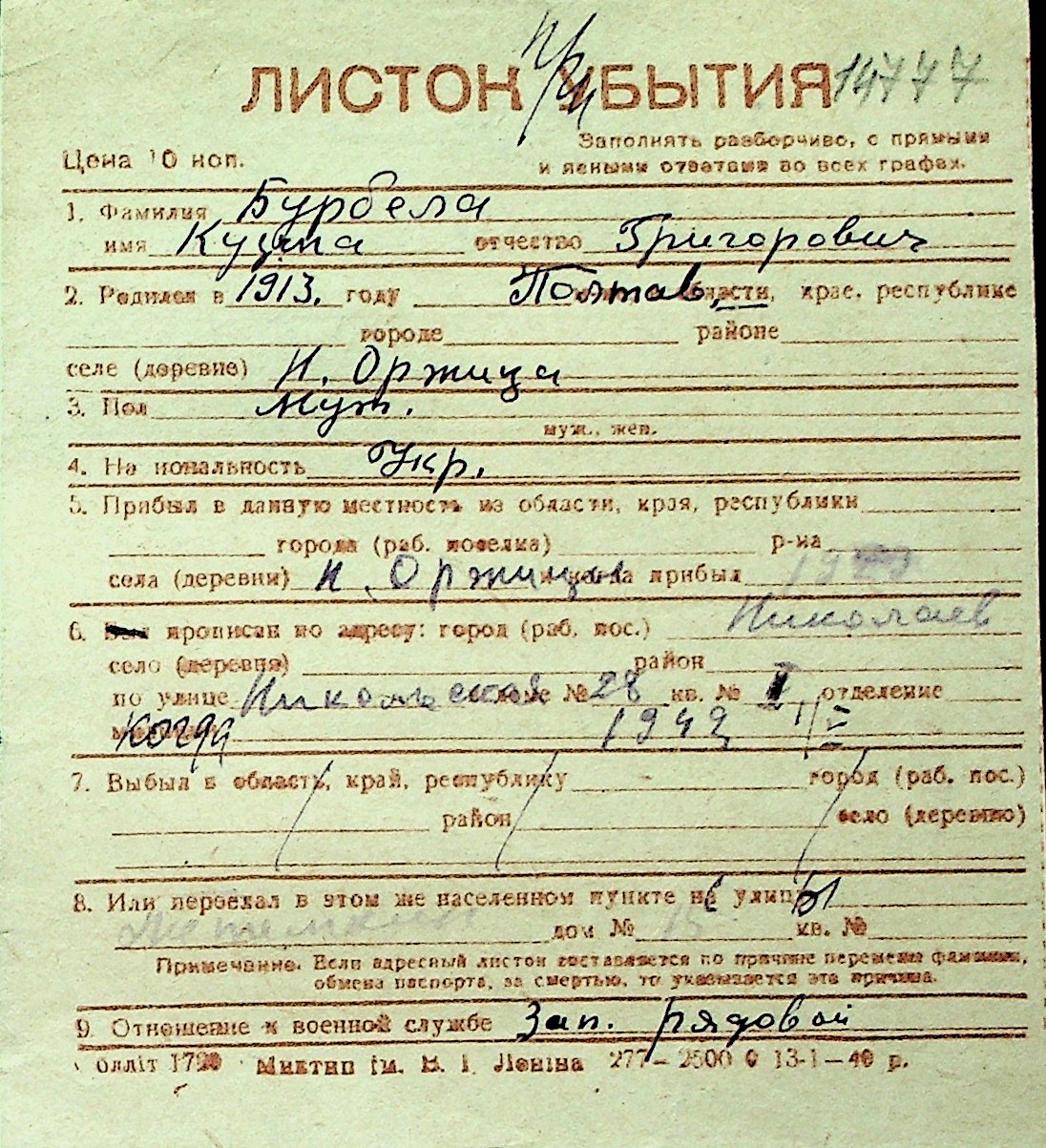 ◦ ◦ Перелік карток на осіб, які мешкали у м. Миколаїв у період окупації 1941–1944 років