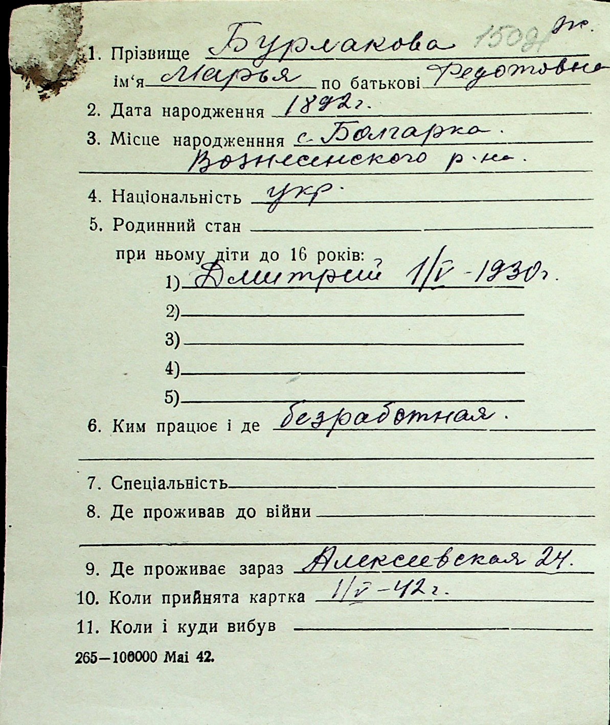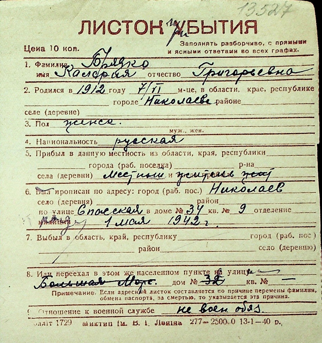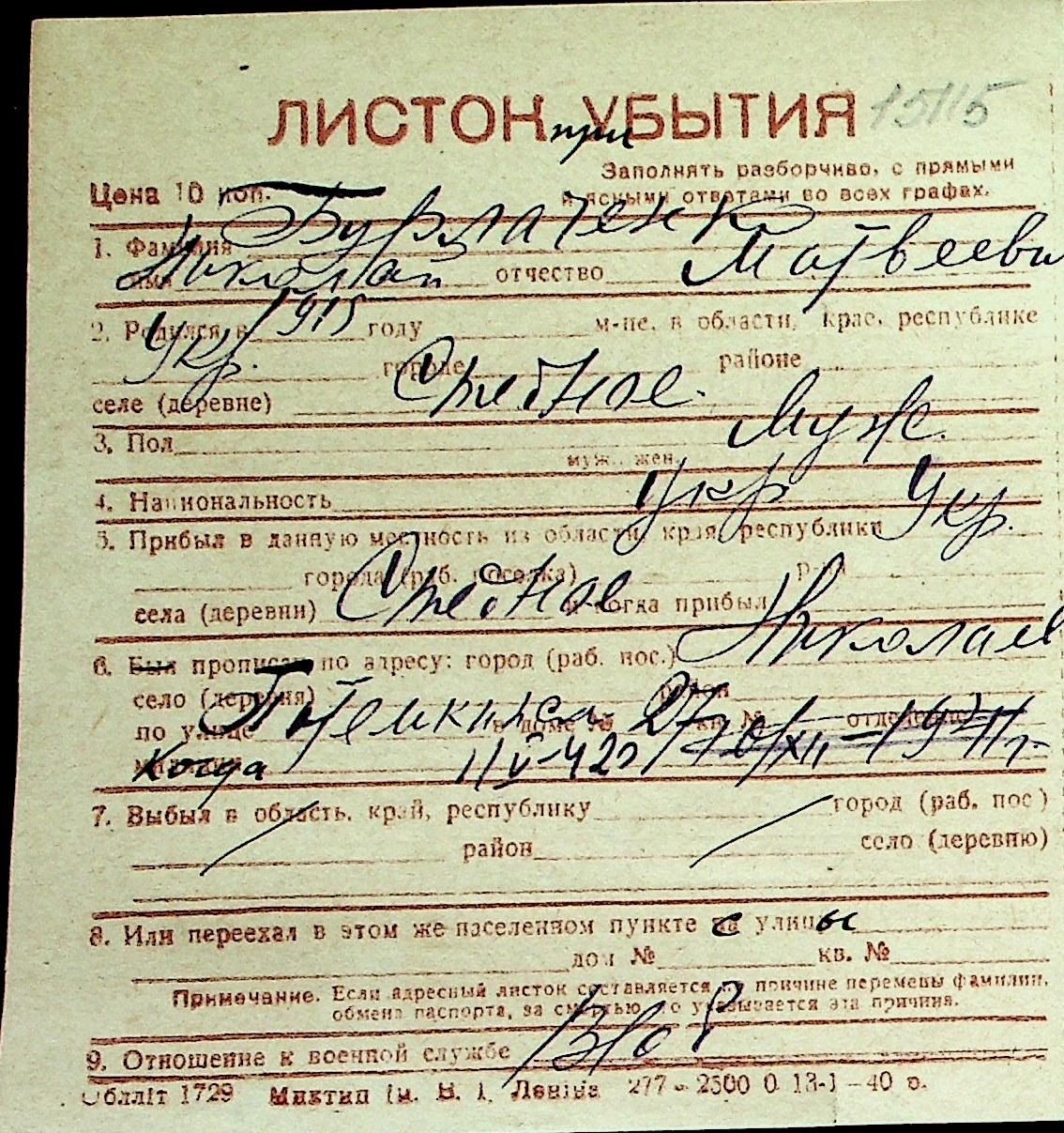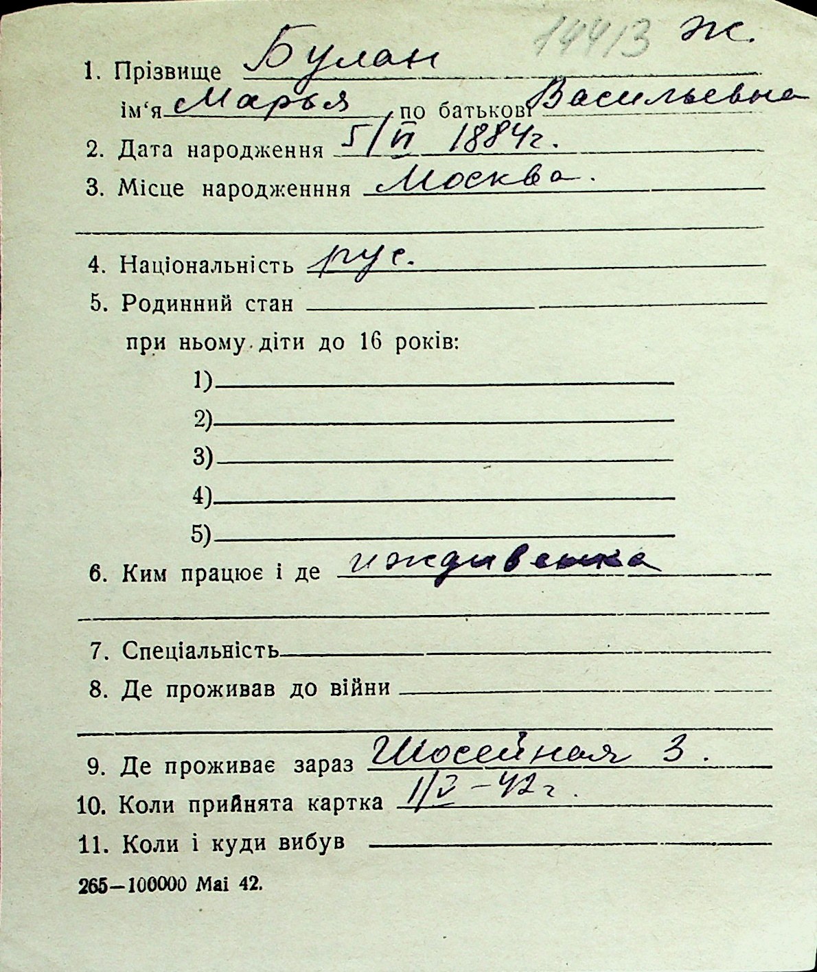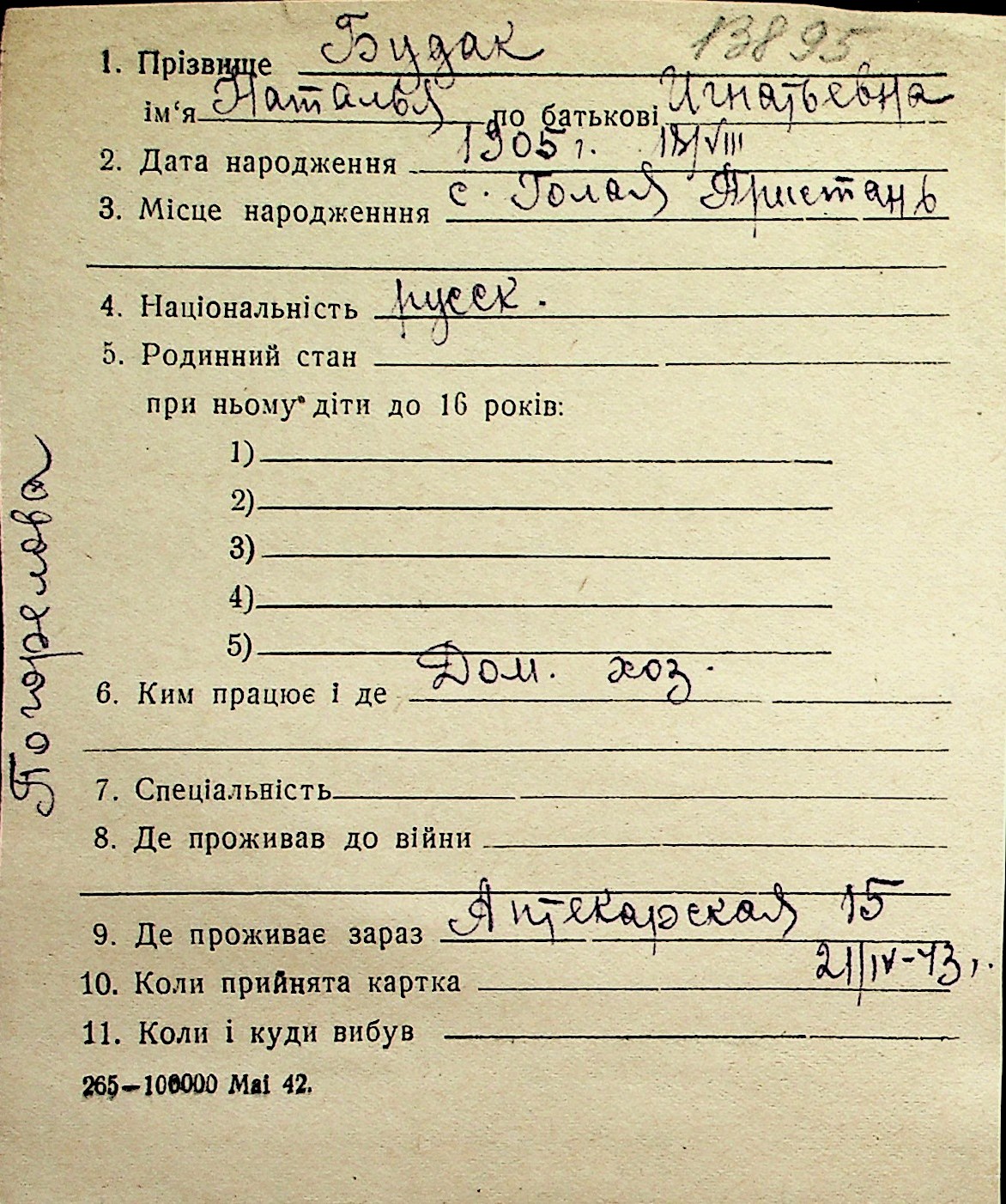 ◦ ◦ Перелік карток на осіб, які мешкали у м. Миколаїв у період окупації 1941–1944 років