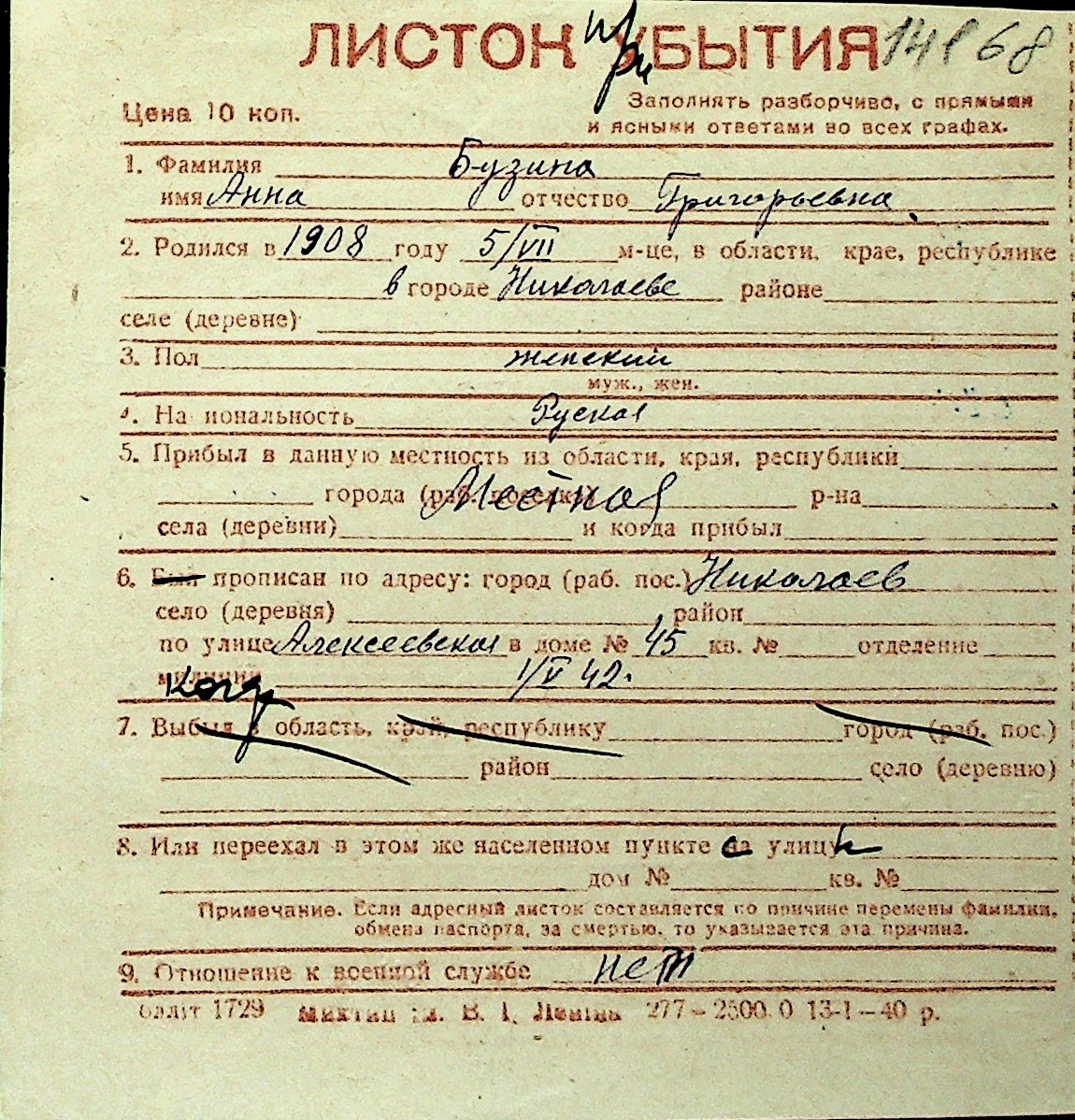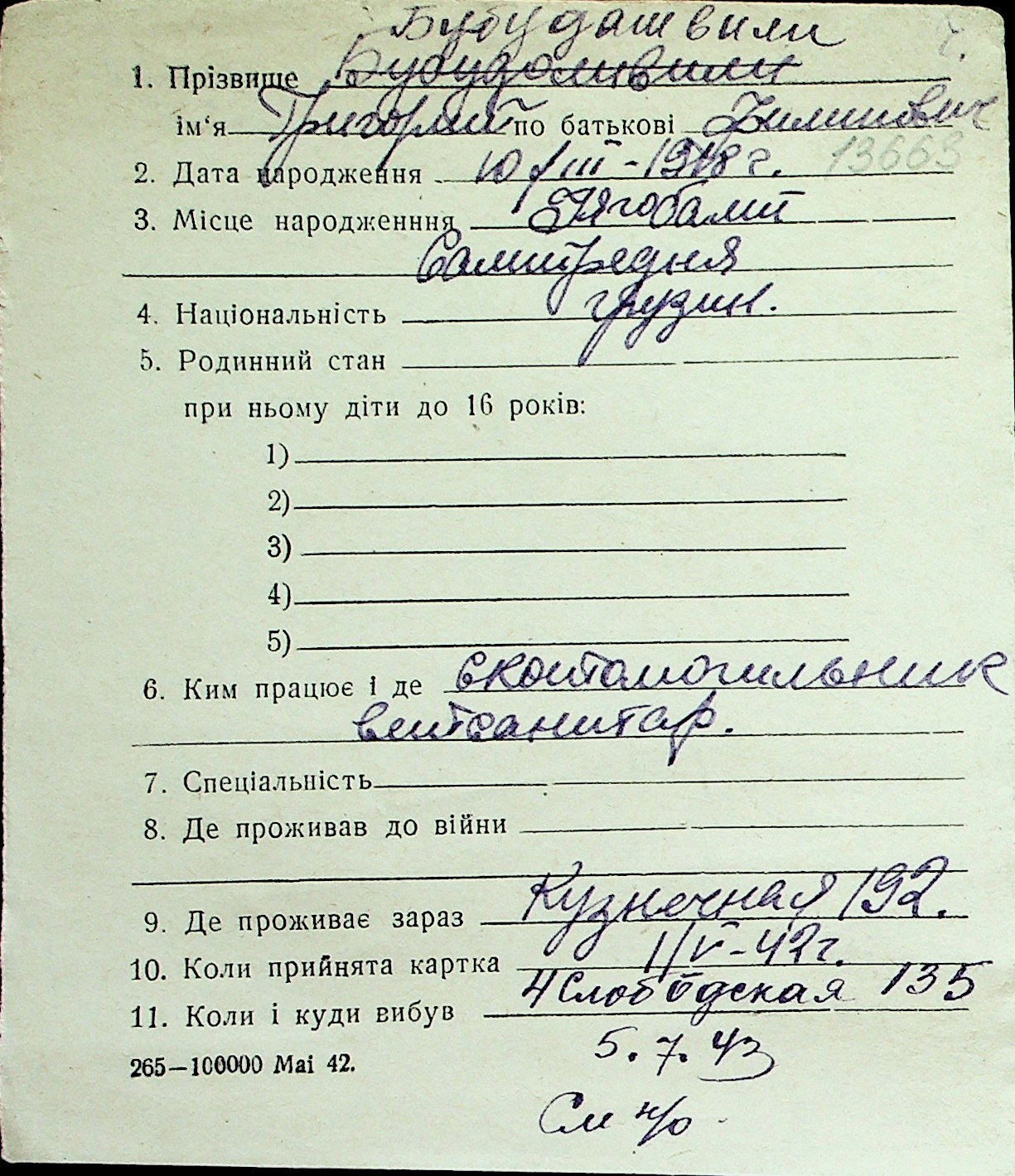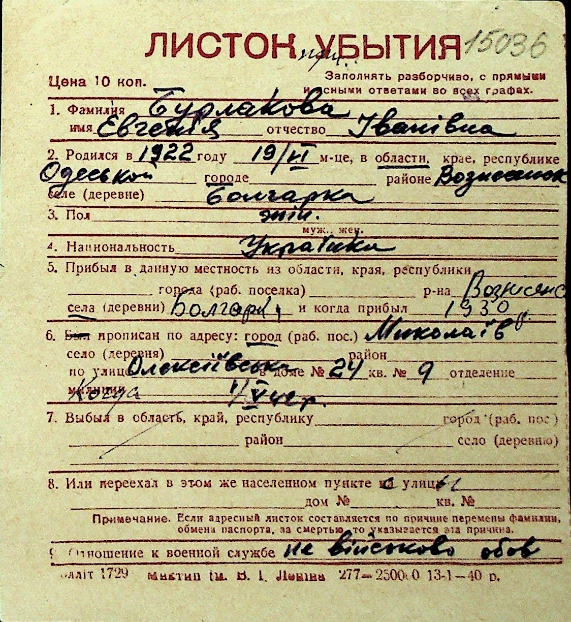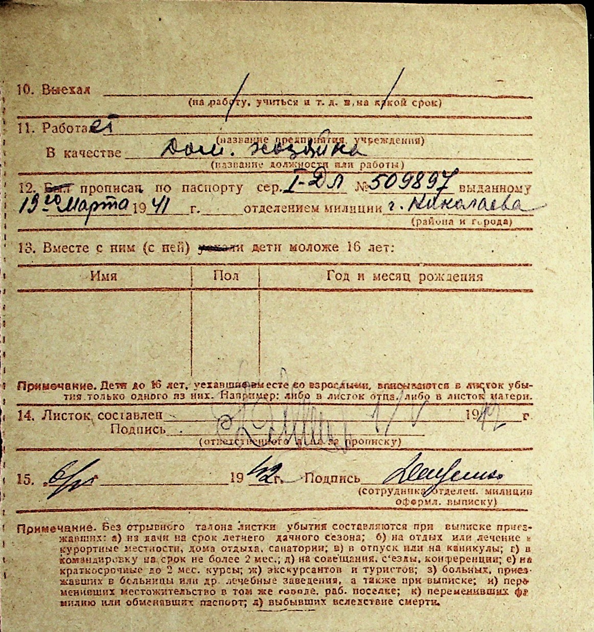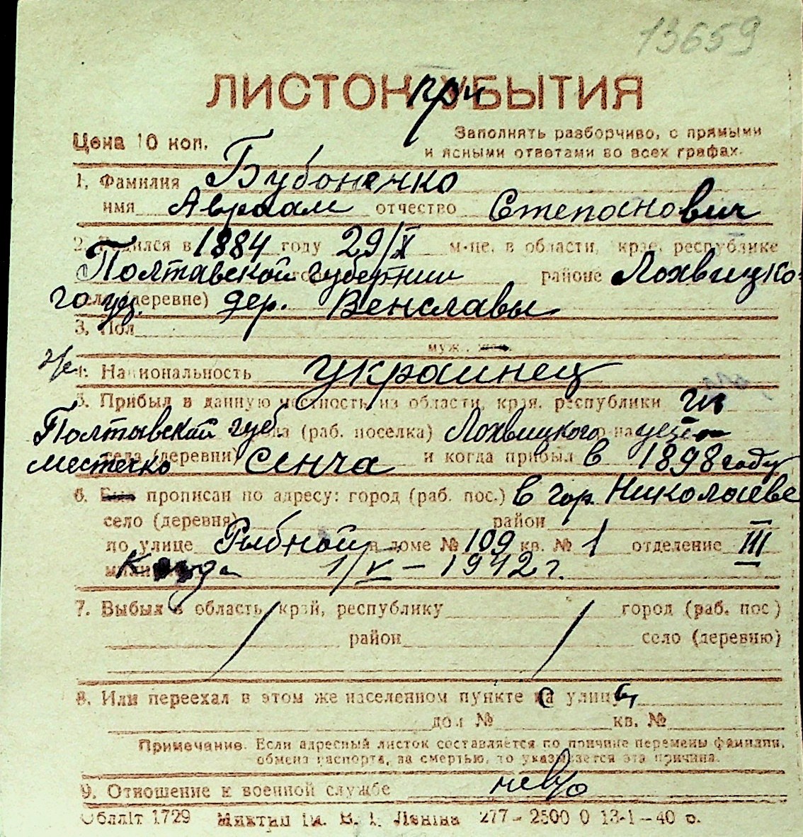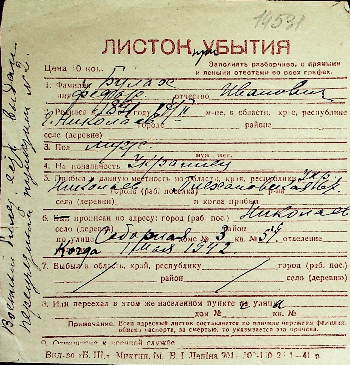 ◦ ◦ Перелік карток на осіб, які мешкали у м. Миколаїв у період окупації 1941–1944 років