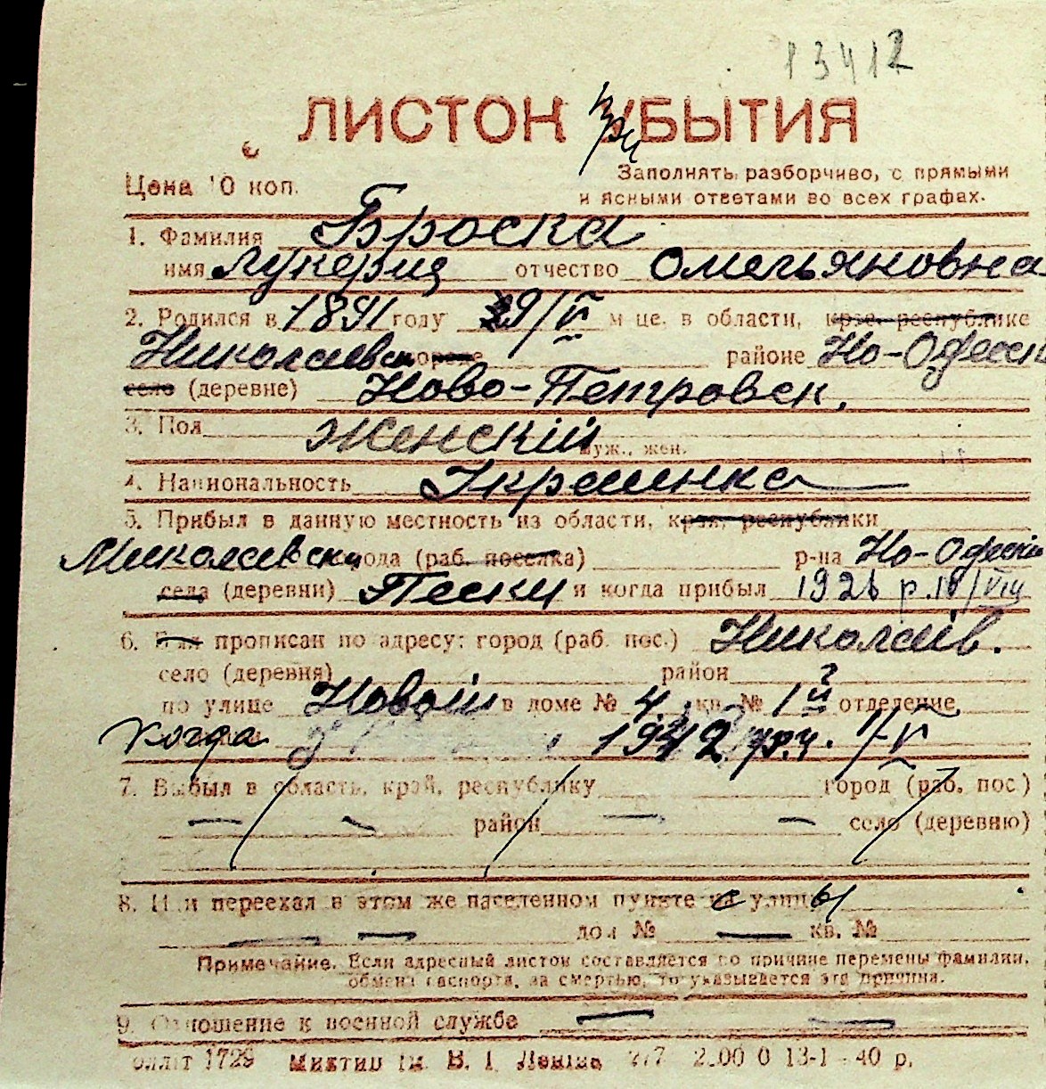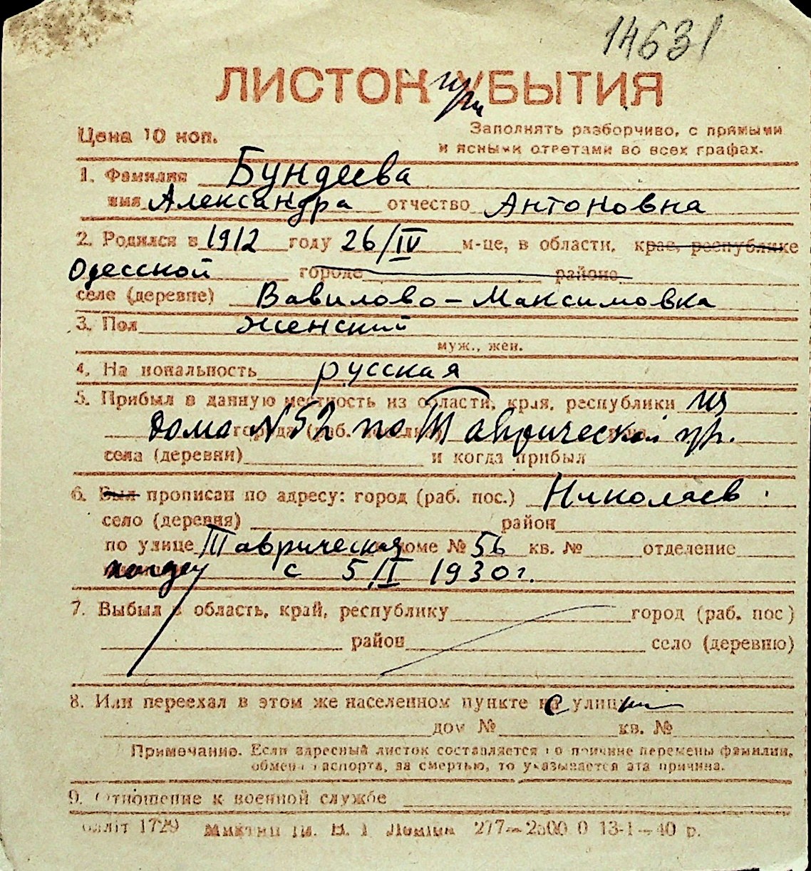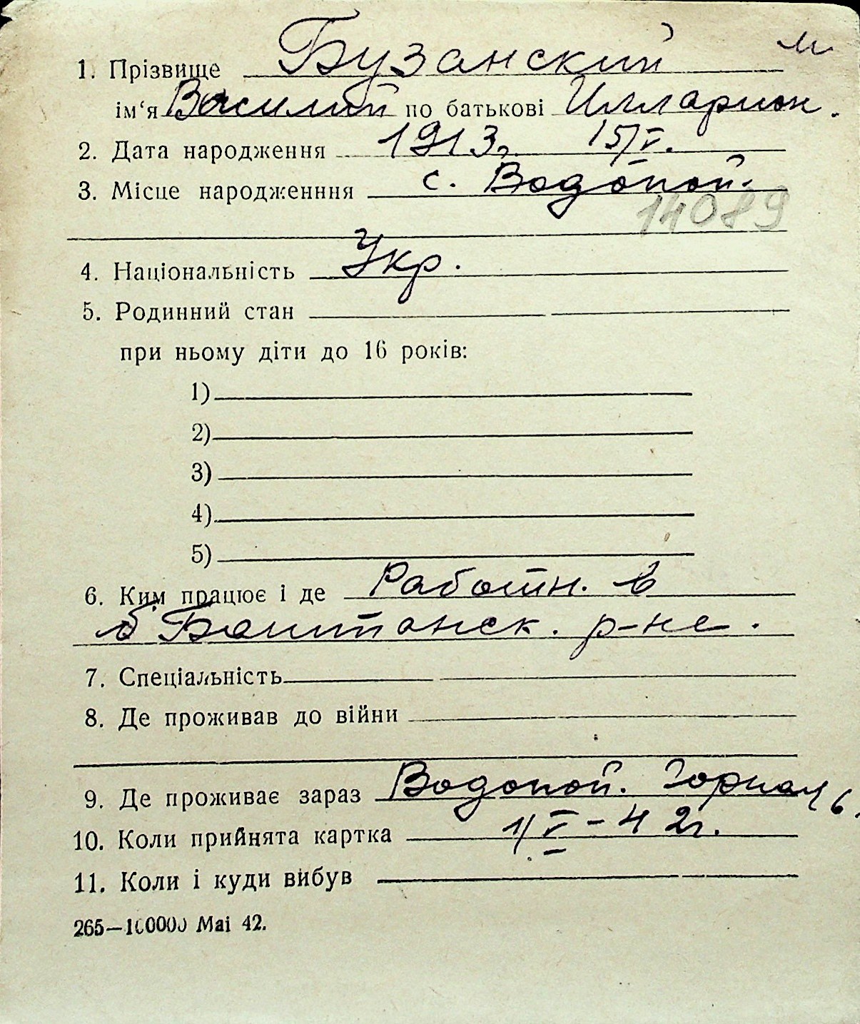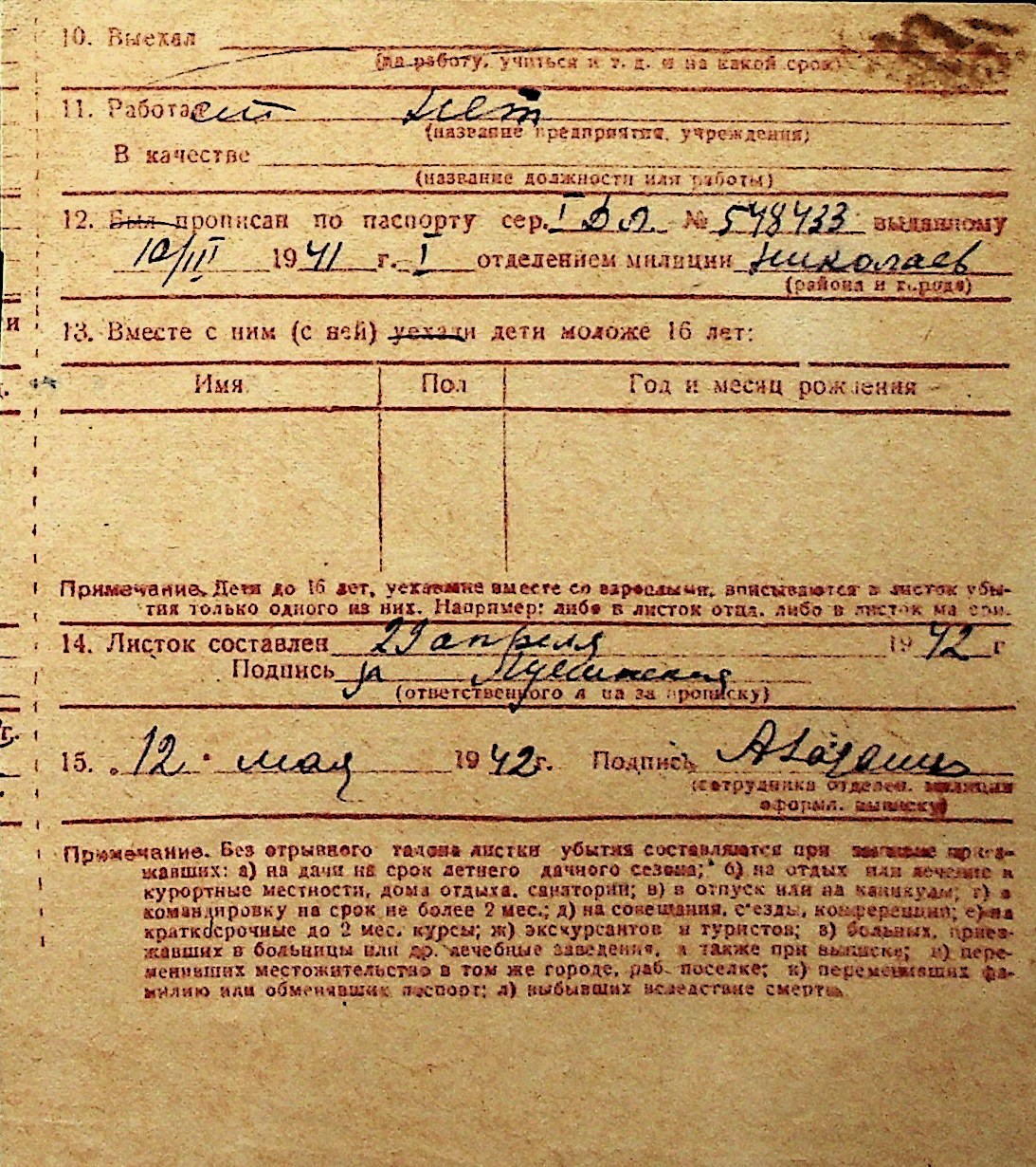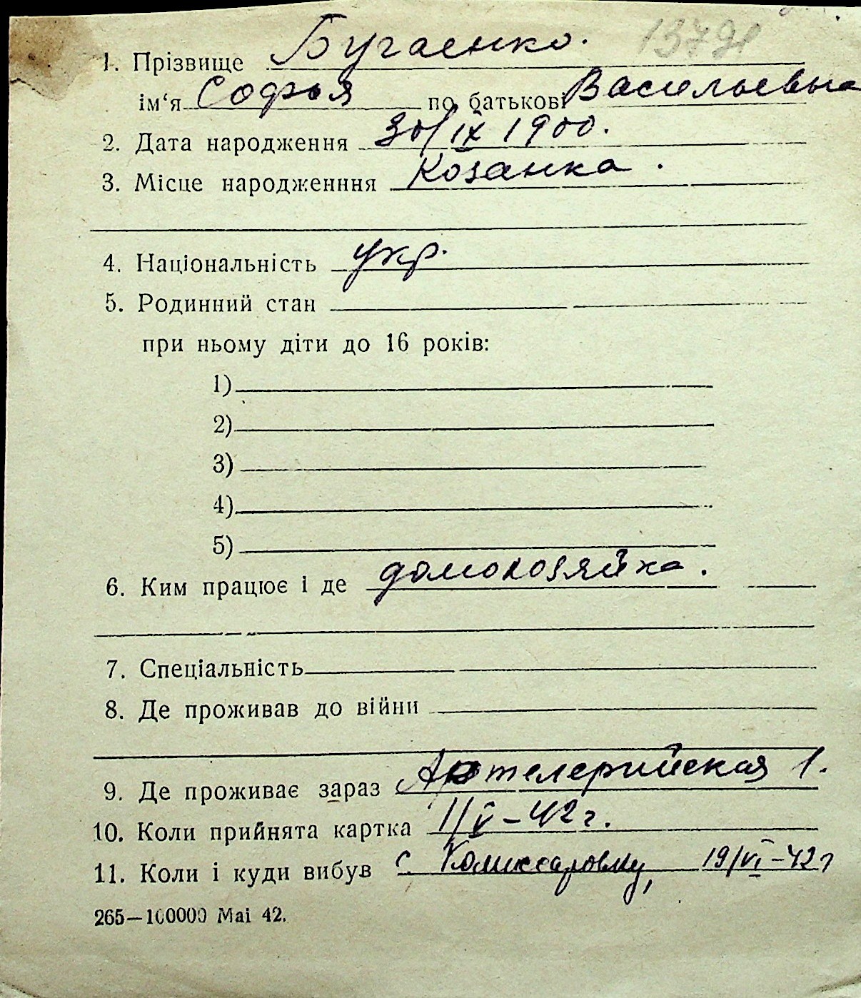 ◦ ◦ Перелік карток на осіб, які мешкали у м. Миколаїв у період окупації 1941–1944 років
