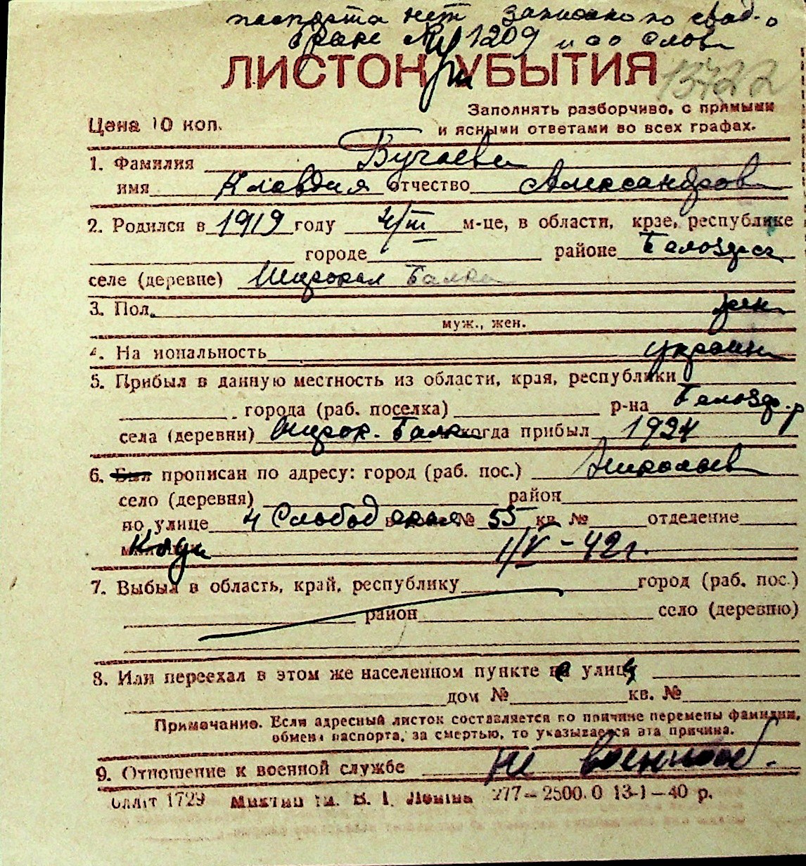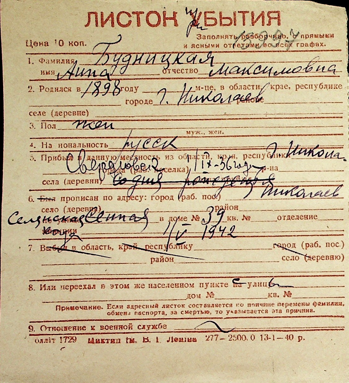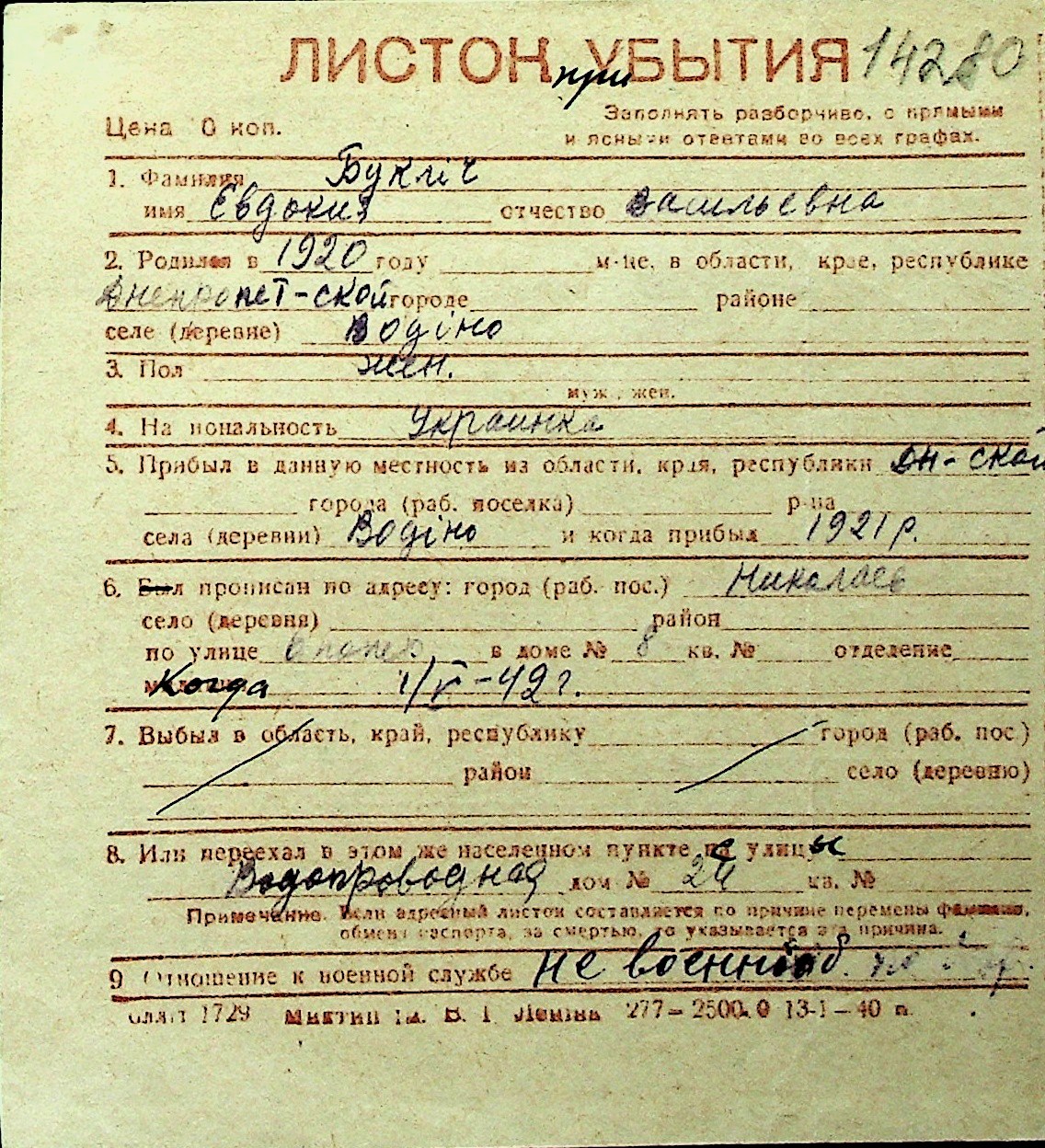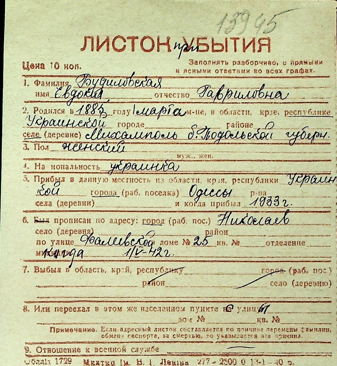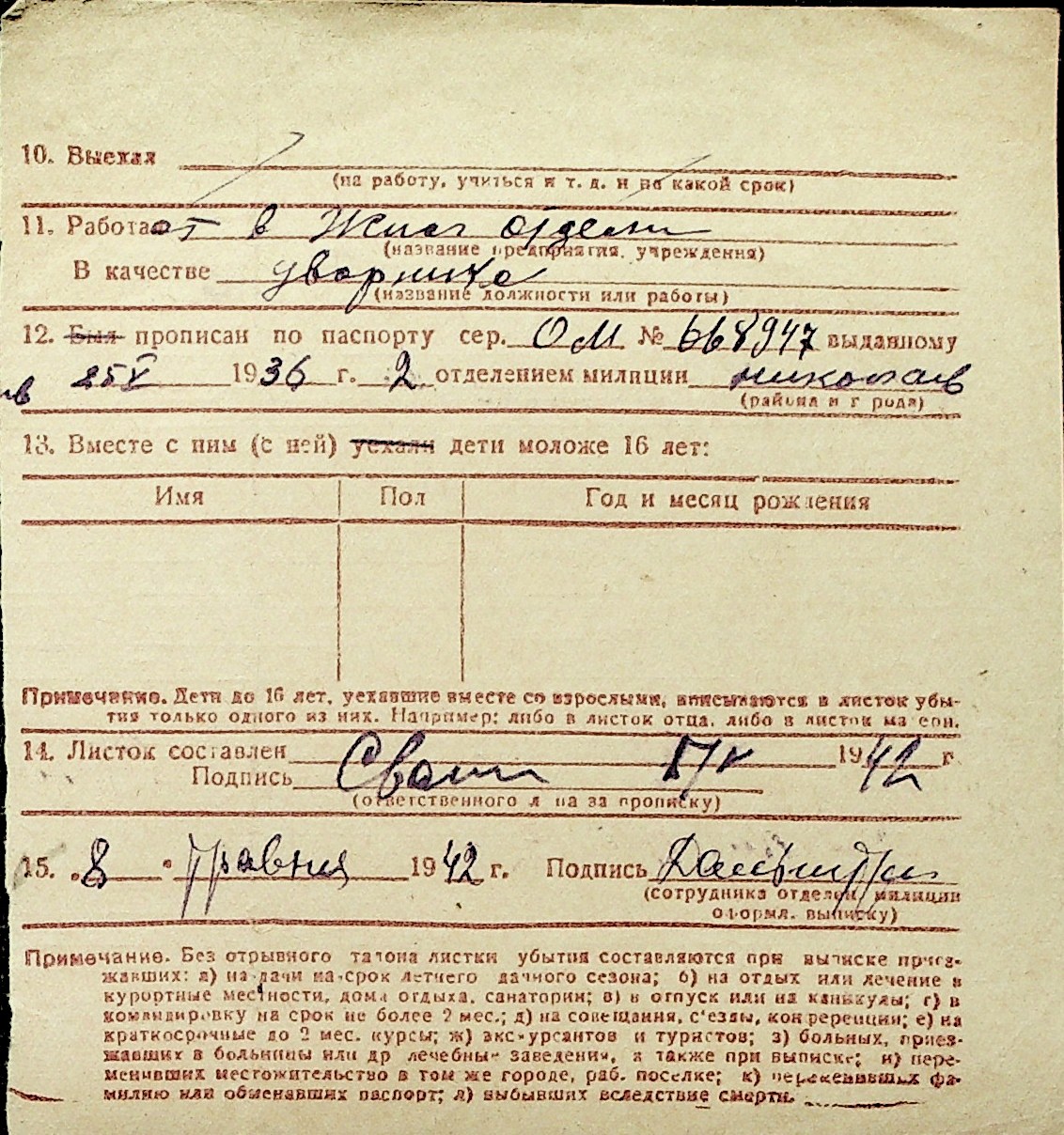 ◦ ◦ Перелік карток на осіб, які мешкали у м. Миколаїв у період окупації 1941–1944 років