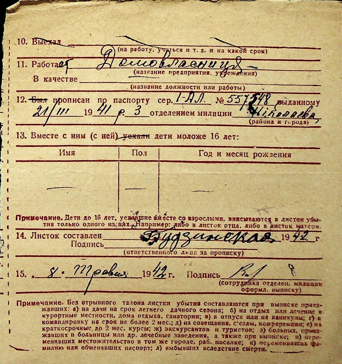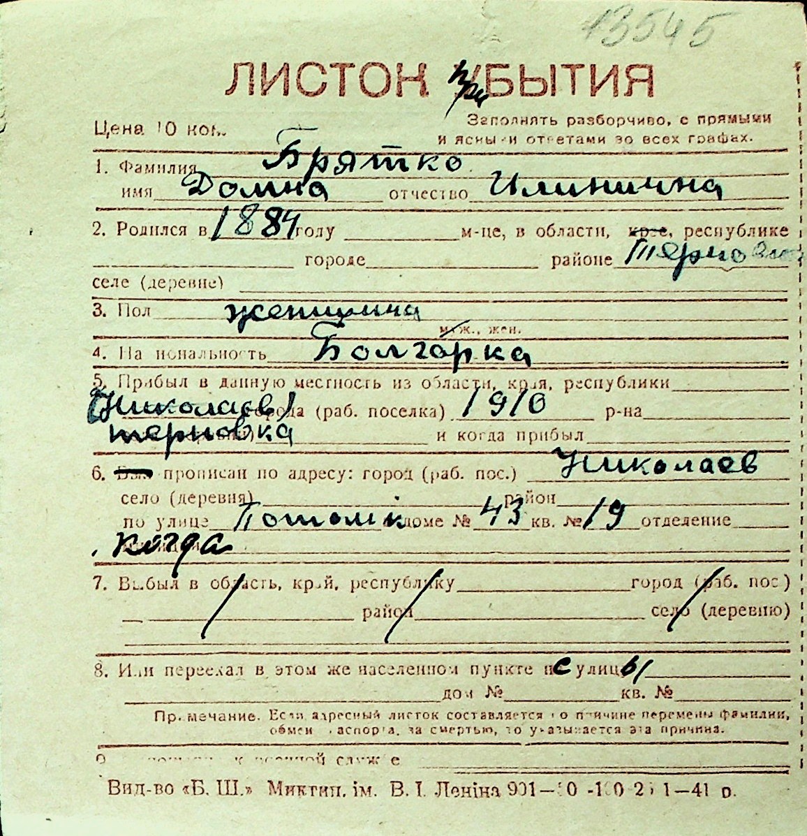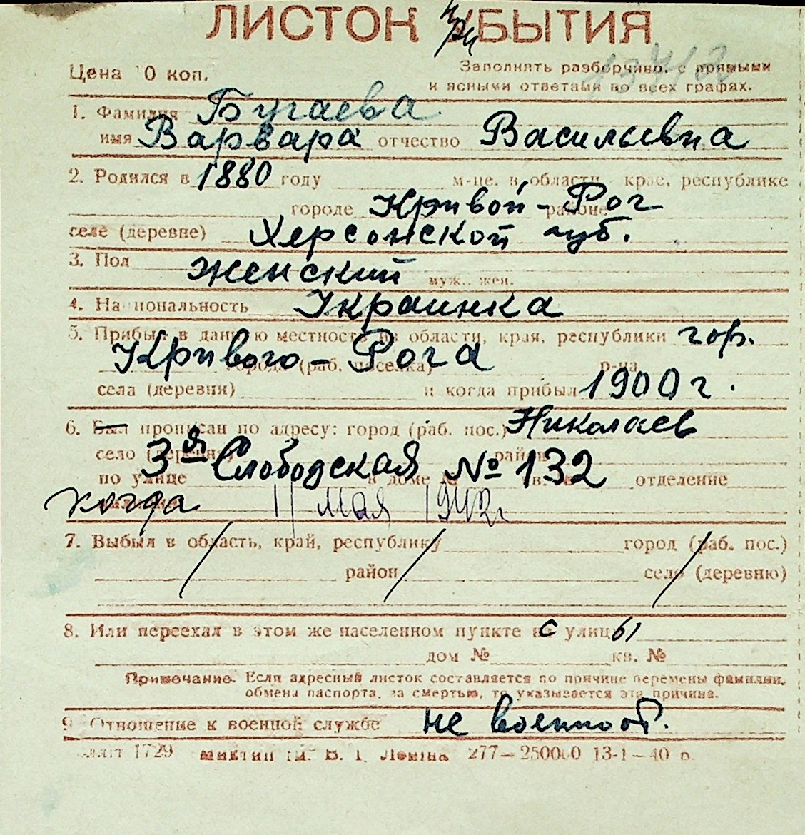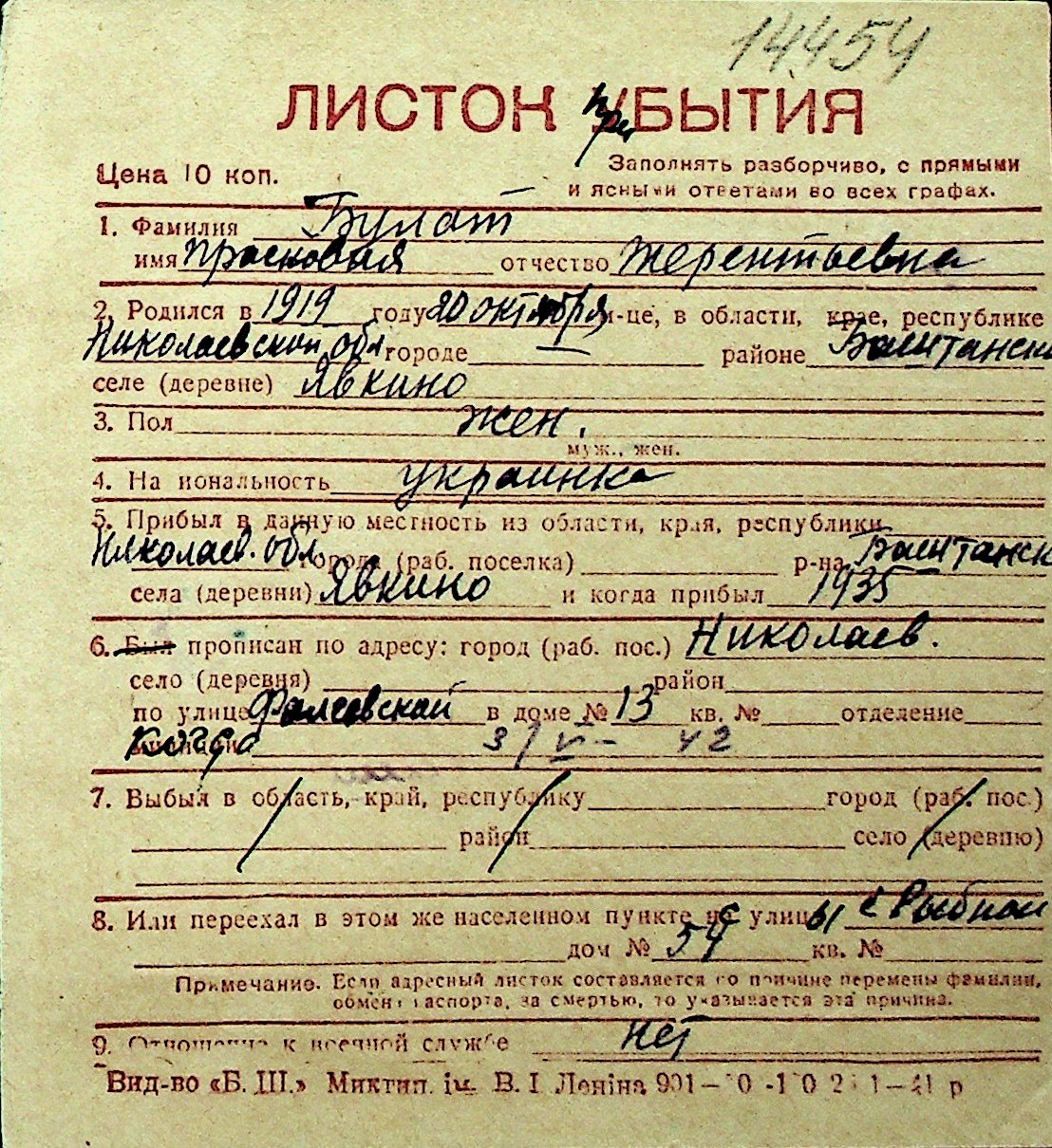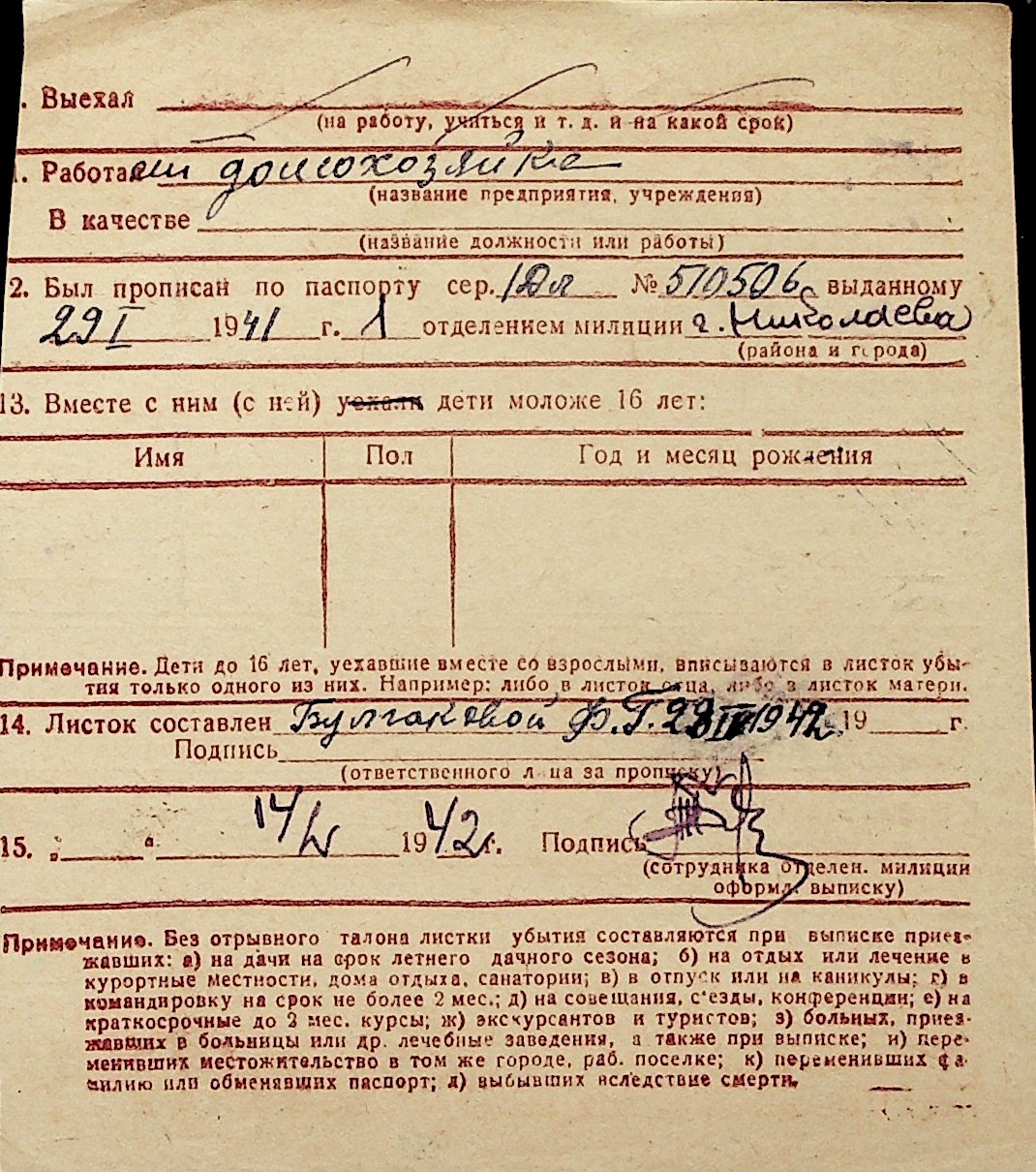 ◦ ◦ Перелік карток на осіб, які мешкали у м. Миколаїв у період окупації 1941–1944 років