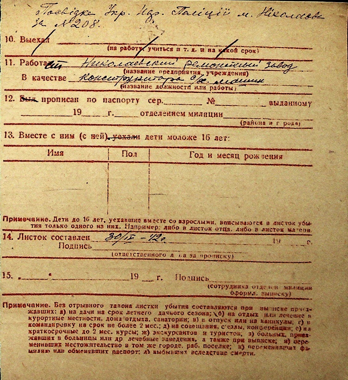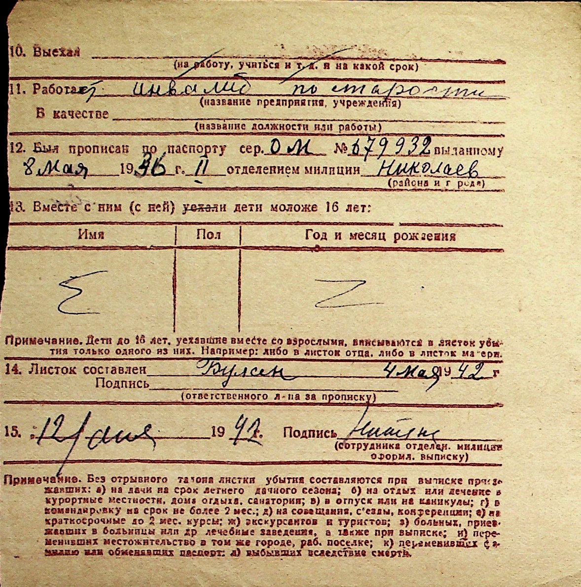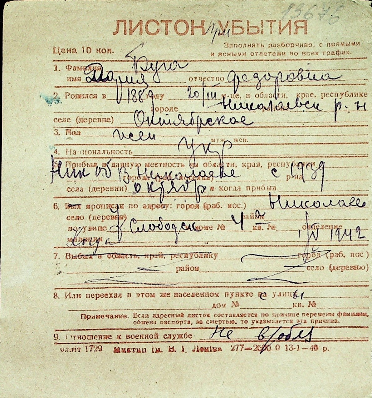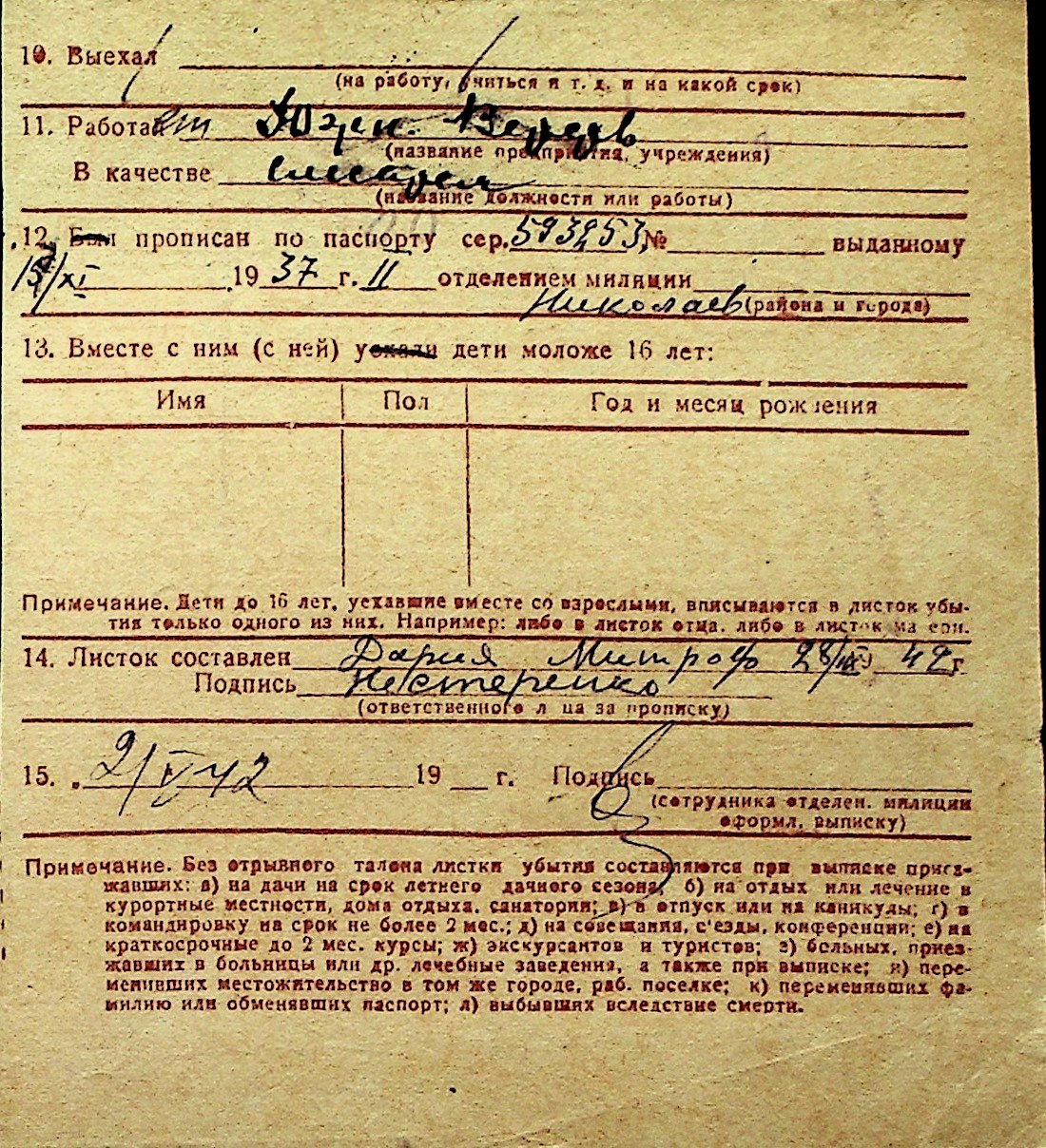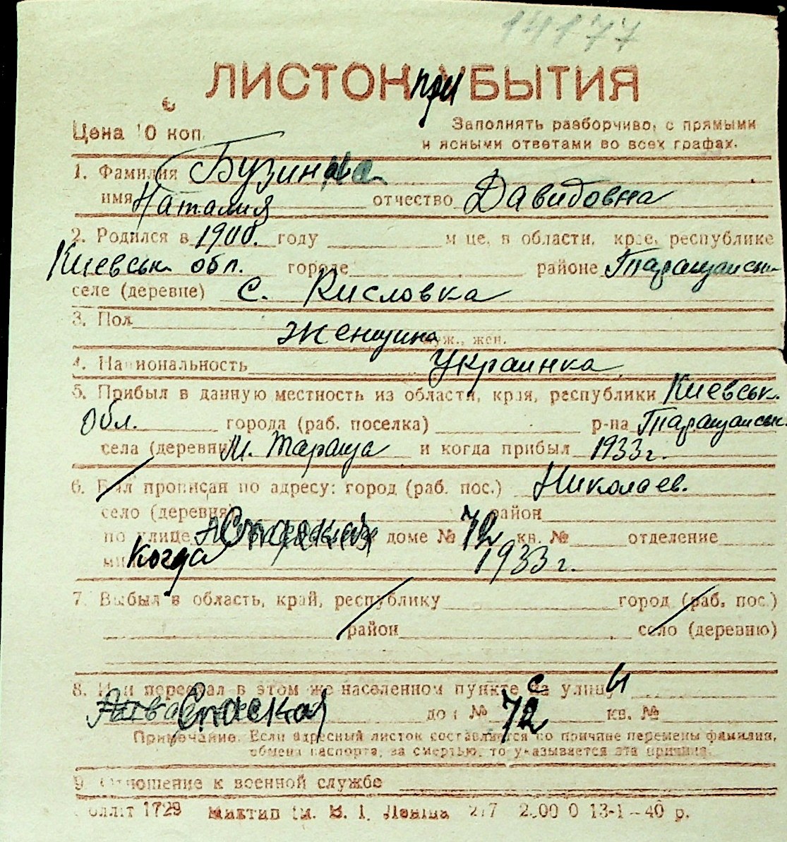 ◦ ◦ Перелік карток на осіб, які мешкали у м. Миколаїв у період окупації 1941–1944 років
