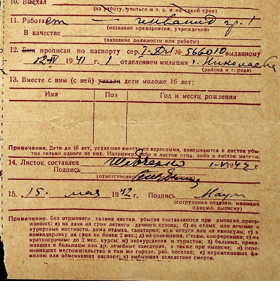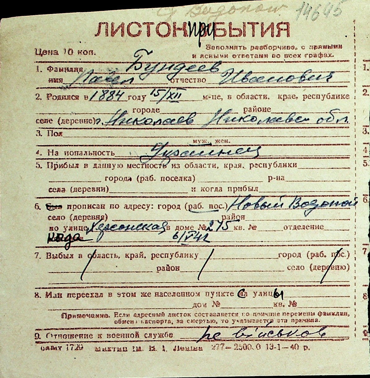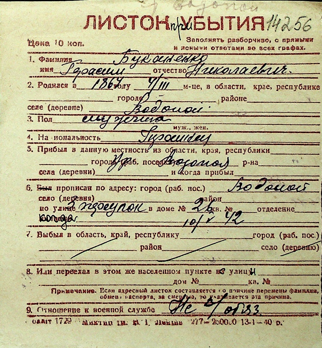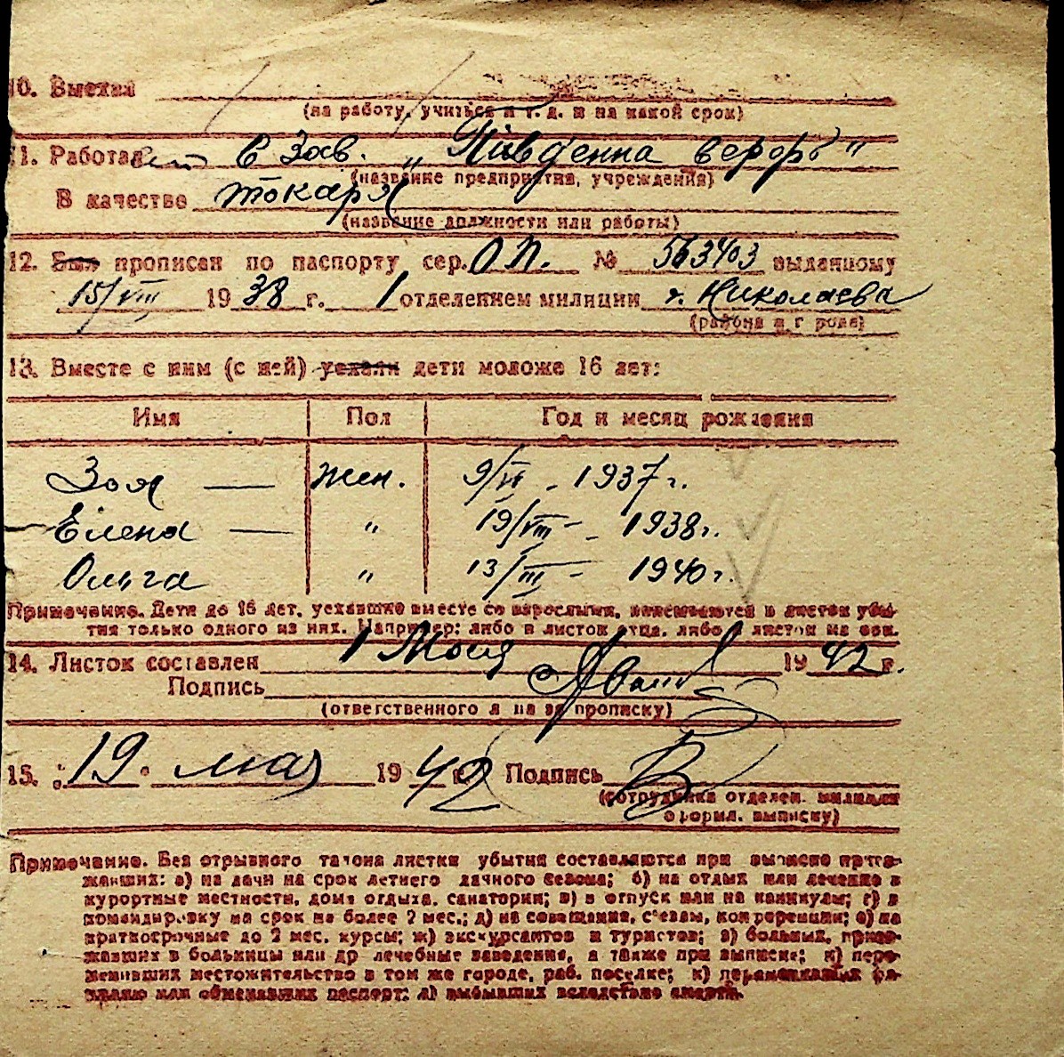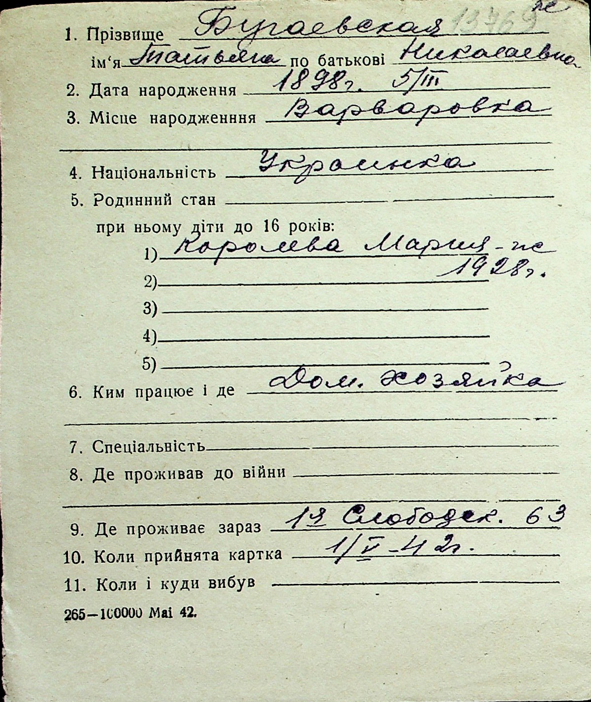 ◦ ◦ Перелік карток на осіб, які мешкали у м. Миколаїв у період окупації 1941–1944 років