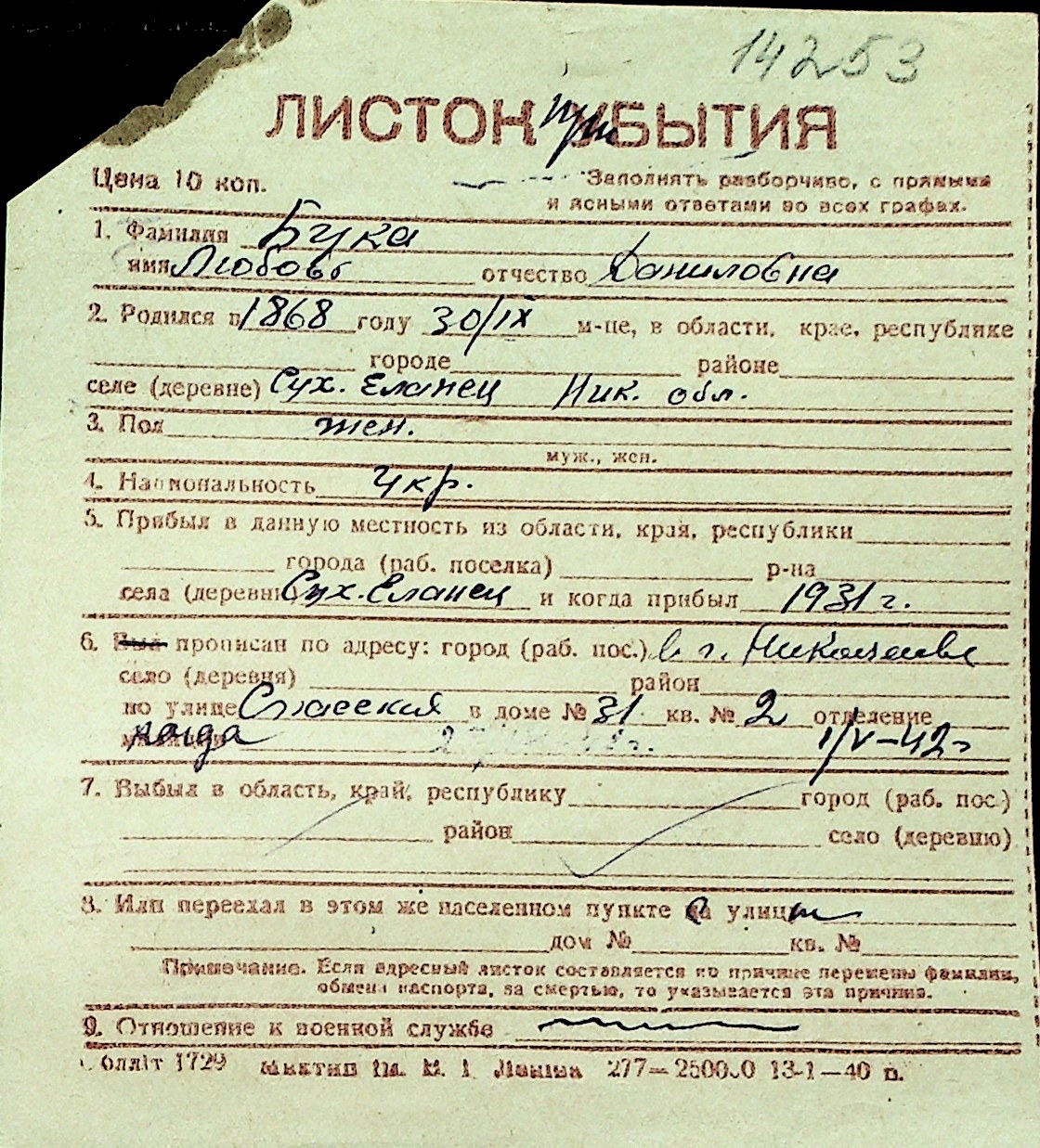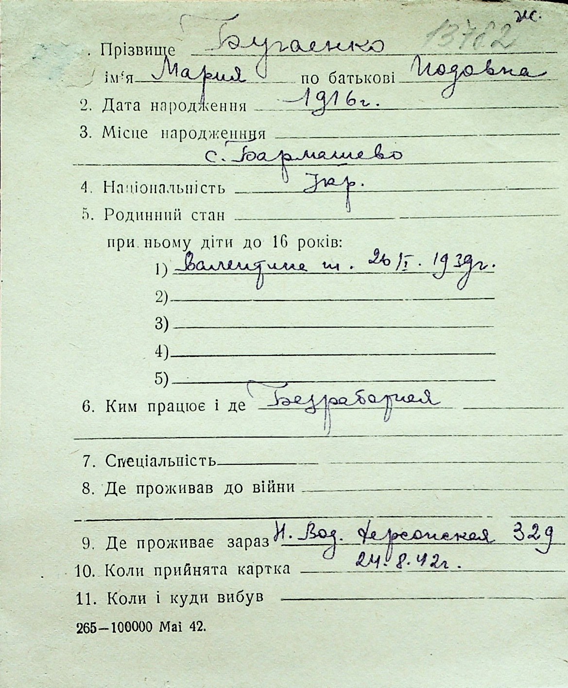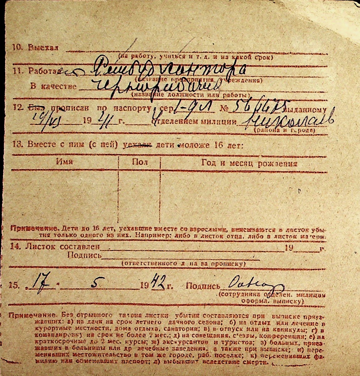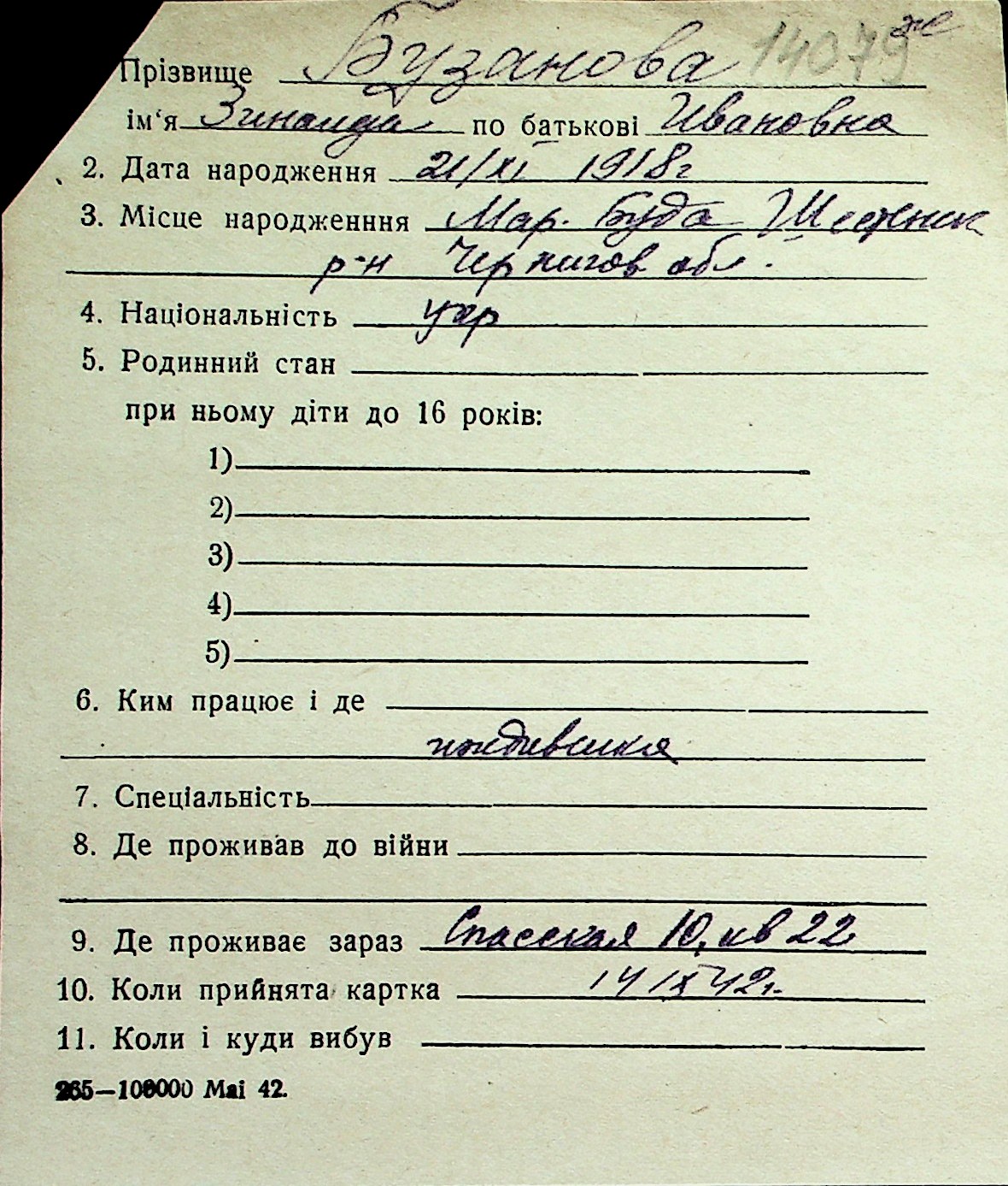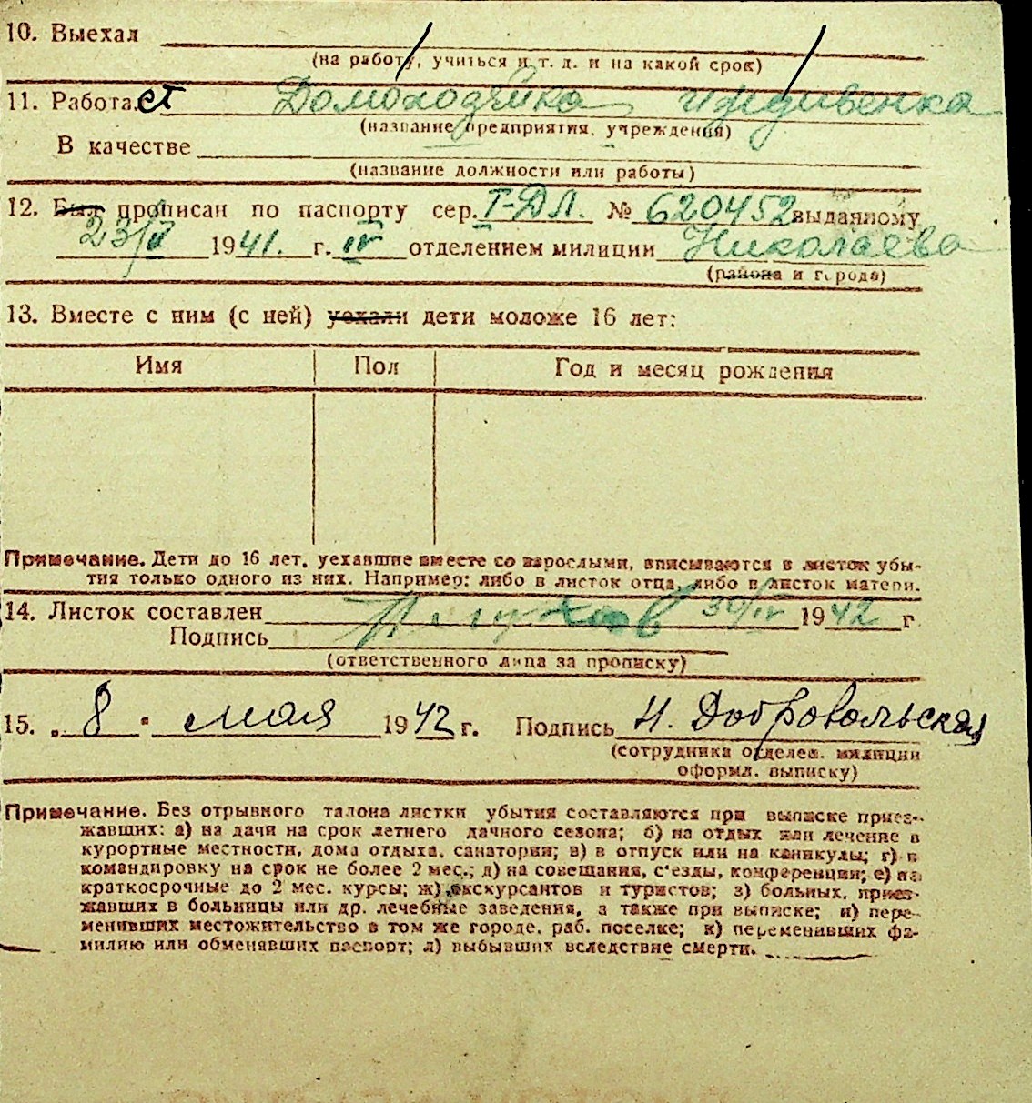 ◦ ◦ Перелік карток на осіб, які мешкали у м. Миколаїв у період окупації 1941–1944 років