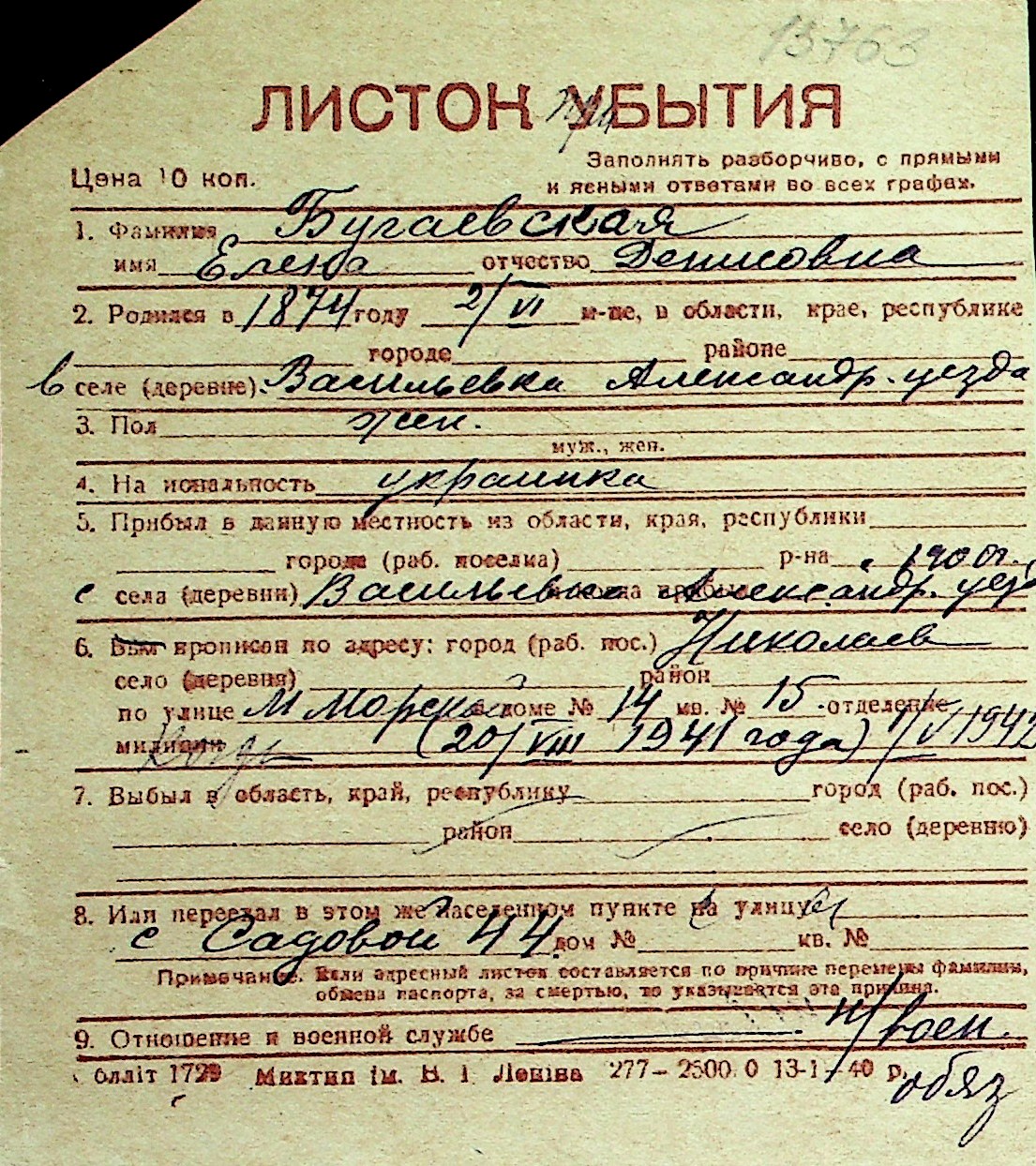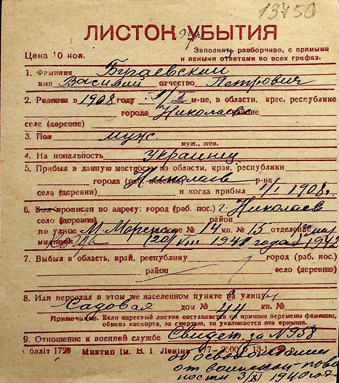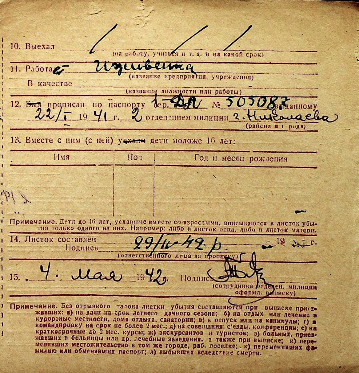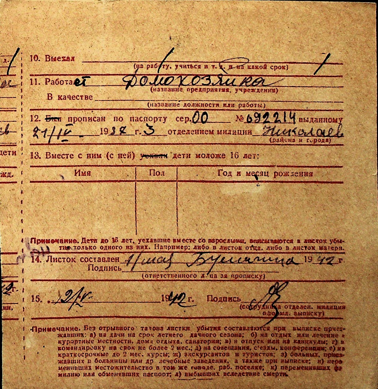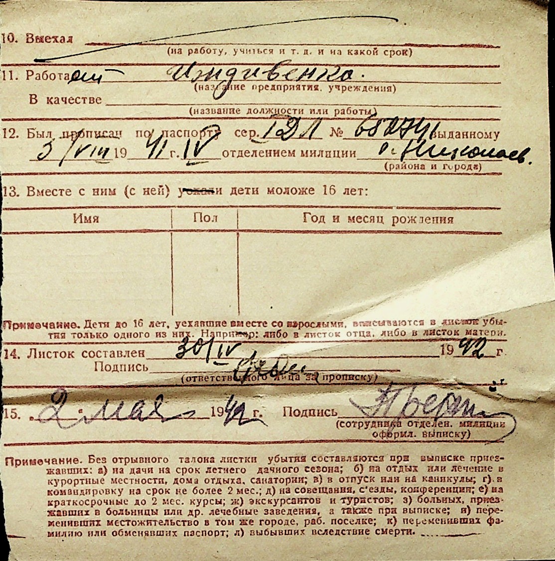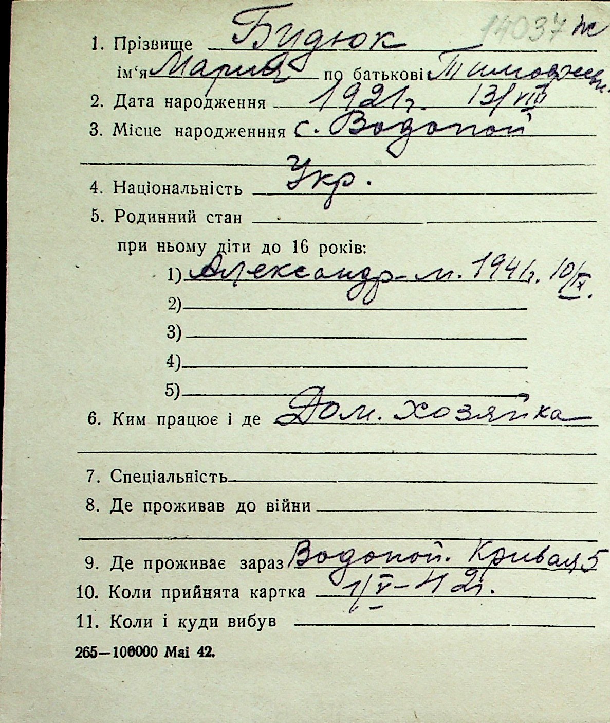 ◦ ◦ Перелік карток на осіб, які мешкали у м. Миколаїв у період окупації 1941–1944 років