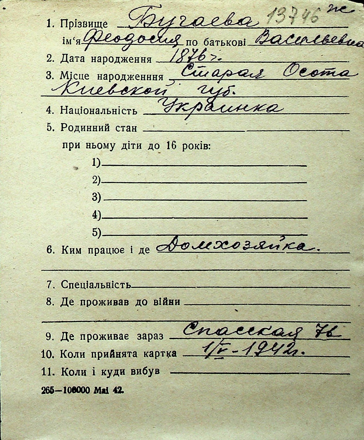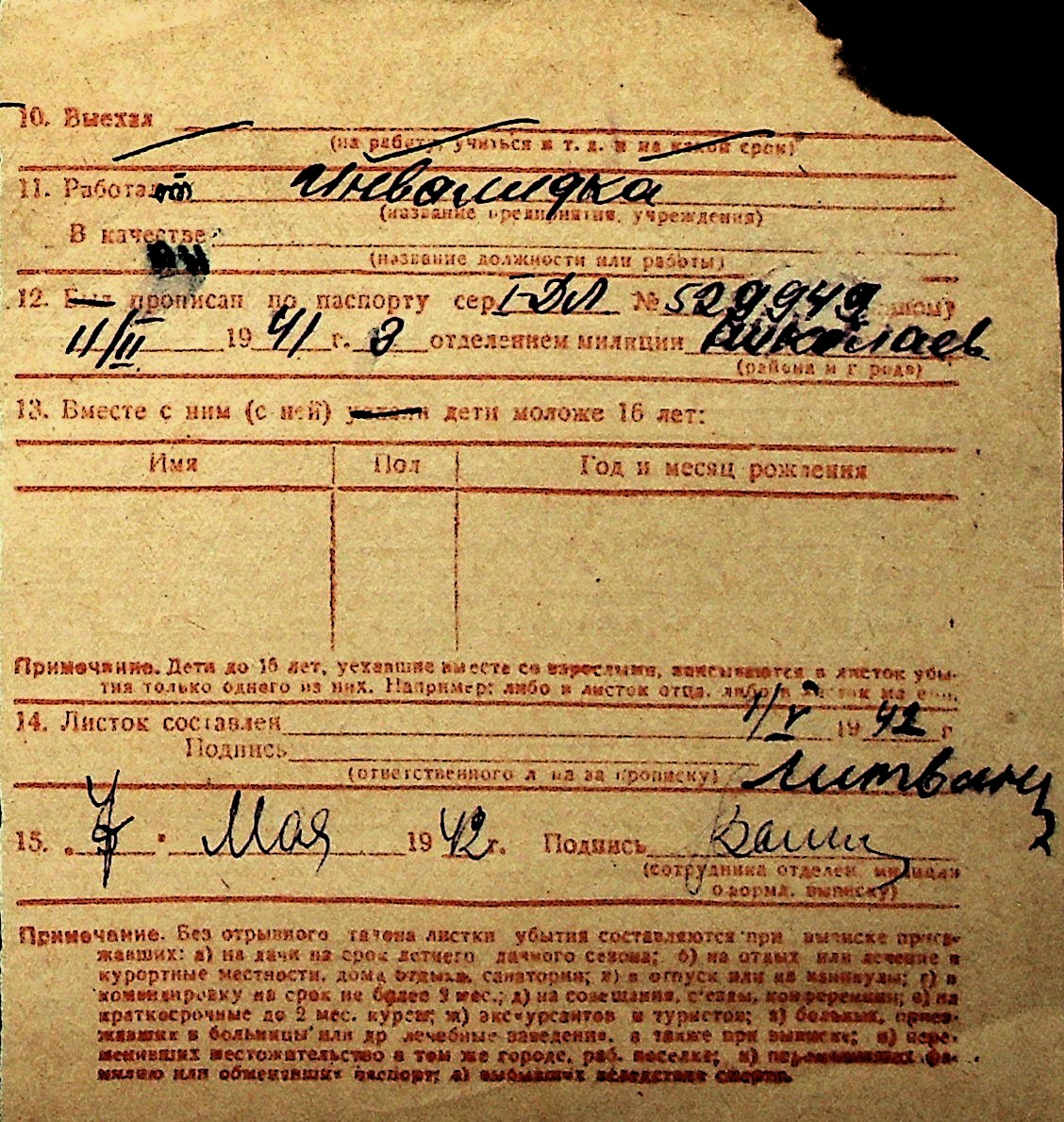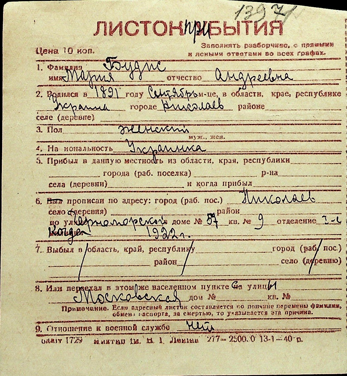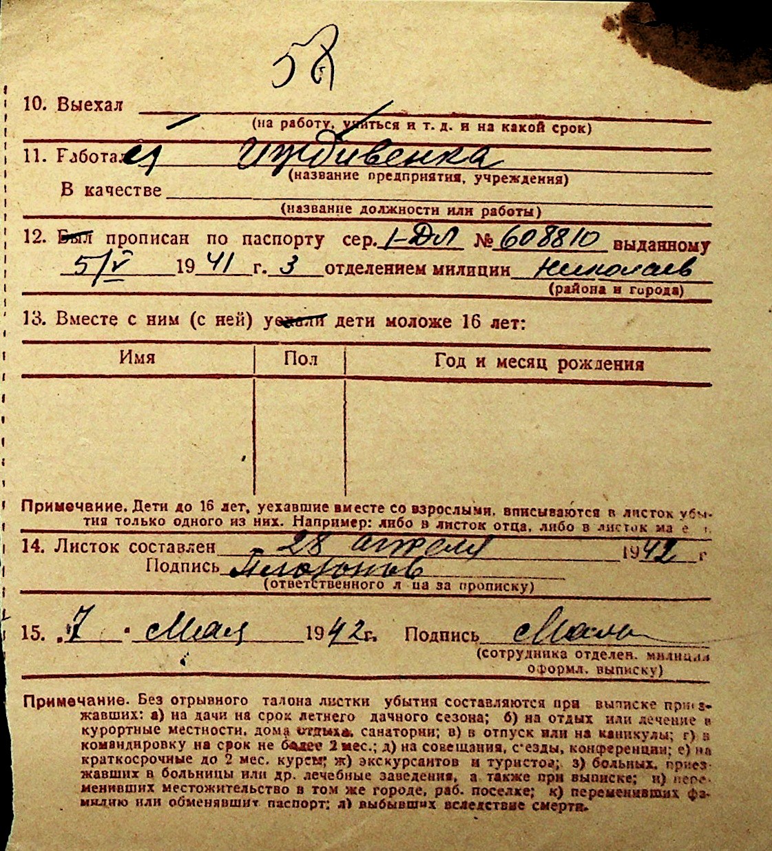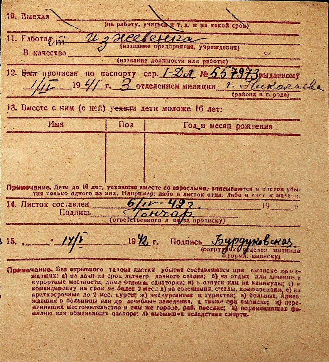 ◦ ◦ Перелік карток на осіб, які мешкали у м. Миколаїв у період окупації 1941–1944 років