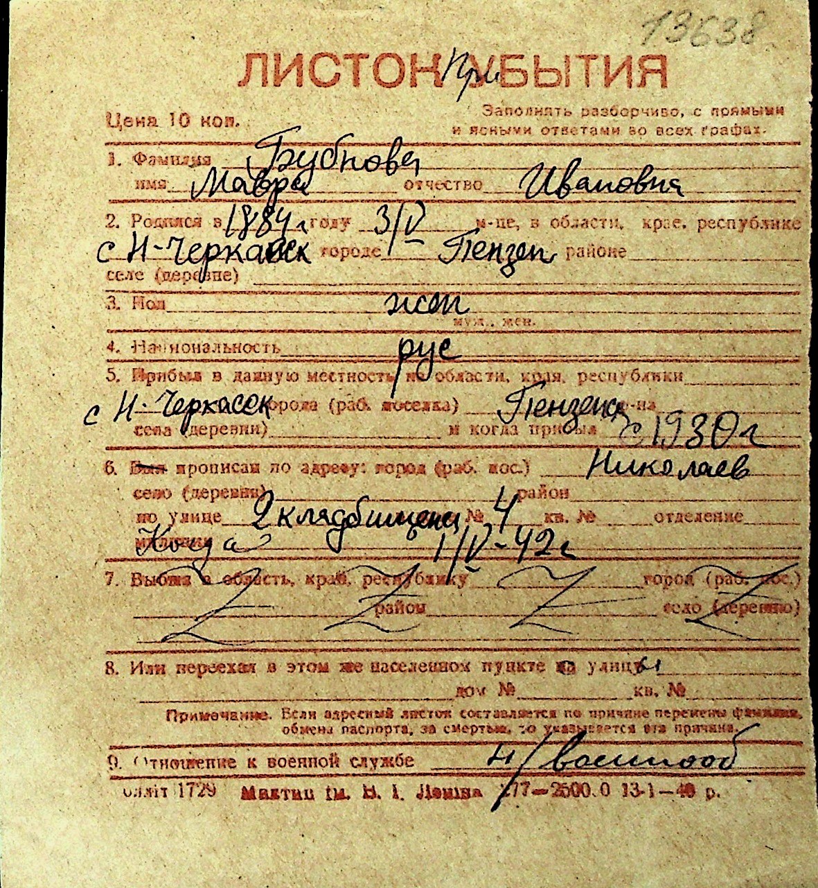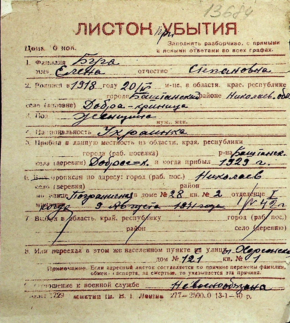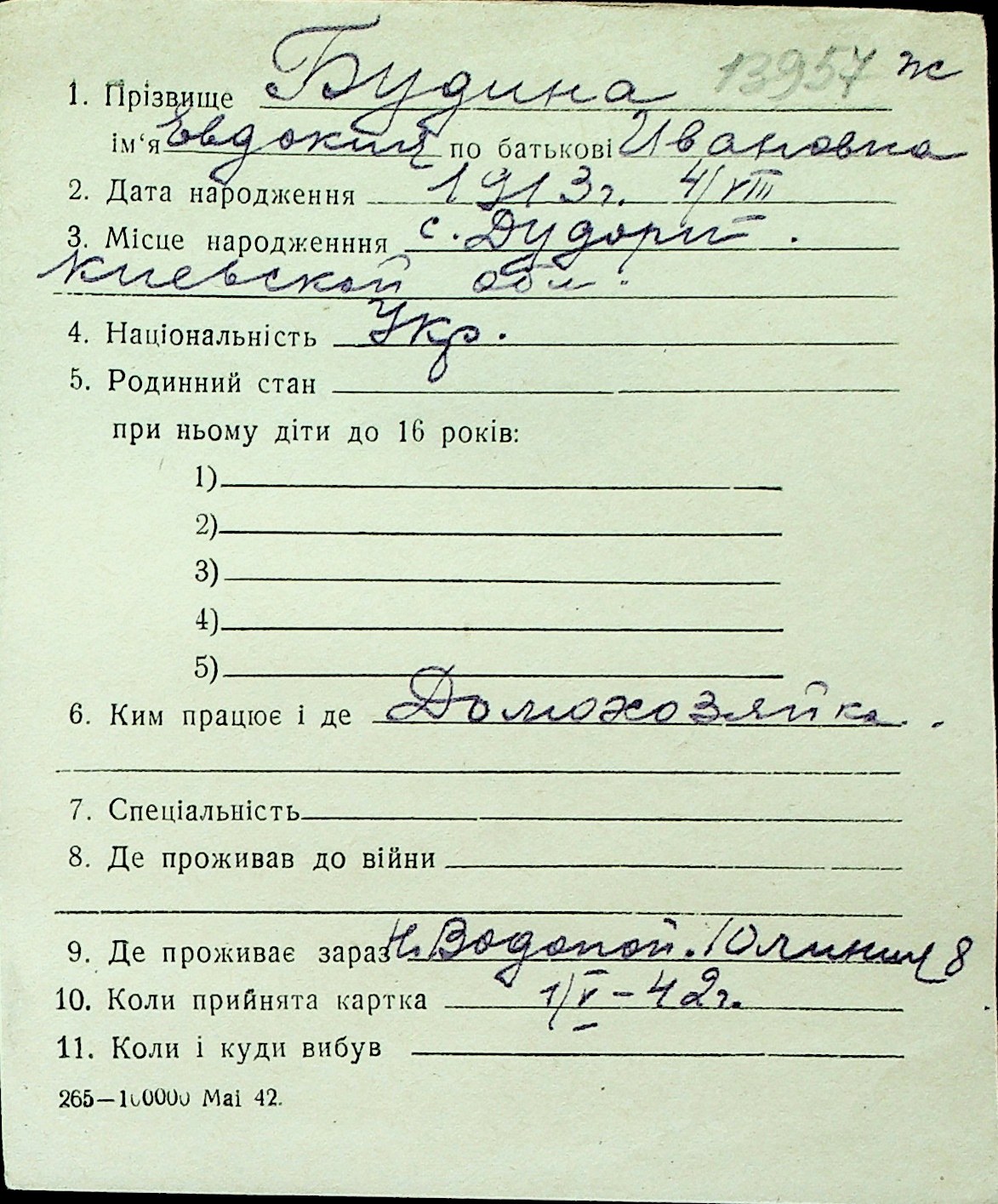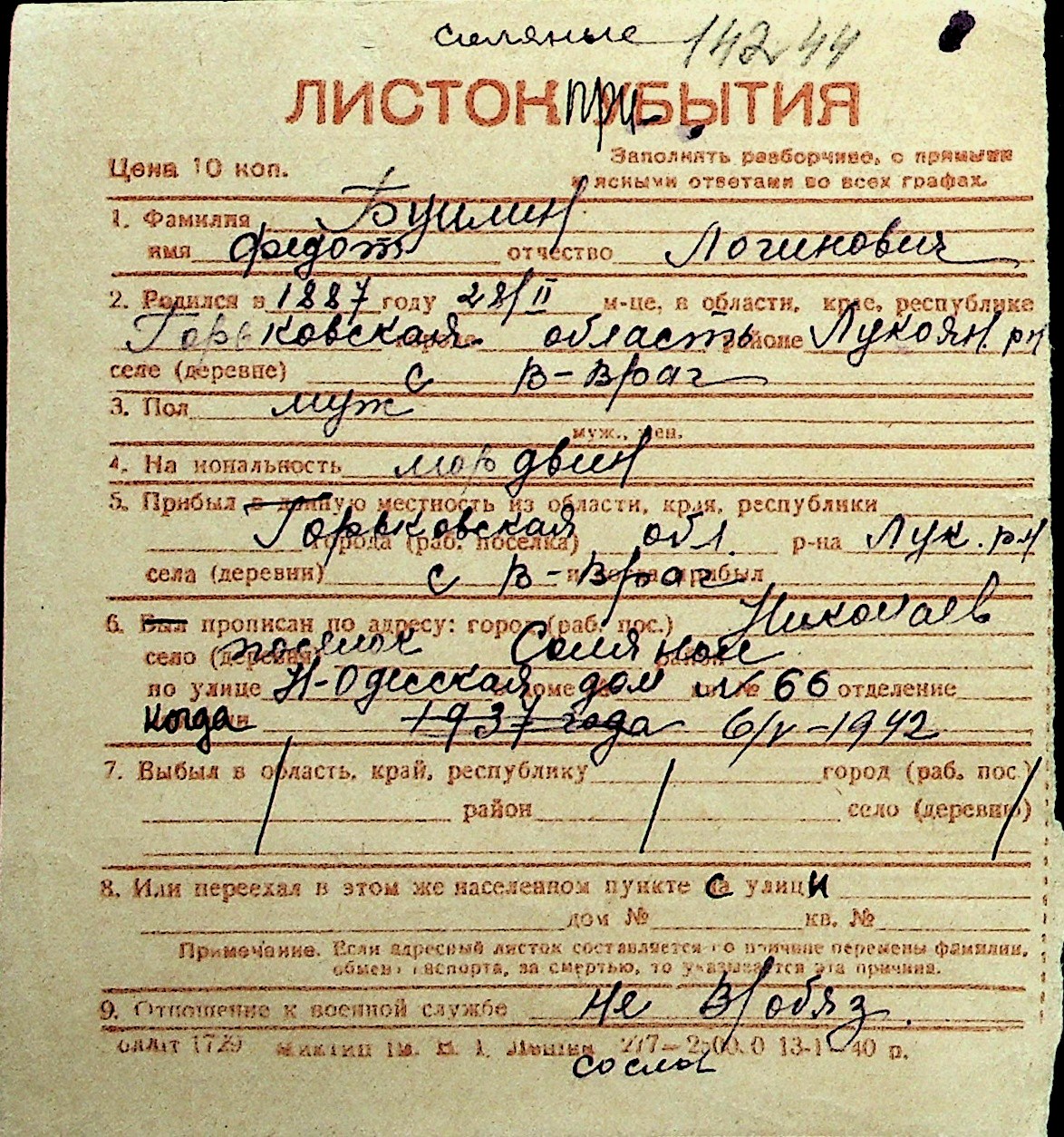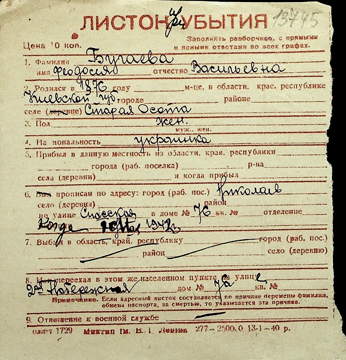 ◦ ◦ Перелік карток на осіб, які мешкали у м. Миколаїв у період окупації 1941–1944 років