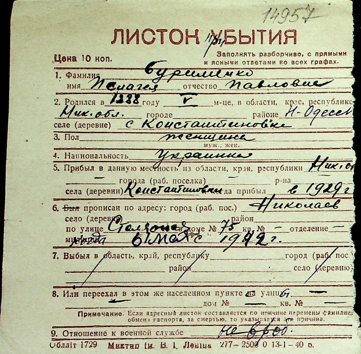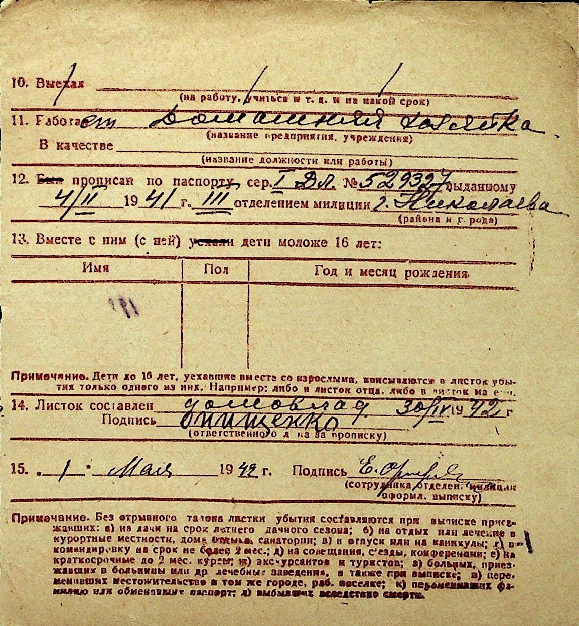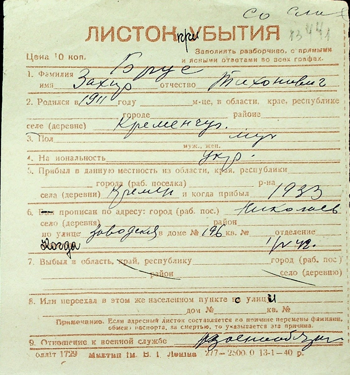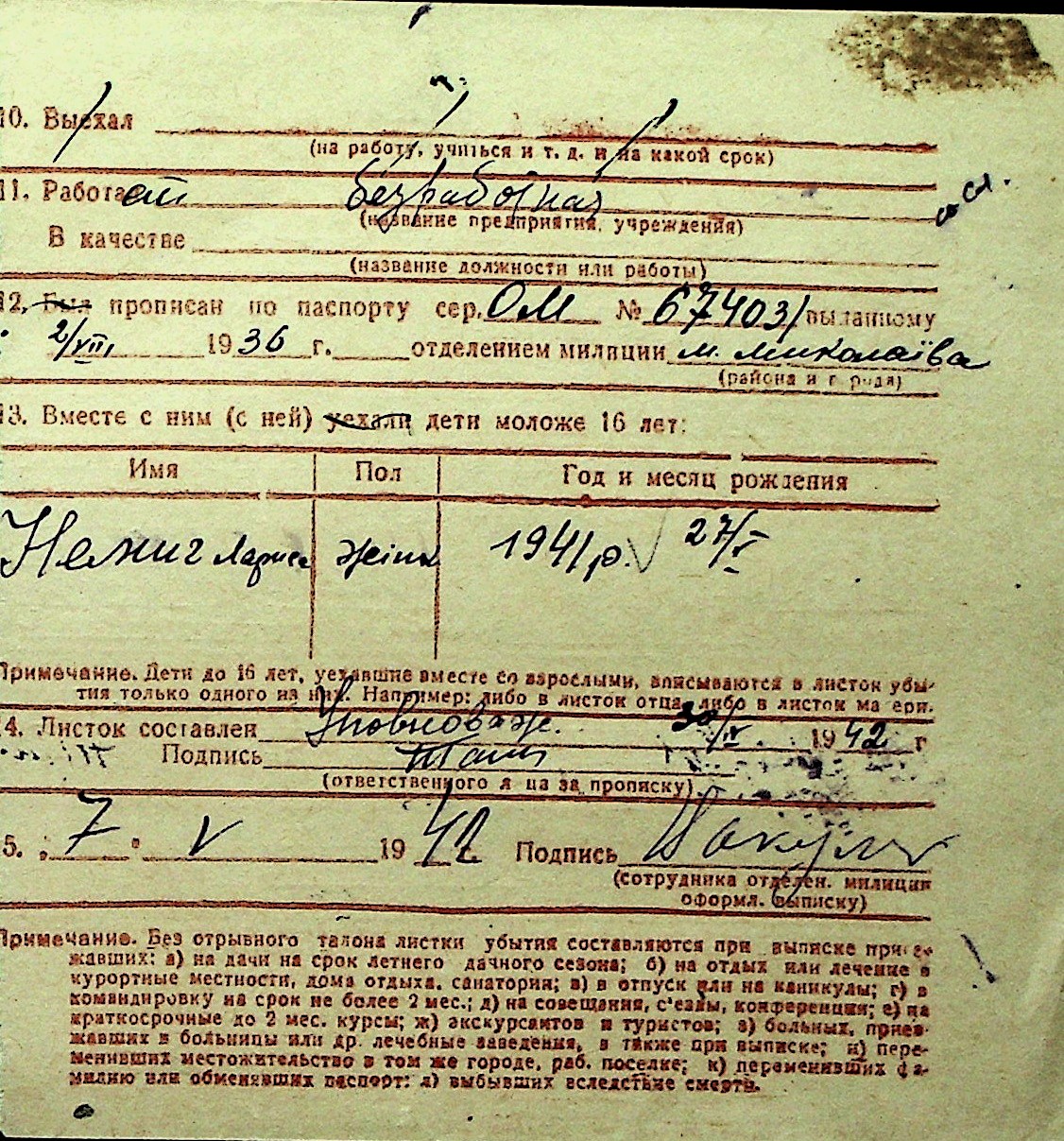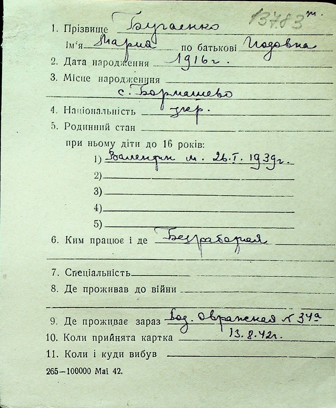 ◦ ◦ Перелік карток на осіб, які мешкали у м. Миколаїв у період окупації 1941–1944 років