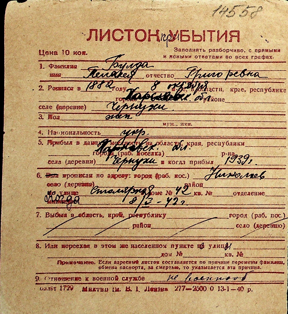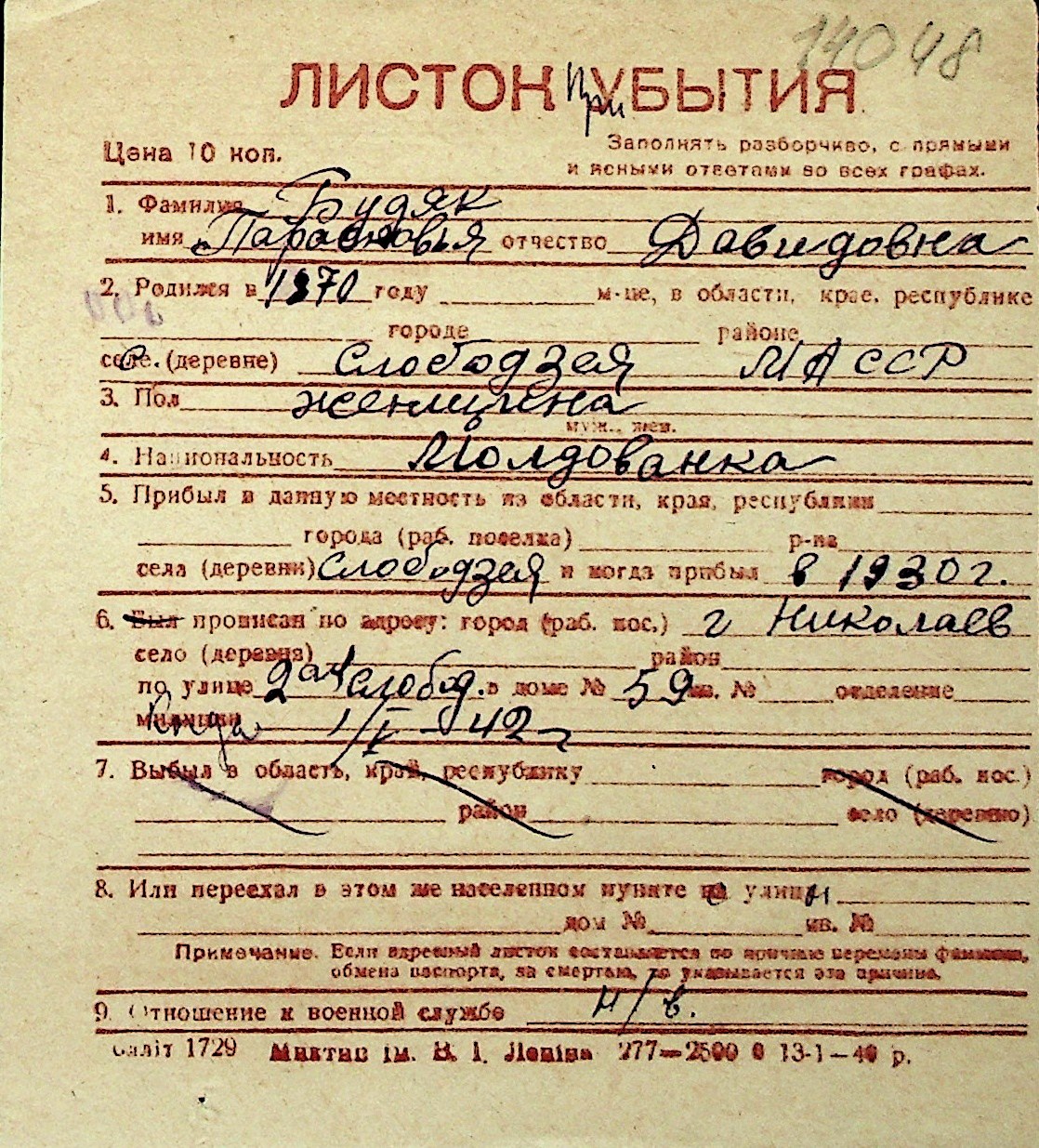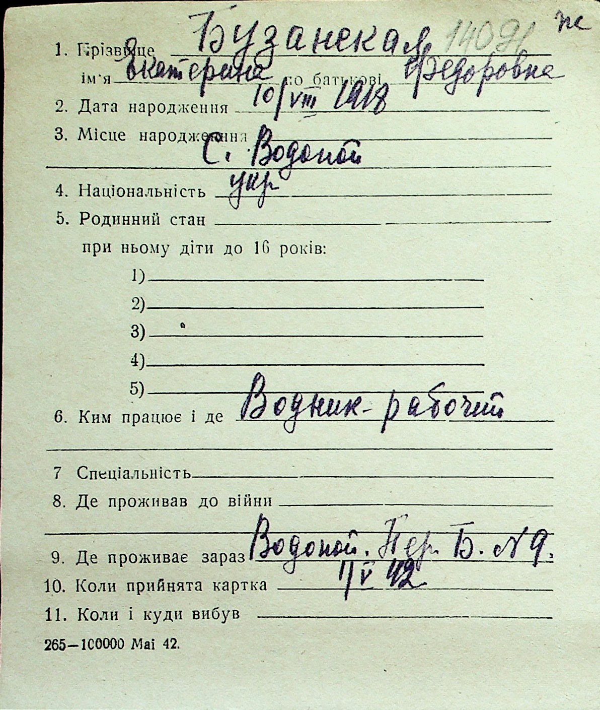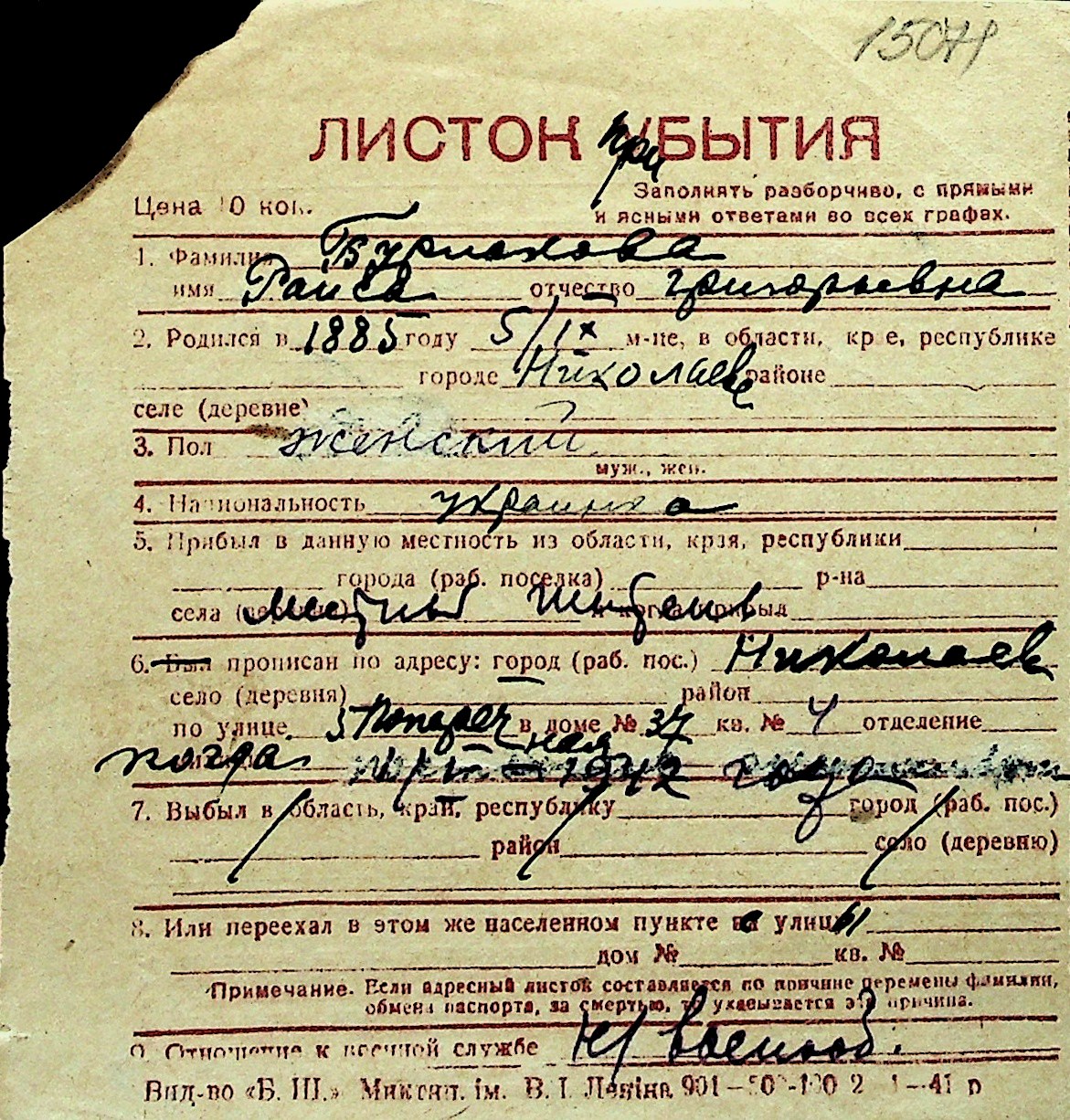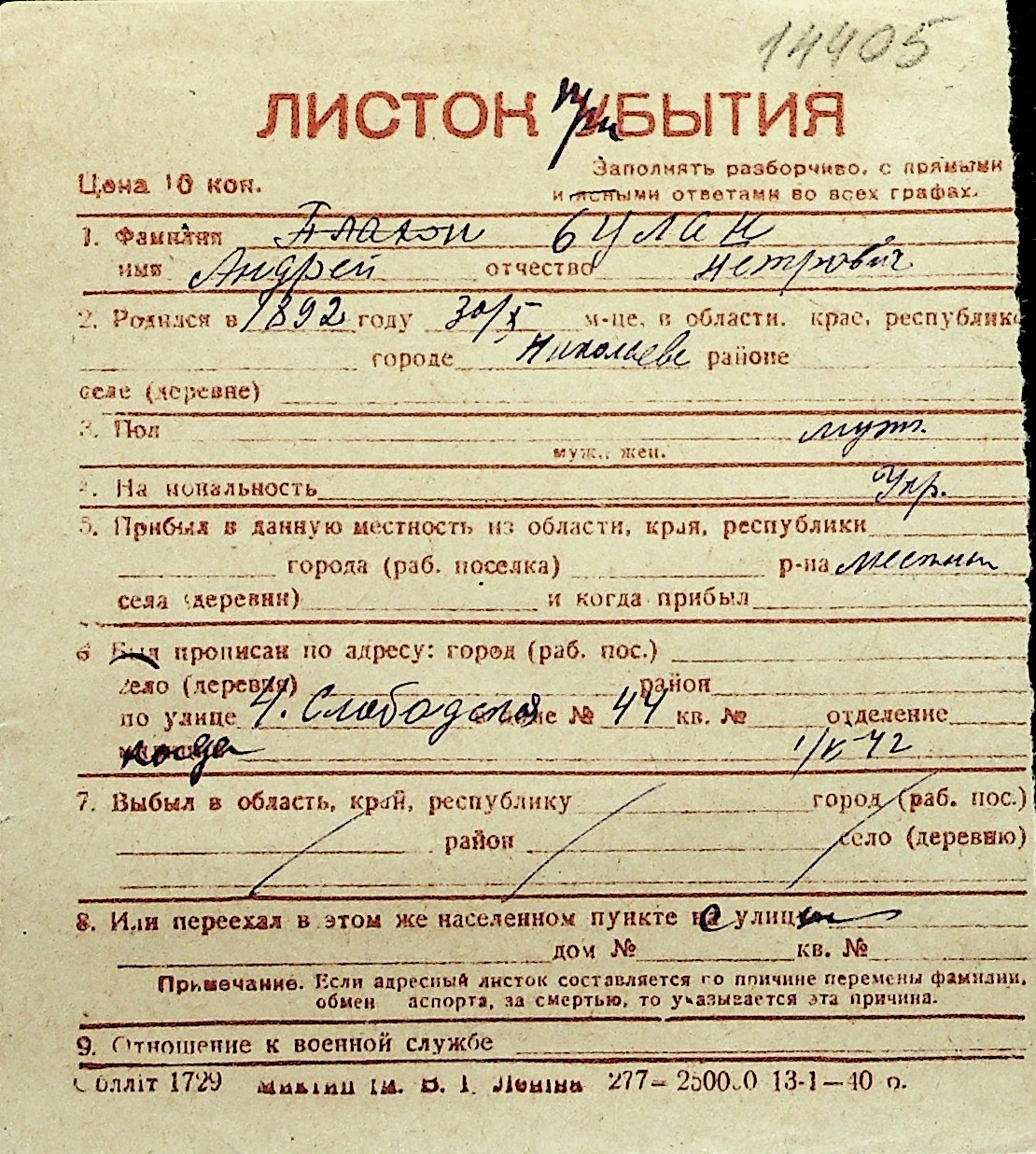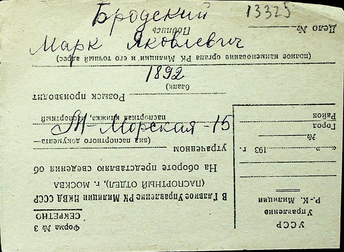 ◦ ◦ Перелік карток на осіб, які мешкали у м. Миколаїв у період окупації 1941–1944 років