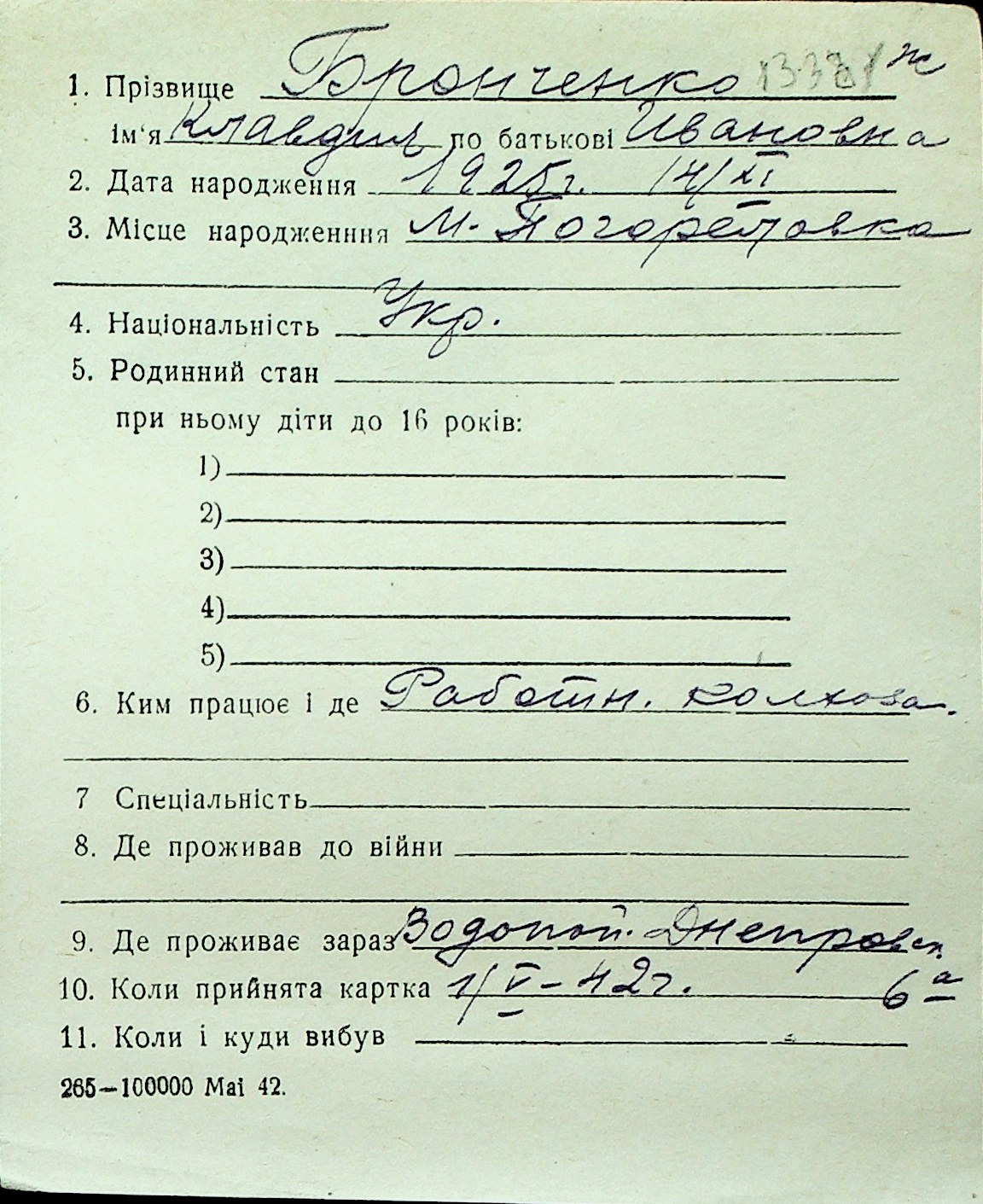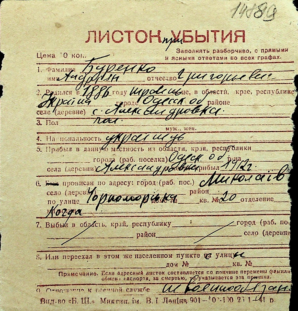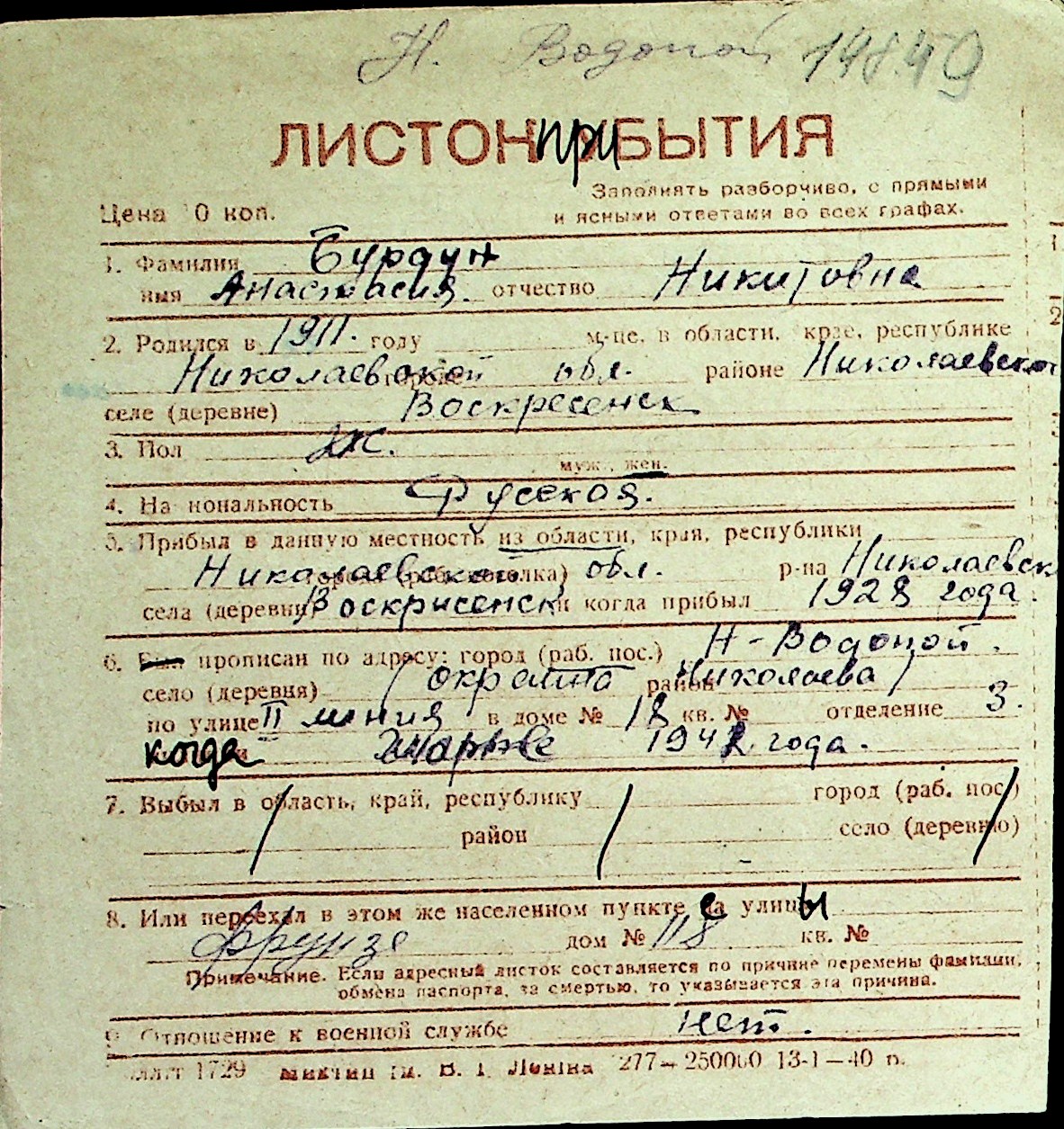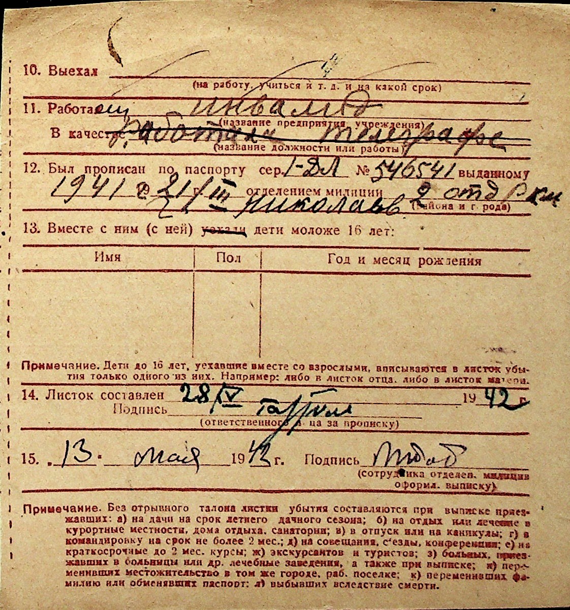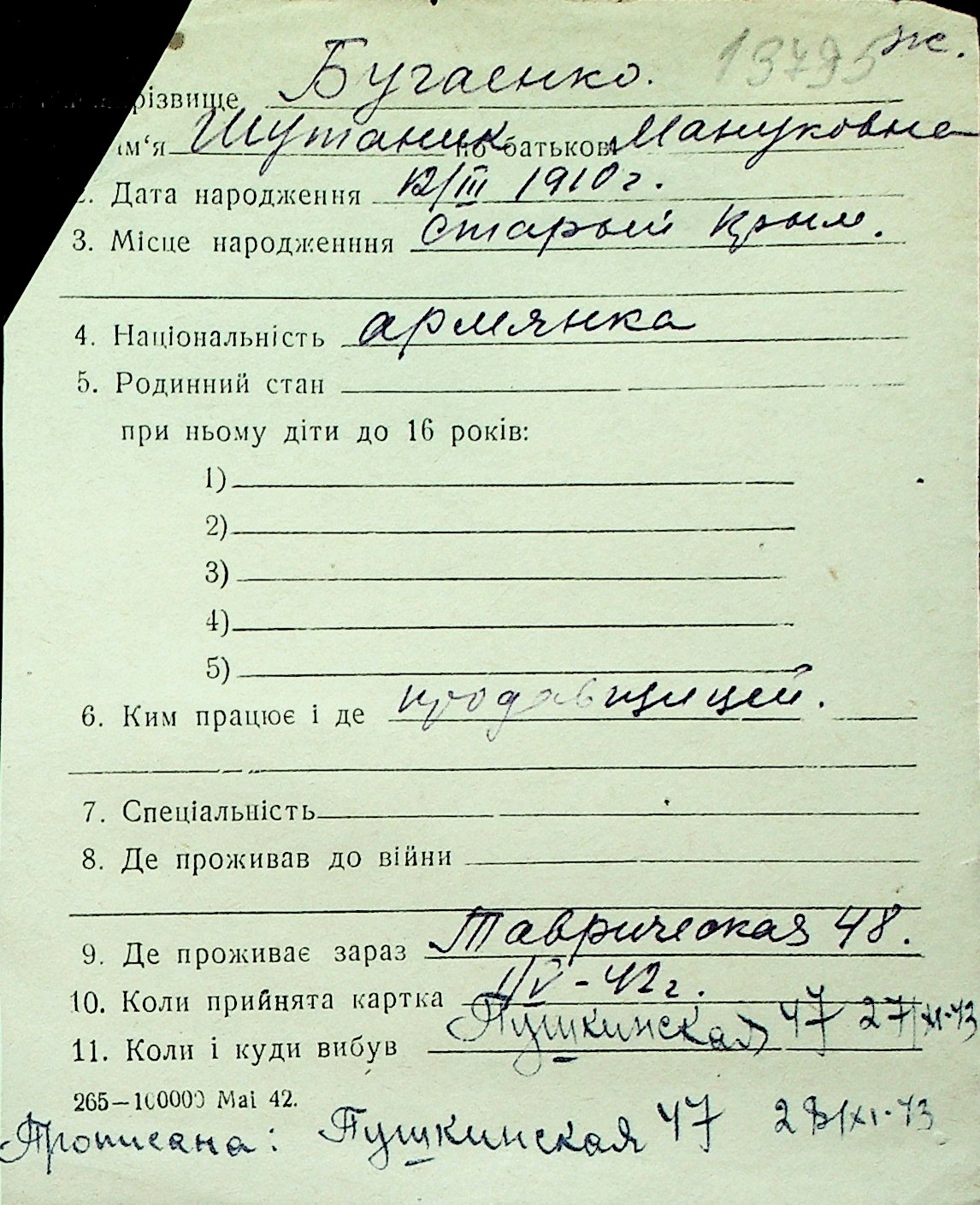 ◦ ◦ Перелік карток на осіб, які мешкали у м. Миколаїв у період окупації 1941–1944 років