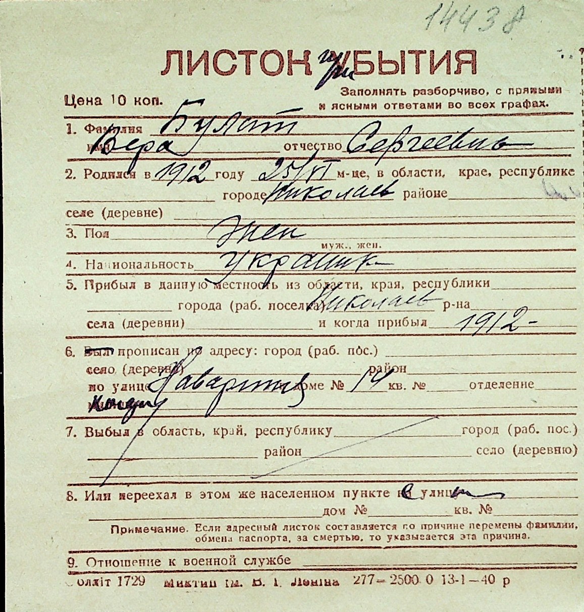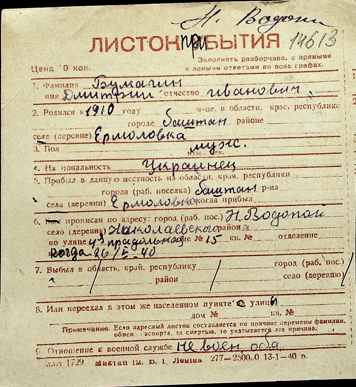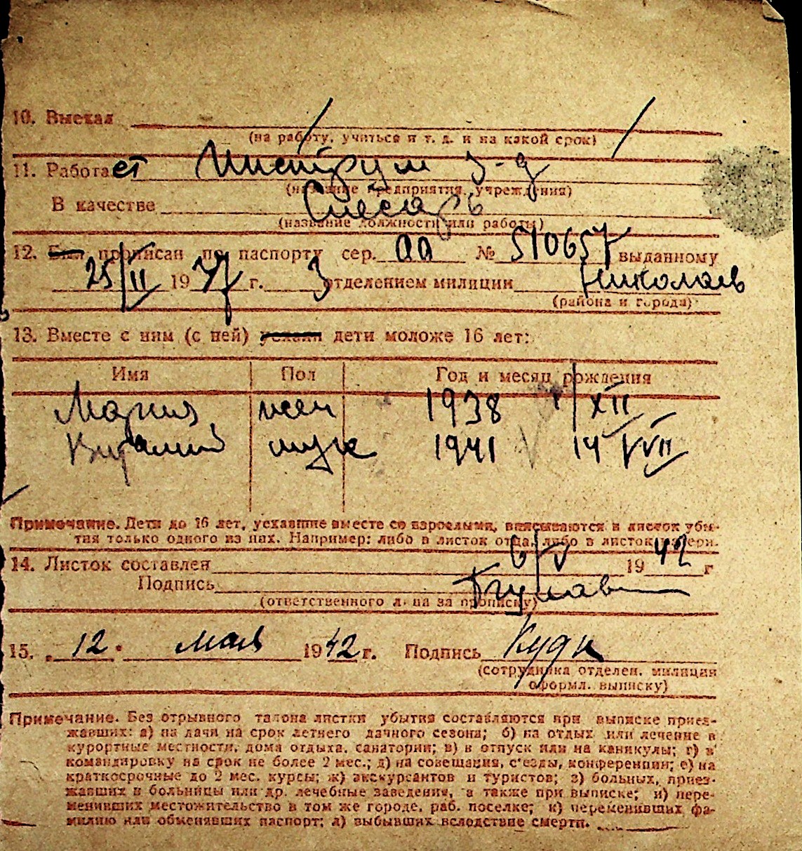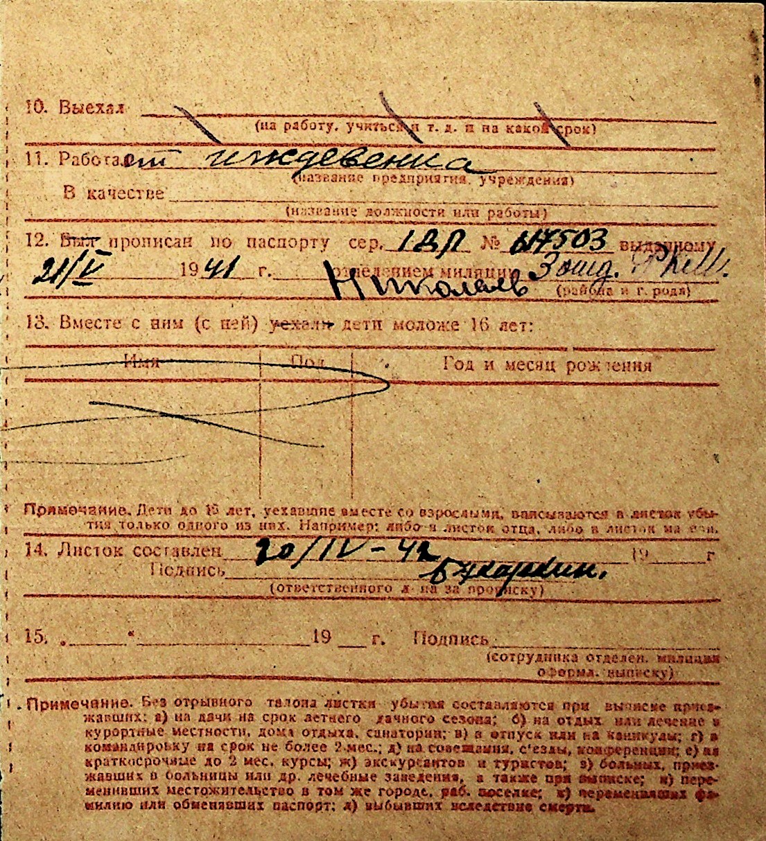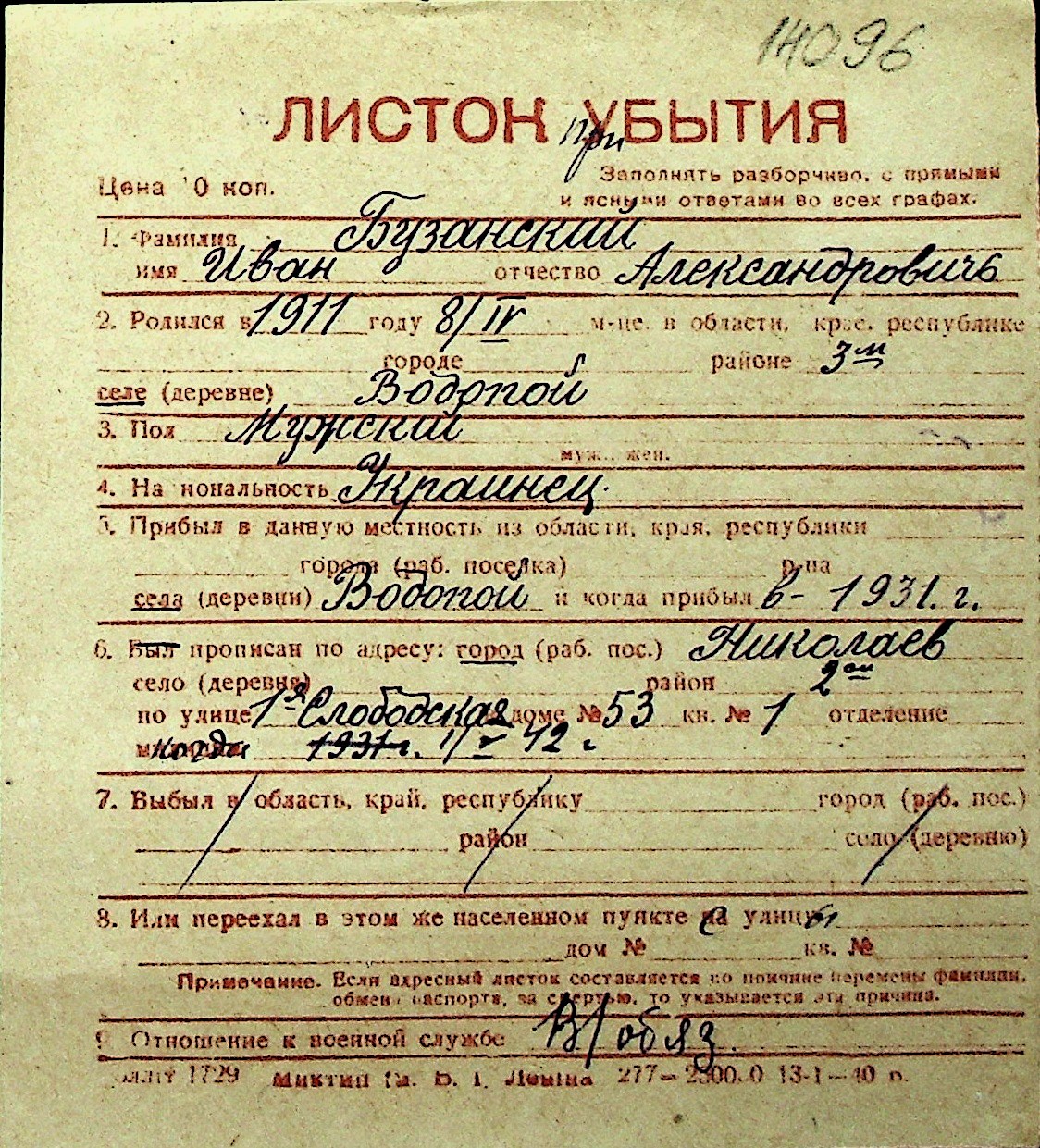 ◦ ◦ Перелік карток на осіб, які мешкали у м. Миколаїв у період окупації 1941–1944 років