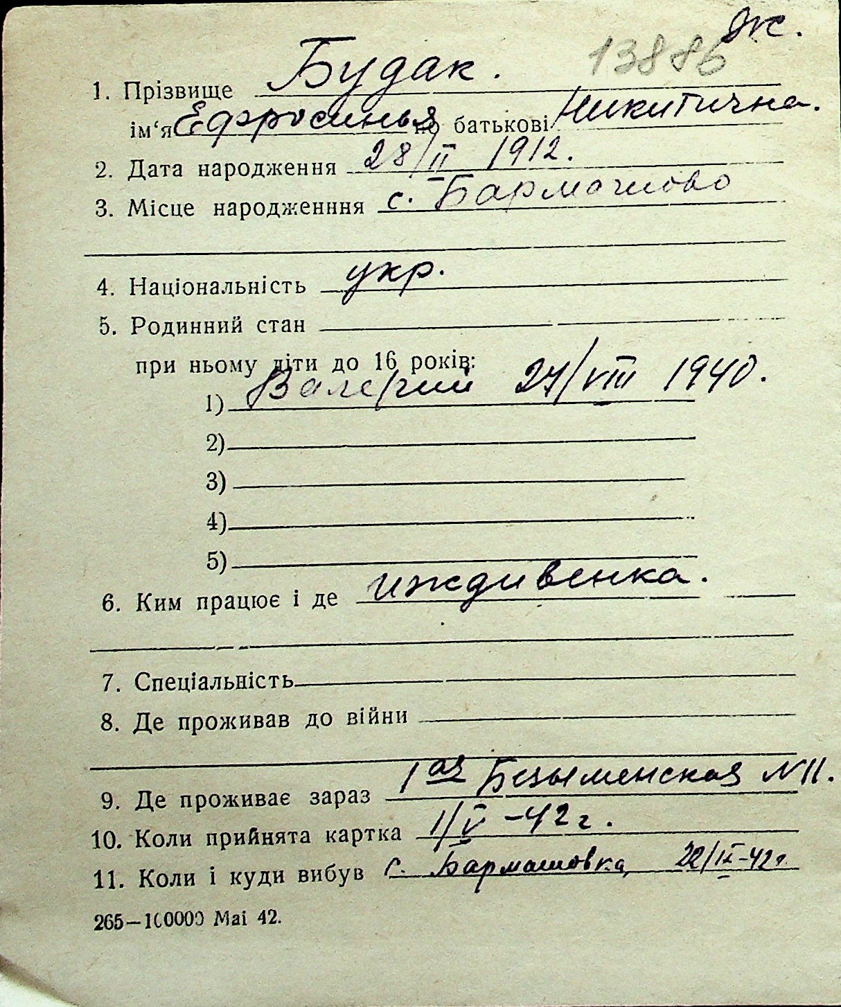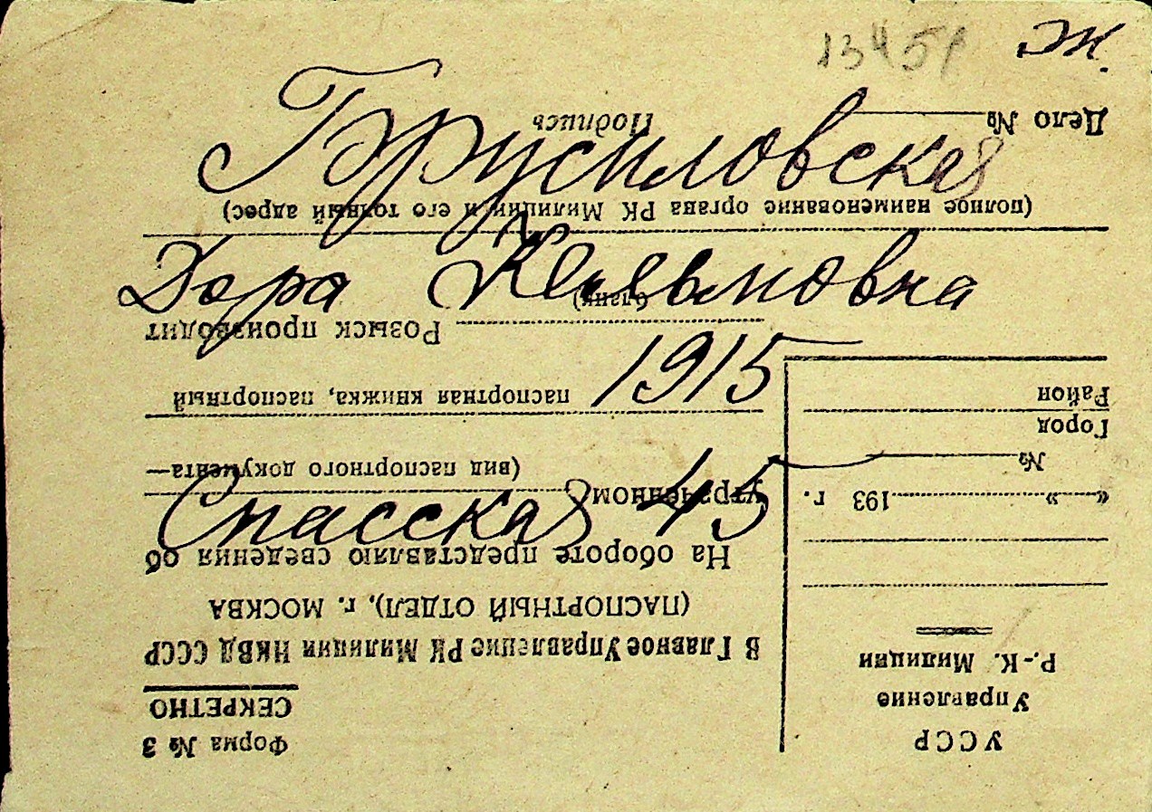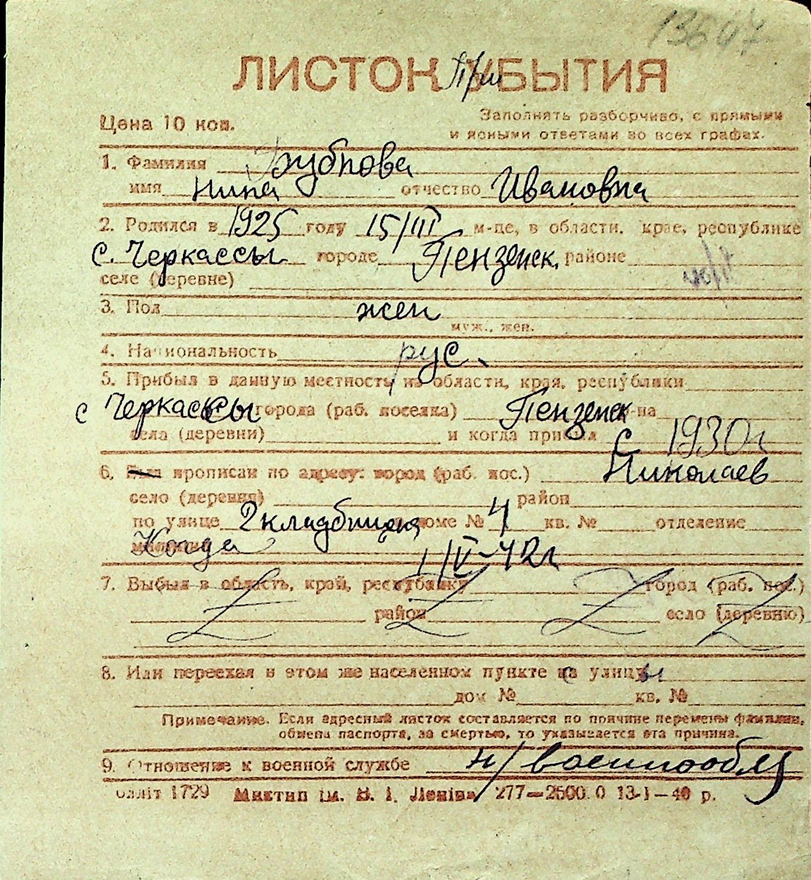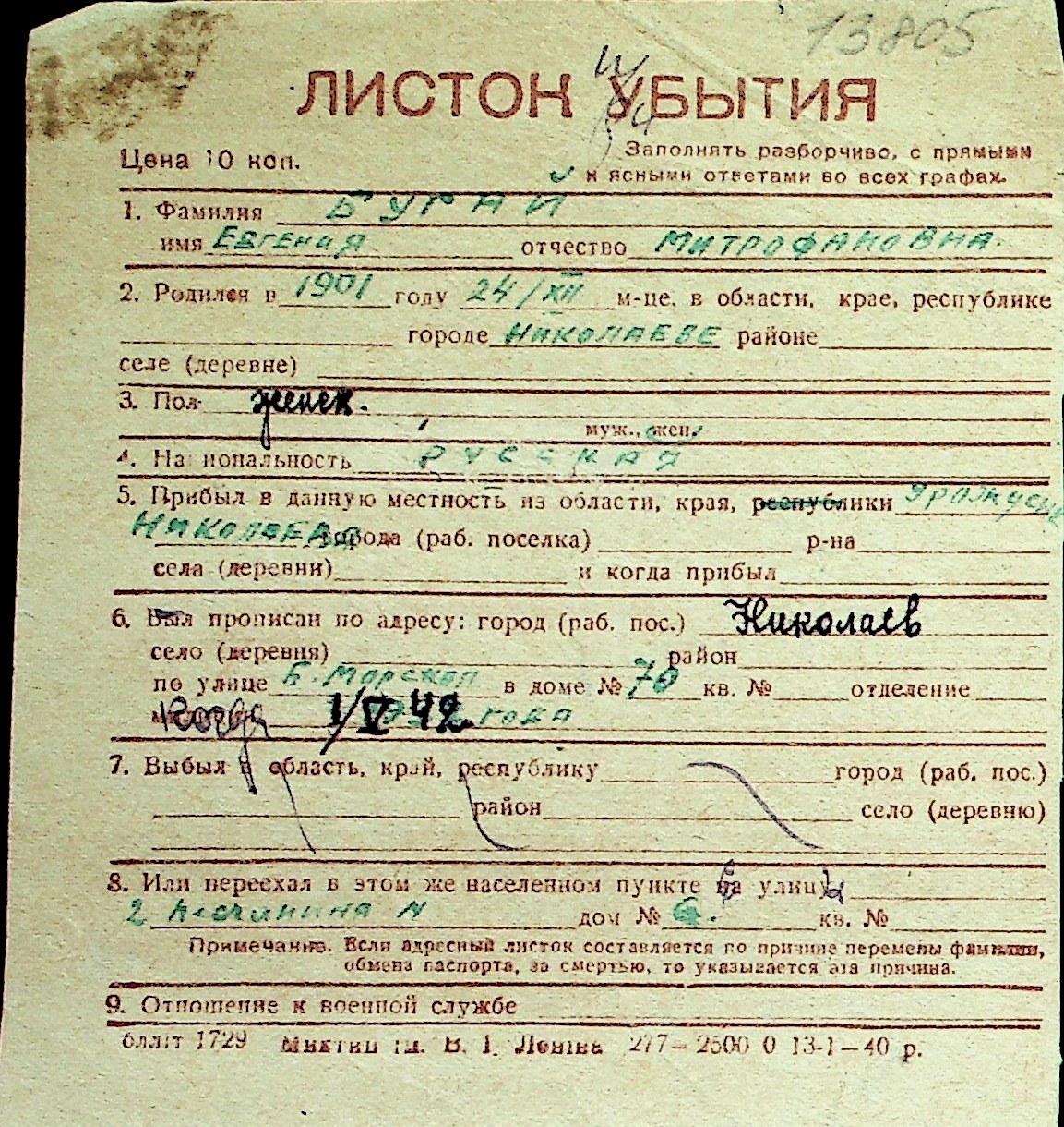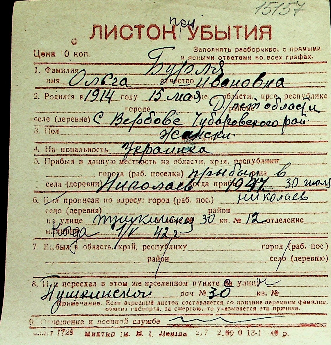 ◦ ◦ Перелік карток на осіб, які мешкали у м. Миколаїв у період окупації 1941–1944 років